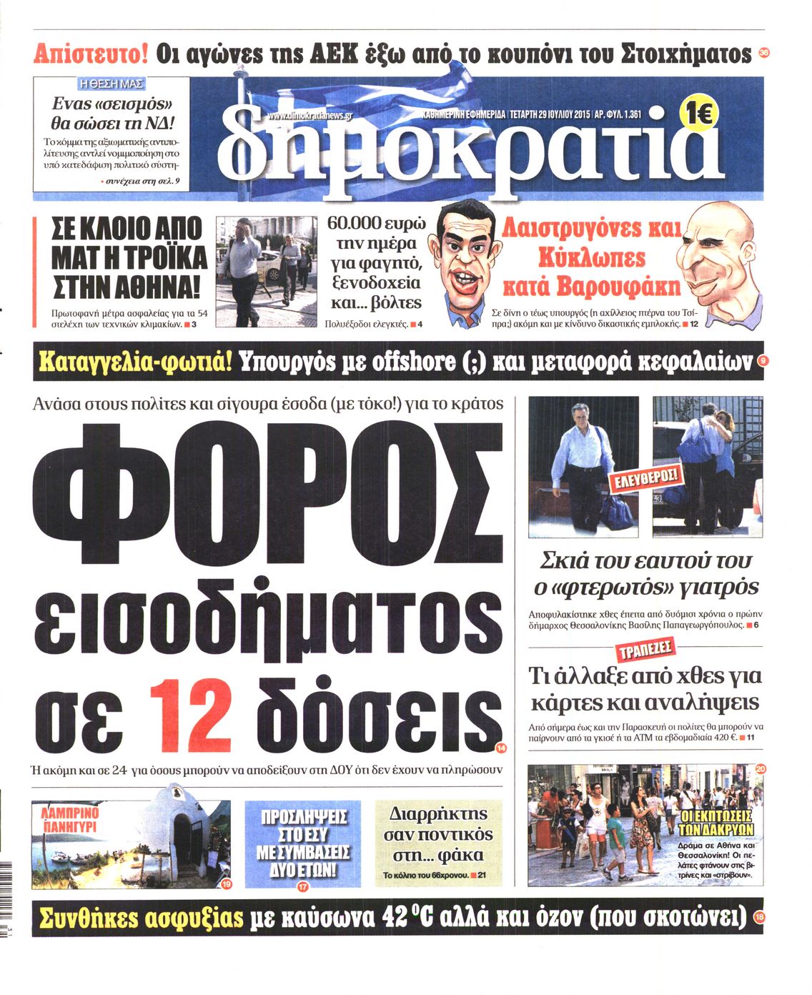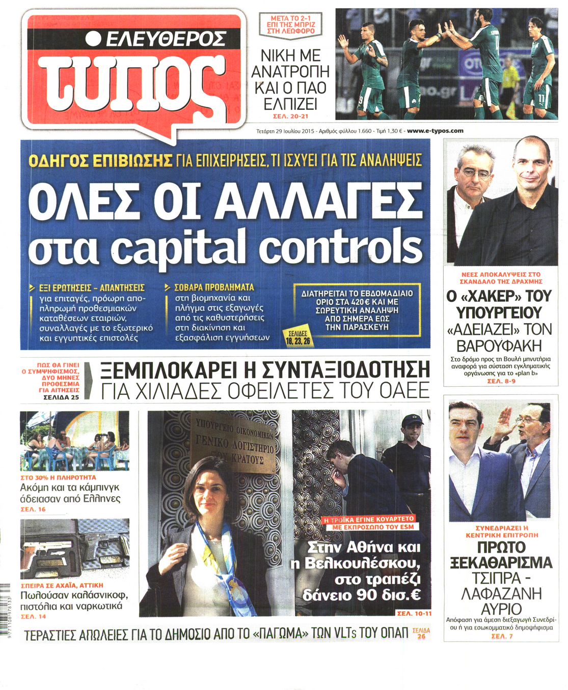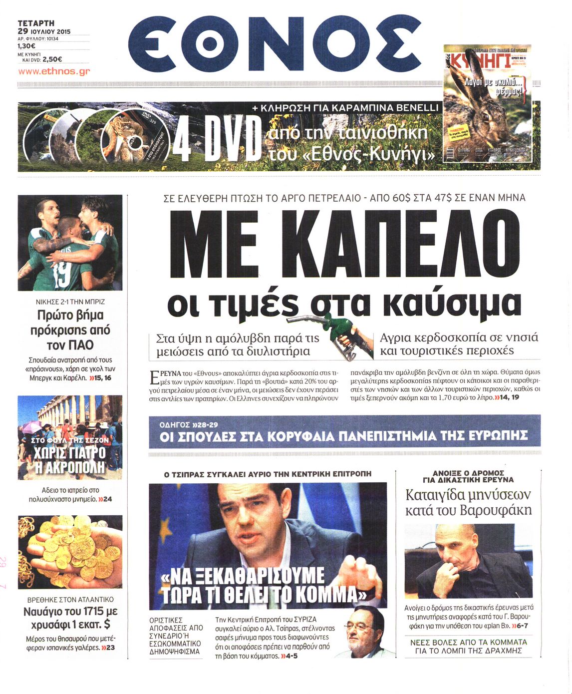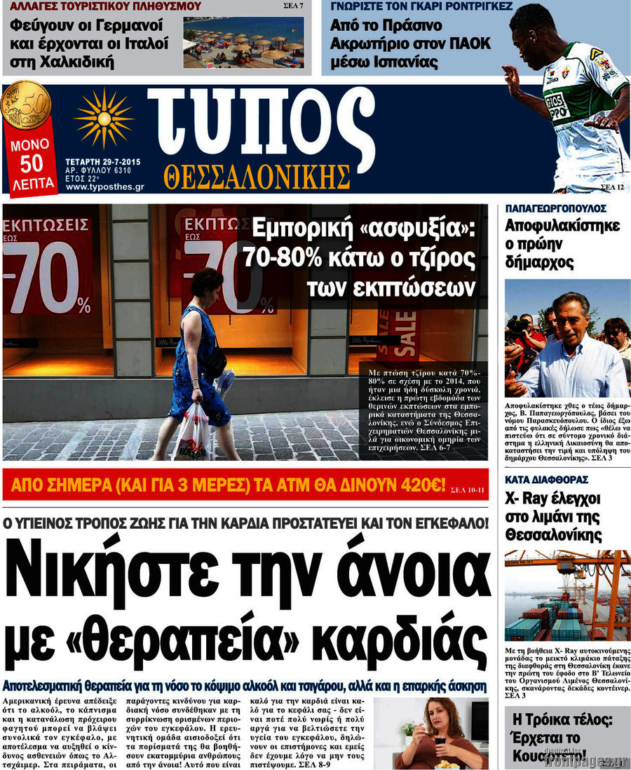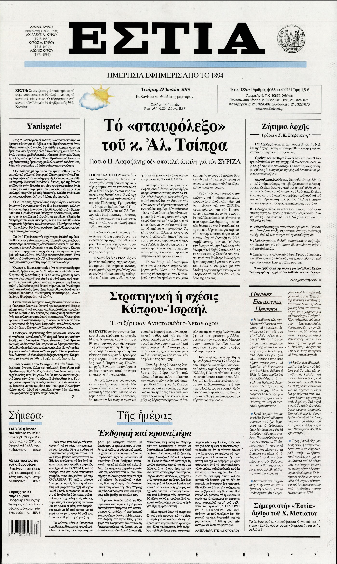 Οι πολιτικές εφημερίδες 29/7/2015 Enikos Newsroom 07:52, Τετάρτη 29 Ιουλίου 2015 Media Διαβάστε τα σημερινά πρωτοσέλιδα των πολιτικών εφημερίδων. ΕΦΗΜΕΡΙΔΕΣ ΟΙ ΠΟΛΙΤΙΚΕΣ ΕΦΗΜΕΡΙΔΕΣ ΠΡΩΤΟΣΕΛΙΔΑ Μοιράσου το: σχολίασε κι εσύ (0 σχόλια) Ακολουθήστε το enikos.gr στο Google News και μάθετε πρώτοι όλες τις ειδήσεις Δείτε όλες τις τελευταίες ειδήσεις από την Ελλάδα και τον Κόσμο στο enikos.gr Ειδήσεις Ροή Ειδήσεων 2 ώρες πριν Αυξάνουν την πίεση προς την κυβέρνηση οι αγρότες: Κλείνουν παρακαμπτήριους και ανοίγουν διόδια – Τι θα γίνει τις γιορτές 24 λεπτά πριν ΟΠΕΚΕΠΕ: Προφυλακιστέος ο φερόμενος αρχηγός και ο λογιστής της εγκληματικής οργάνωσης 1 ώρα πριν Φοινικούντα: Το Σάββατο απολογείται ο 30χρονος γιος γνωστού επιχειρηματία της Πλάκας που παραδόθηκε – Όσα είπε στους αστυνομικούς και ο ρόλος του στο έγκλημα 1 ώρα πριν Μπορεί ο Μαδούρο να αντέξει τον αποκλεισμό του Τραμπ; Τι θα χρειαστεί η Ουάσινγκτον για να τον ανατρέψει 3 ώρες πριν Πρίγκιπας Ουίλιαμ – Κέιτ: Η νέα οικογενειακή φωτογραφία για τις Χριστουγεννιάτικες κάρτες του 2025 2 ώρες πριν Ύπνος: Η απλή βραδινή ρουτίνα για να προστατεύσετε τα μαλλιά σας από το κρύο κατά τη διάρκεια του χειμώνα 3 ώρες πριν Manifesting: Πώς να συναντήσετε τον σύντροφο της ζωής σας, ανάλογα με τον μήνα γέννησής σας 2 ημέρες πριν 20 χρόνια τα Χριστούγεννα ξεκινούν στα Public με μεγάλη ποικιλία σε δώρα! 1 ώρα πριν Αρχαιολόγοι ανακάλυψαν ρωμαϊκά τεχνουργήματα από μια πόλη που δεν υπήρξε ποτέ – Τα τρία εντυπωσιακά κτίρια και ο αμφορέας με τις… σαρδέλες 4 λεπτά πριν ΑΕΚ – Κραϊόβα 3-2: Επική ανατροπή και πρόκριση στους «16» του Conference League η Ένωση 24 λεπτά πριν ΟΠΕΚΕΠΕ: Προφυλακιστέος ο φερόμενος αρχηγός και ο λογιστής της εγκληματικής οργάνωσης 34 λεπτά πριν Αθηνά Μαξίμου: Η τρυφερή ανάρτηση για τα γενέθλια του Αιμίλιου Χειλάκη – «Είναι η εκλεκτική συγγένειά μου, η επιλογή και η ευθύνη μου» 50 λεπτά πριν Παναθηναϊκός – Χάποελ Τελ Αβίβ 93-82: Με… φόρα από την Κωνσταντινούπολη 1 ώρα πριν Μπορεί ο Μαδούρο να αντέξει τον αποκλεισμό του Τραμπ; Τι θα χρειαστεί η Ουάσινγκτον για να τον ανατρέψει ENIKOS NETWORK Σε περίοδο αυξημένης δραστηριότητας η γρίπη στην Ελλάδα-Μέτρα προστασίας από τον ΕΟΔΥ Σκέφτεστε συνέχεια συζητήσεις που έχετε κάνει; Τι σημαίνει αυτό, σύμφωνα με ειδικό Στεγαστικό: Τι λέει η ΠΟΜΙΔΑ για τα νέα μέτρα που ανακοίνωσε ο Κυριάκος Μητσοτάκης Λαγκάρντ: Αισιόδοξη για την ανάπτυξη της Ευρωζώνης, αβέβαιη για τον πληθωρισμό Χαρτογραφώντας το «σημείο χωρίς επιστροφή»: Για πρώτη φορά αποκαλύπτεται με λεπτομέρεια το ακανθώδες όριο της ατμόσφαιρας τ... Η Google καταργεί τη λειτουργία «dark web report» – Πώς θα μπορούν οι χρήστες να διαγράφουν τα δεδομένα τους περισσότερα 17:45 , Πέμπτη 18 Δεκεμβρίου 2025 ROUK ZOUK: Εορταστικό επεισόδιο με καλεσμένους τους πρωταγωνιστές του «Γιατί ρε πατέρα» Το Σάββατο 20 Δεκεμβρίου στις 21:00, η Ζέτα Μακρυπούλια υποδέχεται εκλεκτούς ηθοποιούς που όλο... 17:20 , Πέμπτη 18 Δεκεμβρίου 2025 Άγιος έρωτας: Η Χριστίνα εξομολογείται στον πατέρα Νικόλαο, απόψε στις 21:00 στον Alpha Η Νότα αποφασίζει να εκδικηθεί τον Πέτρο και τον Στέφανο, για χάρη του Λούη, όμως τα πράγματα ... 16:50 , Πέμπτη 18 Δεκεμβρίου 2025 Να μ’ αγαπάς: Ζωή και Φωτεινή συμφιλιώνονται ως μάνα με κόρη, απόψε στις 20:00 Η ταυτότητα του Άγγελου αποκαλύπτεται στο νέο επεισόδιο της σειράς “Να μ’ αγαπάς... 15:52 , Πέμπτη 18 Δεκεμβρίου 2025 Το Σπίτι Δίπλα Στο Ποτάμι: Το καθηλωτικό τελευταίο επεισόδιο για το 2025 απόψε στις 22:30 Καθηλώνει το