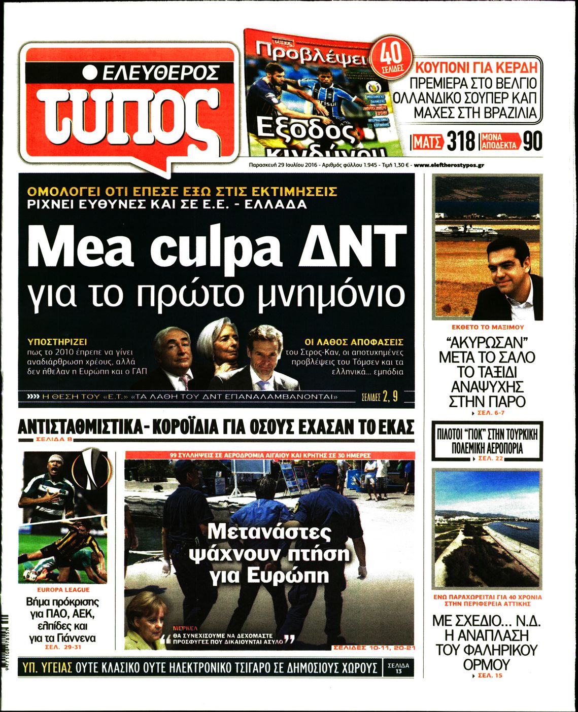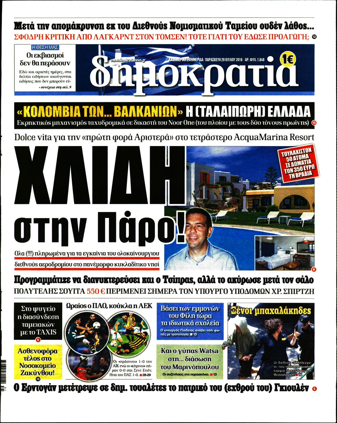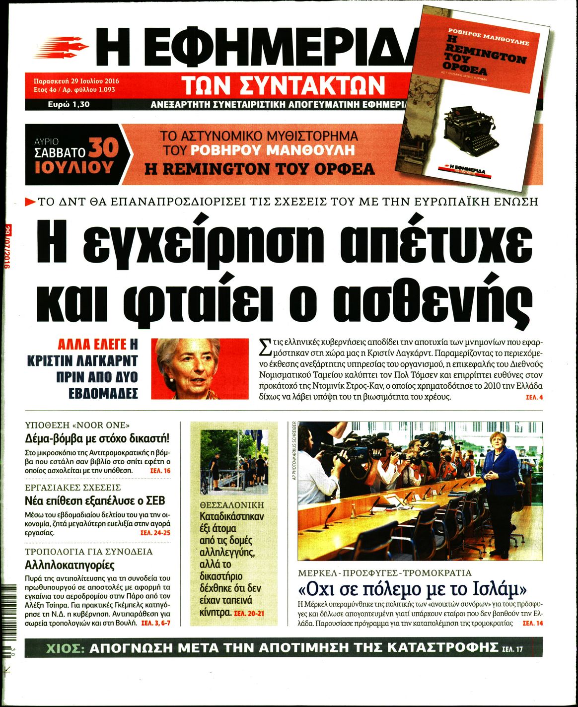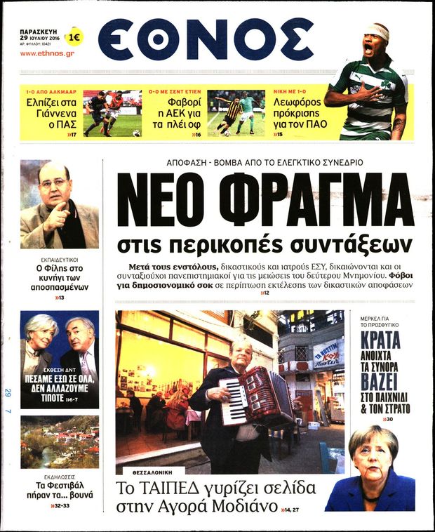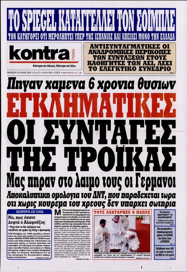 Οι πολιτικές εφημερίδες 29/7/2016 Enikos Newsroom 05:04, Παρασκευή 29 Ιουλίου 2016 Media Διαβάστε τα σημερινά πρωτοσέλιδα των πολιτικών εφημερίδων: ΠΟΛΙΤΙΚΕΣ ΕΦΗΜΕΡΙΔΕΣ ΠΡΩΤΟΣΕΛΙΔΑ Μοιράσου το: σχολίασε κι εσύ (0 σχόλια) Ακολουθήστε το enikos.gr στο Google News και μάθετε πρώτοι όλες τις ειδήσεις Δείτε όλες τις τελευταίες ειδήσεις από την Ελλάδα και τον Κόσμο στο enikos.gr Ειδήσεις Ροή Ειδήσεων 6 ώρες πριν Εκτός ευρωομάδας ΣΥΡΙΖΑ ο Νίκος Παππάς μετά την επίθεση στον δημοσιογράφο Νίκο Γιαννόπουλο – Η μήνυση και οι νέες δηλώσεις 7 ώρες πριν «Αγριεύουν» οι αγρότες: «Δεν συντρέχει λόγος συνάντησης με τον πρωθυπουργό» – Ώρα αποφάσεων στη σύσκεψη της Πέμπτης 7 ώρες πριν Κυψέλη: Χωρίς την οικογένειά της δίπλα της απολογήθηκε η 16χρονη – «Της είχε επιτεθεί κάποιος για να την βιάσει, φοβήθηκε και κυκλοφορούσε με μαχαίρι» 6 ώρες πριν Politico: Το πρόβλημα της Ευρώπης δεν είναι το Βέλγιο αλλά ο Ντόναλντ Τραμπ 8 ώρες πριν Αλεξανδρούπολη: Πολυοργανική ανεπάρκεια λόγω υποσιτισμού η αιτία θανάτου του 3χρονου αγοριού 6 ώρες πριν Μυστήριο με τεράστιες κυκλικές πέτρες 200 κιλών – Ανακαλύφθηκαν τυχαία κατά τη διάρκεια οδικών έργων και κανείς δεν ξέρει από πού προέρχονται 7 ώρες πριν Ύπνος: Ειδικός εξηγεί τον πραγματικό λόγο που ξυπνάτε στις 4 τα ξημερώματα – Ο ρόλος των ορμονών και του κιρκάδιου ρυθμού 8 ώρες πριν Αριθμολογία: Οι άνθρωποι που έχουν γεννηθεί αυτές τις 4 ημερομηνίες, είναι τρυφεροί και αγαπούν ανιδιοτελώς 20 ώρες πριν 20 χρόνια τα Χριστούγεννα ξεκινούν στα Public με μεγάλη ποικιλία σε δώρα! 4 λεπτά πριν Εφημερεύοντα φαρμακεία σε Αθήνα και Θεσσαλονίκη (18/12) 6 λεπτά πριν Αλεξάνδρα Ούστα: «Αυτό που με τρέλανε στον σύζυγό μου ήταν η ορθολογική του σκέψη» 13 λεπτά πριν Μιχάλης Αεράκης: «Της είπα “θέλω να κάνουμε σπιτικό, αλλά υπάρχουν τρεις προϋποθέσεις…”» 21 λεπτά πριν Αυστραλία: Κυβερνητική δέσμευση για αυστηρότερα μέτρα κατά της υποκίνησης μίσους 36 λεπτά πριν Ντόναλντ Τραμπ: Παρουσίασε τα επιτεύγματα της διακυβέρνησής του – Σκληρή κριτική στον Τζο Μπάιντεν ENIKOS NETWORK Αϋπνία: Το κόλπο που θα σας βοηθήσει να κοιμηθείτε απόψε – Είναι απλό και έχει αποτέλεσμα 2,6 εκατομμύρια πολίτες έχουν ήδη εμβολιαστεί κατά της γρίπης ΕΛΣΤΑΤ: Τι δείχνουν τα νέα στοιχεία για τις ηλεκτρονικές παραγγελίες των επιχειρήσεων ΚΕΠΕ: Οι 3 διακριτές συμβολές των ΜμΕ και της μεταποίησης στην ελληνική οικονομία Χαρτογραφώντας το «σημείο χωρίς επιστροφή»: Για πρώτη φορά αποκαλύπτεται με λεπτομέρεια το ακανθώδες όριο της ατμόσφαιρας τ... Η Google καταργεί τη λειτουργία «dark web report» – Πώς θα μπορούν οι χρήστες να διαγράφουν τα δεδομένα τους περισσότερα 02:30 , Πέμπτη 18 Δεκεμβρίου 2025 Αλ Τσαντίρι Νιουζ: Η κόρη της Πάολα στο κοινό – Η ατάκα Λαζόπουλου που την έκανε να «κοκκινήσει» Γιορτινή διάθεση και ευχάριστες στιγμές γέμισε η αποψινή, τελευταία για το 2025, εκπομπή του «... 22:24 , Τετάρτη 17 Δεκεμβρίου 2025 Το Σπίτι Δίπλα Στο Ποτάμι: Σε κίνδυνο η υγεία του Απόστολου – Τι θα δούμε απόψε “Το Σπίτι Δίπλα στο Ποτάμι” ξετυλίγει το νήμα της ζωής των πέντε αδελφών με καταισ... 21:14 , Τετάρτη 17 Δεκεμβρίου 2025 Παιχνίδια Εκδίκησης: Θα καταφέρει ο Χρήστος να κλονίσει την εμπιστοσύνη της Μάγιας απέναντι στον Άγη; Τα «Παιχνίδια Εκδίκησης» έρχονται απόψε στις 22:30, στον Αντ1, με το τελευταίο επεισόδιο της χ... 20:57 , Τετάρτη 17 Δεκεμβρίου 2025 Άγιος Έρωτας: Η Χλόη καταθέτει εναντίον του πατέρα της και ο Χάρης αποκαλύπτει στον Κλεάνθη ότι δεν είναι ο βιολογικό