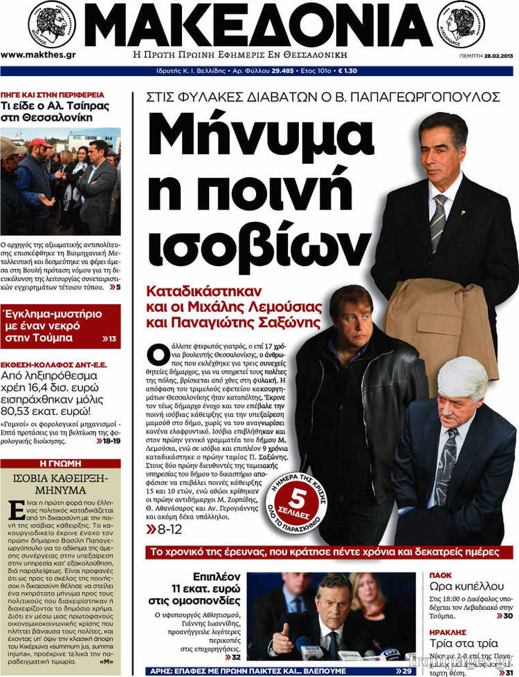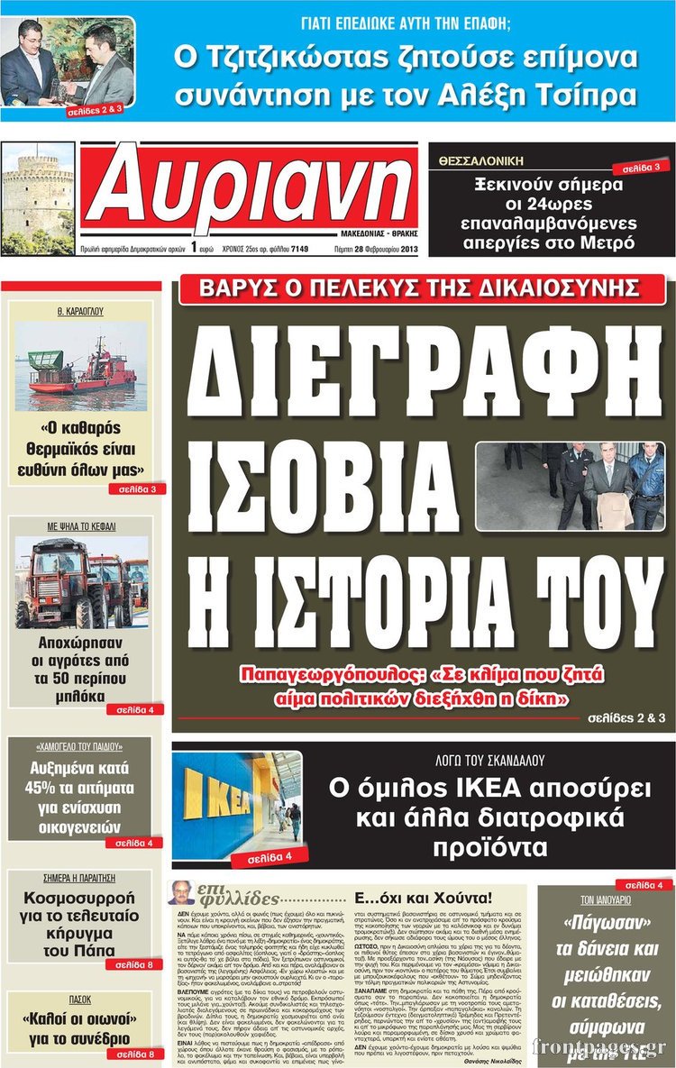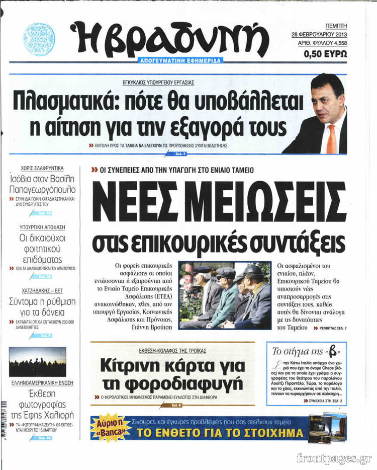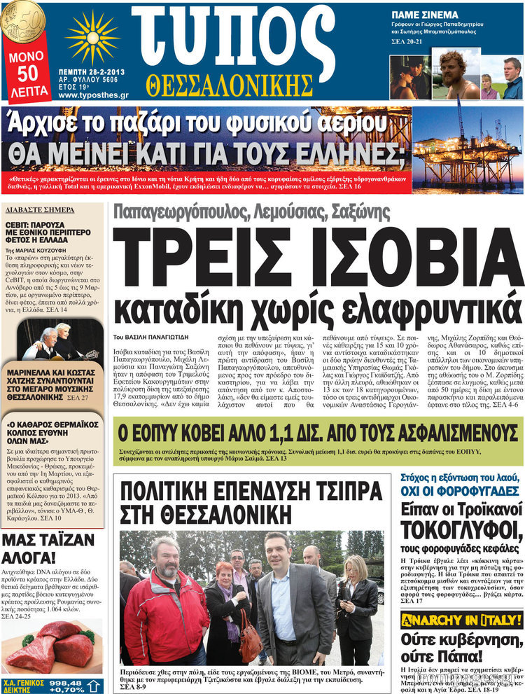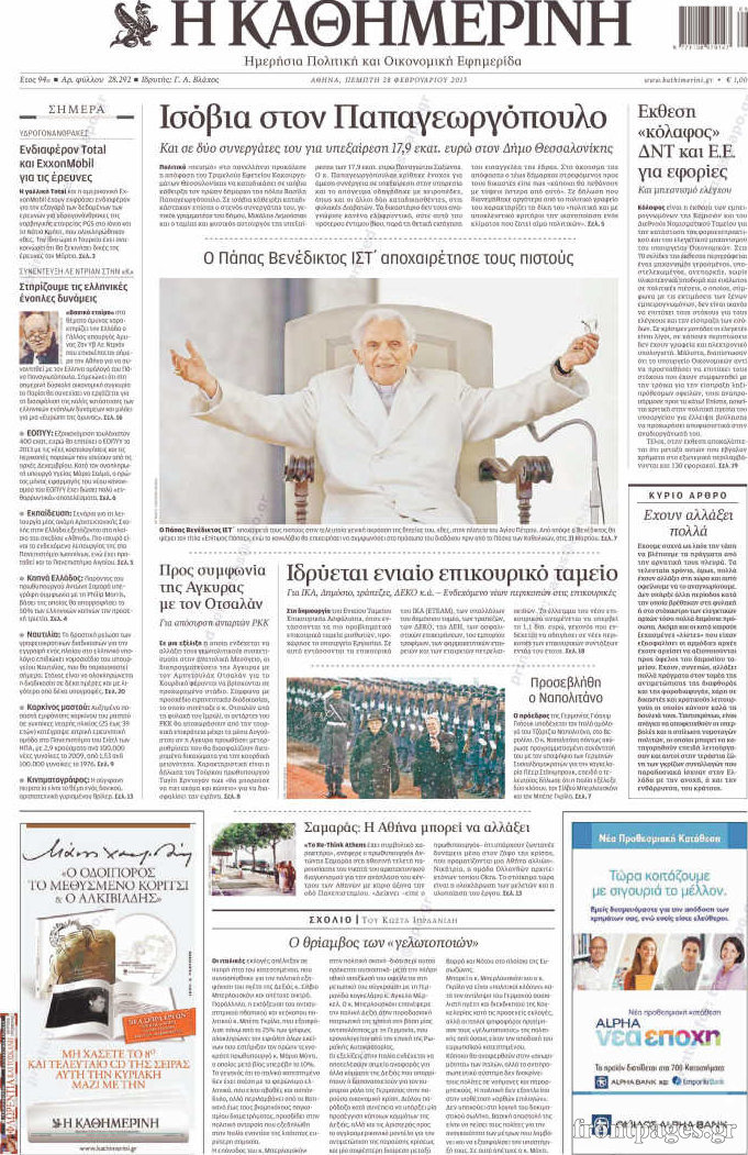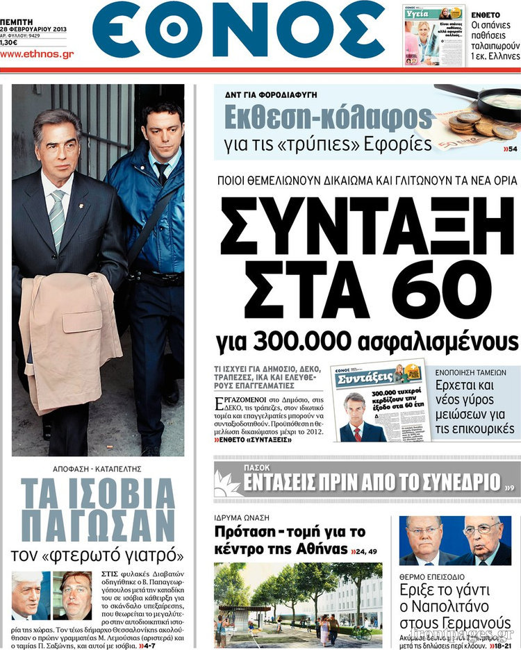 Οι πολιτικές εφημερίδες Enikos Newsroom 08:47, Πέμπτη 28 Φεβρουαρίου 2013 Media Οι πολιτικές εφημερίδες Δείτε τα πρωτοσέλιδα των πολιτικών εφημερίδων. ΕΦΗΜΕΡΙΔΕΣ ΠΟΛΙΤΙΚΕΣ ΕΦΗΜΕΡΙΔΕΣ ΠΡΩΤΟΣΕΛΙΔΑ Μοιράσου το: σχολίασε κι εσύ (0 σχόλια) Ακολουθήστε το enikos.gr στο Google News και μάθετε πρώτοι όλες τις ειδήσεις Δείτε όλες τις τελευταίες ειδήσεις από την Ελλάδα και τον Κόσμο στο enikos.gr Ειδήσεις Ροή Ειδήσεων 8 ώρες πριν Χριστούγεννα στα μπλόκα: Επιμένουν στις κινητοποιήσεις τους οι αγρότες – Ανοίγουν τα διόδια το Σαββατοκύριακο 9 ώρες πριν Ουκρανία: Η άνευ προηγουμένου επίθεση σε ρωσικό τάνκερ στη Μεσόγειο και το μήνυμα προς στον Πούτιν – Το «μακρύ χέρι» του Κιέβου 8 ώρες πριν Πούτιν: Τα μηνύματα σε Ευρώπη και ΝΑΤΟ από το μαραθώνιο «σόου» του – Η απαίτηση για «σεβασμό» και η ειρήνη «με τους όρους» της Μόσχας 7 ώρες πριν ΗΠΑ: Η κυβέρνηση του Ντόναλντ Τραμπ άρχισε να δημοσιοποιεί τα αρχεία Έπσταϊν 7 ώρες πριν Άνω Λιόσια: Πυροβολισμοί σε επιχείρηση με χαλιά – Εντοπίστηκαν 10 κάλυκες 55 λεπτά πριν Αυγά: Πόσα μπορείτε να τρώτε την ημέρα με ασφάλεια για μέγιστη πρόσληψη πρωτεΐνης 1 ώρα πριν Τα ζώδια σήμερα, Σάββατο 20 Δεκεμβρίου: Παρθένοι, το σύμπαν σας δίνει το κλειδί 8 ώρες πριν Ανακαλύφθηκαν αρχαία χρυσά νομίσματα 2.200 ετών που απεικονίζουν τον θεό Απόλλωνα – Η άγνωστη σύνδεση με τον Φίλιππο Β΄ της Μακεδονίας 9 ώρες πριν Ύπνος: Μια κρυφή κατάσταση του εγκεφάλου πριν από τον ύπνο μπορεί να είναι το “κλειδί” για υψηλή ευφυΐα και δημιουργικότητα 16 λεπτά πριν Κίριλ Ντμίτριεφ: Στις ΗΠΑ ο απεσταλμένος της Ρωσίας για συνομιλίες με τους ομολόγους του, Γουίτκοφ και Κούσνερ 23 λεπτά πριν ΔΕΔΔΗΕ: Διακοπές ρεύματος σήμερα (20/12) στην Αθήνα και σε άλλες 7 περιοχές της Αττικής 32 λεπτά πριν Κολομβία: Είκοσι χρόνια κάθειρξη σε πρώην ανώτερο αξιωματικό για 72 εκτελέσεις αμάχων 39 λεπτά πριν Οπτική ψευδαίσθηση: Μόνο αν είσαι ο Σέρλοκ Χολμς θα βρεις τον αριθμό «87» σε 7 δευτερόλεπτα 47 λεπτά πριν Σαρωτικοί οι έλεγχοι στους δρόμους ενόψει εορτών – Μπλόκα της τροχαίας σε κεντρικές αρτηρίες της Αττικής ENIKOS NETWORK Πρέπει να αποδέχεστε ή να απορρίπτετε όλα τα cookies; Ένας ειδικός εξηγεί Η αγαπημένη λιχουδιά των πόνι που μπορεί να ενισχύσει όραση, εγκέφαλο και ανοσοποιητικό Αναστολή μέτρων αναγκαστικής εκτέλεσης για κτηνοτρόφους που πλήττονται από την ευλογιά των αιγοπροβάτων Πλήρης επάρκεια προϊόντων στις λαϊκές της Αττικής, παρά τις αγροτικές κινητοποιήσεις – Τι απαντούν οι πωλητές Χαρτογραφώντας το «σημείο χωρίς επιστροφή»: Για πρώτη φορά αποκαλύπτεται με λεπτομέρεια το ακανθώδες όριο της ατμόσφαιρας τ... Η Google καταργεί τη λειτουργία «dark web report» – Πώς θα μπορούν οι χρήστες να διαγράφουν τα δεδομένα τους περισσότερα 05:48 , Σάββατο 20 Δεκεμβρίου 2025 Οι οικονομικές εφημερίδες 20/12/2025 Διαβάστε τα πρωτοσέλιδα από τις οικονομικές εφημερίδες, σήμερα 20/12/2025. 05:43 , Σάββατο 20 Δεκεμβρίου 2025 Οι αθλητικές εφημερίδες 20/12/2025 Διαβάστε τα πρωτοσέλιδα από τις αθλητικές εφημερίδες, σήμερα 20/12/2025. 05:38 , Σάββατο 20 Δεκεμβρίου 2025 Οι πολιτικές εφημερίδες 20/12/2025 Διαβάστε τα πρωτοσέλιδα από τις πολιτικές εφημερίδες, σήμερα 20/12/2025. 04:20 , Σάββατο 20 Δεκεμβρίου 2025 Αγγελική Νικολούλη: Τα συλλυπητήρια για την απώλεια της Ειρήνης Μαρινάκη Τα συλληπητήρια στον πρόεδρο του Mega, τον Βαγγέλη Μαρινάκη, για την απώλεια της μητέρας του Ε... ΤΕΛΕΥΤΑΙΕΣ ΕΙΔΗΣΕΙΣ 16 λεπτά πριν Κίριλ Ντμίτριεφ: Στις ΗΠΑ ο απεσταλμένος της Ρωσίας... 23 λεπτά πριν ΔΕΔΔΗΕ: Δι