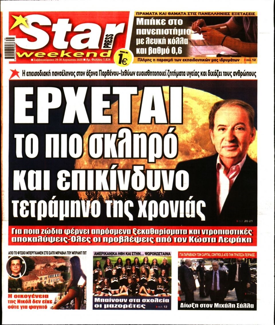 Οι πολιτικές εφημερίδες 29/8/2020 Διονύσης Νίκκας 07:12, Σάββατο 29 Αυγούστου 2020 Media Διαβάστε τα πρωτοσέλιδα των πολιτικών εφημερίδων… ΠΟΛΙΤΙΚΕΣ ΕΦΗΜΕΡΙΔΕΣ ΠΡΩΤΟΣΕΛΙΔΑ Μοιράσου το: σχολίασε κι εσύ (0 σχόλια) Ακολουθήστε το enikos.gr στο Google News και μάθετε πρώτοι όλες τις ειδήσεις Δείτε όλες τις τελευταίες ειδήσεις από την Ελλάδα και τον Κόσμο στο enikos.gr Ειδήσεις Ροή Ειδήσεων 2 ώρες πριν Χριστούγεννα στα μπλόκα: Επιμένουν στις κινητοποιήσεις τους οι αγρότες – Ανοίγουν τα διόδια το Σαββατοκύριακο 2 ώρες πριν Ουκρανία: Η άνευ προηγουμένου επίθεση σε ρωσικό τάνκερ στη Μεσόγειο και το μήνυμα προς στον Πούτιν – Το «μακρύ χέρι» του Κιέβου 2 ώρες πριν Πούτιν: Τα μηνύματα σε Ευρώπη και ΝΑΤΟ από το μαραθώνιο «σόου» του – Η απαίτηση για «σεβασμό» και η ειρήνη «με τους όρους» της Μόσχας 3 ώρες πριν Τραμπ: Δεν αποκλείει την πιθανότητα ενός πολέμου στη Βενεζουέλα – «Ο Μαδούρο ξέρει καλύτερα από τον καθένα τι ακριβώς θέλω» 3 ώρες πριν Συνεχίζει να προκαλεί ο Μίτσκοσκι: «Για μένα το όνομα Μακεδονία είναι ιερό» 2 ώρες πριν Ανακαλύφθηκαν αρχαία χρυσά νομίσματα 2.200 ετών που απεικονίζουν τον θεό Απόλλωνα – Η άγνωστη σύνδεση με τον Φίλιππο Β΄ της Μακεδονίας 3 ώρες πριν Ύπνος: Μια κρυφή κατάσταση του εγκεφάλου πριν από τον ύπνο μπορεί να είναι το “κλειδί” για υψηλή ευφυΐα και δημιουργικότητα 4 ώρες πριν Αριθμολογία: Οι άνθρωποι που έχουν γεννηθεί αυτές τις 4 ημερομηνίες, συχνά παρεξηγούνται – «Η καλοσύνη τους κρύβει τεράστια δύναμη» 5 ώρες πριν Ξεχάστε το καθάρισμα το Σαββατοκύριακο: Ο «κανόνας των 20 λεπτών» που θα σας λύσει τα χέρια 14 λεπτά πριν Φαίη Σκορδά: «Παλιότερα τα κομπλιμέντα τα προσπερνούσα, τώρα τα έχω ανάγκη» 30 λεπτά πριν Βασίλης Σπανούλης: Δεν εμφανίστηκε ούτε ένας δημοσιογράφος στην συνέντευξη Τύπου – «Καλησπέρα στον… κανέναν», δείτε βίντεο 41 λεπτά πριν Πόλεμος στην Ουκρανία: Εφτά νεκροί από ρωσική πυραυλική επίθεση στο λιμάνι της Οδησσού 45 λεπτά πριν ΗΠΑ: Η κυβέρνηση του Ντόναλντ Τραμπ άρχισε να δημοσιοποιεί τα αρχεία Έπσταϊν 56 λεπτά πριν Σάμος: Άνοιξε το μπλόκο των αγροτών στον κόμβο Κοκκαρίου – Σε νέα συνεδρίαση θα καθορίσουν την στάση τους ENIKOS NETWORK Το ΕΚΑΒ τιμήθηκε από την Ακαδημία Αθηνών για τα 40 χρόνια προσφοράς του Έχετε πραγματικά μεγάλη καρδιά; 10 χαρακτηριστικά όσων έχουν καλοσύνη Αναστολή μέτρων αναγκαστικής εκτέλεσης για κτηνοτρόφους που πλήττονται από την ευλογιά των αιγοπροβάτων Πλήρης επάρκεια προϊόντων στις λαϊκές της Αττικής, παρά τις αγροτικές κινητοποιήσεις – Τι απαντούν οι πωλητές Χαρτογραφώντας το «σημείο χωρίς επιστροφή»: Για πρώτη φορά αποκαλύπτεται με λεπτομέρεια το ακανθώδες όριο της ατμόσφαιρας τ... Η Google καταργεί τη λειτουργία «dark web report» – Πώς θα μπορούν οι χρήστες να διαγράφουν τα δεδομένα τους περισσότερα 22:42 , Παρασκευή 19 Δεκεμβρίου 2025 Γιώργος Γιαννόπουλος για “Το σόι σου”: “Είναι ευτυχία και ευλογία αυτή η σειρά” «Είναι ευτυχία και ευλογία η συγκυρία αυτής της σειράς», θα πει ο Γιώργος Γιαννόπουλος -ο αγαπ... 20:37 , Παρασκευή 19 Δεκεμβρίου 2025 Don’t Forget The Lyrics: Η Έλλη Κοκκίνου υποδέχεται 4 παίκτες που θα κάνουν τα πάντα για να μη χάσουν ούτε… μισή λέξη από τους στίχους Το «Don’t Forget The Lyrics» επιστρέφει απόψε, Παρασκευή 19 Δεκεμβρίου, στις 21:00 με νέο επει... 19:31 , Παρασκευή 19 Δεκεμβρίου 2025 GNTM: Απόψε ο μεγάλος τελικός για τους 4 φιναλίστ Έπειτα από μήνες γεμάτους μόδα, δημιουργία και έντονες αναμετρήσεις, το GNTM 2025 κορυφώνεται,... 18:11 , Πα