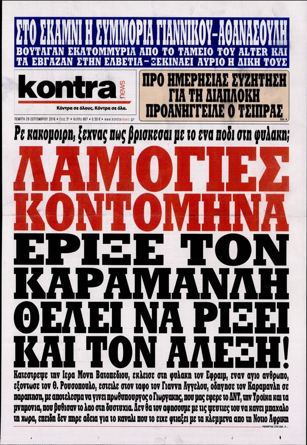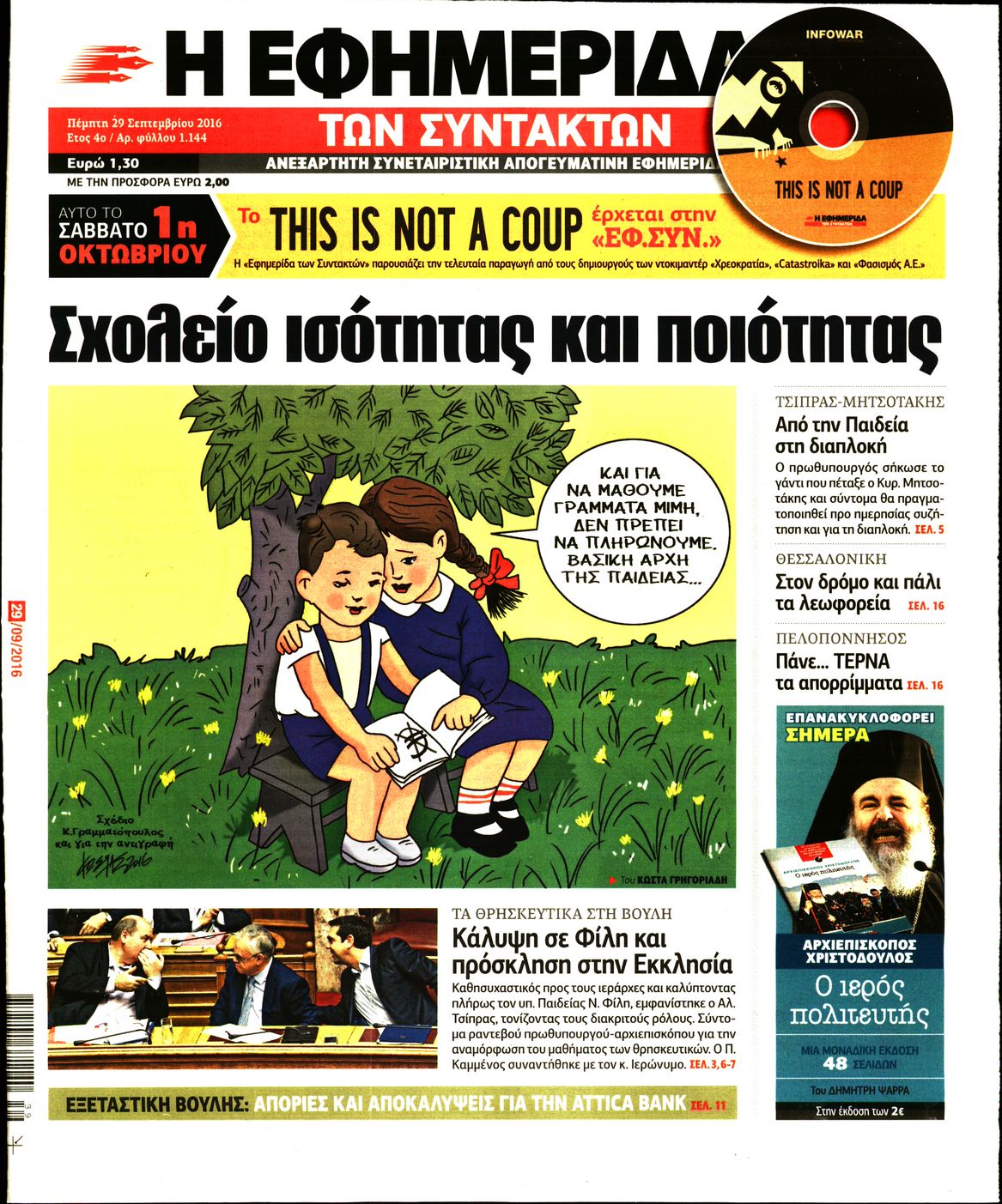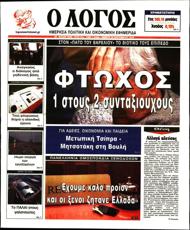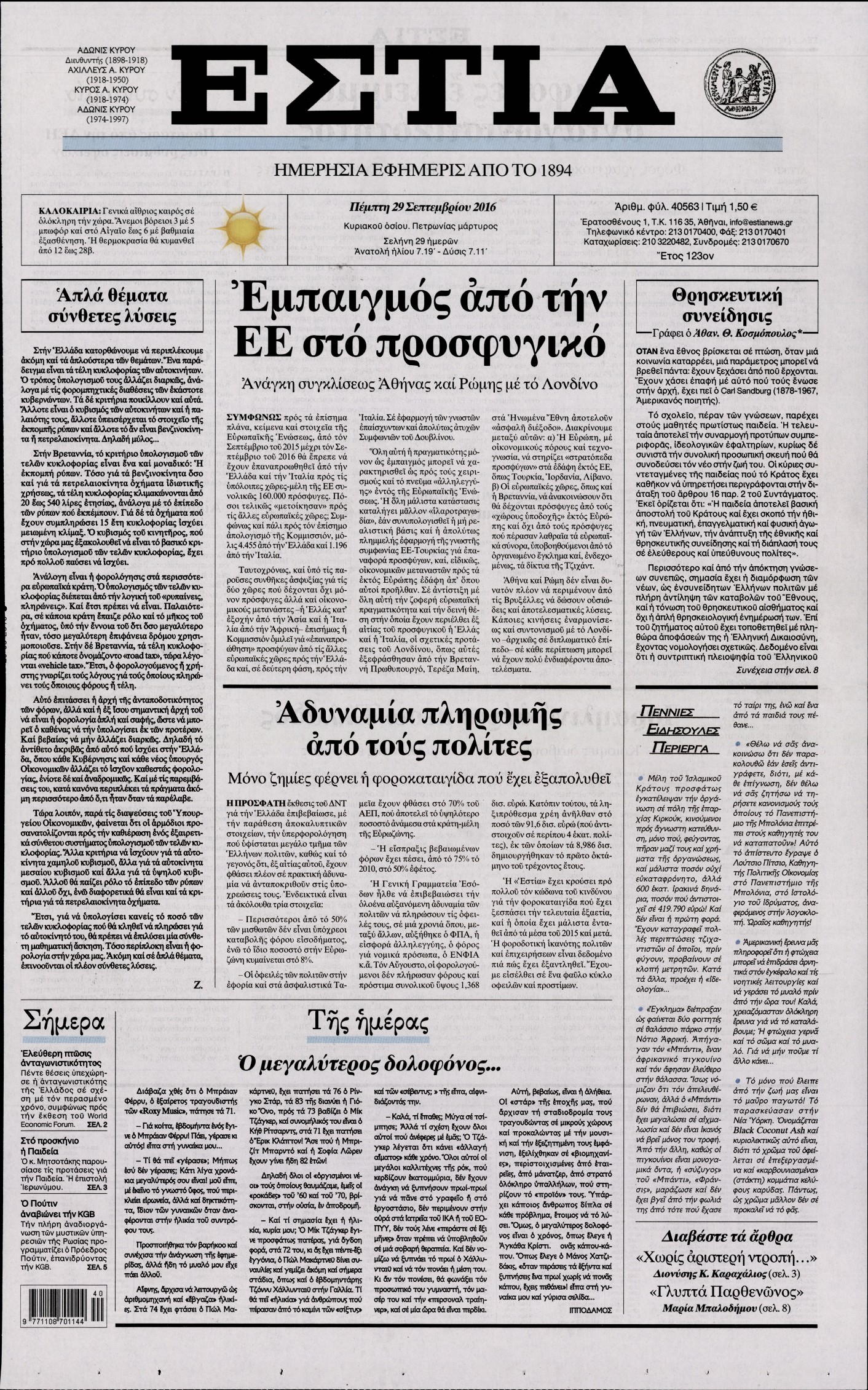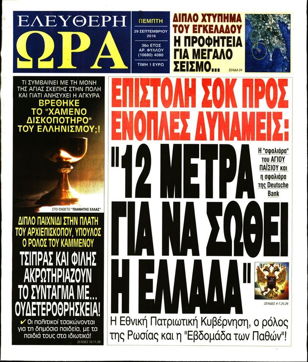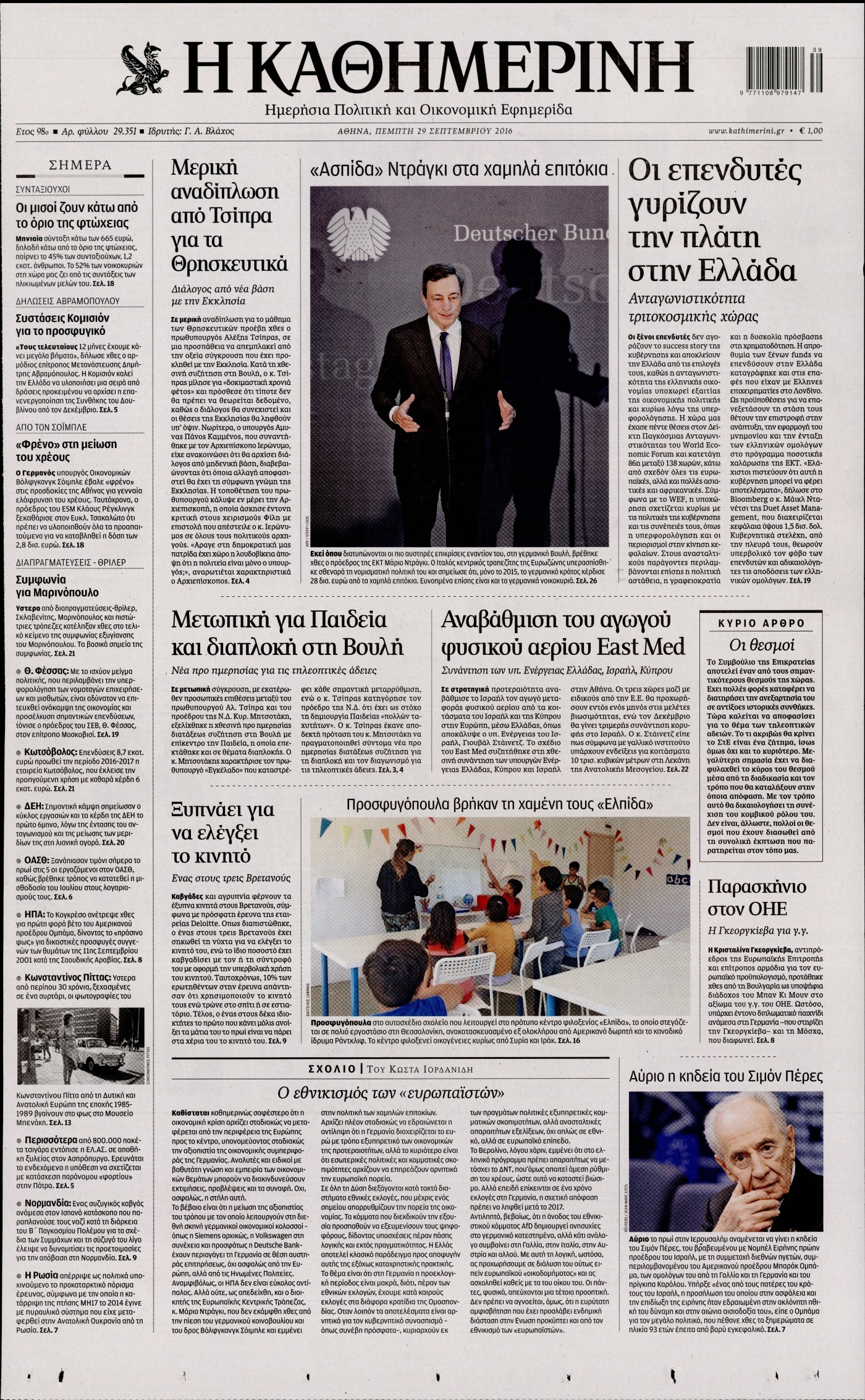 Oι πολιτικές εφημερίδες 29/9/2016 Enikos Newsroom 04:52, Πέμπτη 29 Σεπτεμβρίου 2016 Media Διαβάστε τα σημερινά πρωτοσέλιδα των πολιτικών εφημερίδων: ΠΟΛΙΤΙΚΕΣ ΕΦΗΜΕΡΙΔΕΣ ΠΡΩΤΟΣΕΛΙΔΑ Μοιράσου το: σχολίασε κι εσύ (0 σχόλια) Ακολουθήστε το enikos.gr στο Google News και μάθετε πρώτοι όλες τις ειδήσεις Δείτε όλες τις τελευταίες ειδήσεις από την Ελλάδα και τον Κόσμο στο enikos.gr Ειδήσεις Ροή Ειδήσεων 6 ώρες πριν Εκτός ευρωομάδας ΣΥΡΙΖΑ ο Νίκος Παππάς μετά την επίθεση στον δημοσιογράφο Νίκο Γιαννόπουλο – Η μήνυση και οι νέες δηλώσεις 6 ώρες πριν «Αγριεύουν» οι αγρότες: «Δεν συντρέχει λόγος συνάντησης με τον πρωθυπουργό» – Ώρα αποφάσεων στη σύσκεψη της Πέμπτης 6 ώρες πριν Κυψέλη: Χωρίς την οικογένειά της δίπλα της απολογήθηκε η 16χρονη – «Της είχε επιτεθεί κάποιος για να την βιάσει, φοβήθηκε και κυκλοφορούσε με μαχαίρι» 5 ώρες πριν Politico: Το πρόβλημα της Ευρώπης δεν είναι το Βέλγιο αλλά ο Ντόναλντ Τραμπ 7 ώρες πριν Αλεξανδρούπολη: Πολυοργανική ανεπάρκεια λόγω υποσιτισμού η αιτία θανάτου του 3χρονου αγοριού 6 ώρες πριν Μυστήριο με τεράστιες κυκλικές πέτρες 200 κιλών – Ανακαλύφθηκαν τυχαία κατά τη διάρκεια οδικών έργων και κανείς δεν ξέρει από πού προέρχονται 7 ώρες πριν Ύπνος: Ειδικός εξηγεί τον πραγματικό λόγο που ξυπνάτε στις 4 τα ξημερώματα – Ο ρόλος των ορμονών και του κιρκάδιου ρυθμού 8 ώρες πριν Αριθμολογία: Οι άνθρωποι που έχουν γεννηθεί αυτές τις 4 ημερομηνίες, είναι τρυφεροί και αγαπούν ανιδιοτελώς 19 ώρες πριν 20 χρόνια τα Χριστούγεννα ξεκινούν στα Public με μεγάλη ποικιλία σε δώρα! 15 λεπτά πριν Κτηνοτρόφοι: Με δάκρυα στα μάτια ζουν τον εφιάλτη των άδειων στάβλων – «Καταστράφηκαν οι ζωές μας» 30 λεπτά πριν Νέο αμερικανικό πλήγμα σε σκάφος που φέρεται να μετέφερε ναρκωτικά στον Ειρηνικό – Τέσσερις νεκροί 45 λεπτά πριν Αλ Τσαντίρι Νιουζ: «Λύγισε» ο Δημήτρης Λάλος για τον Δημήτρη Ήμελλο – «Τον μνημονεύω, να ‘ναι καλά εκεί που είναι» 1 ώρα πριν GNTM: Με δάκρυα τον αποχαιρέτησε η Ηλιάνα Παπαγεωργίου πριν από τον ημιτελικό – «Αισθάνομαι πολύ παράξενα» 1 ώρα πριν Αμερικανικά στρατεύματα στον Ισημερινό για «προσωρινή» επιχείρηση κατά των ναρκωτικών ENIKOS NETWORK Αϋπνία: Το κόλπο που θα σας βοηθήσει να κοιμηθείτε απόψε – Είναι απλό και έχει αποτέλεσμα 2,6 εκατομμύρια πολίτες έχουν ήδη εμβολιαστεί κατά της γρίπης ΕΛΣΤΑΤ: Τι δείχνουν τα νέα στοιχεία για τις ηλεκτρονικές παραγγελίες των επιχειρήσεων ΚΕΠΕ: Οι 3 διακριτές συμβολές των ΜμΕ και της μεταποίησης στην ελληνική οικονομία Χαρτογραφώντας το «σημείο χωρίς επιστροφή»: Για πρώτη φορά αποκαλύπτεται με λεπτομέρεια το ακανθώδες όριο της ατμόσφαιρας τ... Η Google καταργεί τη λειτουργία «dark web report» – Πώς θα μπορούν οι χρήστες να διαγράφουν τα δεδομένα τους περισσότερα 02:30 , Πέμπτη 18 Δεκεμβρίου 2025 Αλ Τσαντίρι Νιουζ: Η κόρη της Πάολα στο κοινό – Η ατάκα Λαζόπουλου που την έκανε να «κοκκινήσει» Γιορτινή διάθεση και ευχάριστες στιγμές γέμισε η αποψινή, τελευταία για το 2025, εκπομπή του «... 22:24 , Τετάρτη 17 Δεκεμβρίου 2025 Το Σπίτι Δίπλα Στο Ποτάμι: Σε κίνδυνο η υγεία του Απόστολου – Τι θα δούμε απόψε “Το Σπίτι Δίπλα στο Ποτάμι” ξετυλίγει το νήμα της ζωής των πέντε αδελφών με καταισ... 21:14 , Τετάρτη 17 Δεκεμβρίου 2025 Παιχνίδια Εκδίκησης: Θα καταφέρει ο Χρήστος να κλονίσει την εμπιστοσύνη της Μάγιας απέναντι στον Άγη; Τα «Παιχνίδια Εκδίκησης» έρχονται απόψε στις 22:30, στον Αντ1, με το τελευταίο επεισόδιο της χ... 20:57 , Τετάρτη 17 Δεκεμβρίου 2025 Άγιος Έρωτας: Η Χλόη κα