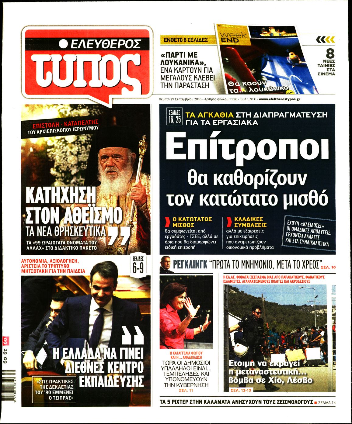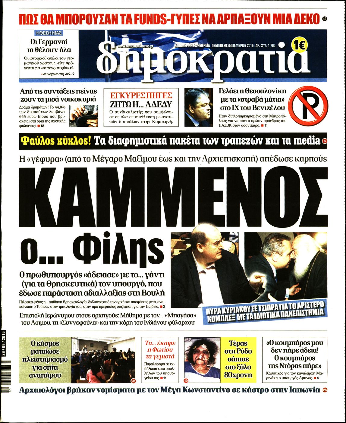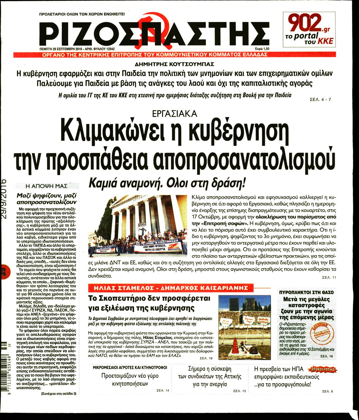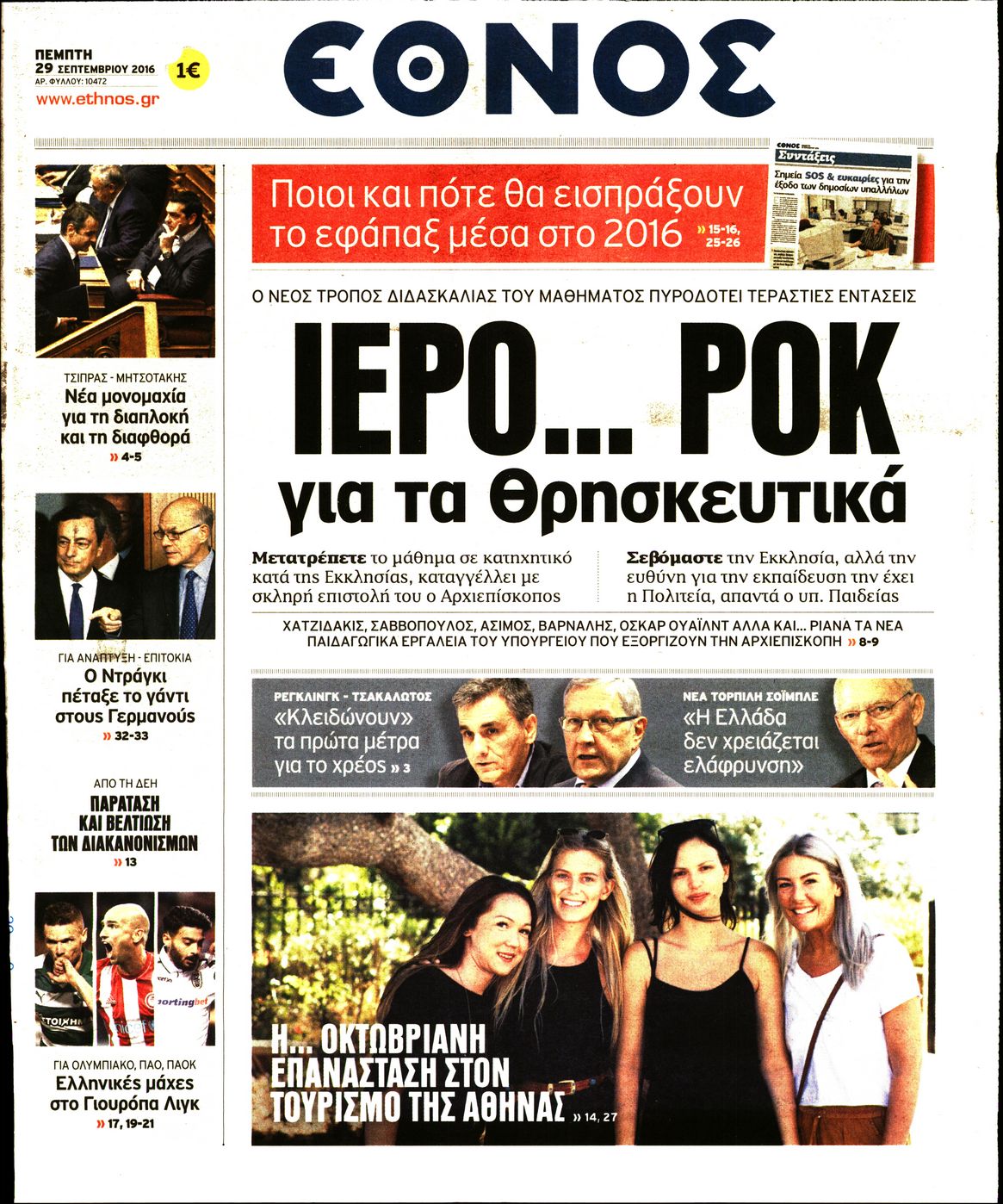 Oι πολιτικές εφημερίδες 29/9/2016 Enikos Newsroom 04:52, Πέμπτη 29 Σεπτεμβρίου 2016 Media Διαβάστε τα σημερινά πρωτοσέλιδα των πολιτικών εφημερίδων: ΠΟΛΙΤΙΚΕΣ ΕΦΗΜΕΡΙΔΕΣ ΠΡΩΤΟΣΕΛΙΔΑ Μοιράσου το: σχολίασε κι εσύ (0 σχόλια) Ακολουθήστε το enikos.gr στο Google News και μάθετε πρώτοι όλες τις ειδήσεις Δείτε όλες τις τελευταίες ειδήσεις από την Ελλάδα και τον Κόσμο στο enikos.gr Ειδήσεις Ροή Ειδήσεων 6 ώρες πριν Εκτός ευρωομάδας ΣΥΡΙΖΑ ο Νίκος Παππάς μετά την επίθεση στον δημοσιογράφο Νίκο Γιαννόπουλο – Η μήνυση και οι νέες δηλώσεις 6 ώρες πριν «Αγριεύουν» οι αγρότες: «Δεν συντρέχει λόγος συνάντησης με τον πρωθυπουργό» – Ώρα αποφάσεων στη σύσκεψη της Πέμπτης 6 ώρες πριν Κυψέλη: Χωρίς την οικογένειά της δίπλα της απολογήθηκε η 16χρονη – «Της είχε επιτεθεί κάποιος για να την βιάσει, φοβήθηκε και κυκλοφορούσε με μαχαίρι» 5 ώρες πριν Politico: Το πρόβλημα της Ευρώπης δεν είναι το Βέλγιο αλλά ο Ντόναλντ Τραμπ 7 ώρες πριν Αλεξανδρούπολη: Πολυοργανική ανεπάρκεια λόγω υποσιτισμού η αιτία θανάτου του 3χρονου αγοριού 6 ώρες πριν Μυστήριο με τεράστιες κυκλικές πέτρες 200 κιλών – Ανακαλύφθηκαν τυχαία κατά τη διάρκεια οδικών έργων και κανείς δεν ξέρει από πού προέρχονται 7 ώρες πριν Ύπνος: Ειδικός εξηγεί τον πραγματικό λόγο που ξυπνάτε στις 4 τα ξημερώματα – Ο ρόλος των ορμονών και του κιρκάδιου ρυθμού 8 ώρες πριν Αριθμολογία: Οι άνθρωποι που έχουν γεννηθεί αυτές τις 4 ημερομηνίες, είναι τρυφεροί και αγαπούν ανιδιοτελώς 19 ώρες πριν 20 χρόνια τα Χριστούγεννα ξεκινούν στα Public με μεγάλη ποικιλία σε δώρα! 15 λεπτά πριν Κτηνοτρόφοι: Με δάκρυα στα μάτια ζουν τον εφιάλτη των άδειων στάβλων – «Καταστράφηκαν οι ζωές μας» 30 λεπτά πριν Νέο αμερικανικό πλήγμα σε σκάφος που φέρεται να μετέφερε ναρκωτικά στον Ειρηνικό – Τέσσερις νεκροί 45 λεπτά πριν Αλ Τσαντίρι Νιουζ: «Λύγισε» ο Δημήτρης Λάλος για τον Δημήτρη Ήμελλο – «Τον μνημονεύω, να ‘ναι καλά εκεί που είναι» 1 ώρα πριν GNTM: Με δάκρυα τον αποχαιρέτησε η Ηλιάνα Παπαγεωργίου πριν από τον ημιτελικό – «Αισθάνομαι πολύ παράξενα» 1 ώρα πριν Αμερικανικά στρατεύματα στον Ισημερινό για «προσωρινή» επιχείρηση κατά των ναρκωτικών ENIKOS NETWORK Αϋπνία: Το κόλπο που θα σας βοηθήσει να κοιμηθείτε απόψε – Είναι απλό και έχει αποτέλεσμα 2,6 εκατομμύρια πολίτες έχουν ήδη εμβολιαστεί κατά της γρίπης ΕΛΣΤΑΤ: Τι δείχνουν τα νέα στοιχεία για τις ηλεκτρονικές παραγγελίες των επιχειρήσεων ΚΕΠΕ: Οι 3 διακριτές συμβολές των ΜμΕ και της μεταποίησης στην ελληνική οικονομία Χαρτογραφώντας το «σημείο χωρίς επιστροφή»: Για πρώτη φορά αποκαλύπτεται με λεπτομέρεια το ακανθώδες όριο της ατμόσφαιρας τ... Η Google καταργεί τη λειτουργία «dark web report» – Πώς θα μπορούν οι χρήστες να διαγράφουν τα δεδομένα τους περισσότερα 02:30 , Πέμπτη 18 Δεκεμβρίου 2025 Αλ Τσαντίρι Νιουζ: Η κόρη της Πάολα στο κοινό – Η ατάκα Λαζόπουλου που την έκανε να «κοκκινήσει» Γιορτινή διάθεση και ευχάριστες στιγμές γέμισε η αποψινή, τελευταία για το 2025, εκπομπή του «... 22:24 , Τετάρτη 17 Δεκεμβρίου 2025 Το Σπίτι Δίπλα Στο Ποτάμι: Σε κίνδυνο η υγεία του Απόστολου – Τι θα δούμε απόψε “Το Σπίτι Δίπλα στο Ποτάμι” ξετυλίγει το νήμα της ζωής των πέντε αδελφών με καταισ... 21:14 , Τετάρτη 17 Δεκεμβρίου 2025 Παιχνίδια Εκδίκησης: Θα καταφέρει ο Χρήστος να κλονίσει την εμπιστοσύνη της Μάγιας απέναντι στον Άγη; Τα «Παιχνίδια Εκδίκησης» έρχονται απόψε στις 22:30, στον Αντ1, με το τελευταίο επεισόδιο της χ... 20:57 , Τετάρτη 17 Δεκεμβρίου 2025 Άγιος Έρωτας: Η Χλόη κα
