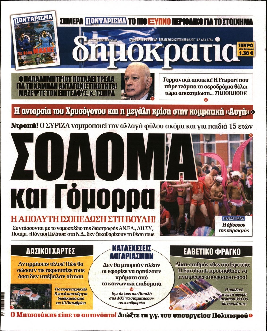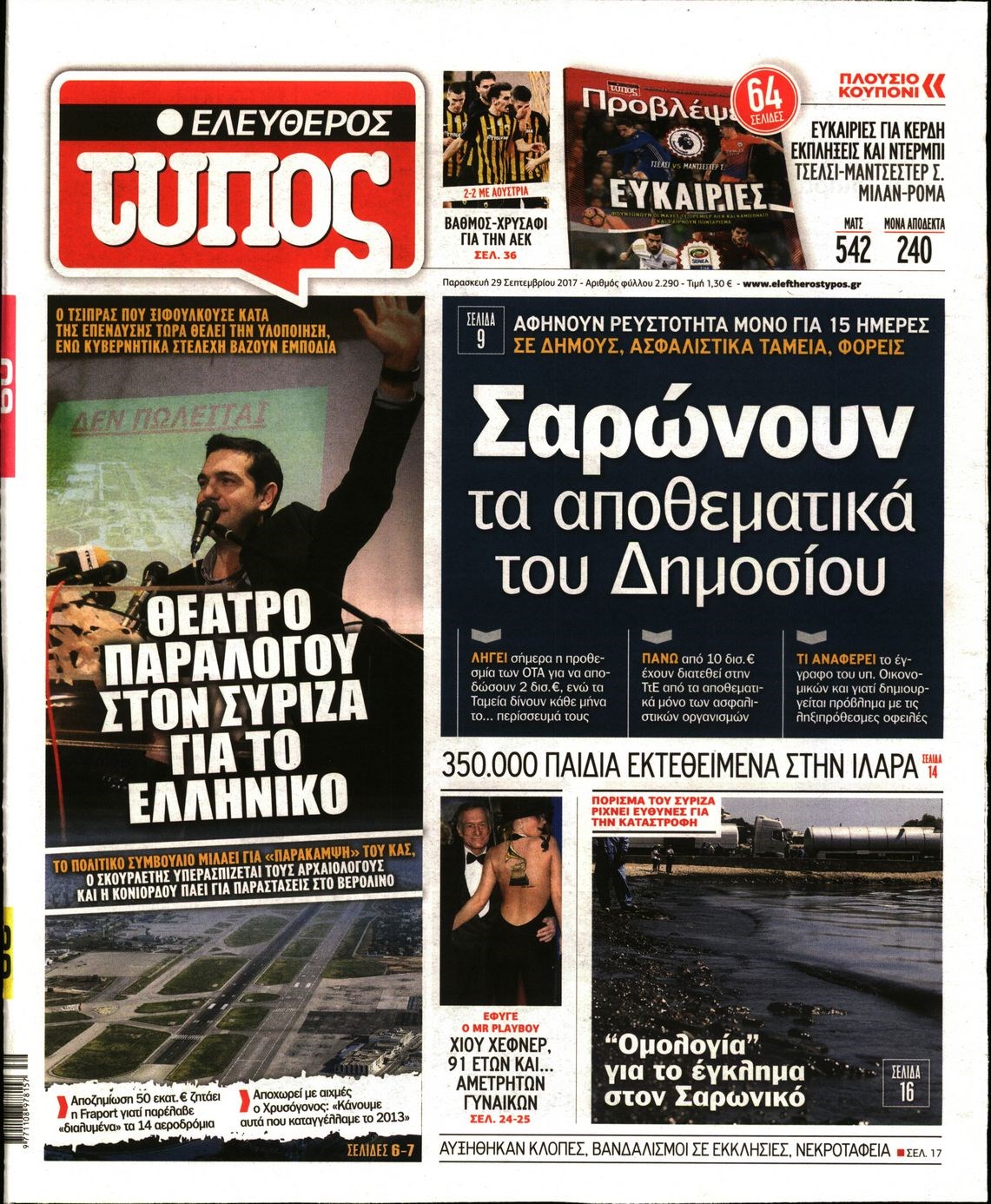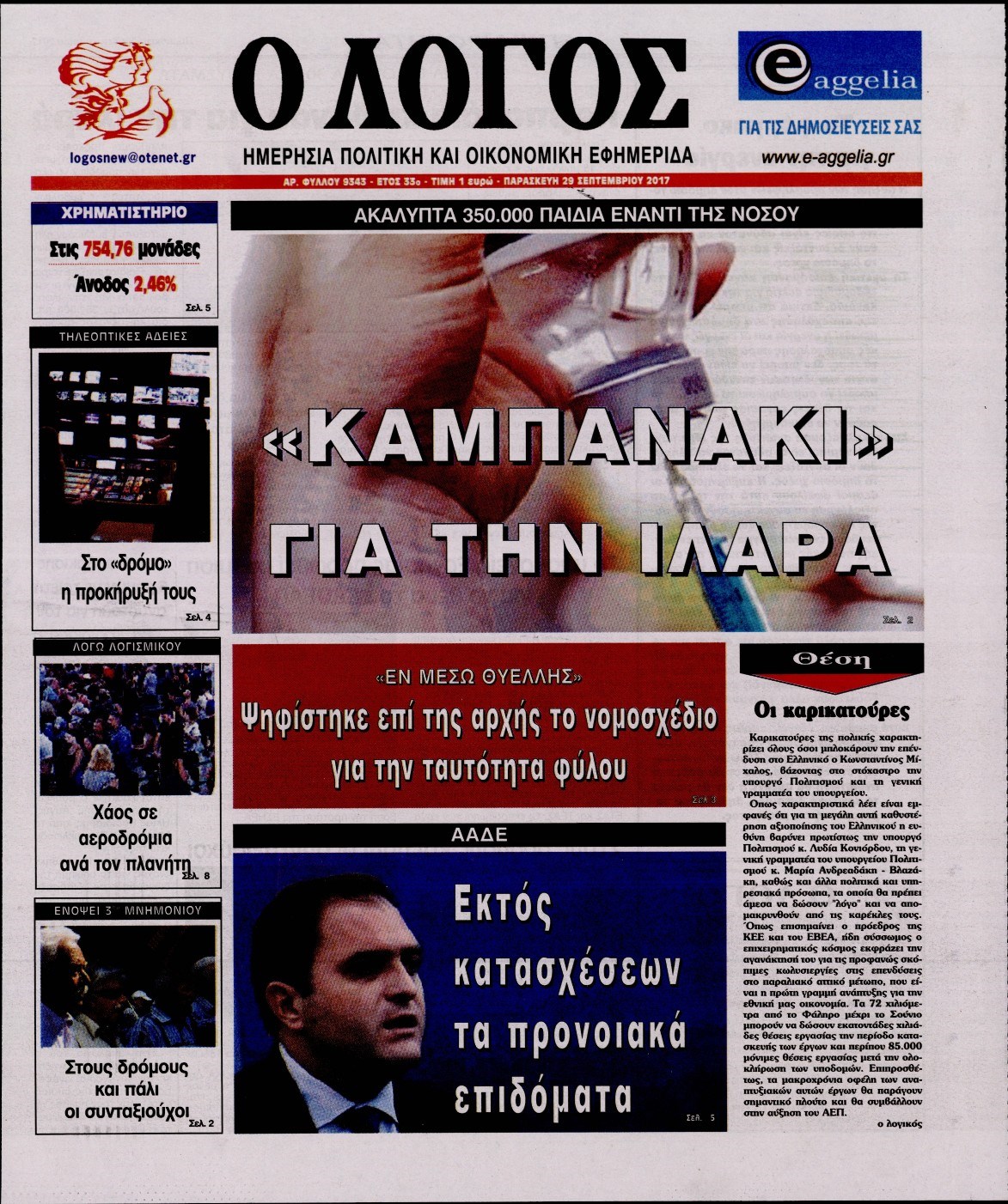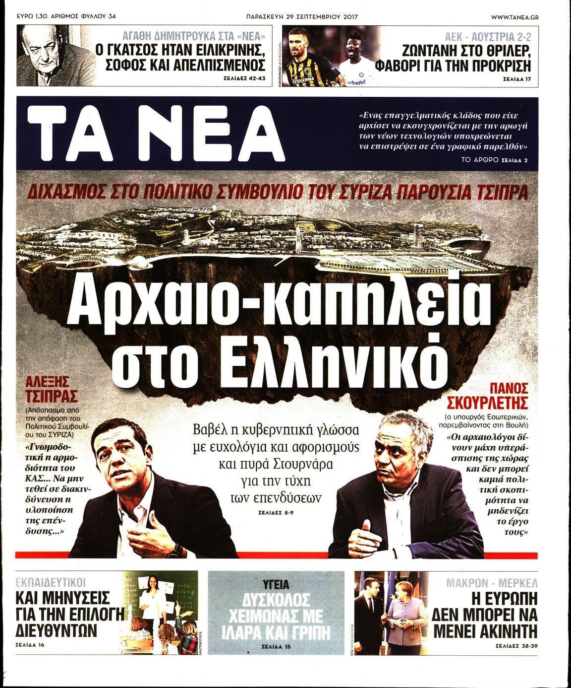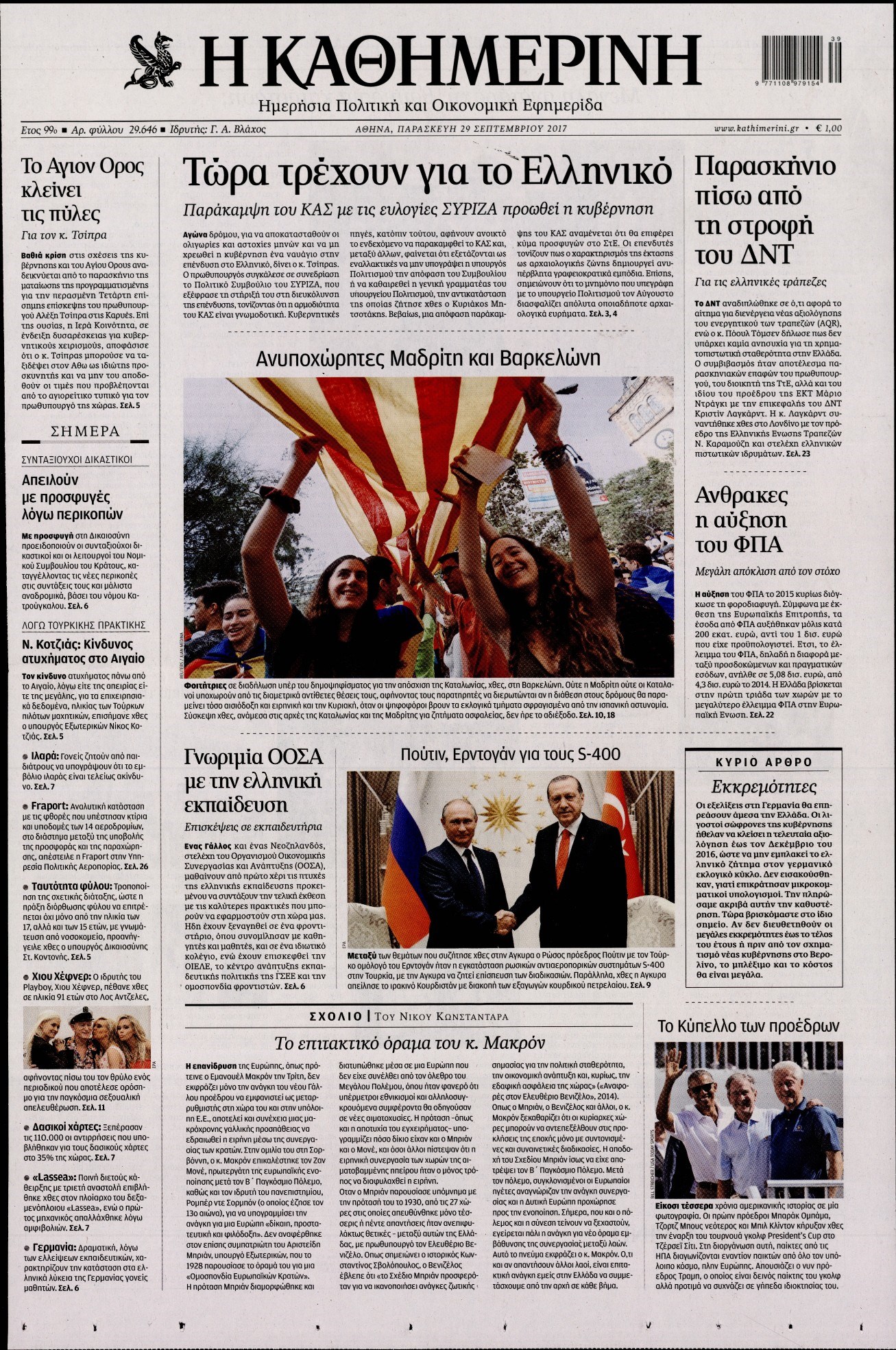 Οι πολιτικές εφημερίδες 29/9/2017 Enikos Newsroom 07:50, Παρασκευή 29 Σεπτεμβρίου 2017 Media Διαβάστε τα σημερινά πρωτοσέλιδα των πολιτικών εφημερίδων: ΠΟΛΙΤΙΚΕΣ ΕΦΗΜΕΡΙΔΕΣ ΠΡΩΤΟΣΕΛΙΔΑ Μοιράσου το: σχολίασε κι εσύ (0 σχόλια) Ακολουθήστε το enikos.gr στο Google News και μάθετε πρώτοι όλες τις ειδήσεις Δείτε όλες τις τελευταίες ειδήσεις από την Ελλάδα και τον Κόσμο στο enikos.gr Ειδήσεις Ροή Ειδήσεων 38 λεπτά πριν Μεσόγειος: Η διαδρομή του ρωσικού τάνκερ «Qendil» και η στοχευμένη επίθεση της Ουκρανίας με drone – Ο Πούτιν προειδοποίησε για αντίποινα 32 λεπτά πριν Αττική: Θρίλερ με νεκρό βρέφος 5 μηνών – Κοιμόταν στο ίδιο κρεβάτι με τους γονείς του 1 ώρα πριν Από το Ορμένιο ως τα Μάλγαρα κι από τη Σιάτιστα μέχρι τη Νίκαια: Μπλόκα σε όλη την Ελλάδα – Το Σάββατο ανοίγουν τα διόδια οι αγρότες 2 ώρες πριν «Έλληνας Εσκομπάρ»: Φωτογραφίες με τους 4 τόνους κοκαΐνης που κατασχέθηκαν από το σκάφος «Ουρανία» 3 ώρες πριν Πούτιν: Σαρκαστικά μηνύματα, παράπονα και απρόοπτα στη συνέντευξη Τύπου – Η πρόταση γάμου on air και οι ερωτήσεις για τα αγγούρια και τους… εξωγήινους 3 ώρες πριν Τα 5 ζώδια που ευνοούνται στην ερωτική ζωή τους την επόμενη εβδομάδα – «Η ενέργεια του Αιγόκερου φέρνει αγάπη και σταθερότητα» 7 ώρες πριν Ειδικός μοιράζεται 6 κόλπα για να διατηρείστε σε φόρμα με πάνω από 40 ώρες εργασίας την εβδομάδα: «Προπονηθείτε πριν από τη δουλειά, όχι μετά» 4 ώρες πριν Αυτό το έξυπνο μαθηματικό κόλπο θα μπορούσε να αλλάξει τον τρόπο με τον οποίο οι επιστήμονες μελετούν τους σεισμούς 1 ώρα πριν Κουίζ για την παλιά Αθήνα: Αναγνωρίζετε την περιοχή; Έχετε περάσει 100% από εκεί 7 λεπτά πριν Επίσημη η «βόμβα»: Ο ΠΑΟΚ ανακοίνωσε την απόκτηση του Πάτρικ Μπέβερλι 11 λεπτά πριν Θεσσαλονίκη: Πατέρας εγκαλεί τον Ιατρικό Σύλλογο για ποινές «χάδι» σε γιατρό που κατηγορείται για τον θάνατο του παιδιού του 17 λεπτά πριν Κερατσίνι: Αστυνομικός εκτός υπηρεσίας απέτρεψε κλοπή μηχανών – Συνελήφθησαν τρεις ανήλικοι 21 λεπτά πριν Το σόι σου: Ο Άρης έρχεται στην Ελλάδα για τις γιορτές των Χριστουγέννων – Τι θα δούμε στο αποψινό εορταστικό επεισόδιο 28 λεπτά πριν ΠΑΣΟΚ σε Μαρινάκη: Δεν νομιμοποιούμε πολιτικές επιλογές που μεταφέρουν το πρόβλημα από υπηρεσία σε υπηρεσία ENIKOS NETWORK «Η σούπερ» γρίπη εξαπλώνεται στην Ευρώπη-Στοιχεία για την αποτελεσματικότητα του εμβολίου από το ECDC ΕΛΣΤΑΤ: Αύξηση κατά 1,7% των επαγγελματιών υγείας το 2024 Η απάντηση της κυβέρνησης στα αιτήματα των αγροτών: 16 έχουν ικανοποιηθεί, 4 βρίσκονται υπό επεξεργασία και 7 δεν είναι εφι... Μισθολογική διαφάνεια: Το 68% των εργαζομένων αγνοεί τη νέα οδηγία – Αναλυτικά τα στοιχεία έρευνας Χαρτογραφώντας το «σημείο χωρίς επιστροφή»: Για πρώτη φορά αποκαλύπτεται με λεπτομέρεια το ακανθώδες όριο της ατμόσφαιρας τ... Η Google καταργεί τη λειτουργία «dark web report» – Πώς θα μπορούν οι χρήστες να διαγράφουν τα δεδομένα τους περισσότερα 18:11 , Παρασκευή 19 Δεκεμβρίου 2025 Το σόι σου: Ο Άρης έρχεται στην Ελλάδα για τις γιορτές των Χριστουγέννων – Τι θα δούμε στο αποψινό εορταστικό επεισόδιο Ένα απολαυστικό, εορταστικό επεισόδιο της σειράς “Το σόι σου”, γεμάτο ευτράπελα αλ... 15:15 , Παρασκευή 19 Δεκεμβρίου 2025 Την Κυριακή με τη Realnews: Ό,τι και αν αγοράσεις, σκανάρεις και κερδίζεις! Την Κυριακή με τη Realnews: Ό,τι και αν αγοράσεις, σκανάρεις και κερδίζεις! Με το PADU app, το... 08:00 , Παρασκευή 19 Δεκεμβρίου 2025 Την Κυριακή με τη Realnews: Δωροεπιταγή 10€ Δωροεπιταγή αξίας 10€ για αγορές άνω των 60€ από τα πολυκ
