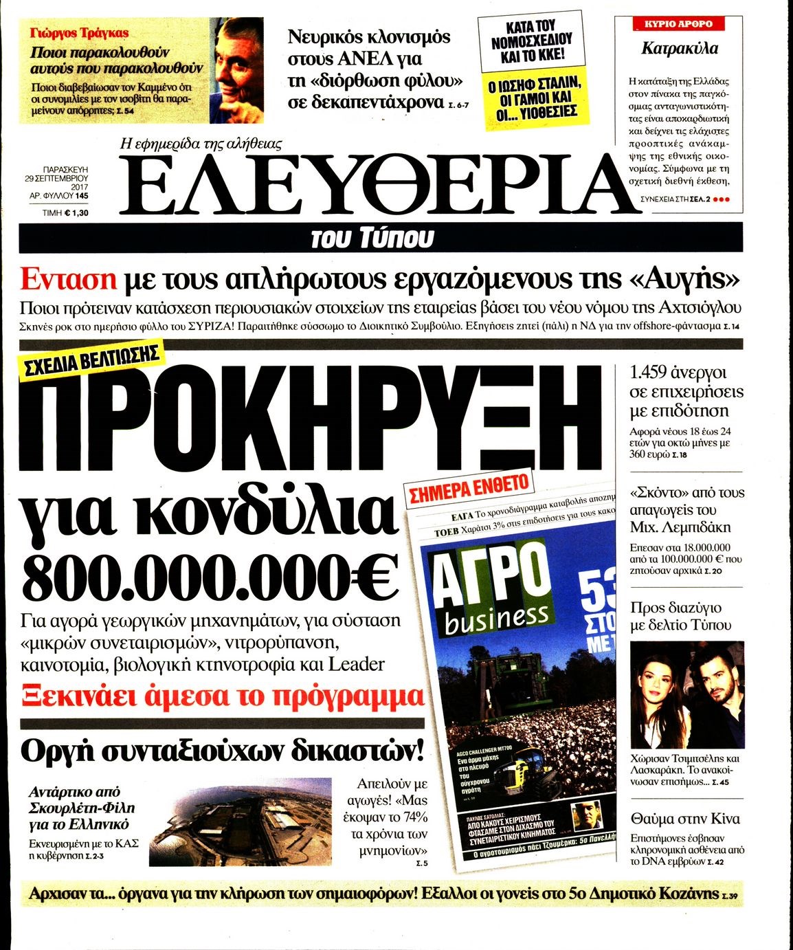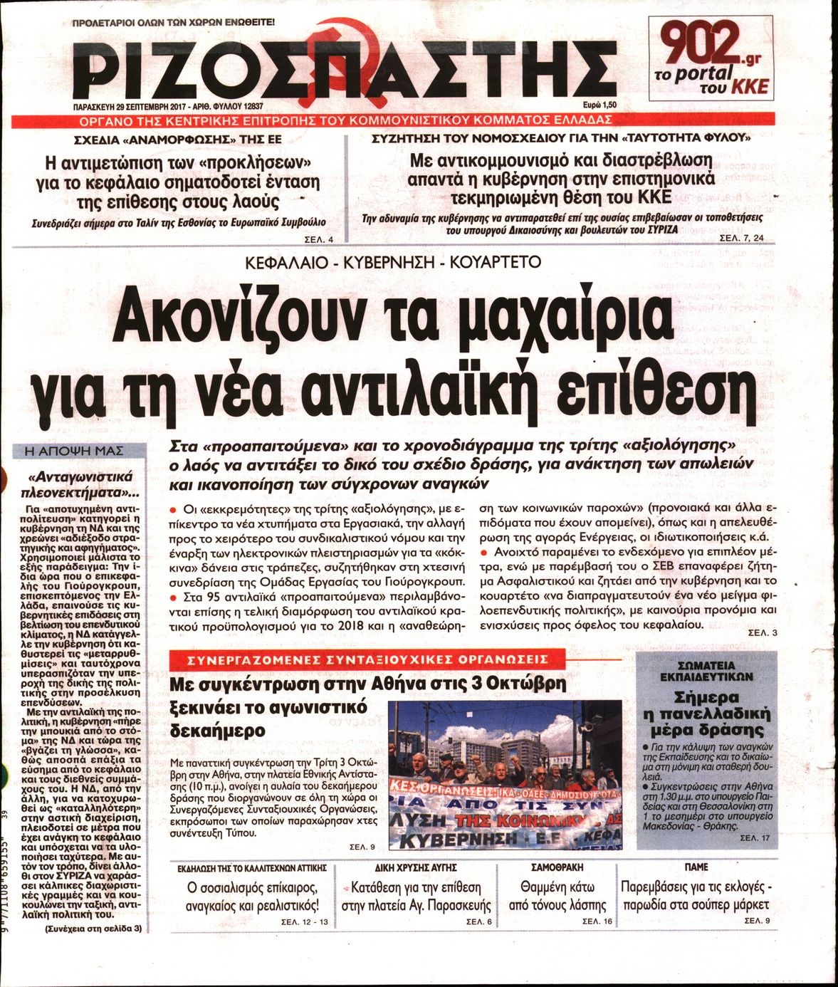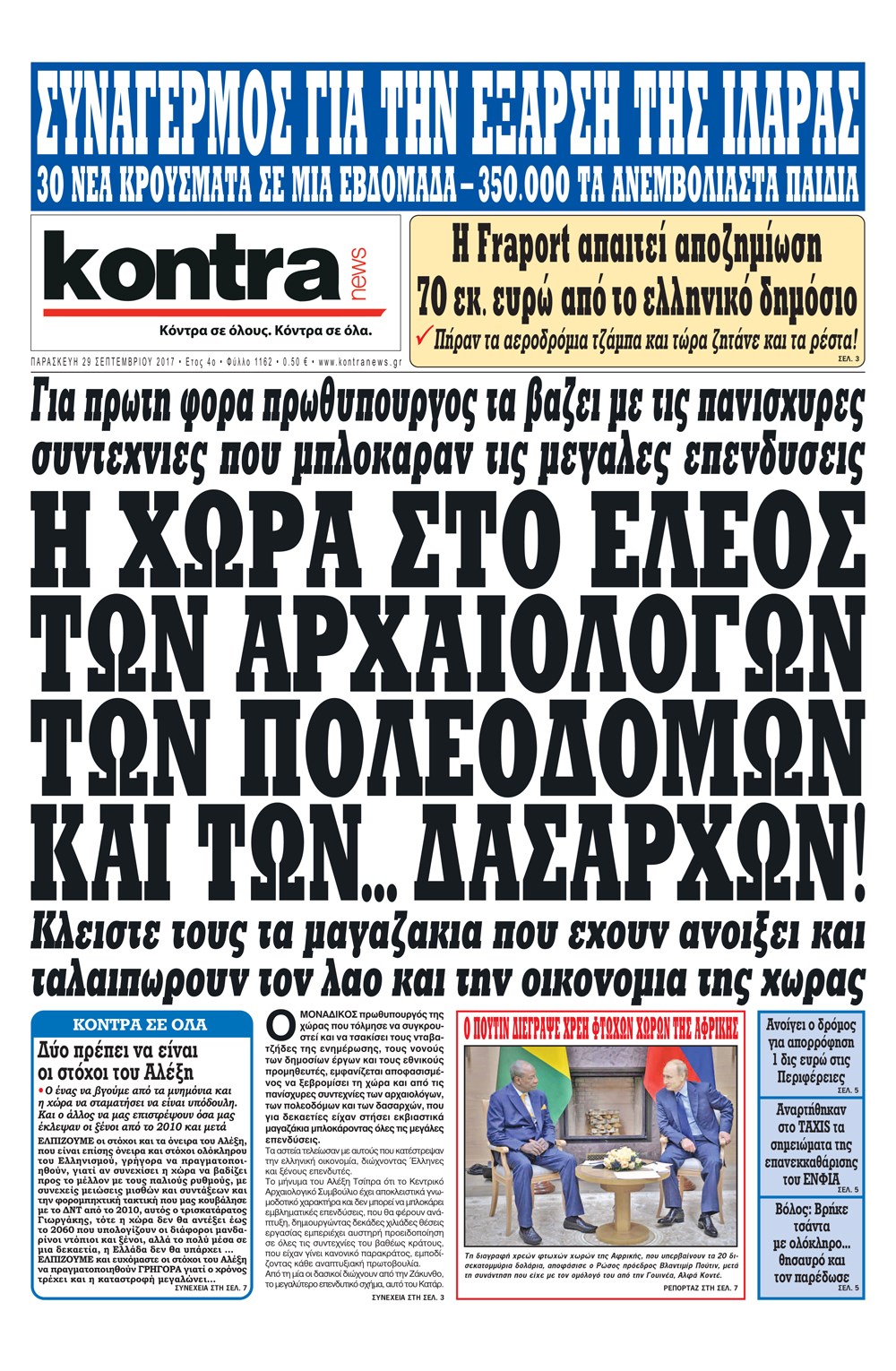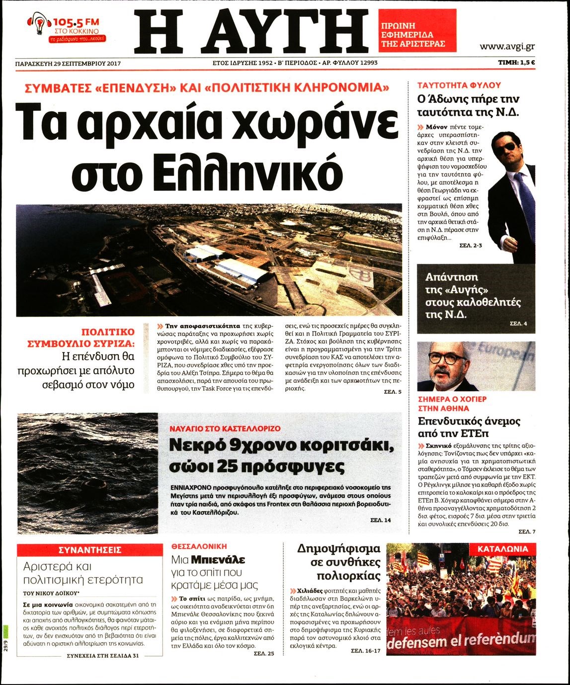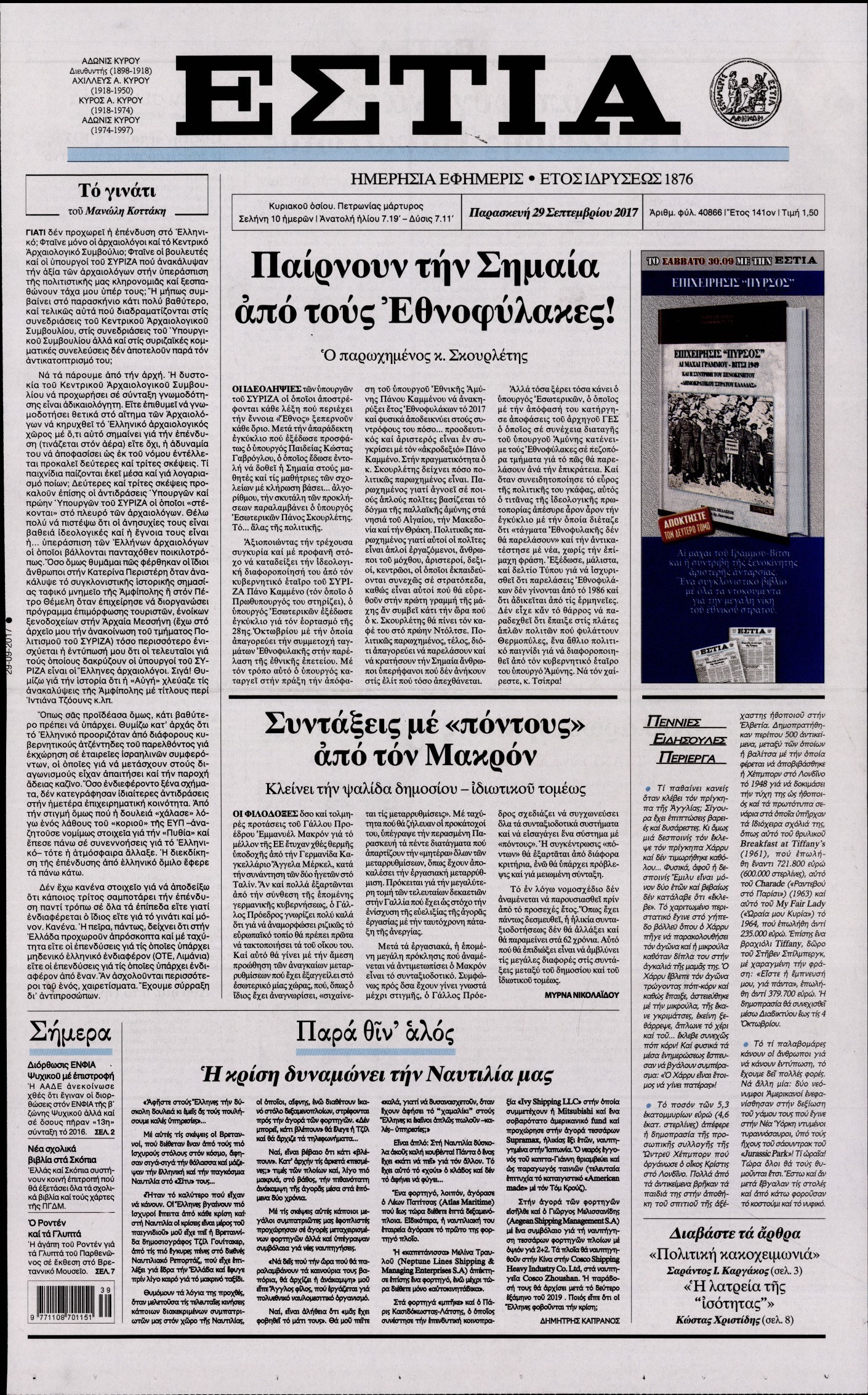 Οι πολιτικές εφημερίδες 29/9/2017 Enikos Newsroom 07:50, Παρασκευή 29 Σεπτεμβρίου 2017 Media Διαβάστε τα σημερινά πρωτοσέλιδα των πολιτικών εφημερίδων: ΠΟΛΙΤΙΚΕΣ ΕΦΗΜΕΡΙΔΕΣ ΠΡΩΤΟΣΕΛΙΔΑ Μοιράσου το: σχολίασε κι εσύ (0 σχόλια) Ακολουθήστε το enikos.gr στο Google News και μάθετε πρώτοι όλες τις ειδήσεις Δείτε όλες τις τελευταίες ειδήσεις από την Ελλάδα και τον Κόσμο στο enikos.gr Ειδήσεις Ροή Ειδήσεων 38 λεπτά πριν Μεσόγειος: Η διαδρομή του ρωσικού τάνκερ «Qendil» και η στοχευμένη επίθεση της Ουκρανίας με drone – Ο Πούτιν προειδοποίησε για αντίποινα 32 λεπτά πριν Αττική: Θρίλερ με νεκρό βρέφος 5 μηνών – Κοιμόταν στο ίδιο κρεβάτι με τους γονείς του 1 ώρα πριν Από το Ορμένιο ως τα Μάλγαρα κι από τη Σιάτιστα μέχρι τη Νίκαια: Μπλόκα σε όλη την Ελλάδα – Το Σάββατο ανοίγουν τα διόδια οι αγρότες 2 ώρες πριν «Έλληνας Εσκομπάρ»: Φωτογραφίες με τους 4 τόνους κοκαΐνης που κατασχέθηκαν από το σκάφος «Ουρανία» 3 ώρες πριν Πούτιν: Σαρκαστικά μηνύματα, παράπονα και απρόοπτα στη συνέντευξη Τύπου – Η πρόταση γάμου on air και οι ερωτήσεις για τα αγγούρια και τους… εξωγήινους 3 ώρες πριν Τα 5 ζώδια που ευνοούνται στην ερωτική ζωή τους την επόμενη εβδομάδα – «Η ενέργεια του Αιγόκερου φέρνει αγάπη και σταθερότητα» 7 ώρες πριν Ειδικός μοιράζεται 6 κόλπα για να διατηρείστε σε φόρμα με πάνω από 40 ώρες εργασίας την εβδομάδα: «Προπονηθείτε πριν από τη δουλειά, όχι μετά» 4 ώρες πριν Αυτό το έξυπνο μαθηματικό κόλπο θα μπορούσε να αλλάξει τον τρόπο με τον οποίο οι επιστήμονες μελετούν τους σεισμούς 1 ώρα πριν Κουίζ για την παλιά Αθήνα: Αναγνωρίζετε την περιοχή; Έχετε περάσει 100% από εκεί 7 λεπτά πριν Επίσημη η «βόμβα»: Ο ΠΑΟΚ ανακοίνωσε την απόκτηση του Πάτρικ Μπέβερλι 11 λεπτά πριν Θεσσαλονίκη: Πατέρας εγκαλεί τον Ιατρικό Σύλλογο για ποινές «χάδι» σε γιατρό που κατηγορείται για τον θάνατο του παιδιού του 17 λεπτά πριν Κερατσίνι: Αστυνομικός εκτός υπηρεσίας απέτρεψε κλοπή μηχανών – Συνελήφθησαν τρεις ανήλικοι 21 λεπτά πριν Το σόι σου: Ο Άρης έρχεται στην Ελλάδα για τις γιορτές των Χριστουγέννων – Τι θα δούμε στο αποψινό εορταστικό επεισόδιο 28 λεπτά πριν ΠΑΣΟΚ σε Μαρινάκη: Δεν νομιμοποιούμε πολιτικές επιλογές που μεταφέρουν το πρόβλημα από υπηρεσία σε υπηρεσία ENIKOS NETWORK «Η σούπερ» γρίπη εξαπλώνεται στην Ευρώπη-Στοιχεία για την αποτελεσματικότητα του εμβολίου από το ECDC ΕΛΣΤΑΤ: Αύξηση κατά 1,7% των επαγγελματιών υγείας το 2024 Η απάντηση της κυβέρνησης στα αιτήματα των αγροτών: 16 έχουν ικανοποιηθεί, 4 βρίσκονται υπό επεξεργασία και 7 δεν είναι εφι... Μισθολογική διαφάνεια: Το 68% των εργαζομένων αγνοεί τη νέα οδηγία – Αναλυτικά τα στοιχεία έρευνας Χαρτογραφώντας το «σημείο χωρίς επιστροφή»: Για πρώτη φορά αποκαλύπτεται με λεπτομέρεια το ακανθώδες όριο της ατμόσφαιρας τ... Η Google καταργεί τη λειτουργία «dark web report» – Πώς θα μπορούν οι χρήστες να διαγράφουν τα δεδομένα τους περισσότερα 18:11 , Παρασκευή 19 Δεκεμβρίου 2025 Το σόι σου: Ο Άρης έρχεται στην Ελλάδα για τις γιορτές των Χριστουγέννων – Τι θα δούμε στο αποψινό εορταστικό επεισόδιο Ένα απολαυστικό, εορταστικό επεισόδιο της σειράς “Το σόι σου”, γεμάτο ευτράπελα αλ... 15:15 , Παρασκευή 19 Δεκεμβρίου 2025 Την Κυριακή με τη Realnews: Ό,τι και αν αγοράσεις, σκανάρεις και κερδίζεις! Την Κυριακή με τη Realnews: Ό,τι και αν αγοράσεις, σκανάρεις και κερδίζεις! Με το PADU app, το... 08:00 , Παρασκευή 19 Δεκεμβρίου 2025 Την Κυριακή με τη Realnews: Δωροεπιταγή 10€ Δωροεπιταγή αξίας 10€ για αγορές άνω των 60€ από τα πολυκ