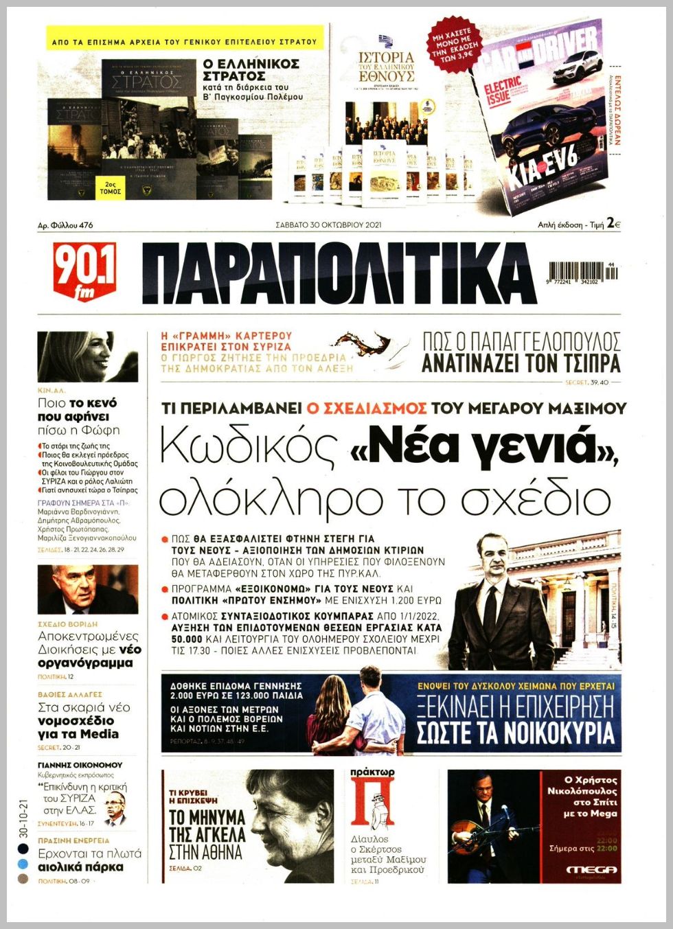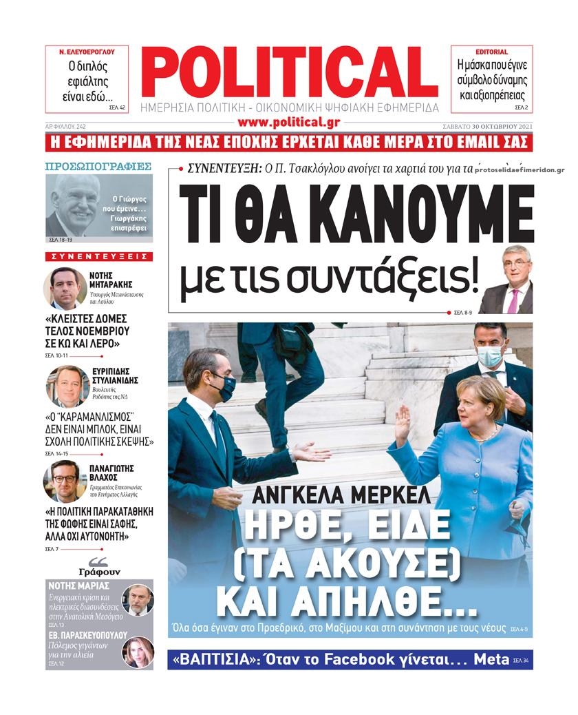 Οι πολιτικές εφημερίδες 30/10/2021 Διονύσης Νίκκας 07:10, Σάββατο 30 Οκτωβρίου 2021 Media Διαβάστε τα πρωτοσέλιδα από τις πολιτικές εφημερίδες… ΕΦΗΜΕΡΙΔΕΣ ΠΟΛΙΤΙΚΕΣ ΕΦΗΜΕΡΙΔΕΣ ΠΡΩΤΟΣΕΛΙΔΑ Μοιράσου το: σχολίασε κι εσύ (0 σχόλια) Ακολουθήστε το enikos.gr στο Google News και μάθετε πρώτοι όλες τις ειδήσεις Δείτε όλες τις τελευταίες ειδήσεις από την Ελλάδα και τον Κόσμο στο enikos.gr Ειδήσεις Ροή Ειδήσεων 4 ώρες πριν Θετικοί οι αγρότες στη νέα πρόσκληση για διάλογο με τον Πρωθυπουργό – Αποφασίζουν την Παρασκευή εάν θα «σπάσουν» τον 48ωρο αποκλεισμό 4 ώρες πριν Πάτρα: Την Παρασκευή οι απολογίες των 4 εμπλεκομένων για τον θανάσιμο ξυλοδαρμό του 30χρονου – Το ξέσπασμα της μητέρας του θύματος και το βίντεο-σοκ 3 ώρες πριν Μινεάπολη: Η εκτέλεση της 37χρονης Ρενέ Γκουντ αποκαλύπτει δύο εντελώς αντίθετες διαχωριστικές γραμμές στην αμερικανική πολιτική 6 ώρες πριν Κύπρος: Πολιτικές αντιδράσεις μετά την διαρροή του βίντεο με «χρηματοδοτήσεις» και «επενδυτές» – Κυβέρνηση: Υβριδική επίθεση με κακόβουλο μοντάζ 39 λεπτά πριν Χρήστος Πολίτης: Το πραγματικό του όνομα, η καριέρα και το… φαινόμενο «Γιάγκος Δράκος» 6 ώρες πριν Αριθμολογία 2026: Οι άτυχοι μήνες της χρονιάς, με βάση την ημερομηνία γέννησής σας 7 ώρες πριν Περιορίστε τη σκόνη στο σπίτι σας με μια απλή και οικονομική λύση – Ο ρόλος της υγρασίας 5 ώρες πριν Ύπνος: Δυσκολεύεστε να κοιμηθείτε; Γιατρός μοιράζεται ένα «μυστικό» συστατικό που βοηθάει στη χαλάρωση 4 ώρες πριν Ανακαλύφθηκε εντυπωσιακός τάφος 1.300 ετών – Τα τεχνουργήματα που περιείχε ρίχνουν φως στη ζωή των ελίτ της δυναστείας Τανγκ 24 λεπτά πριν Συναγερμός στο Πόρτλαντ: Πράκτορες της Υπηρεσίας Μετανάστευσης πυροβόλησαν δύο άτομα 39 λεπτά πριν Χρήστος Πολίτης: Το πραγματικό του όνομα, η καριέρα και το… φαινόμενο «Γιάγκος Δράκος» 54 λεπτά πριν Super Cup Ισπανίας: Στον τελικό με Μπαρτσελόνα η Ρεάλ, που κέρδισε 2-1 την Ατλέτικο – Δείτε τα γκολ 1 ώρα πριν Νέα ισραηλινά πλήγματα στη Λωρίδα της Γάζας: Τουλάχιστον εννέα νεκροί, ανάμεσά τους πέντε παιδιά 1 ώρα πριν Ταραχές στο Ιράν: Στους δρόμους οι πολίτες – Κόπηκε η πρόσβαση στο διαδίκτυο και οι τηλεπικοινωνίες – Δείτε βίντεο ENIKOS NETWORK Γιατί κάποιοι κρεμάνε φύλλα δάφνης στην πόρτα της κρεβατοκάμαρας; Το μυστικό για καλύτερο ύπνο ΠΟΕΔΗΝ: Σήμα κινδύνου εκπέμπει η Πνευμονολογική Κλινική του Νοσοκομείου Άρτας ΣΑΤΑ: 48ωρη απεργία για τις 13 και 14 Ιανουαρίου αποφάσισαν οι αυτοκινητιστές των ταξί στην Αττική ΔΥΠΑ: Αρχίζει η υποβολή προγραμμάτων κατάρτισης για άνεργους δικαιούχους του Ελάχιστου Εγγυημένου Εισοδήματος – Όλες οι λεπ... Ο Google Assistant θα παραμείνει λίγο περισσότερο για ορισμένους χρήστες Android Τεστ προσωπικότητας: Το βάζο που θα επιλέξετε αποκαλύπτει πώς λύνετε προβλήματα στη ζωή σας περισσότερα 18:15 , Πέμπτη 08 Ιανουαρίου 2026 Άγιος Έρωτας: Ο πατήρ Νικόλαος σώζει τη μικρή Ελευθερία και ο Παύλος παθαίνει καρδιακή προσβολή – Καθηλώνουν τα επόμενα επεισόδια Η αγαπημένη δραματική σειρά “Άγιος ‘Ερωτας” επιστρέφει στις οθόνες μας με νέ... 17:43 , Πέμπτη 08 Ιανουαρίου 2026 Οι Αθώοι: Η μουσική της μεγάλης παραγωγής του Mega – Νέο lyrics video Η σειρά εποχής, που έχει ήδη κλέψει τις εντυπώσεις από τις πρώτες κιόλας εικόνες των τρέιλερ π... 17:04 , Πέμπτη 08 Ιανουαρίου 2026 Νέα δυναμική διεθνής επένδυση του Θοδωρή Κυριακού στις ΗΠΑ Ο Πρόεδρος του Ομίλου Antenna, Θοδωρής Κυριακού, συνεχίζει να ενισχύει δυναμικά την παγκόσμια ... 12:40 , Πέμπτη 08 Ιανουαρίου 2026 Ακού