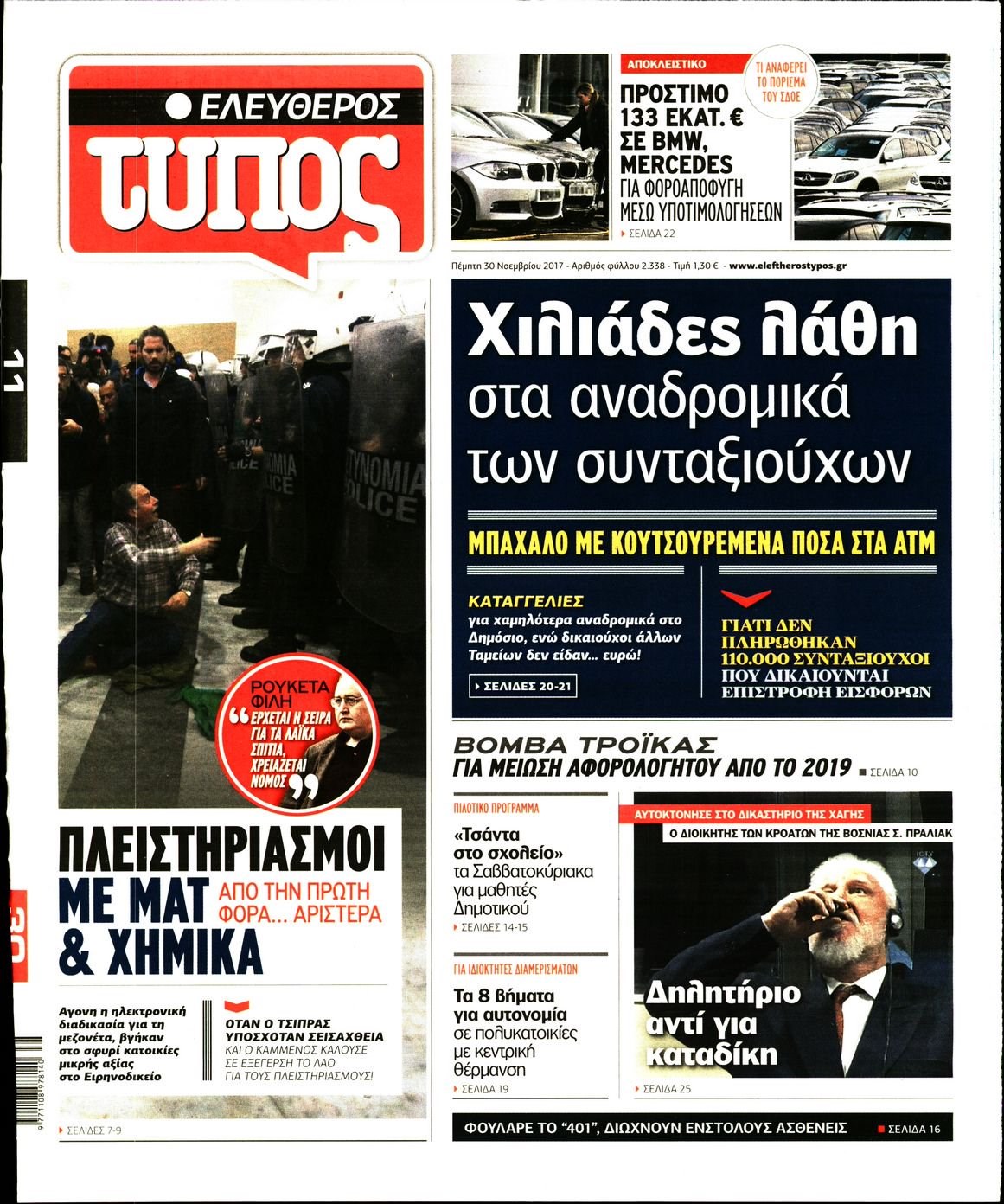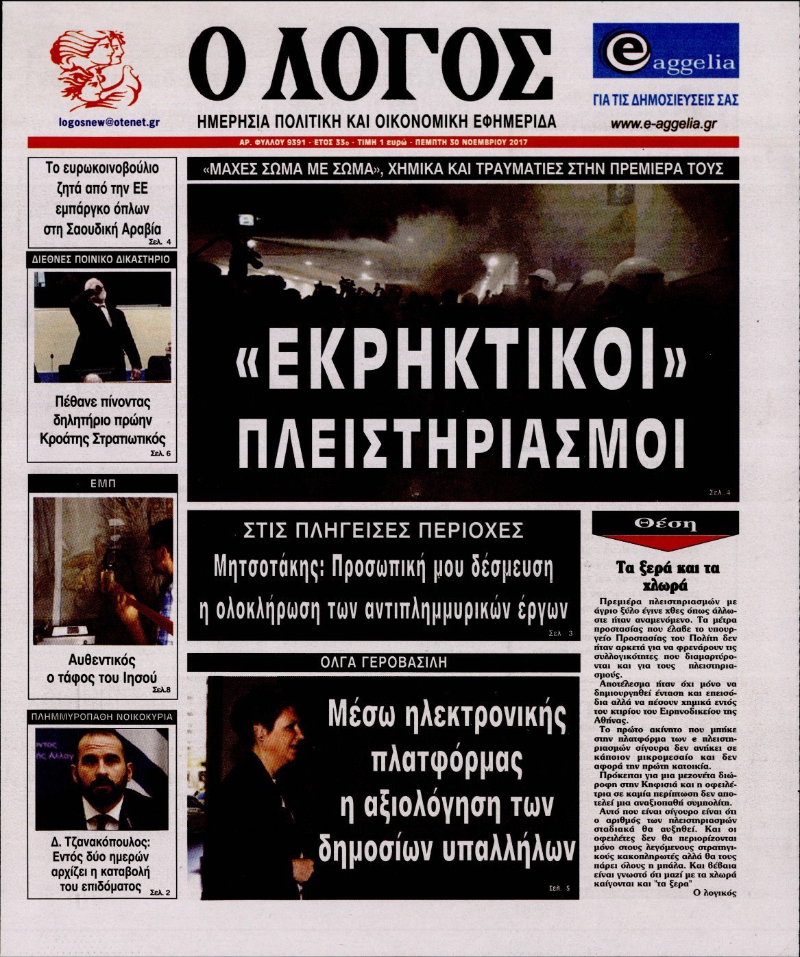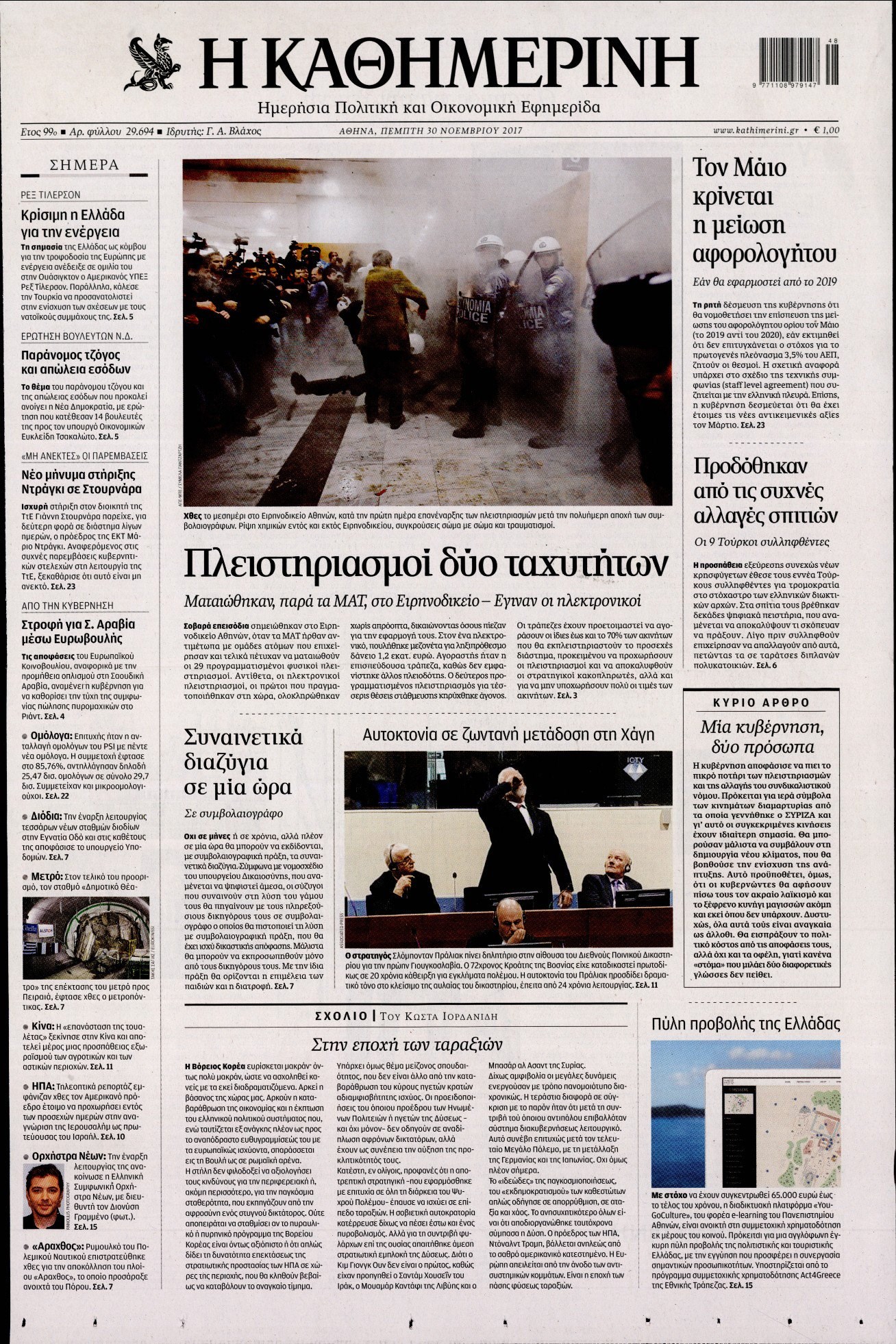 Οι πολιτικές εφημερίδες 30/11/2017 Enikos Newsroom 07:50, Πέμπτη 30 Νοεμβρίου 2017 Media Διαβάστε τα σημερινά πρωτοσέλιδα των πολιτικών εφημερίδων: ΠΟΛΙΤΙΚΕΣ ΕΦΗΜΕΡΙΔΕΣ ΠΡΩΤΟΣΕΛΙΔΑ Μοιράσου το: σχολίασε κι εσύ (0 σχόλια) Ακολουθήστε το enikos.gr στο Google News και μάθετε πρώτοι όλες τις ειδήσεις Δείτε όλες τις τελευταίες ειδήσεις από την Ελλάδα και τον Κόσμο στο enikos.gr Ειδήσεις Ροή Ειδήσεων 55 λεπτά πριν Χριστούγεννα στα μπλόκα: Επιμένουν στις κινητοποιήσεις τους οι αγρότες – Ανοίγουν τα διόδια το Σαββατοκύριακο 1 ώρα πριν Ουκρανία: Η άνευ προηγουμένου επίθεση σε ρωσικό τάνκερ στη Μεσόγειο και το μήνυμα προς στον Πούτιν – Το «μακρύ χέρι» του Κιέβου 33 λεπτά πριν Πούτιν: Τα μηνύματα σε Ευρώπη και ΝΑΤΟ από το μαραθώνιο «σόου» του – Η απαίτηση για «σεβασμό» και η ειρήνη «με τους όρους» της Μόσχας 1 ώρα πριν Τραμπ: Δεν αποκλείει την πιθανότητα ενός πολέμου στη Βενεζουέλα – «Ο Μαδούρο ξέρει καλύτερα από τον καθένα τι ακριβώς θέλω» 2 ώρες πριν Συνεχίζει να προκαλεί ο Μίτσκοσκι: «Για μένα το όνομα Μακεδονία είναι ιερό» 4 ώρες πριν Πούτιν: «Ναι, είμαι ερωτευμένος» – Βίντεο από τη σπάνια προσωπική παραδοχή του 3 ώρες πριν Αριθμολογία: Οι άνθρωποι που έχουν γεννηθεί αυτές τις 4 ημερομηνίες, συχνά παρεξηγούνται – «Η καλοσύνη τους κρύβει τεράστια δύναμη» 2 ώρες πριν Ύπνος: Μια κρυφή κατάσταση του εγκεφάλου πριν από τον ύπνο μπορεί να είναι το “κλειδί” για υψηλή ευφυΐα και δημιουργικότητα 4 ώρες πριν Ξεχάστε το καθάρισμα το Σαββατοκύριακο: Ο «κανόνας των 20 λεπτών» που θα σας λύσει τα χέρια 34 λεπτά πριν Ανακαλύφθηκαν αρχαία χρυσά νομίσματα 2.200 ετών που απεικονίζουν τον θεό Απόλλωνα – Η άγνωστη σύνδεση με τον Φίλιππο Β΄ της Μακεδονίας 4 λεπτά πριν Γάζα: Ισραηλινό πλήγμα σε σχολείο που είχαν καταφύγει εκτοπισμένοι – Τουλάχιστον έξι νεκροί 18 λεπτά πριν Ολυμπιακός – Βιλερμπάν 107-84: Επιστροφή στις νίκες με… προπόνηση 24 λεπτά πριν Νέος Κόσμος: Συνελήφθη 41χρονος με ένταλμα από την Τουρκία για εμπόριο ναρκωτικών και ληστεία 33 λεπτά πριν Πούτιν: Τα μηνύματα σε Ευρώπη και ΝΑΤΟ από το μαραθώνιο «σόου» του – Η απαίτηση για «σεβασμό» και η ειρήνη «με τους όρους» της Μόσχας 34 λεπτά πριν Ανακαλύφθηκαν αρχαία χρυσά νομίσματα 2.200 ετών που απεικονίζουν τον θεό Απόλλωνα – Η άγνωστη σύνδεση με τον Φίλιππο Β΄ της Μακεδονίας ENIKOS NETWORK Το ΕΚΑΒ τιμήθηκε από την Ακαδημία Αθηνών για τα 40 χρόνια προσφοράς του Έχετε πραγματικά μεγάλη καρδιά; 10 χαρακτηριστικά όσων έχουν καλοσύνη Αναστολή μέτρων αναγκαστικής εκτέλεσης για κτηνοτρόφους που πλήττονται από την ευλογιά των αιγοπροβάτων Πλήρης επάρκεια προϊόντων στις λαϊκές της Αττικής, παρά τις αγροτικές κινητοποιήσεις – Τι απαντούν οι πωλητές Χαρτογραφώντας το «σημείο χωρίς επιστροφή»: Για πρώτη φορά αποκαλύπτεται με λεπτομέρεια το ακανθώδες όριο της ατμόσφαιρας τ... Η Google καταργεί τη λειτουργία «dark web report» – Πώς θα μπορούν οι χρήστες να διαγράφουν τα δεδομένα τους περισσότερα 22:42 , Παρασκευή 19 Δεκεμβρίου 2025 Γιώργος Γιαννόπουλος για “Το σόι σου”: “Είναι ευτυχία και ευλογία αυτή η σειρά” «Είναι ευτυχία και ευλογία η συγκυρία αυτής της σειράς», θα πει ο Γιώργος Γιαννόπουλος -ο αγαπ... 20:37 , Παρασκευή 19 Δεκεμβρίου 2025 Don’t Forget The Lyrics: Η Έλλη Κοκκίνου υποδέχεται 4 παίκτες που θα κάνουν τα πάντα για να μη χάσουν ούτε… μισή λέξη από τους στίχους Το «Don’t Forget The Lyrics» επιστρέφει απόψε, Παρασκευή 19 Δεκεμβρίου, στις 21:00 με νέο επει... 19:31 , Παρασκευή 19 Δεκεμβρίου 2025 GNTM: Απόψ