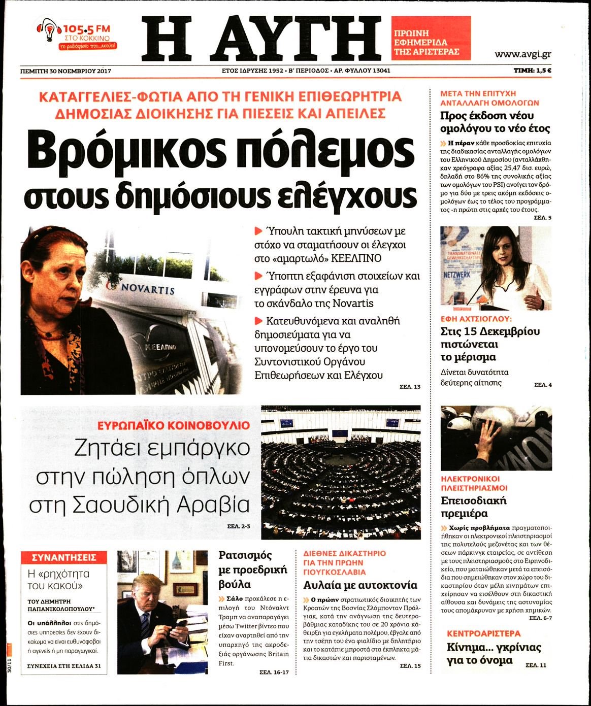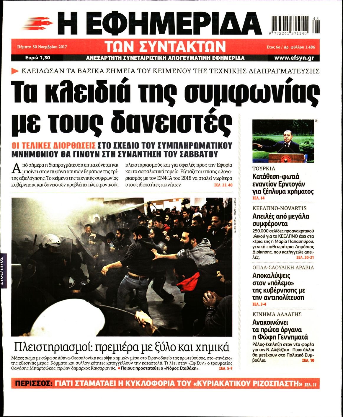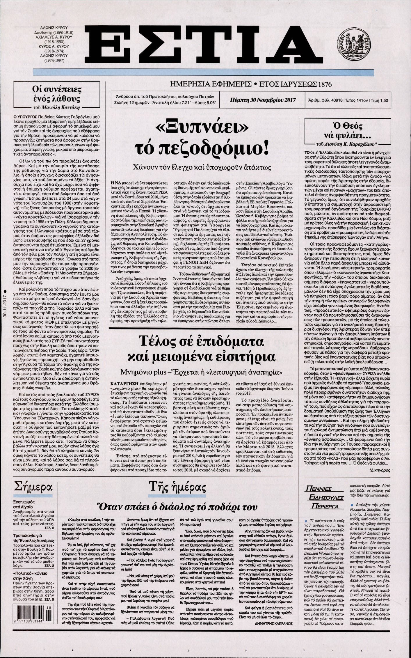 Οι πολιτικές εφημερίδες 30/11/2017 Enikos Newsroom 07:50, Πέμπτη 30 Νοεμβρίου 2017 Media Διαβάστε τα σημερινά πρωτοσέλιδα των πολιτικών εφημερίδων: ΠΟΛΙΤΙΚΕΣ ΕΦΗΜΕΡΙΔΕΣ ΠΡΩΤΟΣΕΛΙΔΑ Μοιράσου το: σχολίασε κι εσύ (0 σχόλια) Ακολουθήστε το enikos.gr στο Google News και μάθετε πρώτοι όλες τις ειδήσεις Δείτε όλες τις τελευταίες ειδήσεις από την Ελλάδα και τον Κόσμο στο enikos.gr Ειδήσεις Ροή Ειδήσεων 55 λεπτά πριν Χριστούγεννα στα μπλόκα: Επιμένουν στις κινητοποιήσεις τους οι αγρότες – Ανοίγουν τα διόδια το Σαββατοκύριακο 1 ώρα πριν Ουκρανία: Η άνευ προηγουμένου επίθεση σε ρωσικό τάνκερ στη Μεσόγειο και το μήνυμα προς στον Πούτιν – Το «μακρύ χέρι» του Κιέβου 33 λεπτά πριν Πούτιν: Τα μηνύματα σε Ευρώπη και ΝΑΤΟ από το μαραθώνιο «σόου» του – Η απαίτηση για «σεβασμό» και η ειρήνη «με τους όρους» της Μόσχας 1 ώρα πριν Τραμπ: Δεν αποκλείει την πιθανότητα ενός πολέμου στη Βενεζουέλα – «Ο Μαδούρο ξέρει καλύτερα από τον καθένα τι ακριβώς θέλω» 2 ώρες πριν Συνεχίζει να προκαλεί ο Μίτσκοσκι: «Για μένα το όνομα Μακεδονία είναι ιερό» 4 ώρες πριν Πούτιν: «Ναι, είμαι ερωτευμένος» – Βίντεο από τη σπάνια προσωπική παραδοχή του 3 ώρες πριν Αριθμολογία: Οι άνθρωποι που έχουν γεννηθεί αυτές τις 4 ημερομηνίες, συχνά παρεξηγούνται – «Η καλοσύνη τους κρύβει τεράστια δύναμη» 2 ώρες πριν Ύπνος: Μια κρυφή κατάσταση του εγκεφάλου πριν από τον ύπνο μπορεί να είναι το “κλειδί” για υψηλή ευφυΐα και δημιουργικότητα 4 ώρες πριν Ξεχάστε το καθάρισμα το Σαββατοκύριακο: Ο «κανόνας των 20 λεπτών» που θα σας λύσει τα χέρια 34 λεπτά πριν Ανακαλύφθηκαν αρχαία χρυσά νομίσματα 2.200 ετών που απεικονίζουν τον θεό Απόλλωνα – Η άγνωστη σύνδεση με τον Φίλιππο Β΄ της Μακεδονίας 4 λεπτά πριν Γάζα: Ισραηλινό πλήγμα σε σχολείο που είχαν καταφύγει εκτοπισμένοι – Τουλάχιστον έξι νεκροί 18 λεπτά πριν Ολυμπιακός – Βιλερμπάν 107-84: Επιστροφή στις νίκες με… προπόνηση 24 λεπτά πριν Νέος Κόσμος: Συνελήφθη 41χρονος με ένταλμα από την Τουρκία για εμπόριο ναρκωτικών και ληστεία 33 λεπτά πριν Πούτιν: Τα μηνύματα σε Ευρώπη και ΝΑΤΟ από το μαραθώνιο «σόου» του – Η απαίτηση για «σεβασμό» και η ειρήνη «με τους όρους» της Μόσχας 34 λεπτά πριν Ανακαλύφθηκαν αρχαία χρυσά νομίσματα 2.200 ετών που απεικονίζουν τον θεό Απόλλωνα – Η άγνωστη σύνδεση με τον Φίλιππο Β΄ της Μακεδονίας ENIKOS NETWORK Το ΕΚΑΒ τιμήθηκε από την Ακαδημία Αθηνών για τα 40 χρόνια προσφοράς του Έχετε πραγματικά μεγάλη καρδιά; 10 χαρακτηριστικά όσων έχουν καλοσύνη Αναστολή μέτρων αναγκαστικής εκτέλεσης για κτηνοτρόφους που πλήττονται από την ευλογιά των αιγοπροβάτων Πλήρης επάρκεια προϊόντων στις λαϊκές της Αττικής, παρά τις αγροτικές κινητοποιήσεις – Τι απαντούν οι πωλητές Χαρτογραφώντας το «σημείο χωρίς επιστροφή»: Για πρώτη φορά αποκαλύπτεται με λεπτομέρεια το ακανθώδες όριο της ατμόσφαιρας τ... Η Google καταργεί τη λειτουργία «dark web report» – Πώς θα μπορούν οι χρήστες να διαγράφουν τα δεδομένα τους περισσότερα 22:42 , Παρασκευή 19 Δεκεμβρίου 2025 Γιώργος Γιαννόπουλος για “Το σόι σου”: “Είναι ευτυχία και ευλογία αυτή η σειρά” «Είναι ευτυχία και ευλογία η συγκυρία αυτής της σειράς», θα πει ο Γιώργος Γιαννόπουλος -ο αγαπ... 20:37 , Παρασκευή 19 Δεκεμβρίου 2025 Don’t Forget The Lyrics: Η Έλλη Κοκκίνου υποδέχεται 4 παίκτες που θα κάνουν τα πάντα για να μη χάσουν ούτε… μισή λέξη από τους στίχους Το «Don’t Forget The Lyrics» επιστρέφει απόψε, Παρασκευή 19 Δεκεμβρίου, στις 21:00 με νέο επει... 19:31 , Παρασκευή 19 Δεκεμβρίου 2025 GNTM: Απόψ