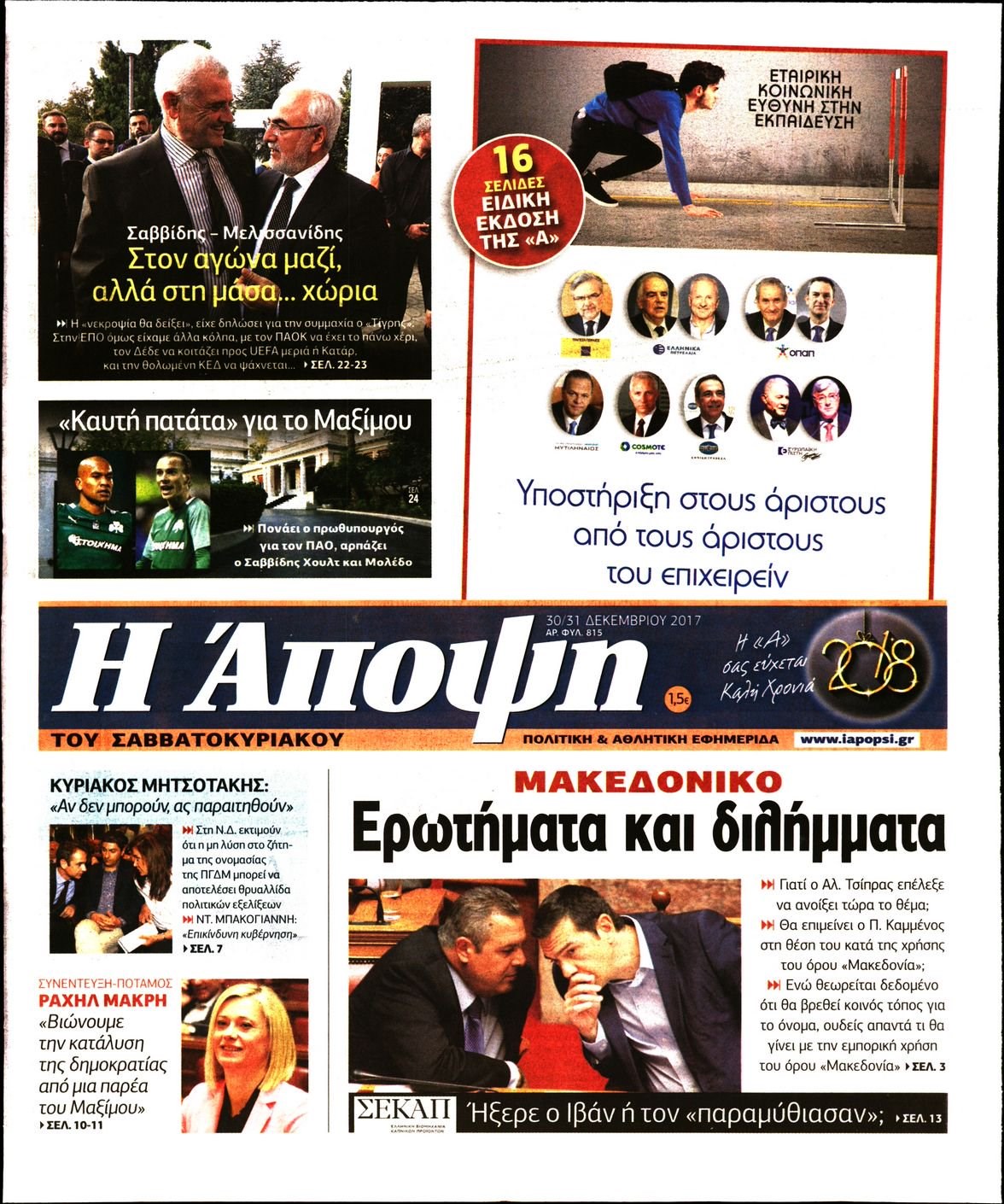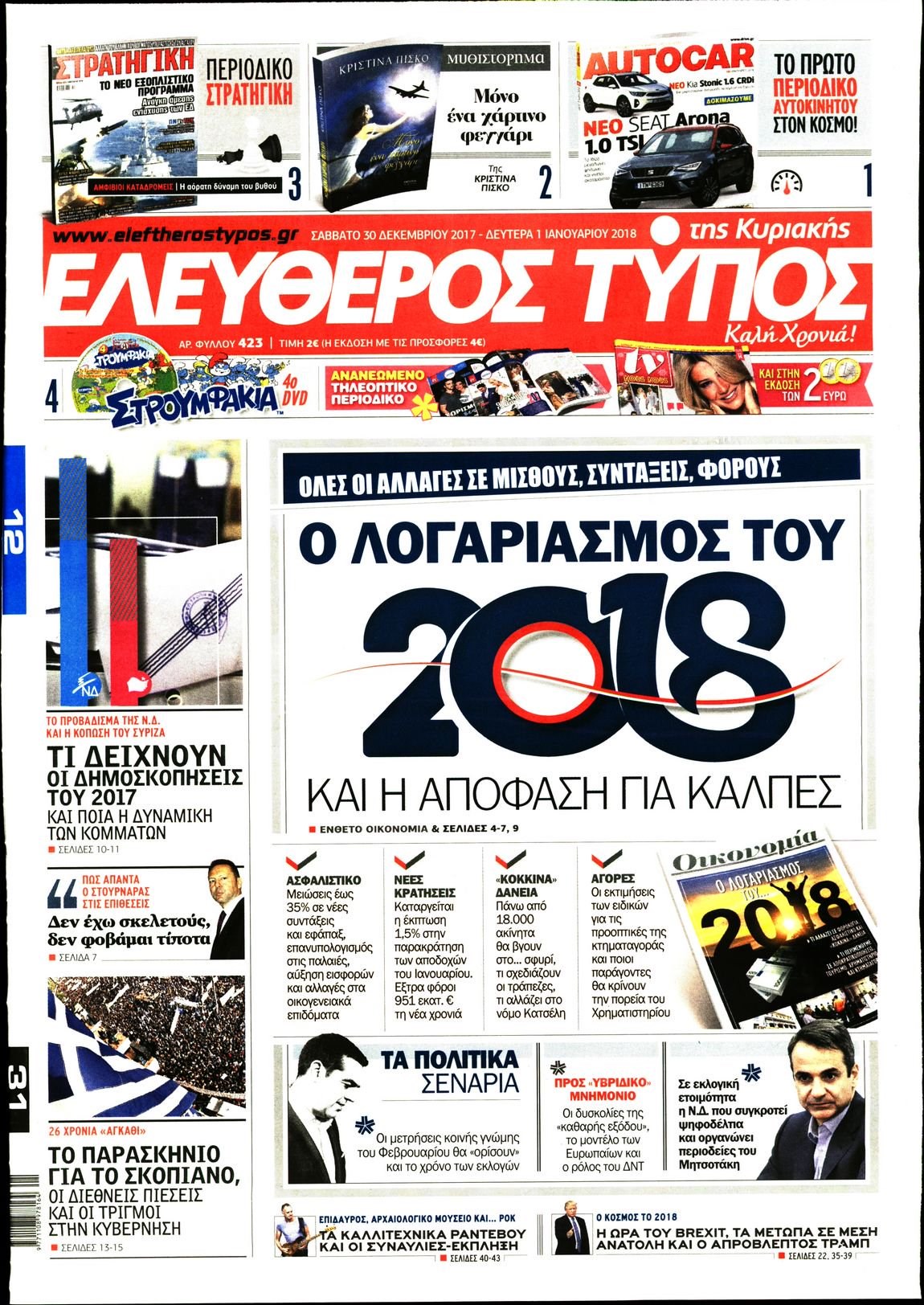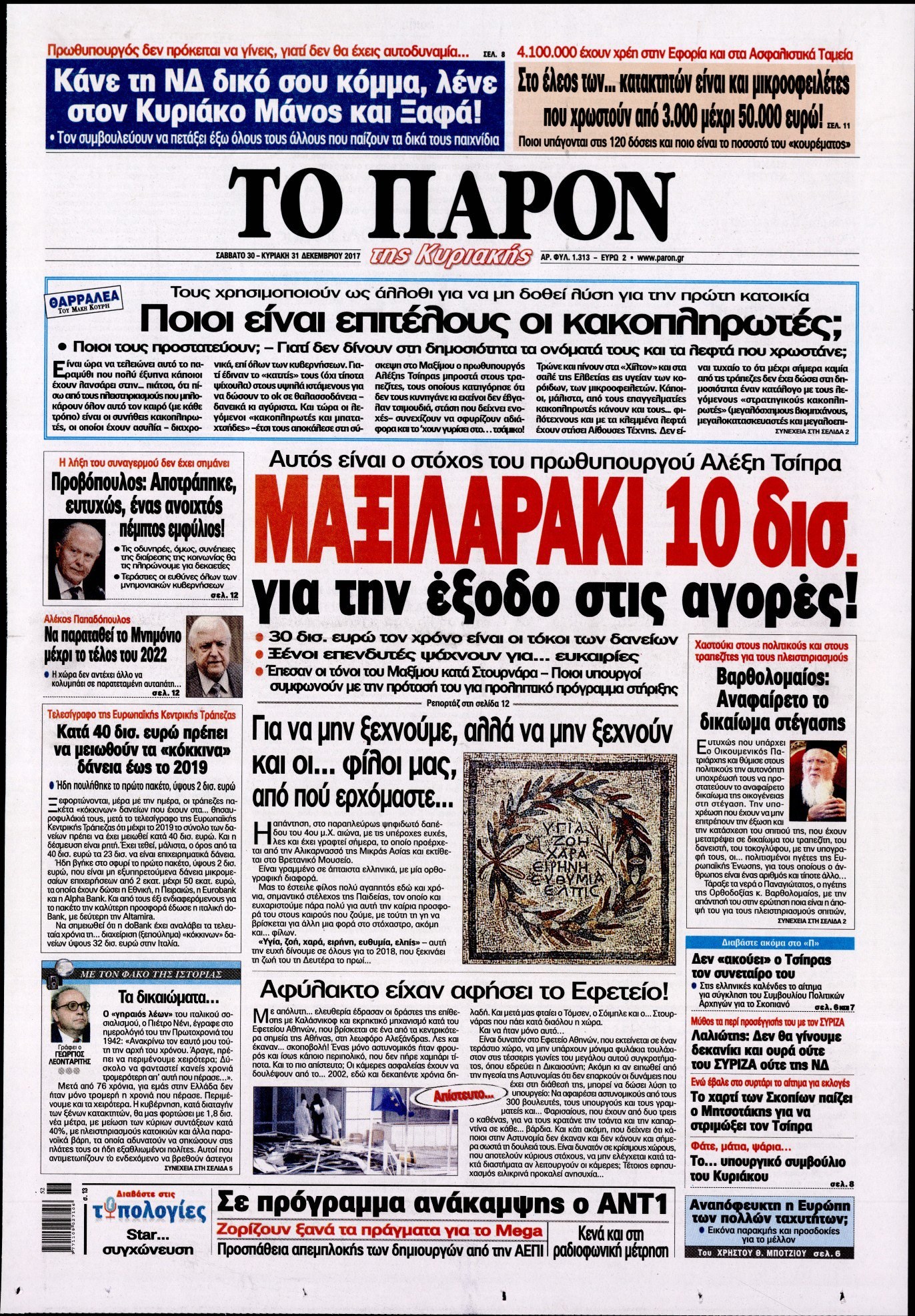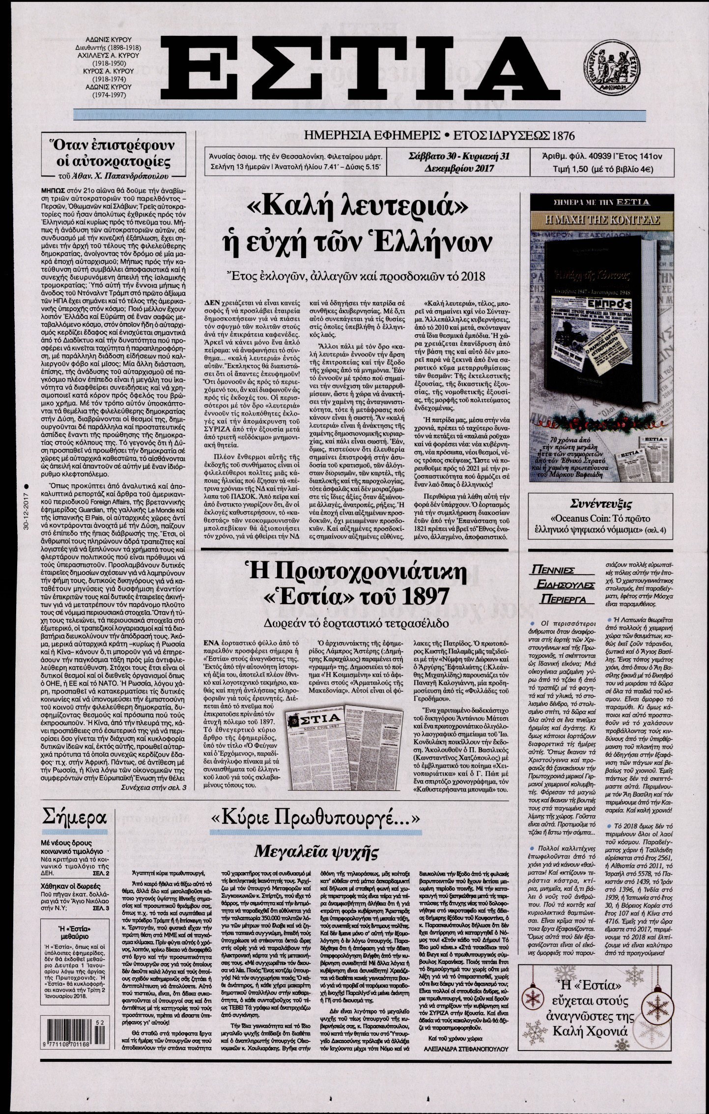 Οι πολιτικές εφημερίδες 30/12/2017 Enikos Newsroom 07:30, Σάββατο 30 Δεκεμβρίου 2017 Media Διαβάστε τα σημερινά πρωτοσέλιδα των πολιτικών εφημερίδων: ΠΟΛΙΤΙΚΕΣ ΕΦΗΜΕΡΙΔΕΣ ΠΡΩΤΟΣΕΛΙΔΑ Μοιράσου το: σχολίασε κι εσύ (0 σχόλια) Ακολουθήστε το enikos.gr στο Google News και μάθετε πρώτοι όλες τις ειδήσεις Δείτε όλες τις τελευταίες ειδήσεις από την Ελλάδα και τον Κόσμο στο enikos.gr Ειδήσεις Ροή Ειδήσεων 2 ώρες πριν Υπόθεση Έπσταϊν: Το Υπουργείο Δικαιοσύνης δημοσιοποίησε μια σειρά από εξαιρετικά επεξεργασμένα αρχεία – «Λείπουν τα πιο σημαντικά έγγραφα», λένε οι Δημοκρατικοί 1 ώρα πριν Ο «χάρτης» με τις αυξήσεις και τις φοροελαφρύνσεις του 2026 – Ποιοι και πόσα κερδίζουν 11 ώρες πριν Χριστούγεννα στα μπλόκα: Επιμένουν στις κινητοποιήσεις τους οι αγρότες – Ανοίγουν τα διόδια το Σαββατοκύριακο 2 ώρες πριν ΟΝΕΧ – MEGATUGS: Ξεκίνησε η ναυπήγηση ρυμουλκών στην Ελλάδα – Προθάλαμος πολεμικών πλοίων – Δείτε φωτογραφίες και βίντεο 2 ώρες πριν Καιρός: Αλλαγή σκηνικού σήμερα με βροχές και πτώση της θερμοκρασίας – Οι προβλέψεις των μετεωρολόγων για τα Χριστούγεννα 4 ώρες πριν Αυγά: Πόσα μπορείτε να τρώτε την ημέρα με ασφάλεια για μέγιστη πρόσληψη πρωτεΐνης 3 ώρες πριν Οπτική ψευδαίσθηση: Μόνο αν είσαι ο Σέρλοκ Χολμς θα βρεις τον αριθμό «87» σε 7 δευτερόλεπτα 2 ώρες πριν Αρχαιολόγοι ανακάλυψαν σε χωράφι απεικόνιση 600 ετών ενός Αγίου – Τα στοιχεία που δείχνουν ότι μαρτύρησε 38 λεπτά πριν Αγχώνεται για το χριστουγεννιάτικο δώρο που πήρε στην πλούσια σύντροφό του – «Φοβάμαι πως θα το βρει φθηνιάρικο, φοράει βραχιόλια Cartier» 4 λεπτά πριν Θεσσαλονίκη: 24ωρη λειτουργία σήμερα σε μετρό και 6 λεωφορειακές γραμμές 12 λεπτά πριν «Porto Leone: Στη γειτονιά με τα κόκκινα φανάρια» – Ο Χρόνης αποκαλύπτει στην Αλεξάνδρα το μυστικό για το παιδί της Λένας 20 λεπτά πριν Νέες αιτήσεις για ίδρυση μη κρατικών πανεπιστημίων στο πρώτο δίμηνο του 2026 – Τι είπε η Ζαχαράκη 28 λεπτά πριν Ουκρανία: Drones έπληξαν εξέδρα πετρελαίου και πολεμικό πλοίο της Ρωσίας στην Κασπία 37 λεπτά πριν Παιδική υπέρταση: Μια σιωπηλή απειλή που αυξάνεται διεθνώς ENIKOS NETWORK Πόσα κιλά παίρνουμε πραγματικά τα Χριστούγεννα, σύμφωνα με την επιστήμη – Πώς να το αποτρέψουμε; Το δημοφιλές ρόφημα που αυξάνει την πίεση πιο γρήγορα και από το αλάτι Mega χριστουγεννιάτικη φορολοταρία: «Κλείδωσε» η ημερομηνία για την κλήρωση – Ερωτήσεις και απαντήσεις Αναστολή μέτρων αναγκαστικής εκτέλεσης για κτηνοτρόφους που πλήττονται από την ευλογιά των αιγοπροβάτων Χαρτογραφώντας το «σημείο χωρίς επιστροφή»: Για πρώτη φορά αποκαλύπτεται με λεπτομέρεια το ακανθώδες όριο της ατμόσφαιρας τ... Η Google καταργεί τη λειτουργία «dark web report» – Πώς θα μπορούν οι χρήστες να διαγράφουν τα δεδομένα τους περισσότερα 09:30 , Σάββατο 20 Δεκεμβρίου 2025 «Porto Leone: Στη γειτονιά με τα κόκκινα φανάρια» – Ο Χρόνης αποκαλύπτει στην Αλεξάνδρα το μυστικό για το παιδί της Λένας Η μεγάλη δραματική σειρά του Apha «Porto Leone: Στη γειτονιά με τα κόκκινα φανάρια» μας μεταφέ... 08:14 , Σάββατο 20 Δεκεμβρίου 2025 Τρομεροί γονείς: Η Μαρία Καβογιάννη εισβάλλει στο σπίτι της οικογένειας Στεφανίδη Όσα θα δούμε στο νέο διπλό επεισόδιο της σειράς «Τρομεροί γονείς», σήμερα Σάββατο 20 Δεκεμβρίο... 05:48 , Σάββατο 20 Δεκεμβρίου 2025 Οι οικονομικές εφημερίδες 20/12/2025 Διαβάστε τα πρωτοσέλιδα από τις οικονομικές εφημερίδες, σήμερα 20/12/2025. 05:43 , Σάββατο 20 Δεκεμβρίου 2025 Οι αθλητικές εφημερίδες 20/12/2025 Διαβάστε τα πρωτοσέλιδα από τις αθλητικές εφημερίδε