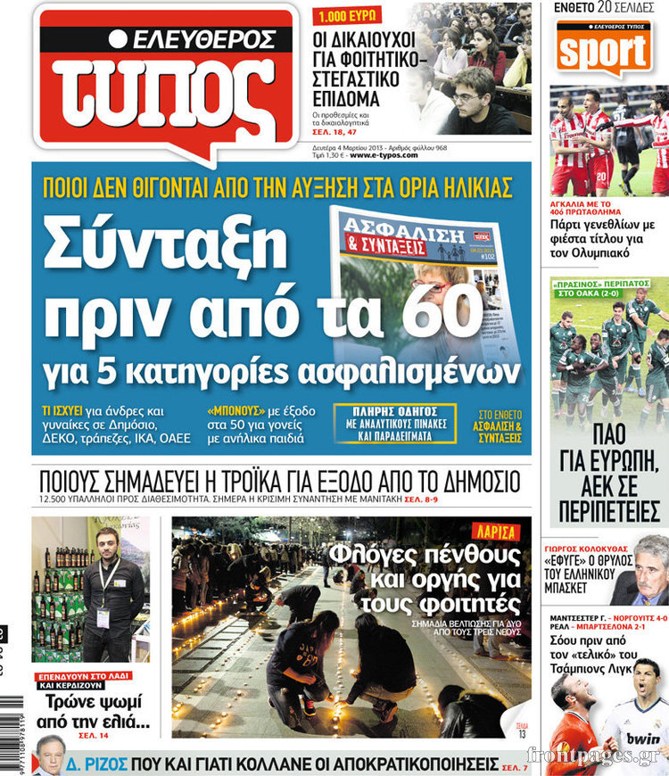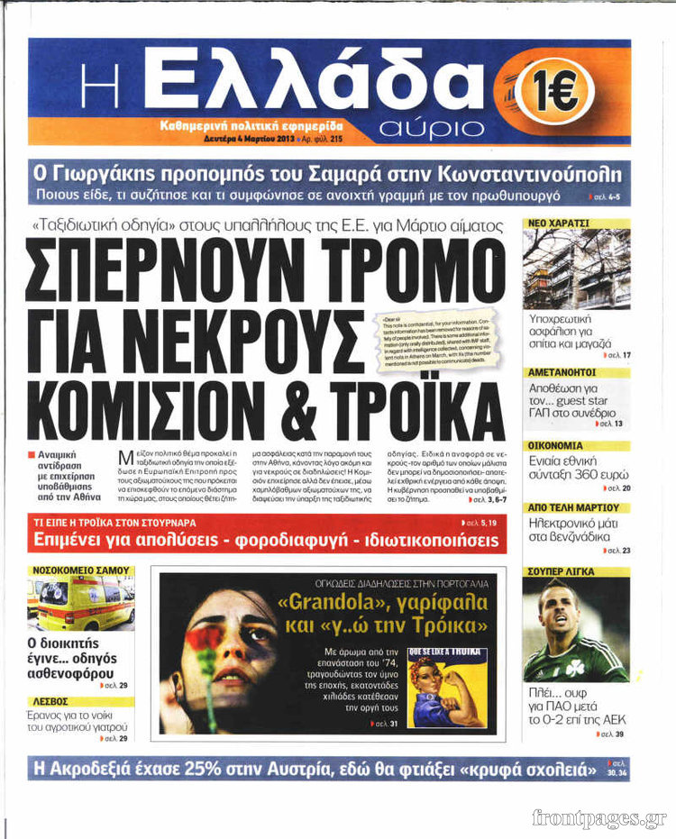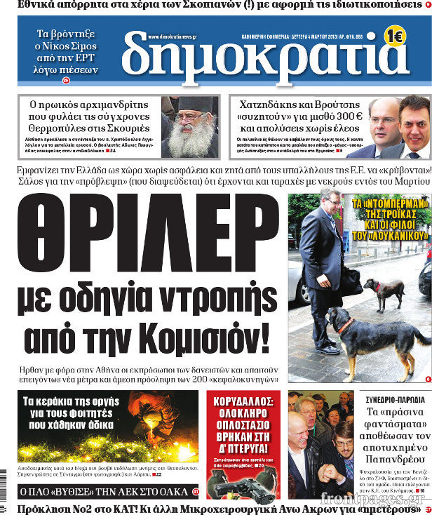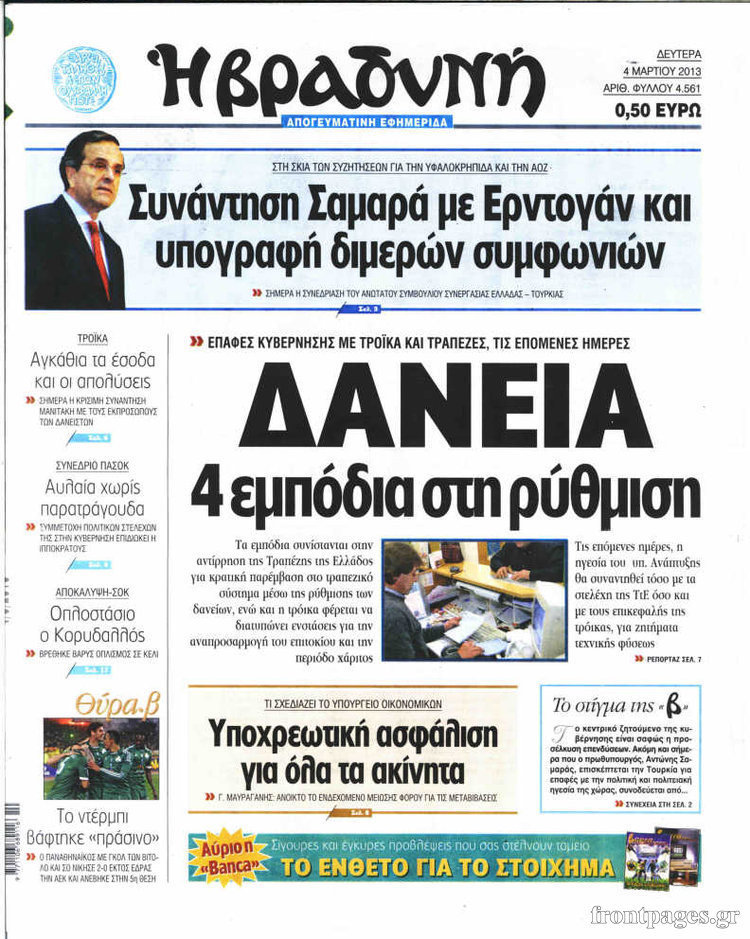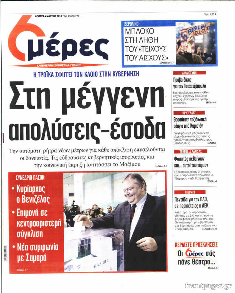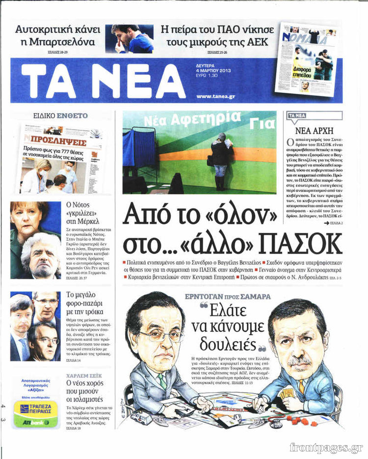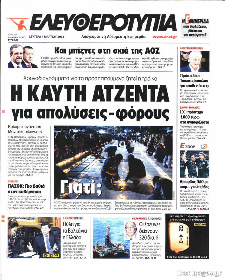 Οι πολιτικές εφημερίδες Enikos Newsroom 08:53, Δευτέρα 04 Μαρτίου 2013 Media Οι πολιτικές εφημερίδες Τα πρωτοσέλιδα των πολιτικών εφημερίδων. ΕΦΗΜΕΡΙΔΕΣ ΠΟΛΙΤΙΚΕΣ ΕΦΗΜΕΡΙΔΕΣ ΠΡΩΤΟΣΕΛΙΔΑ Μοιράσου το: σχολίασε κι εσύ (0 σχόλια) Ακολουθήστε το enikos.gr στο Google News και μάθετε πρώτοι όλες τις ειδήσεις Δείτε όλες τις τελευταίες ειδήσεις από την Ελλάδα και τον Κόσμο στο enikos.gr Ειδήσεις Ροή Ειδήσεων 3 ώρες πριν Μητσοτάκης σε αγρότες: Είμαστε ανοιχτοί στον διάλογο, αλλά όχι στο παράλογο – Η διεκδίκηση αιτημάτων οφείλει να γίνεται με σεβασμό στο κοινωνικό σύνολο 2 ώρες πριν Κηφισιά: Δύο συλλήψεις για ληστεία με λεία 180.000 ευρώ – Βίντεο ντοκουμέντα από τη δράση των συλληφθέντων 3 ώρες πριν Γρίπη: «Καμπανάκι» από τους επιστήμονες για έξαρση κρουσμάτων στις γιορτές – Ποιοι κινδυνεύουν και πώς προστατευόμαστε 4 ώρες πριν Γαλλία: Έτοιμοι για Χριστούγεννα στους δρόμους οι αγρότες – «Οι δεσμεύσεις της κυβέρνησης δεν είναι αρκετές» 3 ώρες πριν Η οικογενειακή διαμάχη των Μπέκαμ: Το block από τον Μπρούκλιν και η απόφαση να περάσει τα Χριστούγεννα με τους δισεκατομμυριούχους γονείς της συζύγου του 3 ώρες πριν Τα άστρα ευνοούν σκανδαλωδώς 4 ζώδια – «Εμφανίζονται ξαφνικά ευκαιρίες γιατί αποφασίζετε να αφήσετε πίσω το παρελθόν» 2 ώρες πριν Προπονήτρια γυμναστικής που έχασε 9 κιλά αποκαλύπτει: «Αυτοί είναι οι 5 παράγοντες που εμποδίζουν την απώλεια βάρους» 50 λεπτά πριν Οι άνθρωποι που στρώνουν το κρεβάτι τους κάθε πρωί, διαθέτουν αυτές τις 8 κρυφές δυνάμεις 1 ημέρα πριν Enerwave: Το νέο «ρεύμα» στη λιανική ενέργειας που αλλάζει την εμπειρία του καταναλωτή 5 λεπτά πριν Maestro – Χριστόφορος Παπακαλιάτης: Θα δείτε εκπλήξεις – Θα προβληθεί τον Οκτώβριο 14 λεπτά πριν ΣΥΡΙΖΑ για Μητσοτάκη: Ο κυνισμός και η αλαζονεία του δεν πείθει κανέναν πια – Ούτε τους αγροτοσυνδικαλιστές της παράταξης του 22 λεπτά πριν Athens Santa Run: Έκατοντάδες Άγιοι Βασίληδες έτρεξαν στο κέντρο της Αθήνες – Τα σκυλάκια έκλεψαν την παράσταση 30 λεπτά πριν Τσουκαλάς: Η διακυβέρνηση Μητσοτάκη διαιρεί την κοινωνία σε δύο Ελλάδες – Mια των λίγων που καλοπερνούν και μια των πολλών που αγκομαχούν 38 λεπτά πριν Super League: «Αντίο» στο 2025 με ντέρμπι στην Τούμπα ENIKOS NETWORK Άσκηση: η «ασπίδα» του εγκεφάλου απέναντι στη γήρανση Έχετε καταρροή και φαγούρα στα μάτια στις γιορτές; Μπορεί να ευθύνεται το σύνδρομο χριστουγεννιάτικου δέντρου Φοροδιαφυγή: Πώς τα ψηφιακά εργαλεία άλλαξαν τα δεδομένα το 2025 και έφεραν δισεκατομμύρια στα ταμεία του Δημοσίου “Προσβασιμότητα κατ’ Οίκον”: Έως αύριο η υποβολή των δικαιολογητικών για 3.000 δικαιούχους Χαρτογραφώντας το «σημείο χωρίς επιστροφή»: Για πρώτη φορά αποκαλύπτεται με λεπτομέρεια το ακανθώδες όριο της ατμόσφαιρας τ... Η Google καταργεί τη λειτουργία «dark web report» – Πώς θα μπορούν οι χρήστες να διαγράφουν τα δεδομένα τους περισσότερα 09:43 , Κυριακή 21 Δεκεμβρίου 2025 Το λάθος στην ταινία Die Hard που άφησε άναυδους τους θαυμαστές του Μπρους Γουίλις Ένας φανατικός των ταινιών άφησε άναυδους τους θαυμαστές του Die Hard, επισημαίνοντας τρία βασ... 08:13 , Κυριακή 21 Δεκεμβρίου 2025 Άγιος έρωτας: Ένας καταστροφικός σεισμός χτυπά τη Στέρνα Καταιγιστικές είναι οι εξελίξεις στα δυο τελευταία, συγκλονιστικά επεισόδια του 2025 της σειρά... 08:00 , Κυριακή 21 Δεκεμβρίου 2025 Σήμερα με τη Realnews: Ό,τι και αν αγοράσεις, σκανάρεις και κερδίζεις! Σήμερα με τη Realnews: Ό,τι και αν αγοράσεις, σκανάρεις και κερδίζεις! Με το PADU app, το κορυ... 07:00 , Κυριακή 21 Δ