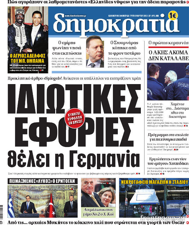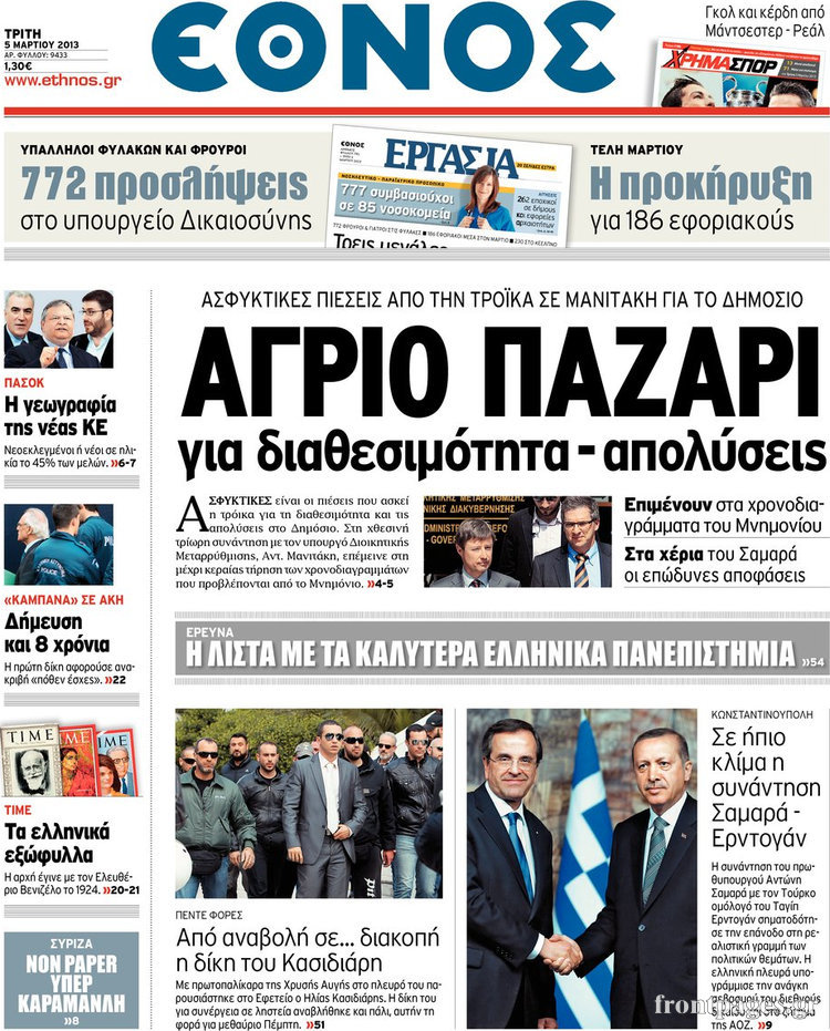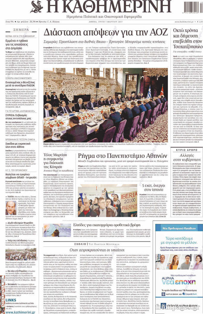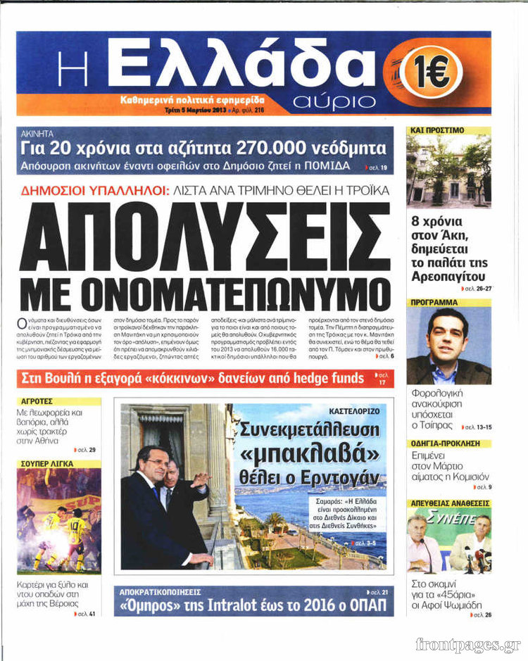 Οι πολιτικές εφημερίδες Enikos Newsroom 08:42, Τρίτη 05 Μαρτίου 2013 Media Οι πολιτικές εφημερίδες ΕΙΔΗΣΕΙΣ ΕΦΗΜΕΡΙΔΕΣ ΠΟΛΙΤΙΚΕΣ ΕΦΗΜΕΡΙΔΕΣ ΠΡΩΤΟΣΕΛΙΔΑ Μοιράσου το: σχολίασε κι εσύ (0 σχόλια) Ακολουθήστε το enikos.gr στο Google News και μάθετε πρώτοι όλες τις ειδήσεις Δείτε όλες τις τελευταίες ειδήσεις από την Ελλάδα και τον Κόσμο στο enikos.gr Ειδήσεις Ροή Ειδήσεων 1 ώρα πριν Κακοκαιρία – Αγιόκαμπος: Πλημμύρισαν 10 σπίτια και μία επιχείρηση λόγω υπερχείλισης ρέματος – «Είχαμε κατολισθήσεις σε αρκετά σημεία του δήμου Αγιάς» 7 ώρες πριν Live η πορεία της κακοκαιρίας: Γέμισαν λασπόνερα δρόμοι και σοκάκια στα νησιά – Δεκάδες κλήσεις στην Πυροσβεστική στην Κεντρική Μακεδονία 42 λεπτά πριν Θρίλερ στη Νέα Πέραμο – Βρέθηκε πτώμα άνδρα μέσα σε ρέμα 2 ώρες πριν Διπλή τραγωδία στους δρόμους της Τουρκίας με 16 νεκρούς και 30 τραυματίες – Δείτε βίντεο 2 ώρες πριν Moltbook: Η πρώτη πλατφόρμα που απαγορεύει τους ανθρώπους – AI bots επικοινωνούν μεταξύ τους και σχεδιάζουν να «διαγράψουν» την ανθρωπότητα 2 ώρες πριν Τα 3 ζώδια που προσελκύουν οικονομική επιτυχία έως τις 8 Φεβρουαρίου – «Το σύμπαν εξοφλεί χρέη 8 ετών και οι προσπάθειές σας αναγνωρίζονται» 7 ώρες πριν Γυναίκα που έχασε 14 κιλά σε 4 μήνες αποκαλύπτει: «Αυτές οι 5 συμβουλές με βοήθησαν να απαλλαγώ από το τοπικό πάχος» 6 ώρες πριν Αφήνετε τα πάντα για την τελευταία στιγμή; 8 χαρακτηριστικά των ανθρώπων που αποδίδουν καλύτερα υπό πίεση 3 ώρες πριν Η ιστορία πίσω από το «Φεγγάρι του Χιονιού»: Γιατί οι άνθρωποι στο παρελθόν έτρεμαν την αποψινή Πανσέληνο – Πότε είναι η καλύτερη ώρα για να την απολαύσουμε 2 λεπτά πριν Ζάκυνθος: Δεν θανατώνεται το πιτ μπουλ που επιτέθηκε στο δίχρονο παιδί – Βίντεο 10 λεπτά πριν «Parking Challenge» στην Πεύκη: Μπέρδεψε το πεζοδρόμιο με το… πάρκινγκ του σπιτιού του – Φωτογραφία αναγνώστη 19 λεπτά πριν Πασχάλης Τερζής: Πρωταγωνίστησε στην πιο πετυχημένη παράσταση της Λυρικής Σκηνής 27 λεπτά πριν Κατερίνη: Του έκλεψαν το αυτοκίνητο, τον παρέσυραν στην άσφαλτο και έφυγαν με κοσμήματα αξίας 300.000 ευρώ – «Κρεμόταν από το όχημα» 35 λεπτά πριν Κακοκαιρία – Λήμνος: Πλημμύρισαν οι δρόμοι στο νησί – Έκκληση του δήμου για αποφυγή μετακινήσεων – ΒΙΝΤΕΟ ENIKOS NETWORK Απιστία: Το Νο1 χαρακτηρηστικό που έχουν κοινό όσοι άνδρες απατούν Κρασί, μπύρα και κέτσαπ: Τι αποκαλύπτει νέα μελέτη για τη σύνδεση τους με καρκίνο Ποιοι φόροι εξετάζεται να μειωθούν ΑΣΕΠ: Νέες προσλήψεις σε δήμο: Ζητούνται 3 ειδικότητες – Πότε αρχίζει η υποβολή αιτήσεων και ποιους αφορά Σπαζοκεφαλιά: Βρες πόσα 9 υπάρχουν στην εικόνα σε 8 δευτερόλεπτα Τεστ IQ: Μπορείς να εντοπίσεις τον αριθμό 999 ανάμεσα στα 99Q σε 15 δευτερόλεπτα; περισσότερα 17:13 , Κυριακή 01 Φεβρουαρίου 2026 Σία Κοσιώνη: Το πρώτο μήνυμα μετά την περιπέτεια με την υγεία της – «Τα καταφέραμε» Για έναν δύσκολο Ιανουάριο που της φάνηκε σαν ένας ολόκληρος χρόνος κάνει λόγο η Σία Κοσιώνη σ... 15:05 , Κυριακή 01 Φεβρουαρίου 2026 Από Ήλιο σε Ήλιο: Πότε κάνει τελικά πρεμιέρα η νέα σειρά της ΕΡΤ1; Το αρχικό πλάνο και η μετακίνηση της προβολής. Της Νάντιας Ρηγάτου Μπορεί η Μεγάλη Χίμαιρα να ... 15:04 , Κυριακή 01 Φεβρουαρίου 2026 Στο real taste & style που κυκλοφορεί με τη Realnews Στο real taste & style που κυκλοφορεί με τη Realnews. Τον Φεβρουάριο, η πατάτα βγαίνει μπρ... 13:47 , Κυριακή 01 Φεβρουαρίου 2026 Άγιος Έρωτας: Ο πατέρας Νικόλαος και η Χλόη παραδίνονται στον έρωτα – ‘Ολες οι εξελίξεις Καταιγιστικές εξελίξεις την επόμενη εβδομάδα στον «Άγιο έρωτα». Η Αναστασ