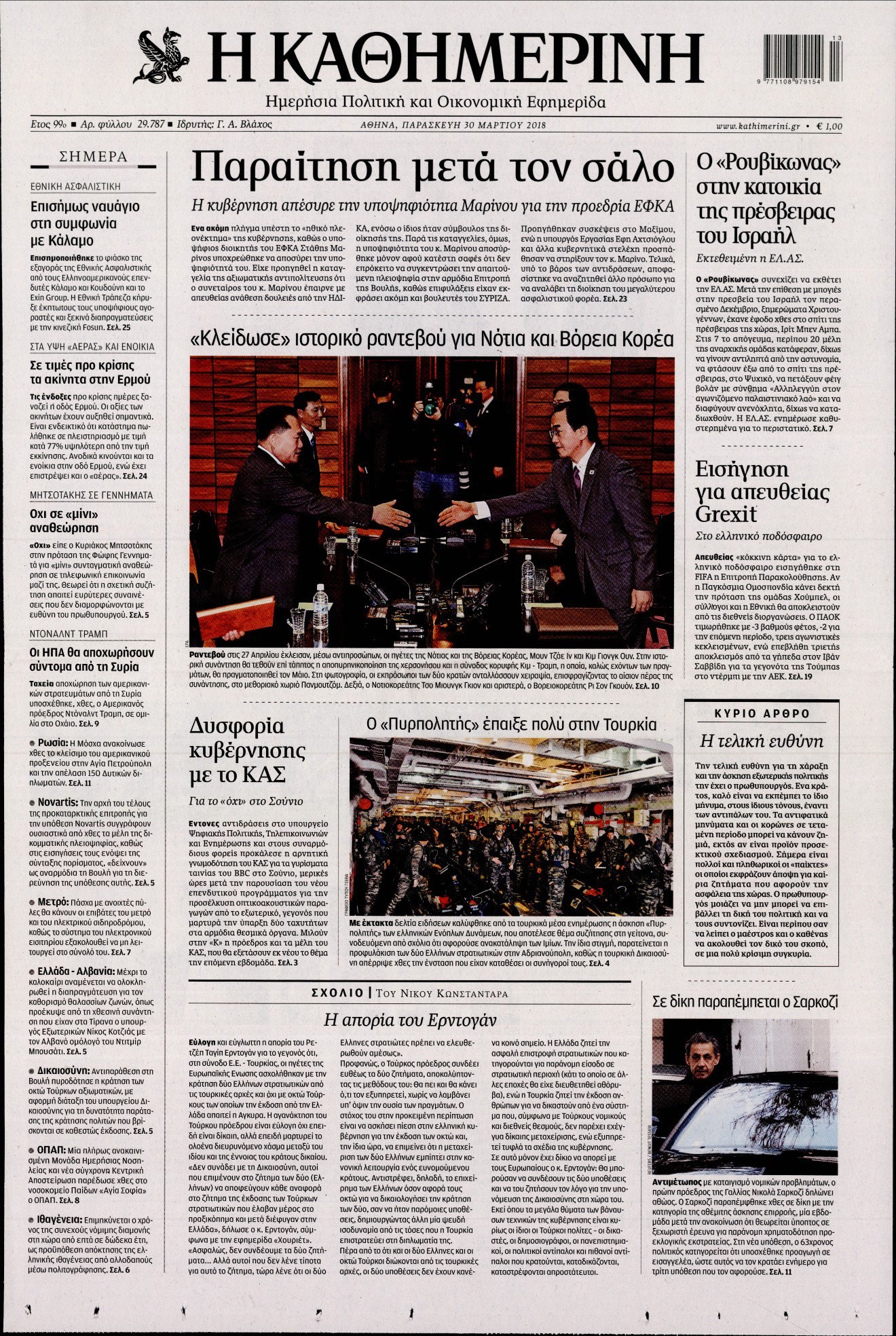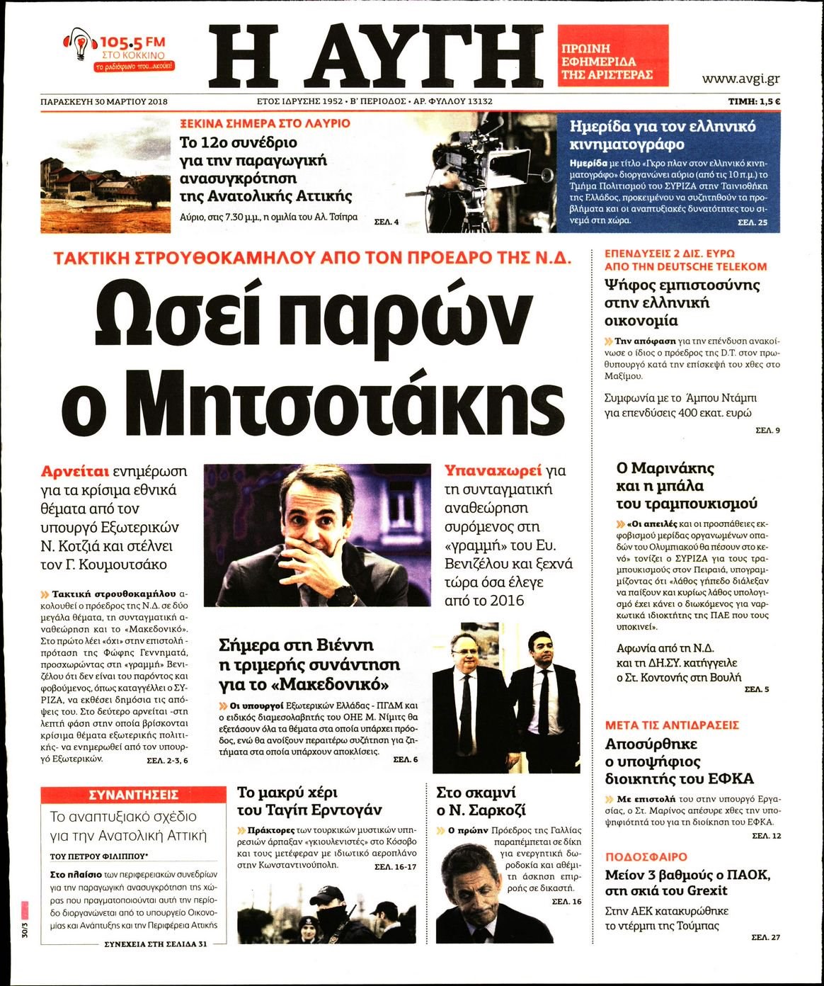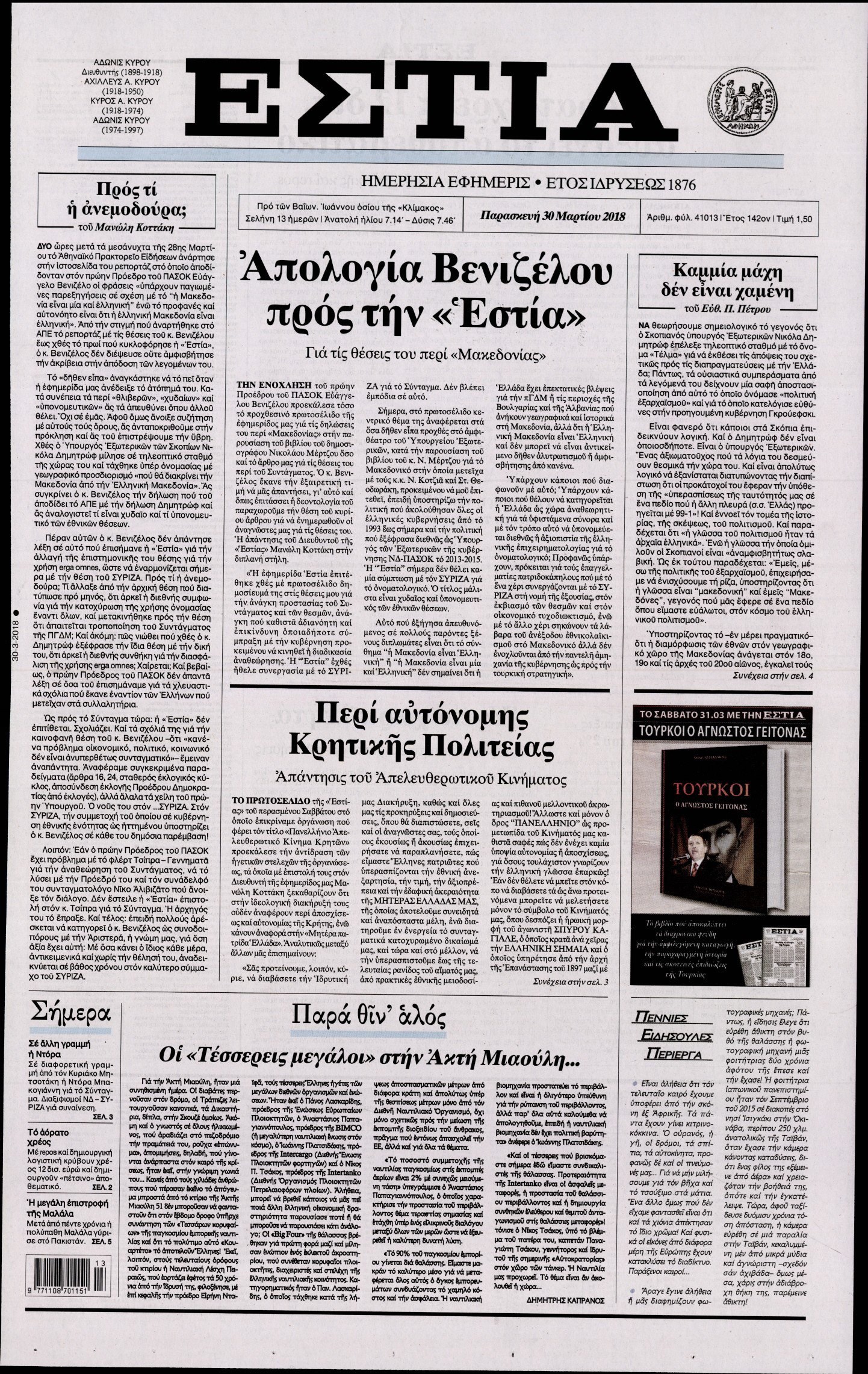Οι πολιτικές εφημερίδες 30/3/2018 Enikos Newsroom 07:35, Παρασκευή 30 Μαρτίου 2018 Media Διαβάστε τα σημερινά πρωτοσέλιδα των πολιτικών εφημερίδων: ΠΟΛΙΤΙΚΕΣ ΕΦΗΜΕΡΙΔΕΣ ΠΡΩΤΟΣΕΛΙΔΑ Μοιράσου το: σχολίασε κι εσύ (0 σχόλια) Ακολουθήστε το enikos.gr στο Google News και μάθετε πρώτοι όλες τις ειδήσεις Δείτε όλες τις τελευταίες ειδήσεις από την Ελλάδα και τον Κόσμο στο enikos.gr Ειδήσεις Ροή Ειδήσεων 2 ώρες πριν Μπλόκα: Οι αγρότες σηκώνουν τις μπάρες σε διόδια για τους εκδρομείς των Χριστουγέννων και μοιράζουν προϊόντα – Βίντεο 2 ώρες πριν Τσιάρας προς αγρότες: Τα μπλόκα και τα πείσματα δεν ωφελούν – Οι λύσεις περνούν μέσα από τον διάλογο 3 ώρες πριν Αρχεία Έπσταϊν: Οι συγκλονιστικές φωτογραφίες – Ο Μάικλ Τζάκσον, ο Μικ Τζάγκερ και ο Κέβιν Σπέισι ανάμεσα στους διάσημους που απεικονίζονται 1 ώρα πριν Μαθητές διακινούσαν κοκαΐνη και χασίς σε σχολείο της Αττικής – 12 συλλήψεις 1 ώρα πριν Βέλγιο: Άγνωστοι έριξαν κόκκινη μπογιά στο προξενείο της Πολωνίας στις Βρυξέλλες 5 ώρες πριν Μία νέα «χρυσή» περίοδος αρχίζει για 3 ζώδια από σήμερα – «Μία αναπάντεχη ευκαιρία οδηγεί στην επιτυχία» 4 ώρες πριν Διαιτολόγος αποκαλύπτει 9 πρωινές συνήθειες που «λιώνουν» το κοιλιακό λίπος – «Υποστηρίζουν την υγιεινή απώλεια βάρους» 5 ώρες πριν Οι 7 φράσεις που δεν λένε ποτέ οι συναισθηματικά έξυπνοι άνθρωποι κατά τη διάρκεια ενός καβγά 7 ώρες πριν Enerwave: Το νέο «ρεύμα» στη λιανική ενέργειας που αλλάζει την εμπειρία του καταναλωτή 1 λεπτό πριν Πακιστάν: Σε κάθειρξη 17 ετών καταδικάστηκαν ο πρώην πρωθυπουργός Ίμραν Χαν και η σύζυγός του 10 λεπτά πριν Μαρινάκης στον Realfm 97,8: Η κυβέρνηση σέβεται κάθε λογική διεκδίκηση των αγροτών, αλλά και το αίτημα των πολιτών να μην ταλαιπωρούνται 16 λεπτά πριν O Πάντερ MVP της 17ης αγωνιστικής στην Euroleague 24 λεπτά πριν Πέθανε η τραγουδίστρια Κλαούντια Ντελμέρ 32 λεπτά πριν Μία ανεκμετάλλευτη πηγή θα μπορούσε να προσφέρει ανεξάντλητη ενέργεια – Οι επιστήμονες ίσως γνωρίζουν πώς να την ξεκλειδώσουν ENIKOS NETWORK Η αποχή από την αναπαραγωγή παρατείνει τη ζωή στα ζώα, σύμφωνα με μελέτη – Τι ισχύει για τους ανθρώπους; Σημαντικές επαφές στις ΗΠΑ είχε ο υπουργός Υγείας Άδωνις Γεωργιάδης Ευλογιά αιγοπροβάτων: Παρατεταμένη επιζωοτία, αυστηρά μέτρα – Τι ισχύει για τον εμβολιασμό και την ανασύσταση του ζωικού κε... Τσιάρας προς αγρότες: Έχει ικανοποιηθεί το 74% των αιτημάτων – Τα μπλόκα και τα πείσματα δεν ωφελούν Χαρτογραφώντας το «σημείο χωρίς επιστροφή»: Για πρώτη φορά αποκαλύπτεται με λεπτομέρεια το ακανθώδες όριο της ατμόσφαιρας τ... Η Google καταργεί τη λειτουργία «dark web report» – Πώς θα μπορούν οι χρήστες να διαγράφουν τα δεδομένα τους περισσότερα 14:04 , Σάββατο 20 Δεκεμβρίου 2025 Η Realnews αυτής της Κυριακής (21/12/2025) Με τίτλο: «Ασπίδα προστασίας για την Ελλάδα» κυκλοφορεί, αυτήν την Κυριακή, η Realnews. Σημαντ... 12:53 , Σάββατο 20 Δεκεμβρίου 2025 Να μ’ αγαπάς: Το παρελθόν έρχεται στο φως – Καταιγιστικές εξελίξεις στα τελευταία επεισόδια του 2025 Ο Άγγελος αποκαλύπτεται, η Φωτεινή ανησυχεί για τον Λευτέρη και η Ζωή έρχεται αντιμέτωπη με το... 11:41 , Σάββατο 20 Δεκεμβρίου 2025 «Η αγάπη δεν χάνεται ποτέ»: Η μικρού μήκους ταινία κινουμένων σχεδίων που θέτει ερωτήματα για τη ζωή και τον θάνατο Ο θάνατος είναι ένα από τα πιο σκληρά θέματα που καλείται να διαχειριστεί κάποιος στη διάρκεια... 09:30 , Σάββατο 20 Δεκεμβρίου 2025 «Porto Leone: Στη γειτονιά με τα κόκκινα φανάρια» – Ο Χρόνης αποκαλύπτει στην Αλεξάνδρα το μυστικό για το παι