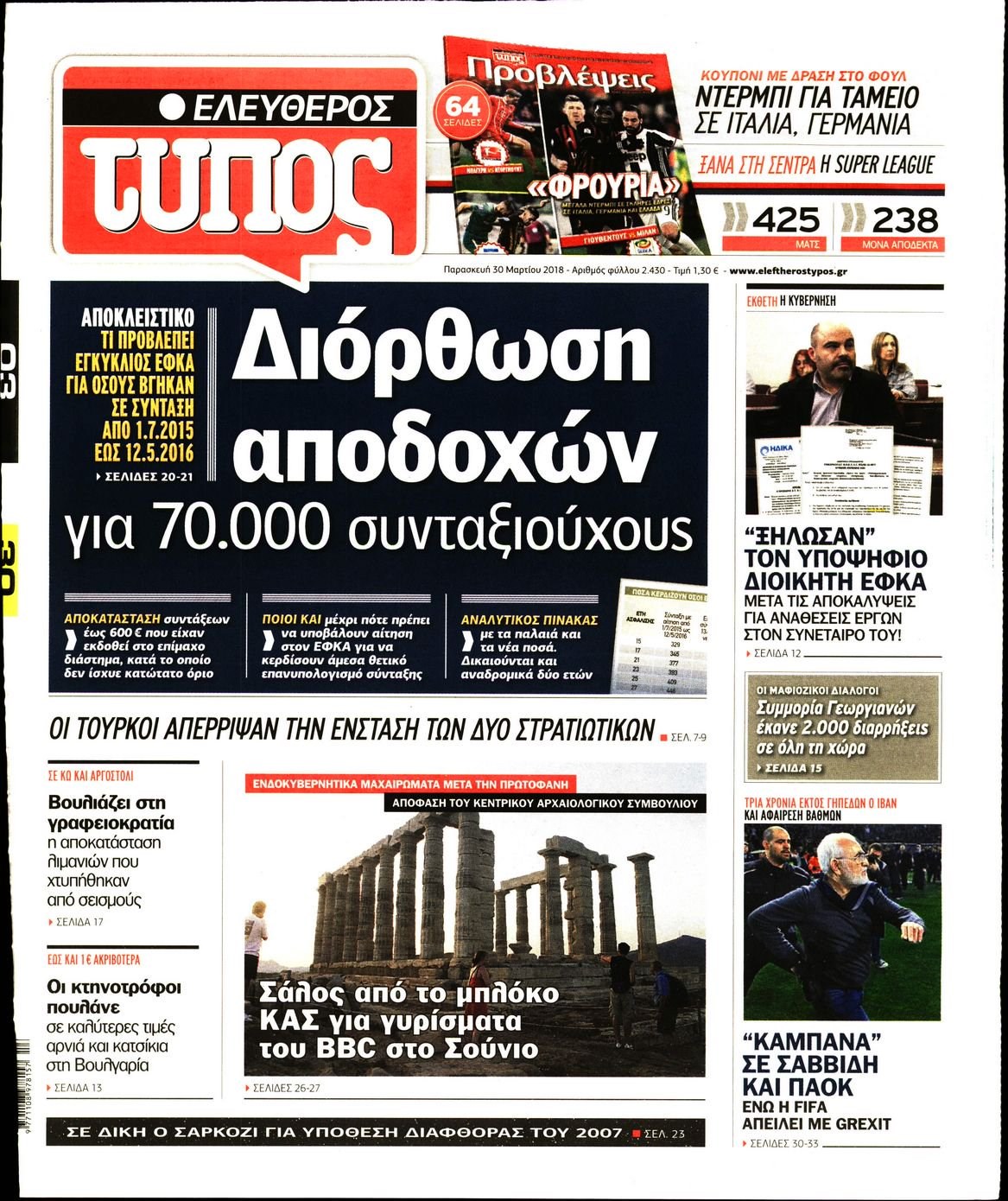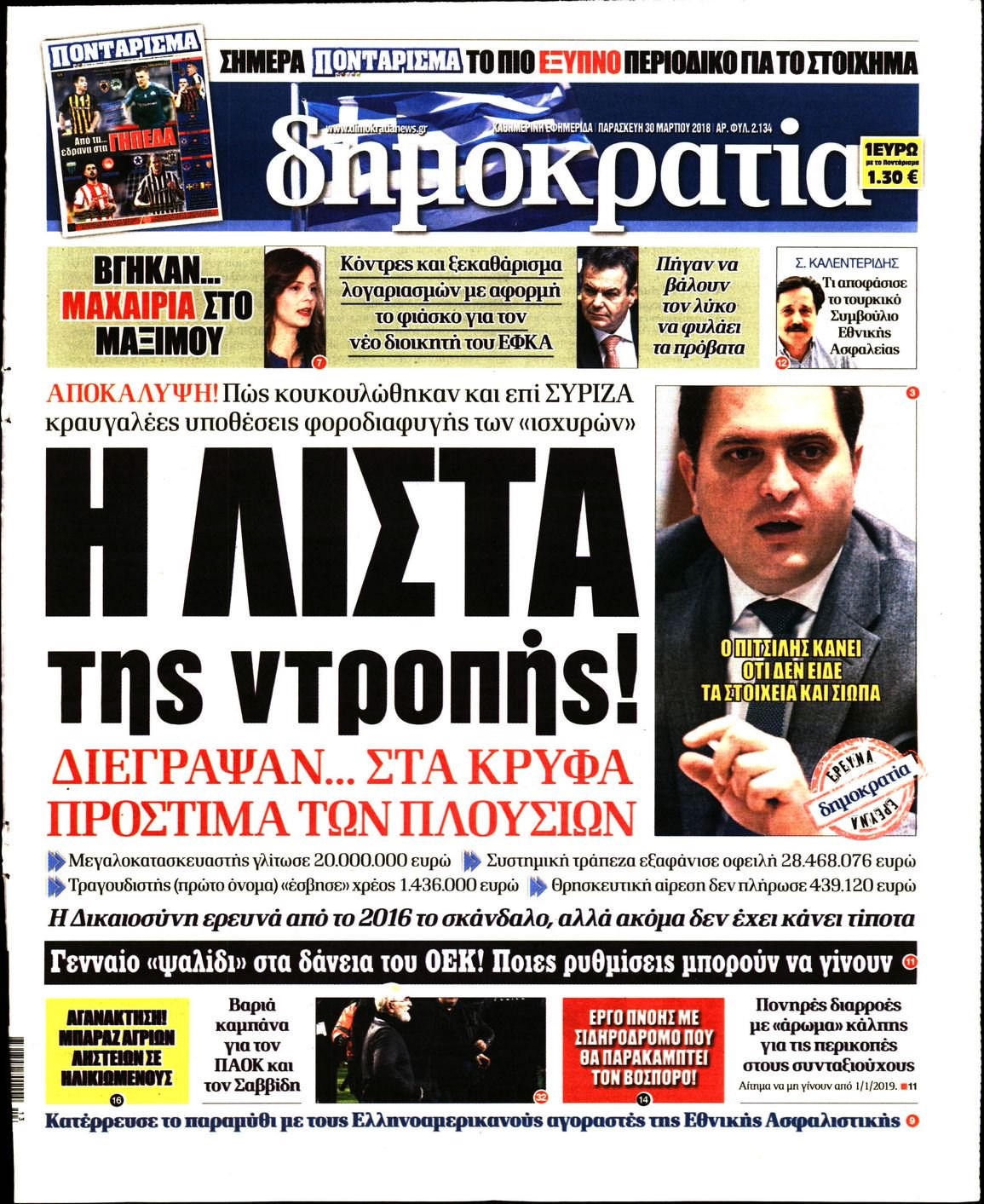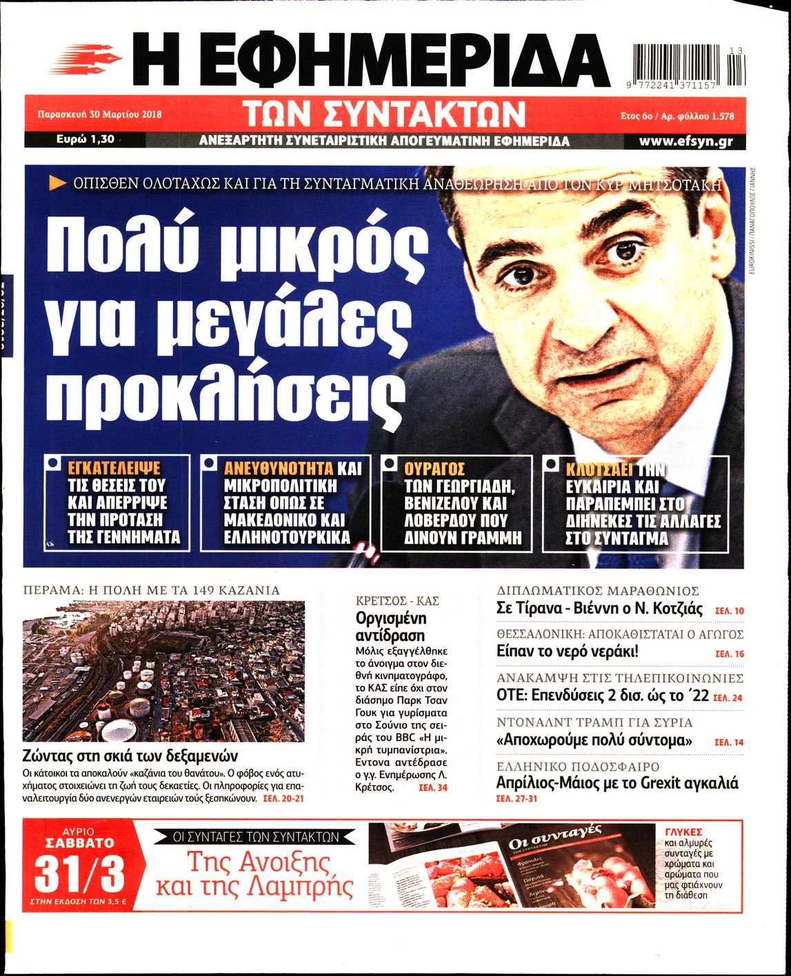 Οι πολιτικές εφημερίδες 30/3/2018 Enikos Newsroom 07:35, Παρασκευή 30 Μαρτίου 2018 Media Διαβάστε τα σημερινά πρωτοσέλιδα των πολιτικών εφημερίδων: ΠΟΛΙΤΙΚΕΣ ΕΦΗΜΕΡΙΔΕΣ ΠΡΩΤΟΣΕΛΙΔΑ Μοιράσου το: σχολίασε κι εσύ (0 σχόλια) Ακολουθήστε το enikos.gr στο Google News και μάθετε πρώτοι όλες τις ειδήσεις Δείτε όλες τις τελευταίες ειδήσεις από την Ελλάδα και τον Κόσμο στο enikos.gr Ειδήσεις Ροή Ειδήσεων 2 ώρες πριν Μπλόκα: Οι αγρότες σηκώνουν τις μπάρες σε διόδια για τους εκδρομείς των Χριστουγέννων και μοιράζουν προϊόντα – Βίντεο 2 ώρες πριν Τσιάρας προς αγρότες: Τα μπλόκα και τα πείσματα δεν ωφελούν – Οι λύσεις περνούν μέσα από τον διάλογο 3 ώρες πριν Αρχεία Έπσταϊν: Οι συγκλονιστικές φωτογραφίες – Ο Μάικλ Τζάκσον, ο Μικ Τζάγκερ και ο Κέβιν Σπέισι ανάμεσα στους διάσημους που απεικονίζονται 1 ώρα πριν Μαθητές διακινούσαν κοκαΐνη και χασίς σε σχολείο της Αττικής – 12 συλλήψεις 1 ώρα πριν Βέλγιο: Άγνωστοι έριξαν κόκκινη μπογιά στο προξενείο της Πολωνίας στις Βρυξέλλες 5 ώρες πριν Μία νέα «χρυσή» περίοδος αρχίζει για 3 ζώδια από σήμερα – «Μία αναπάντεχη ευκαιρία οδηγεί στην επιτυχία» 4 ώρες πριν Διαιτολόγος αποκαλύπτει 9 πρωινές συνήθειες που «λιώνουν» το κοιλιακό λίπος – «Υποστηρίζουν την υγιεινή απώλεια βάρους» 5 ώρες πριν Οι 7 φράσεις που δεν λένε ποτέ οι συναισθηματικά έξυπνοι άνθρωποι κατά τη διάρκεια ενός καβγά 7 ώρες πριν Enerwave: Το νέο «ρεύμα» στη λιανική ενέργειας που αλλάζει την εμπειρία του καταναλωτή 1 λεπτό πριν Πακιστάν: Σε κάθειρξη 17 ετών καταδικάστηκαν ο πρώην πρωθυπουργός Ίμραν Χαν και η σύζυγός του 10 λεπτά πριν Μαρινάκης στον Realfm 97,8: Η κυβέρνηση σέβεται κάθε λογική διεκδίκηση των αγροτών, αλλά και το αίτημα των πολιτών να μην ταλαιπωρούνται 16 λεπτά πριν O Πάντερ MVP της 17ης αγωνιστικής στην Euroleague 24 λεπτά πριν Πέθανε η τραγουδίστρια Κλαούντια Ντελμέρ 32 λεπτά πριν Μία ανεκμετάλλευτη πηγή θα μπορούσε να προσφέρει ανεξάντλητη ενέργεια – Οι επιστήμονες ίσως γνωρίζουν πώς να την ξεκλειδώσουν ENIKOS NETWORK Η αποχή από την αναπαραγωγή παρατείνει τη ζωή στα ζώα, σύμφωνα με μελέτη – Τι ισχύει για τους ανθρώπους; Σημαντικές επαφές στις ΗΠΑ είχε ο υπουργός Υγείας Άδωνις Γεωργιάδης Ευλογιά αιγοπροβάτων: Παρατεταμένη επιζωοτία, αυστηρά μέτρα – Τι ισχύει για τον εμβολιασμό και την ανασύσταση του ζωικού κε... Τσιάρας προς αγρότες: Έχει ικανοποιηθεί το 74% των αιτημάτων – Τα μπλόκα και τα πείσματα δεν ωφελούν Χαρτογραφώντας το «σημείο χωρίς επιστροφή»: Για πρώτη φορά αποκαλύπτεται με λεπτομέρεια το ακανθώδες όριο της ατμόσφαιρας τ... Η Google καταργεί τη λειτουργία «dark web report» – Πώς θα μπορούν οι χρήστες να διαγράφουν τα δεδομένα τους περισσότερα 14:04 , Σάββατο 20 Δεκεμβρίου 2025 Η Realnews αυτής της Κυριακής (21/12/2025) Με τίτλο: «Ασπίδα προστασίας για την Ελλάδα» κυκλοφορεί, αυτήν την Κυριακή, η Realnews. Σημαντ... 12:53 , Σάββατο 20 Δεκεμβρίου 2025 Να μ’ αγαπάς: Το παρελθόν έρχεται στο φως – Καταιγιστικές εξελίξεις στα τελευταία επεισόδια του 2025 Ο Άγγελος αποκαλύπτεται, η Φωτεινή ανησυχεί για τον Λευτέρη και η Ζωή έρχεται αντιμέτωπη με το... 11:41 , Σάββατο 20 Δεκεμβρίου 2025 «Η αγάπη δεν χάνεται ποτέ»: Η μικρού μήκους ταινία κινουμένων σχεδίων που θέτει ερωτήματα για τη ζωή και τον θάνατο Ο θάνατος είναι ένα από τα πιο σκληρά θέματα που καλείται να διαχειριστεί κάποιος στη διάρκεια... 09:30 , Σάββατο 20 Δεκεμβρίου 2025 «Porto Leone: Στη γειτονιά με τα κόκκινα φανάρια» – Ο Χρόνης αποκαλύπτει στην Αλεξάνδρα το μυστικό για το παι