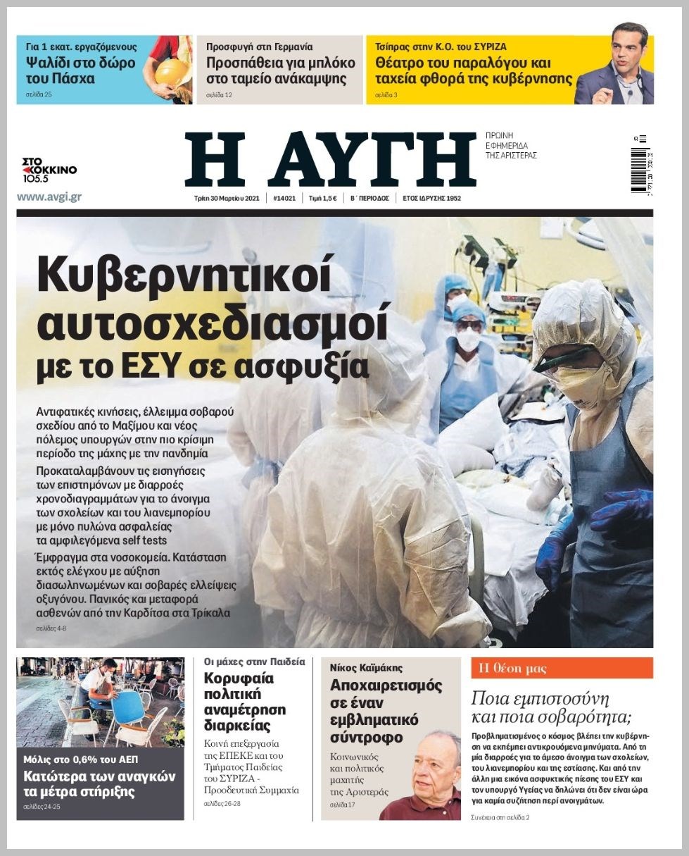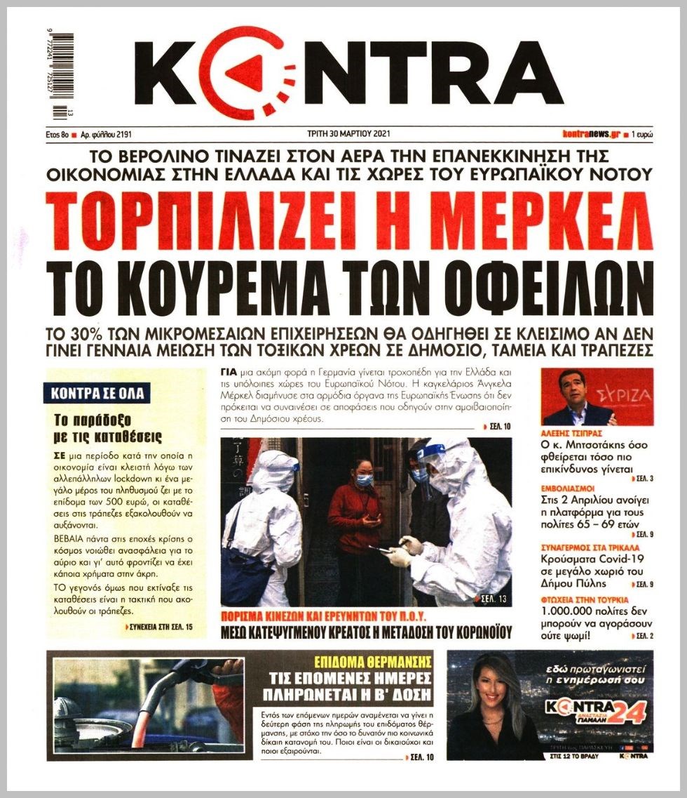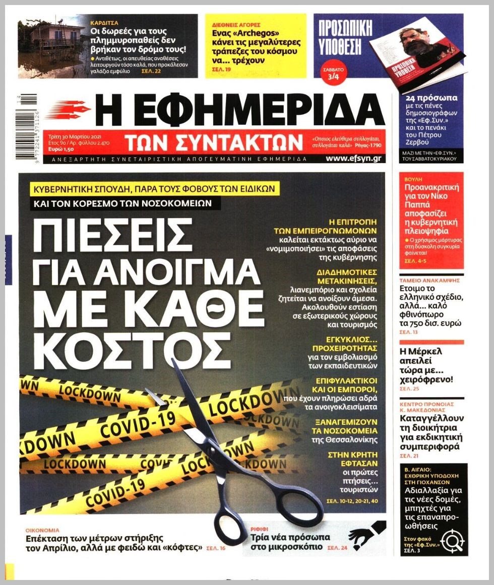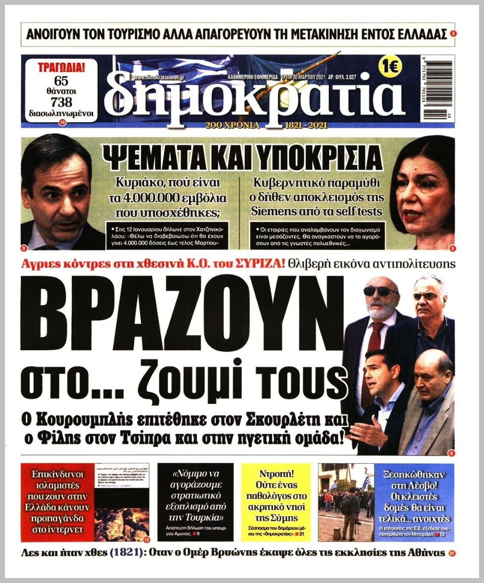 Οι πολιτικές εφημερίδες 30/3/2021 Διονύσης Νίκκας 06:13, Τρίτη 30 Μαρτίου 2021 Media Διαβάστε τα πρωτοσέλιδα των πολιτικών εφημερίδων… ΕΦΗΜΕΡΙΔΕΣ ΠΡΩΤΟΣΕΛΙΔΑ Μοιράσου το: σχολίασε κι εσύ (0 σχόλια) Ακολουθήστε το enikos.gr στο Google News και μάθετε πρώτοι όλες τις ειδήσεις Δείτε όλες τις τελευταίες ειδήσεις από την Ελλάδα και τον Κόσμο στο enikos.gr Ειδήσεις Ροή Ειδήσεων 4 ώρες πριν Υπόθεση Έπσταϊν: Το Υπουργείο Δικαιοσύνης δημοσιοποίησε μια σειρά από εξαιρετικά επεξεργασμένα αρχεία – «Λείπουν τα πιο σημαντικά έγγραφα», λένε οι Δημοκρατικοί 54 λεπτά πριν Γιορτές με μπλόκα για τους αγρότες: Ανοίγουν διόδια και μοιράζουν προϊόντα στους ταξιδιώτες 1 ώρα πριν Εξαφάνιση 33χρονου γιατρού στην Κρήτη: «Άναψα τα φώτα, τρόμαξε και άρχισε να τρέχει στα χωράφια» – Η τελευταία διαδρομή και η μαρτυρία «κλειδί» 3 ώρες πριν Ο «χάρτης» με τις αυξήσεις και τις φοροελαφρύνσεις του 2026 – Ποιοι και πόσα κερδίζουν 1 ώρα πριν Τα αρχεία του Έπσταϊν αποκαλύπτουν φωτογραφία του έκπτωτου πρίγκιπα Άντριου – Είναι ξαπλωμένος στην αγκαλιά 5 γυναικών 1 ώρα πριν Μία νέα «χρυσή» περίοδος αρχίζει για 3 ζώδια από σήμερα – «Μία αναπάντεχη ευκαιρία οδηγεί στην επιτυχία» 5 ώρες πριν Αυγά: Πόσα μπορείτε να τρώτε την ημέρα με ασφάλεια για μέγιστη πρόσληψη πρωτεΐνης 3 ώρες πριν Αρχαιολόγοι ανακάλυψαν σε χωράφι απεικόνιση 600 ετών ενός Αγίου – Τα στοιχεία που δείχνουν ότι μαρτύρησε 2 ώρες πριν Αγχώνεται για το χριστουγεννιάτικο δώρο που πήρε στην πλούσια σύντροφό του – «Φοβάμαι πως θα το βρει φθηνιάρικο, φοράει βραχιόλια Cartier» 4 λεπτά πριν Τραγωδία στην άσφαλτο στα Χανιά: Νεκρός 37χρονος οδηγός ΙΧ – Τον βρήκαν ώρες μετά το τροχαίο 12 λεπτά πριν Τα Labubu «μετακομίζουν» στο Χόλιγουντ: Η Sony Pictures ετοιμάζει live-action ταινία με τον σκηνοθέτη του «Wonka» 19 λεπτά πριν Νέες ταυτότητες: Μεγάλη αναμονή για ραντεβού στην Αττική – Τέλος τα ταξίδια εκτός Ελλάδος από τον Αύγουστο για όσους δεν έχουν αλλάξει 28 λεπτά πριν Οι 7 φράσεις που δεν λένε ποτέ οι συναισθηματικά έξυπνοι άνθρωποι κατά τη διάρκεια ενός καβγά 31 λεπτά πριν Τηλεθέαση (19/12): Ανατροπές και πρωτιές στην πρωινή ζώνη ENIKOS NETWORK Είστε μόνιμα απρόσεκτοι; 3 σημάδια που δείχνουν ότι μπορεί να είναι σύμπτωμα πάθησης Πόσα κιλά παίρνουμε πραγματικά τα Χριστούγεννα, σύμφωνα με την επιστήμη – Πώς να το αποτρέψουμε; e-ΕΦΚΑ και ΔΥΠΑ: Έρχονται νέες πληρωμές έως τις 24 Δεκεμβρίου – Ποιοι πάνε ταμείο Επίδομα παιδιού: Τι αλλάζει από το 2026 – Το όφελος από τις φορολογικές ελαφρύνσεις Χαρτογραφώντας το «σημείο χωρίς επιστροφή»: Για πρώτη φορά αποκαλύπτεται με λεπτομέρεια το ακανθώδες όριο της ατμόσφαιρας τ... Η Google καταργεί τη λειτουργία «dark web report» – Πώς θα μπορούν οι χρήστες να διαγράφουν τα δεδομένα τους περισσότερα 09:30 , Σάββατο 20 Δεκεμβρίου 2025 «Porto Leone: Στη γειτονιά με τα κόκκινα φανάρια» – Ο Χρόνης αποκαλύπτει στην Αλεξάνδρα το μυστικό για το παιδί της Λένας Η μεγάλη δραματική σειρά του Apha «Porto Leone: Στη γειτονιά με τα κόκκινα φανάρια» μας μεταφέ... 08:14 , Σάββατο 20 Δεκεμβρίου 2025 Τρομεροί γονείς: Η Μαρία Καβογιάννη εισβάλλει στο σπίτι της οικογένειας Στεφανίδη Όσα θα δούμε στο νέο διπλό επεισόδιο της σειράς «Τρομεροί γονείς», σήμερα Σάββατο 20 Δεκεμβρίο... 05:48 , Σάββατο 20 Δεκεμβρίου 2025 Οι οικονομικές εφημερίδες 20/12/2025 Διαβάστε τα πρωτοσέλιδα από τις οικονομικές εφημερίδες, σήμερα 20/12/2025. 05:43 , Σάββατο 20 Δεκεμβρίου 2025 Οι αθλητικές εφημερίδες 20/12/2025 Διαβάστε τα πρωτοσέλιδα από τις αθλητικές