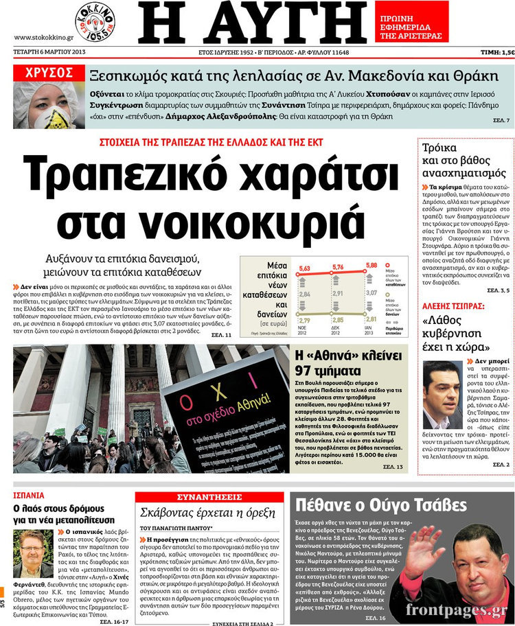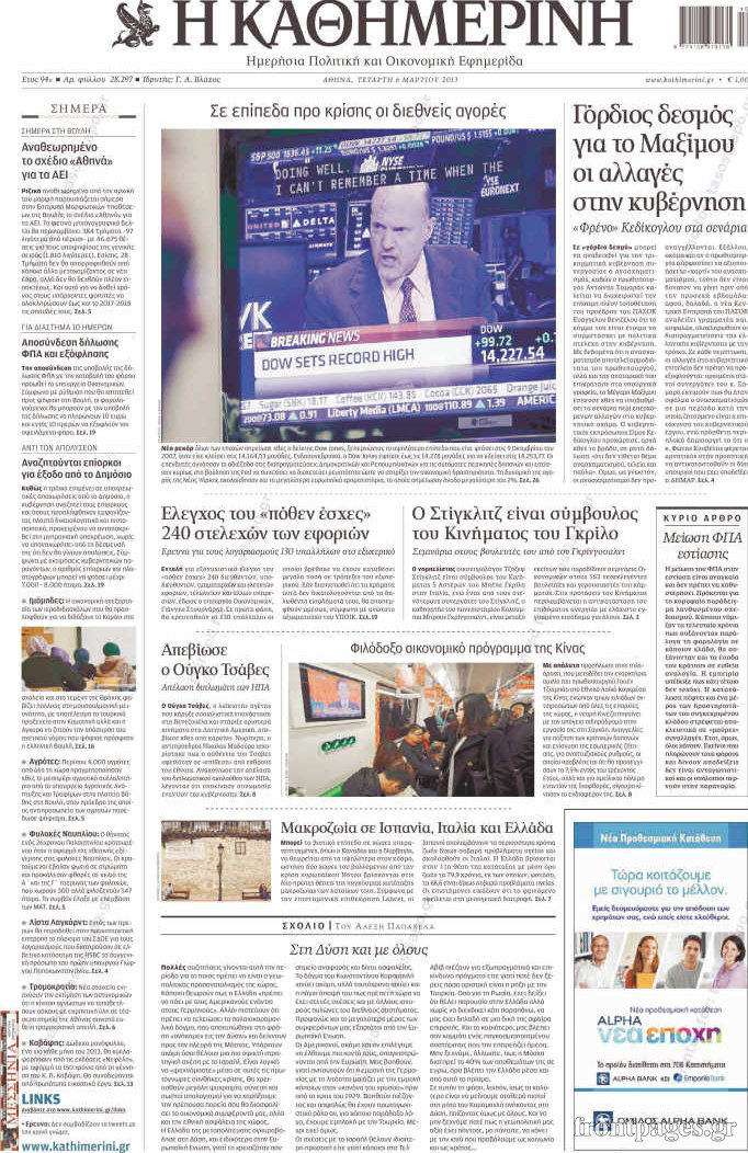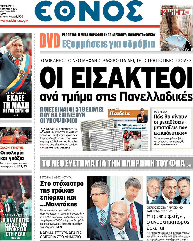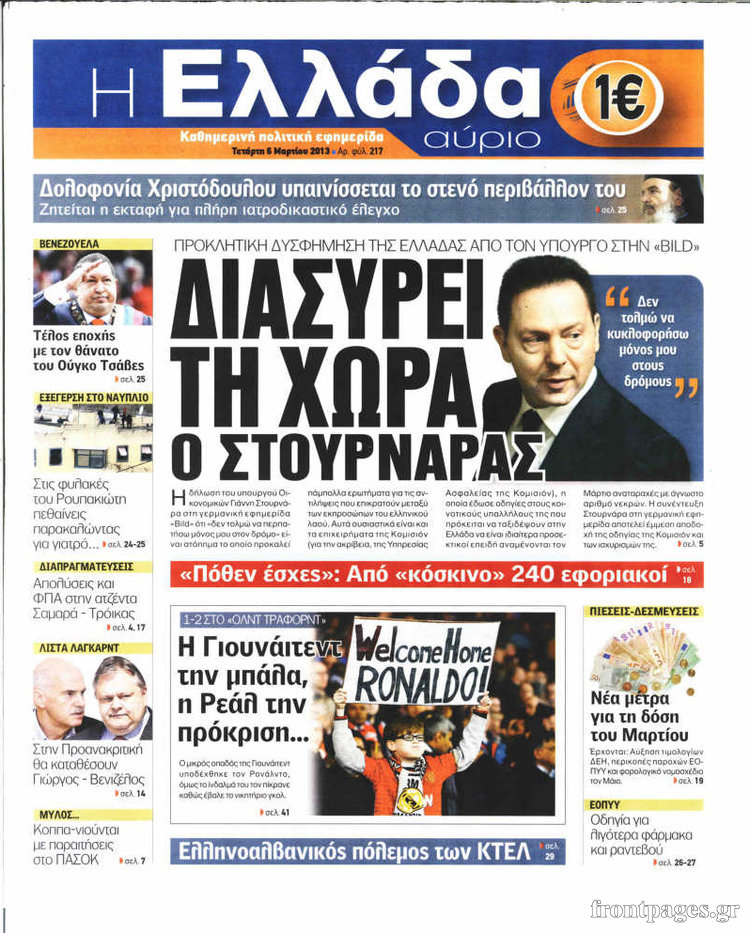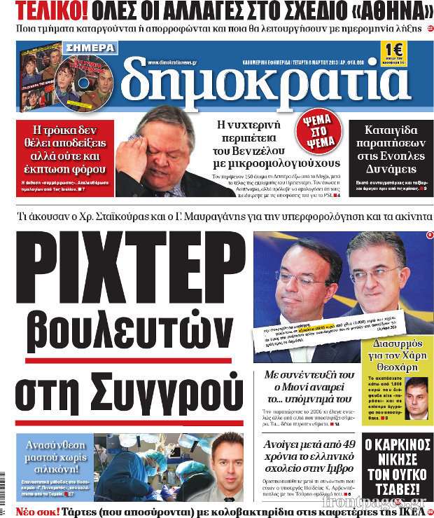 Οι πολιτικές εφημερίδες Enikos Newsroom 08:49, Τετάρτη 06 Μαρτίου 2013 Media Οι πολιτικές εφημερίδες ΕΙΔΗΣΕΙΣ ΕΦΗΜΕΡΙΔΕΣ ΠΟΛΙΤΙΚΕΣ ΕΦΗΜΕΡΙΔΕΣ ΠΡΩΤΟΣΕΛΙΔΑ Μοιράσου το: σχολίασε κι εσύ (0 σχόλια) Ακολουθήστε το enikos.gr στο Google News και μάθετε πρώτοι όλες τις ειδήσεις Δείτε όλες τις τελευταίες ειδήσεις από την Ελλάδα και τον Κόσμο στο enikos.gr Ειδήσεις Ροή Ειδήσεων 2 ώρες πριν Αγρότες: Έδωσαν στη δημοσιότητα τη λίστα με τα αιτήματά τους – Δείτε αναλυτικά τι ζητούν 32 λεπτά πριν Τρομοκρατική επίθεση στο Σίδνεϊ: Νέο βίντεο από τα 15 λεπτά της φρίκης – Παιδιά και γονείς πεσμένοι στο έδαφος, οι φωνές και οι εκκλήσεις 4 ώρες πριν ΟΠΕΚΕΠΕ-Κρήτη: Προθεσμία να απολογηθούν από την Τρίτη έως την Πέμπτη έλαβαν οι 16 συλληφθέντες 44 λεπτά πριν Τραγική εξέλιξη στο Αίγιο: Πέθανε ο 43χρονος που γρονθοκόπησε γιατρό στο νοσοκομείο 1 ώρα πριν Θεσσαλονίκη: «Δεν έκανα κάτι παράνομο» είπε ο οδηγός του λεωφορείου – Αφέθηκε ελεύθερος, προκαταρκτική έρευνα διέταξε η εισαγγελέας 39 λεπτά πριν Οι 7 βραδινές συνήθειες που μαρτυρούν ότι κάποιος υποφέρει από βαθιά μοναξιά, σύμφωνα με την ψυχολογία 4 ώρες πριν Τα 5 ζώδια που ευνοούνται στα ερωτικά τους έως τις 21 Δεκεμβρίου – «Η επόμενη σχέση σας θα είναι καθοριστική» 5 ώρες πριν Γεωλογική αποκάλυψη: Επιστήμονες εξηγούν πώς η Ιβηρική Χερσόνησος περιστρέφεται σαν… ρολόι 9 ώρες πριν Τα 8 πράγματα που τα ευτυχισμένα ζευγάρια δεν κάνουν ποτέ μπροστά στα παιδιά τους 8 λεπτά πριν Κουτσούμπας από τα μπλόκα των αγροτών στη Φθιώτιδα: «Ο κόμπος έχει φτάσει στο χτένι» 16 λεπτά πριν Ναταλία Γερμανού: «Την ορφάνια την ένιωσα όταν πέθανε η γιαγιά μου» 24 λεπτά πριν Αττική: Συνελήφθησαν 15 παρκαδόροι και 8 υπεύθυνοι καταστημάτων για αυθαίρετη κατάληψη δημοσίων χώρων 32 λεπτά πριν Τρομοκρατική επίθεση στο Σίδνεϊ: Νέο βίντεο από τα 15 λεπτά της φρίκης – Παιδιά και γονείς πεσμένοι στο έδαφος, οι φωνές και οι εκκλήσεις 39 λεπτά πριν Οι 7 βραδινές συνήθειες που μαρτυρούν ότι κάποιος υποφέρει από βαθιά μοναξιά, σύμφωνα με την ψυχολογία ENIKOS NETWORK 8 κορυφαίες συμβουλές για άνδρες που θέλουν φλογερή σεξουαλική ζωή, σύμφωνα με ειδικό Baby botox: Ποια τα οφέλη και οι κίνδυνοι του να ξεκινήσει κάποιος τις ενέσεις πριν εμφανιστούν ρυτίδες Δημόσιο: Αποτελεσματικότητα και διαφάνεια μέσω του ψηφιακού μετασχηματισμού – Παπαστεργίου: «Ένα στοίχημα που κερδίζουμε χρ... Πορτοκαλί τιμολόγια ρεύματος: Πότε θα αρχίσει η εφαρμογή τους – Τι ισχύει για νοικοκυριά και επιχειρήσεις – Παραδείγματα Σύγχρονος Νοστράδαμος: Προειδοποιεί για «μεγάλο γεγονός» τους επόμενους μήνες που θα συγκλονίσει τη Βρετανία και τον κόσμο Τεστ παρατηρητικότητας: Μπορείτε να βρείτε τις 3 διαφορές στις εικόνες με έναν πιγκουίνο σε 14 δευτερόλεπτα περισσότερα 17:38 , Κυριακή 14 Δεκεμβρίου 2025 Τηλεθέαση (13/12): Τα ποσοστά για το βράδυ του Σαββάτου Η «μάχη» της prime time για την τηλεθέαση, συνεχίστηκε δυναμικά το βράδυ του Σαββάτου (13/12).... 16:32 , Κυριακή 14 Δεκεμβρίου 2025 Τηλεθέαση (13/12): Πώς κινήθηκαν οι εκπομπές στην πρωινή ζώνη το Σάββατο Με αμείωτη ένταση συνεχίστηκε η μάχη για την τηλεθέαση στην πρωινή ζώνη των τηλεοπτικών καναλι... 15:07 , Κυριακή 14 Δεκεμβρίου 2025 IQ160: Η Μαρίνα στέλνει το φούτερ του Τηλέμαχου για το τεστ πατρότητας Η Πηνελόπη αποφασίζει να κάνει αμνιοπαρακέντηση, για να βεβαιωθεί για την υγεία του μωρού της ... 12:46 , Κυριακή 14 Δεκεμβρίου 2025 Η Realnews στο www.pressreader.com Διαβάστε την ψηφιακή έκδοση της εφημερίδας στην οθόνη του κινη