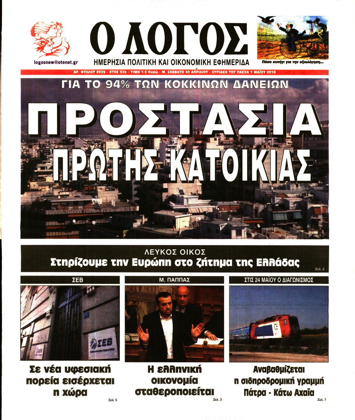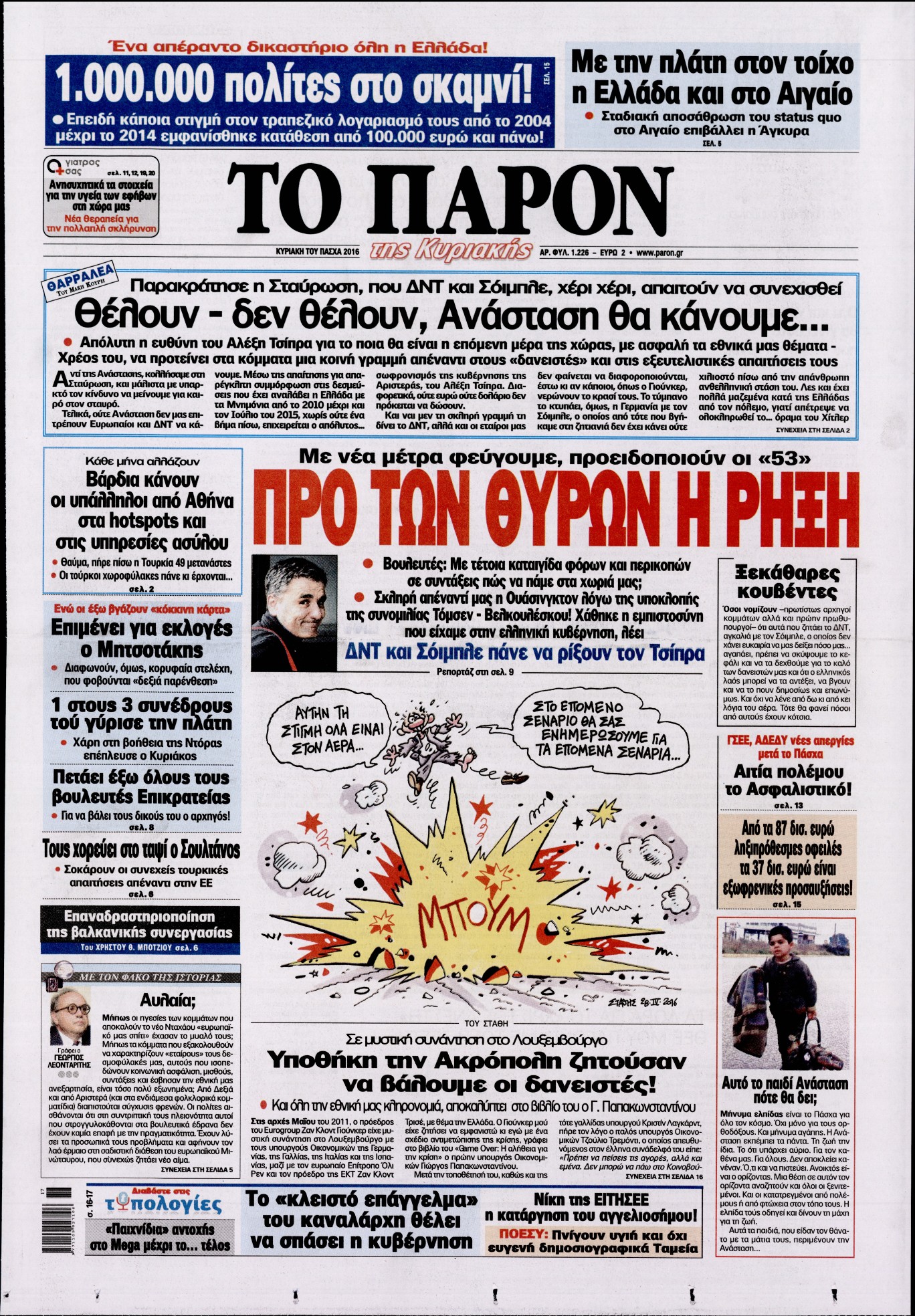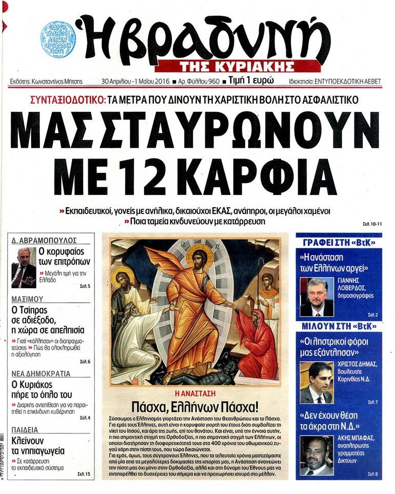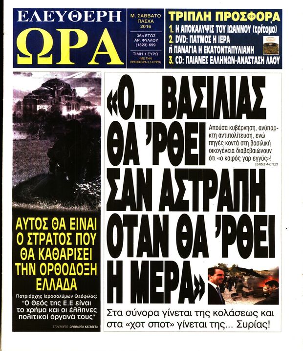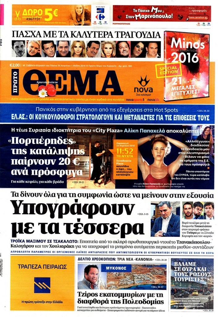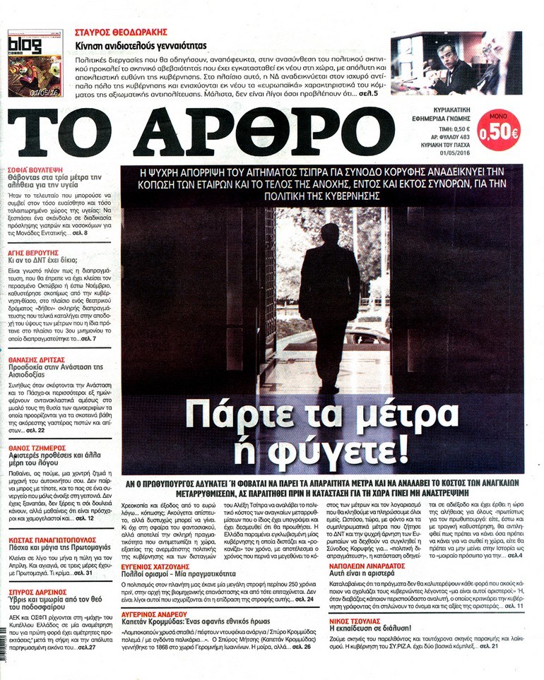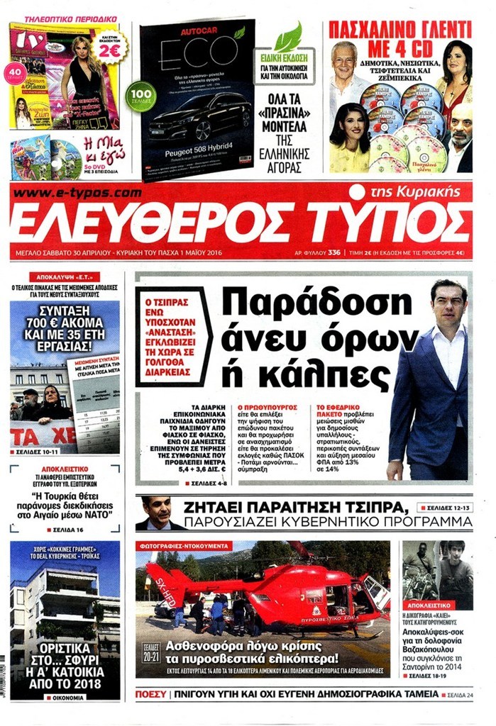 Oι πολιτικές εφημερίδες 30/4/2016 Enikos Newsroom 05:11, Σάββατο 30 Απριλίου 2016 Media Διαβάστε τα σημερινά πρωτοσέλιδα των πολιτικών εφημερίδων: ΠΟΛΙΤΙΚΕΣ ΕΦΗΜΕΡΙΔΕΣ ΠΡΩΤΟΣΕΛΙΔΑ Μοιράσου το: σχολίασε κι εσύ (0 σχόλια) Ακολουθήστε το enikos.gr στο Google News και μάθετε πρώτοι όλες τις ειδήσεις Δείτε όλες τις τελευταίες ειδήσεις από την Ελλάδα και τον Κόσμο στο enikos.gr Ειδήσεις Ροή Ειδήσεων 22 λεπτά πριν Τραμπ: Δεν αποκλείει την πιθανότητα ενός πολέμου στη Βενεζουέλα – «Ο Μαδούρο ξέρει καλύτερα από τον καθένα τι ακριβώς θέλω» 16 λεπτά πριν Ουκρανία: Η άνευ προηγουμένου επίθεση σε ρωσικό τάνκερ στη Μεσόγειο και το μήνυμα προς στον Πούτιν – Το «μακρύ χέρι» του Κιέβου 3 ώρες πριν Εμπλοκή και αερομαχίες με οπλισμένα τουρκικά F-16 στο Αιγαίο 3 ώρες πριν Πούτιν: «Ναι, είμαι ερωτευμένος» – Βίντεο από τη σπάνια προσωπική παραδοχή του 1 ώρα πριν Ανδρέας Λυκουρέντζος: Υπέβαλε την παραίτησή του ο πρόεδρος του ΕΛΓΑ, αλλά δεν έγινε δεκτή – Όλο το παρασκήνιο 2 ώρες πριν Αριθμολογία: Οι άνθρωποι που έχουν γεννηθεί αυτές τις 4 ημερομηνίες, συχνά παρεξηγούνται – «Η καλοσύνη τους κρύβει τεράστια δύναμη» 4 ώρες πριν Μήπως έχετε χάσει τον εαυτό σας στη σχέση σας; 7 «αθόρυβες» υποχωρήσεις που μάλλον κάνατε, χωρίς να το συνειδητοποιήσετε 3 ώρες πριν Ξεχάστε το καθάρισμα το Σαββατοκύριακο: Ο «κανόνας των 20 λεπτών» που θα σας λύσει τα χέρια 31 λεπτά πριν Ύπνος: Μια κρυφή κατάσταση του εγκεφάλου πριν από τον ύπνο μπορεί να είναι το “κλειδί” για υψηλή ευφυΐα και δημιουργικότητα 5 λεπτά πριν Χάρι και Μέγκαν: Η σπάνια οικογενειακή φωτογραφία με τον Άρτσι και τη Λίλιμπετ – Τι σχεδιάζουν για τα Χριστούγεννα 11 λεπτά πριν Βασίλης Καρράς: «Είναι πάντα δίπλα μου, δεν έφυγε…», λέει ο αδελφός του 16 λεπτά πριν Ουκρανία: Η άνευ προηγουμένου επίθεση σε ρωσικό τάνκερ στη Μεσόγειο και το μήνυμα προς στον Πούτιν – Το «μακρύ χέρι» του Κιέβου 22 λεπτά πριν Τραμπ: Δεν αποκλείει την πιθανότητα ενός πολέμου στη Βενεζουέλα – «Ο Μαδούρο ξέρει καλύτερα από τον καθένα τι ακριβώς θέλω» 23 λεπτά πριν Κηφισιά: Με πολλές απουσίες κόντρα στον Ολυμπιακό – «Last dance» για τον Τεττέη ENIKOS NETWORK Το ΕΚΑΒ τιμήθηκε από την Ακαδημία Αθηνών για τα 40 χρόνια προσφοράς του Έχετε πραγματικά μεγάλη καρδιά; 10 χαρακτηριστικά όσων έχουν καλοσύνη ΑΑΔΕ: Νέες αναβαθμίσεις στο Ψηφιακό Πελατολόγιο και την εφαρμογή myDATAapp – Τι πρέπει να γνωρίζετε Όμιλος ΔΕΗ: Νέα ορόσημα και ενισχυμένη διαφάνεια στην ετήσια Έκθεση Βιώσιμης Ανάπτυξης Χαρτογραφώντας το «σημείο χωρίς επιστροφή»: Για πρώτη φορά αποκαλύπτεται με λεπτομέρεια το ακανθώδες όριο της ατμόσφαιρας τ... Η Google καταργεί τη λειτουργία «dark web report» – Πώς θα μπορούν οι χρήστες να διαγράφουν τα δεδομένα τους περισσότερα 20:37 , Παρασκευή 19 Δεκεμβρίου 2025 Don’t Forget The Lyrics: Η Έλλη Κοκκίνου υποδέχεται 4 παίκτες που θα κάνουν τα πάντα για να μη χάσουν ούτε… μισή λέξη από τους στίχους Το «Don’t Forget The Lyrics» επιστρέφει απόψε, Παρασκευή 19 Δεκεμβρίου, στις 21:00 με νέο επει... 19:31 , Παρασκευή 19 Δεκεμβρίου 2025 GNTM: Απόψε ο μεγάλος τελικός για τους 4 φιναλίστ Έπειτα από μήνες γεμάτους μόδα, δημιουργία και έντονες αναμετρήσεις, το GNTM 2025 κορυφώνεται,... 18:11 , Παρασκευή 19 Δεκεμβρίου 2025 Το σόι σου: Ο Άρης έρχεται στην Ελλάδα για τις γιορτές των Χριστουγέννων – Τι θα δούμε στο αποψινό εορταστικό επεισόδιο Ένα απολαυστικό, εορταστικό επεισόδιο της σειράς “Το σόι σου”, γεμάτο ευτράπελα αλ... 15:15 , Παρασκευή 19 Δεκεμβρίου 2025 Την Κυριακή με τη Realnews: Ό