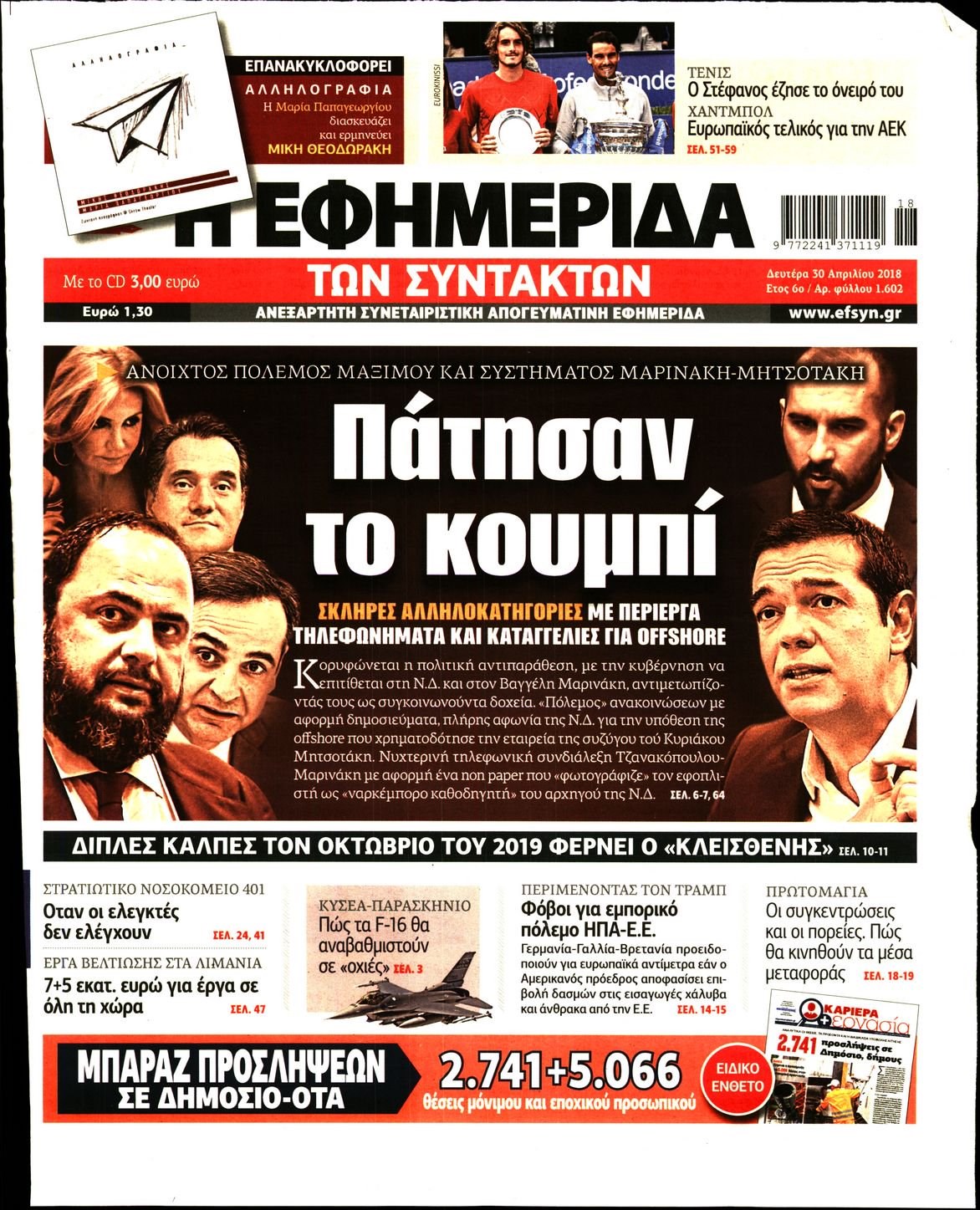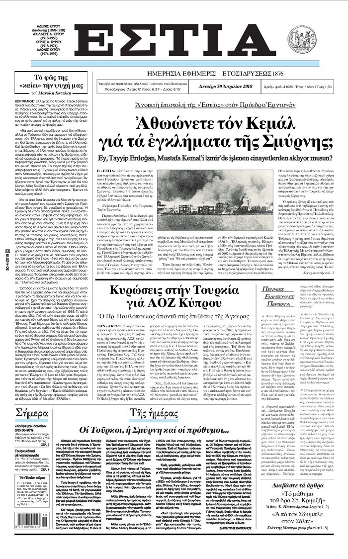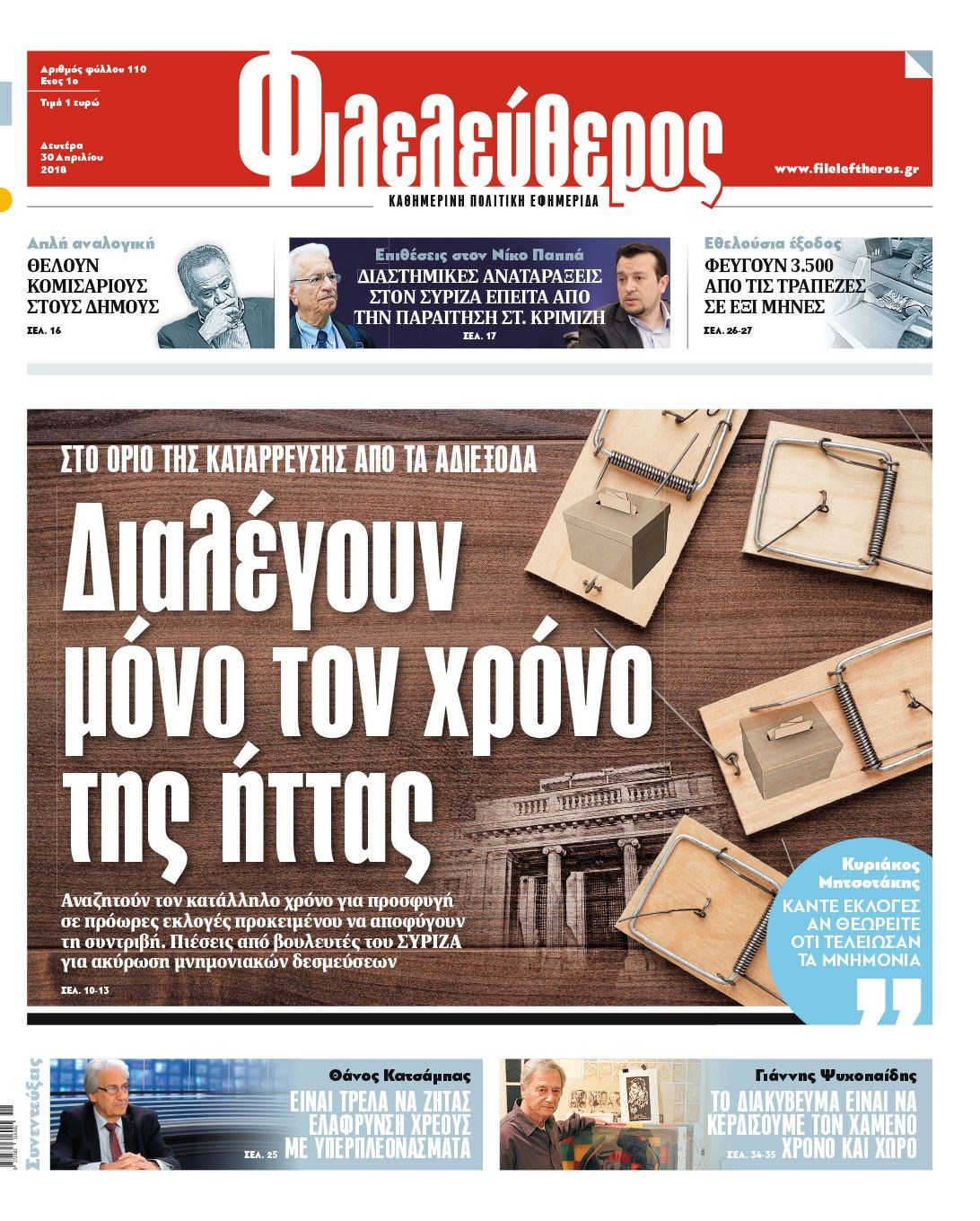 Οι πολιτικές εφημερίδες 30/4/2018 Κώστας Τεό 06:56, Δευτέρα 30 Απριλίου 2018 Media Διαβάστε τα σημερινά πρωτοσέλιδα των πολιτικών εφημερίδων: ΠΟΛΙΤΙΚΕΣ ΕΦΗΜΕΡΙΔΕΣ ΠΡΩΤΟΣΕΛΙΔΑ Μοιράσου το: σχολίασε κι εσύ (0 σχόλια) Ακολουθήστε το enikos.gr στο Google News και μάθετε πρώτοι όλες τις ειδήσεις Δείτε όλες τις τελευταίες ειδήσεις από την Ελλάδα και τον Κόσμο στο enikos.gr Ειδήσεις Ροή Ειδήσεων 2 ώρες πριν Αγρότες: Σήκωσαν τις μπάρες στα διόδια των Αφιδνών – ΦΩΤΟ και ΒΙΝΤΕΟ 5 ώρες πριν Διάλογοι-σοκ από το κύκλωμα που διακινούσε ναρκωτικά σε σχολεία – «Αν δεν είσαι εκεί σε 5 λεπτά, θα φας πολύ ξύλο μπρο» 2 ώρες πριν Κωνσταντίνος Ανεστίδης: «Είμαι αθώος, είμαι καθαρός σαν αστραπή και η αστραπή θα πέσει στο κεφάλι τους» – ΒΙΝΤΕΟ 3 ώρες πριν Εγκαινιάστηκε ο αρχαιολογικός χώρος του Ανακτόρου της Πέλλας – Παρουσιάστηκαν για πρώτη φορά δύο ελληνιστικά αγάλματα 3 ώρες πριν Δήμος Αθηναίων: Ξεκινά τη Δευτέρα η επιστροφή πινακίδων οχημάτων από τη Δημοτική Αστυνομία 5 ώρες πριν Αν ανήκετε σε ένα από αυτά τα 3 ζώδια, το 2026 θα είναι η χρονιά σας – «Η ζωή σας βελτιώνεται σε όλους τους τομείς» 2 ώρες πριν Είσοδος σπιτιού: Πώς να οργανώσετε το χώρο πριν έρθουν οι καλεσμένοι σας – Η ρουτίνα 3 βημάτων 48 λεπτά πριν Οι άνθρωποι που βιώνουν χρόνια μοναξιά, κάνουν αυτά τα 7 πράγματα τα Χριστούγεννα, χωρίς να το καταλαβαίνουν 1 ημέρα πριν Enerwave: Το νέο «ρεύμα» στη λιανική ενέργειας που αλλάζει την εμπειρία του καταναλωτή 7 λεπτά πριν ΑΕΛ – Ατρόμητος 0-0: Το απόλυτο… μηδέν στη Λάρισα 16 λεπτά πριν Λίβανος: Ένας νεκρός και ένας τραυματίας από ισραηλινά πλήγματα 26 λεπτά πριν Αγρότες: Αποκλεισμένη η διέλευση οχημάτων στα Πράσινα Φανάρια – Κλειστός για μεταφορές ο Προμαχώνας 34 λεπτά πριν Πηγές ΑΑΔΕ για τον έλεγχο στα γραφεία του Συλλόγου Θυμάτων Τεμπών: «Ουδείς είναι υπεράνω του νόμου» 46 λεπτά πριν Δύο σεισμοί μέσα σε λίγα λεπτά ανοιχτά της Ραφήνας – Έγιναν αισθητοί σε πολλές περιοχές της Αττικής ENIKOS NETWORK Οι γυναίκες έχουν βρει μια νέα απόλαυση στην κρεβατοκάμαρα που οι περισσότεροι άνδρες αγνοούν Christmas glow: 5 χρυσές συμβουλές για επιδερμίδα που λάμπει από ομορφιά τα Χριστούγεννα Λιανεμπόριο: Οι προσδοκίες της αγοράς για τα Χριστούγεννα – Στόχος ο τζίρος να ξεπεράσει τα 4,5 δισ. ευρώ τον Δεκέμβριο Ηλεκτρονικές πληρωμές: Δεύτερη η Ελλάδα στην Ε.Ε. στην εξάπλωση της χρήσης καρτών τη δεκαετία 2015-2024 – Τα στοιχεία ανά κ... Χαρτογραφώντας το «σημείο χωρίς επιστροφή»: Για πρώτη φορά αποκαλύπτεται με λεπτομέρεια το ακανθώδες όριο της ατμόσφαιρας τ... Η Google καταργεί τη λειτουργία «dark web report» – Πώς θα μπορούν οι χρήστες να διαγράφουν τα δεδομένα τους περισσότερα 17:18 , Κυριακή 21 Δεκεμβρίου 2025 «Η Μεγάλη Χίμαιρα»: Μάγεψε το κοινό κατά την avant-première της προβολής της Την Πρωτοχρονιά (Πέμπτη 1η Ιανουαρίου 2026) στο ERTFLIX θα γίνει η πρεμιέρα της πολυαναμενόμεν... 15:08 , Κυριακή 21 Δεκεμβρίου 2025 Μια νύχτα μόνο: Η Αρετή και ο Οδυσσέας έρχονται και πάλι κοντά Το νέο επεισόδιο της δραματικής σειράς του MEGA «Μια νύχτα μόνο», θα προβληθεί απόψε Κυριακή 2... 14:24 , Κυριακή 21 Δεκεμβρίου 2025 IQ 160: Ο φάκελος με το τεστ πατρότητας ανοίγει, απόψε στις 21:00 στο Star Ανατρεπτικό το νέο διπλό επεισόδιο της σειράς “IQ 160” στις 21:00 στο Star. Ο Τηλέ... 09:43 , Κυριακή 21 Δεκεμβρίου 2025 Το λάθος στην ταινία Die Hard που άφησε άναυδους τους θαυμαστές του Μπρους Γουίλις Ένας φανατικός των ταινιών άφησε άναυδους τους θαυμαστές του Die Hard, επισημαίνοντας τρία βασ... ΤΕΛΕΥΤΑΙΕΣ ΕΙΔΗΣΕΙΣ