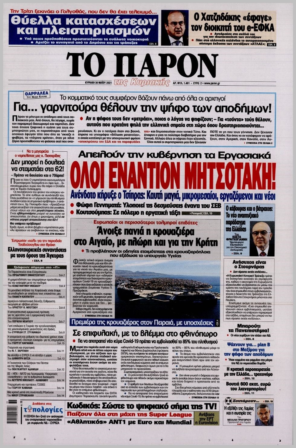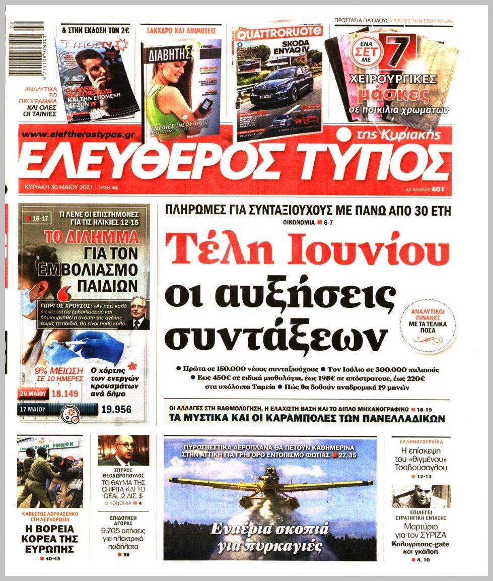 Οι πολιτικές εφημερίδες 30/5/2021 Διονύσης Νίκκας 07:06, Κυριακή 30 Μαΐου 2021 Media Διαβάστε τα πρωτοσέλιδα των πολιτικών εφημερίδων… ΕΦΗΜΕΡΙΔΕΣ ΠΡΩΤΟΣΕΛΙΔΑ Μοιράσου το: σχολίασε κι εσύ (0 σχόλια) Ακολουθήστε το enikos.gr στο Google News και μάθετε πρώτοι όλες τις ειδήσεις Δείτε όλες τις τελευταίες ειδήσεις από την Ελλάδα και τον Κόσμο στο enikos.gr Ειδήσεις Ροή Ειδήσεων 2 ώρες πριν Αγρότες: «Σφραγίζουν» από σήμερα με μπλόκα εθνικές οδούς και τελωνεία – Ο χάρτης των κινητοποιήσεων 2 ώρες πριν Οργή στη Μινεάπολη: Πράκτορας της ICE πυροβόλησε και σκότωσε 37χρονη γυναίκα οδηγό – Το χρονικό της ομοσπονδιακής επιχείρησης που βάφτηκε με αίμα 26 λεπτά πριν Πάτρα: Αναζητείται 16χρονος που γρονθοκόπησε ανήλικο και βιντεοσκόπησε την επίθεση 1 ώρα πριν Γαλλία: Αγρότες με τρακτέρ απέκλεισαν το κέντρο του Παρισιού – Διαμαρτυρίες κάτω από τον Πύργο του Άιφελ 2 ώρες πριν Γιάνης Βαρουφάκης: «Θύελλα» αντιδράσεων μετά τις δηλώσεις του για τα ναρκωτικά – Η εισαγγελική παρέμβαση και η απάντηση του 15 λεπτά πριν Τα 4 ζώδια που παίρνουν το «δώρο» που δικαιούνται – «Το σύμπαν σας επιβραβεύει για τις σωστές επιλογές σας» 4 ώρες πριν Οπτική ψευδαίσθηση: Μόνο όσοι έχουν τέλεια όραση μπορούν να εντοπίσουν το «787» μέσα σε 5 δευτερόλεπτα 2 ώρες πριν Ανακαλύφθηκε θησαυρός της Εποχής του Σιδήρου – Η σάλπιγγα που τρομοκρατούσε τους Ρωμαίους 1 ώρα πριν Έκανε δώρο μονόπετρο 28 καρατίων στη σύζυγό του για τα γενέθλιά της – «Μου είπε πως είναι άσχημο και ότι δεν πρόκειται να το φορέσει ποτέ στη ζωή της» 6 λεπτά πριν Τραμπ: Οι ΗΠΑ αποσύρονται από τη συνθήκη αναφοράς για το Κλίμα 11 λεπτά πριν Ρεκόρ υποψηφιοτήτων για το «One Battle After Another» στα βραβεία του Σωματείου Ηθοποιών 15 λεπτά πριν Τα 4 ζώδια που παίρνουν το «δώρο» που δικαιούνται – «Το σύμπαν σας επιβραβεύει για τις σωστές επιλογές σας» 17 λεπτά πριν LIVE – Ακούστε την εκπομπή του Νίκου Χατζηνικολάου 8/1/2026 22 λεπτά πριν Επέστρεψε ο Γιώργος Λιάγκας: «Έπεσα στο σπίτι και χτύπησα στην σπονδυλική στήλη» ENIKOS NETWORK Ειδικός προειδοποιεί: «Αυτός ο βήχας σχετίζεται με COVID – Δεν είναι γρίπη ή κρυολόγημα» Δυσκοιλιότητα: Τι να φάτε αν έχετε μέρες να πάτε τουαλέτα, σύμφωνα με ειδικούς e-ΕΦΚΑ και ΔΥΠΑ: Ολοκληρώνεται αύριο το μπαράζ πληρωμών – Ποιους αφορά Λογαριασμοί ρεύματος 2026: Νέος οδηγός για να εξασφαλίσετε έκπτωση έως 70% – Τι πρέπει να κάνετε Ο Google Assistant θα παραμείνει λίγο περισσότερο για ορισμένους χρήστες Android Τεστ προσωπικότητας: Το βάζο που θα επιλέξετε αποκαλύπτει πώς λύνετε προβλήματα στη ζωή σας περισσότερα 08:52 , Πέμπτη 08 Ιανουαρίου 2026 Αυτή την Κυριακή με τη Realnews: Μυστηριώδης εξαφάνιση – Ένα καθηλωτικό θρίλερ γεμάτο αγωνία από τον διεθνώς αναγνωρισμένο συγγραφέα Rick Mofina Αυτή την Κυριακή με τη Realnews: Μυστηριώδης εξαφάνιση –Ένα καθηλωτικό θρίλερ γεμάτο αγω... 08:00 , Πέμπτη 08 Ιανουαρίου 2026 Την Κυριακή με τη Realnews: Ό,τι και αν αγοράσεις, σκανάρεις και κερδίζεις! Την Κυριακή με τη Realnews: Ό,τι και αν αγοράσεις, σκανάρεις και κερδίζεις! Με το PADU app, το... 07:00 , Πέμπτη 08 Ιανουαρίου 2026 Την Κυριακή με τη Realnews: Δωροεπιταγή 10€ Την Κυριακή με τη Realnews: Δωροεπιταγή 10€ Δωροεπιταγή αξίας 10€ για αγορές άνω των 60€ από τ... 05:48 , Πέμπτη 08 Ιανουαρίου 2026 Οι οικονομικές εφημερίδες 8/1/2026 Διαβάστε τα πρωτοσέλιδα από τις οικονομικές εφημερίδες, σήμερα 8/1/2026. ΤΕΛΕΥΤΑΙΕΣ ΕΙΔΗΣΕΙΣ 6 λεπτά πριν Τραμπ: Οι ΗΠΑ αποσύρονται από τη συνθήκη αναφοράς για... 11 λεπτά πριν Ρεκόρ υποψηφιοτήτων για το «One Battle After Another»
