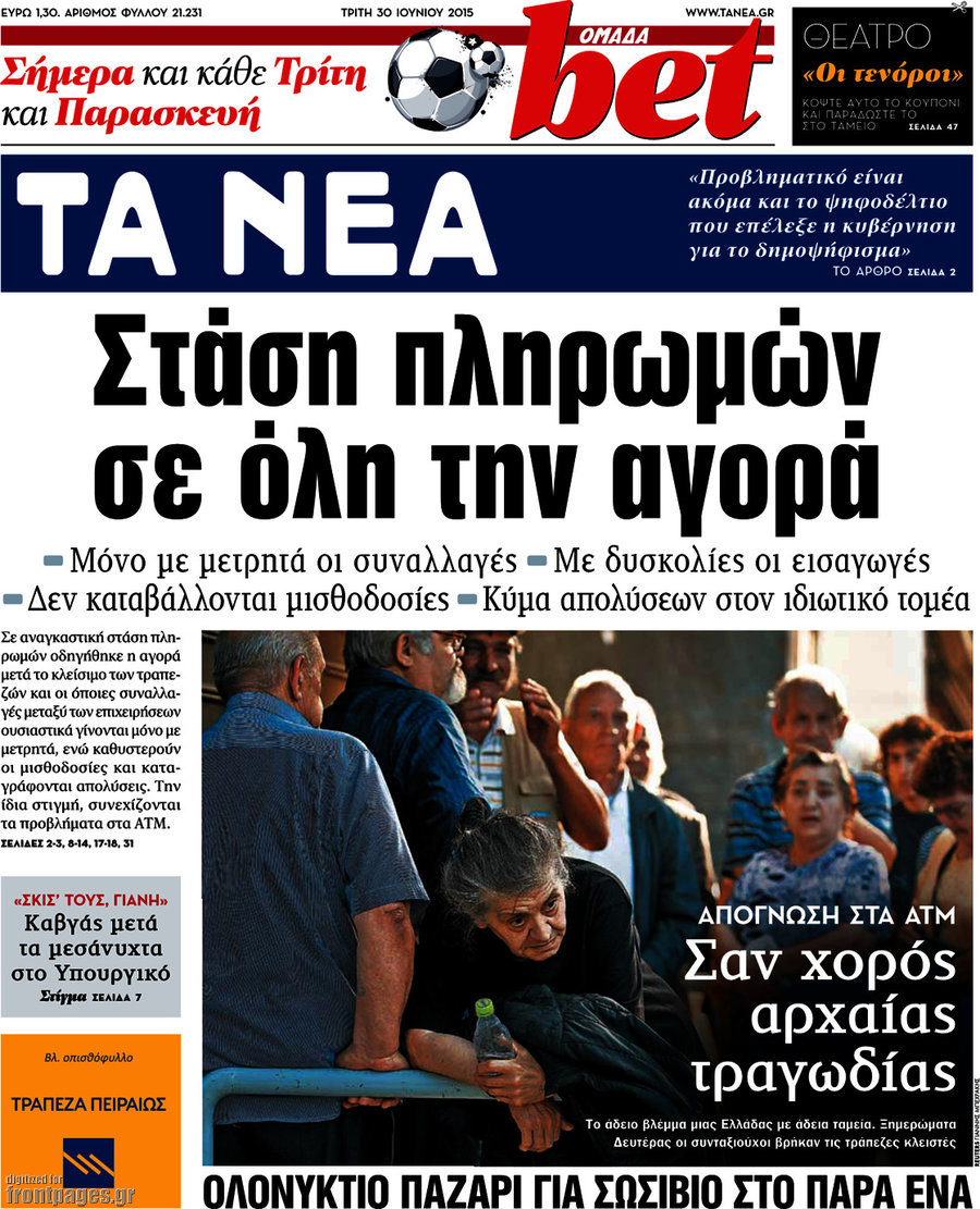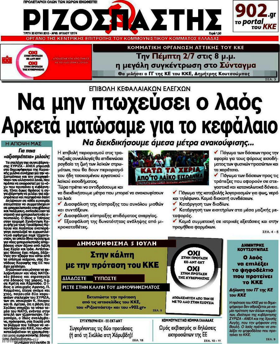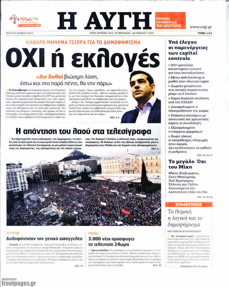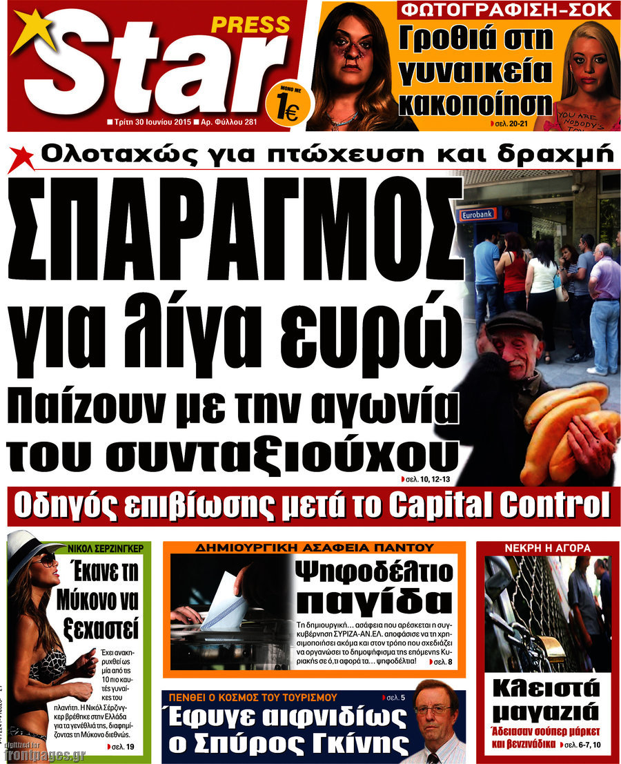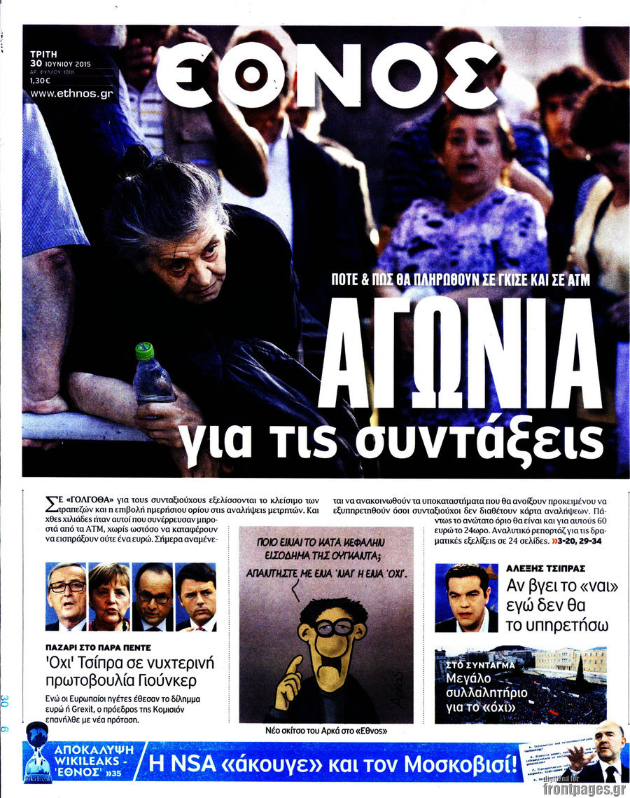 Οι πολιτικές εφημερίδες 30/6/2015 Enikos Newsroom 07:46, Τρίτη 30 Ιουνίου 2015 Media Διαβάστε τα σημερινά πρωτοσέλιδα των πολιτικών εφημερίδων: ΠΟΛΙΤΙΚΕΣ ΕΦΗΜΕΡΙΔΕΣ ΠΡΩΤΟΣΕΛΙΔΑ Μοιράσου το: σχολίασε κι εσύ (0 σχόλια) Ακολουθήστε το enikos.gr στο Google News και μάθετε πρώτοι όλες τις ειδήσεις Δείτε όλες τις τελευταίες ειδήσεις από την Ελλάδα και τον Κόσμο στο enikos.gr Ειδήσεις Ροή Ειδήσεων 2 ώρες πριν Χριστούγεννα στα μπλόκα: Επιμένουν στις κινητοποιήσεις τους οι αγρότες – Ανοίγουν τα διόδια το Σαββατοκύριακο 3 ώρες πριν Ουκρανία: Η άνευ προηγουμένου επίθεση σε ρωσικό τάνκερ στη Μεσόγειο και το μήνυμα προς στον Πούτιν – Το «μακρύ χέρι» του Κιέβου 2 ώρες πριν Πούτιν: Τα μηνύματα σε Ευρώπη και ΝΑΤΟ από το μαραθώνιο «σόου» του – Η απαίτηση για «σεβασμό» και η ειρήνη «με τους όρους» της Μόσχας 3 ώρες πριν Τραμπ: Δεν αποκλείει την πιθανότητα ενός πολέμου στη Βενεζουέλα – «Ο Μαδούρο ξέρει καλύτερα από τον καθένα τι ακριβώς θέλω» 3 ώρες πριν Συνεχίζει να προκαλεί ο Μίτσκοσκι: «Για μένα το όνομα Μακεδονία είναι ιερό» 2 ώρες πριν Ανακαλύφθηκαν αρχαία χρυσά νομίσματα 2.200 ετών που απεικονίζουν τον θεό Απόλλωνα – Η άγνωστη σύνδεση με τον Φίλιππο Β΄ της Μακεδονίας 3 ώρες πριν Ύπνος: Μια κρυφή κατάσταση του εγκεφάλου πριν από τον ύπνο μπορεί να είναι το “κλειδί” για υψηλή ευφυΐα και δημιουργικότητα 4 ώρες πριν Αριθμολογία: Οι άνθρωποι που έχουν γεννηθεί αυτές τις 4 ημερομηνίες, συχνά παρεξηγούνται – «Η καλοσύνη τους κρύβει τεράστια δύναμη» 5 ώρες πριν Ξεχάστε το καθάρισμα το Σαββατοκύριακο: Ο «κανόνας των 20 λεπτών» που θα σας λύσει τα χέρια 18 λεπτά πριν Φαίη Σκορδά: «Παλιότερα τα κομπλιμέντα τα προσπερνούσα, τώρα τα έχω ανάγκη» 34 λεπτά πριν Βασίλης Σπανούλης: Δεν εμφανίστηκε ούτε ένας δημοσιογράφος στην συνέντευξη Τύπου – «Καλησπέρα στον… κανέναν», δείτε βίντεο 45 λεπτά πριν Πόλεμος στην Ουκρανία: Εφτά νεκροί από ρωσική πυραυλική επίθεση στο λιμάνι της Οδησσού 49 λεπτά πριν ΗΠΑ: Η κυβέρνηση του Ντόναλντ Τραμπ άρχισε να δημοσιοποιεί τα αρχεία Έπσταϊν 1 ώρα πριν Σάμος: Άνοιξε το μπλόκο των αγροτών στον κόμβο Κοκκαρίου – Σε νέα συνεδρίαση θα καθορίσουν την στάση τους ENIKOS NETWORK Το ΕΚΑΒ τιμήθηκε από την Ακαδημία Αθηνών για τα 40 χρόνια προσφοράς του Έχετε πραγματικά μεγάλη καρδιά; 10 χαρακτηριστικά όσων έχουν καλοσύνη Αναστολή μέτρων αναγκαστικής εκτέλεσης για κτηνοτρόφους που πλήττονται από την ευλογιά των αιγοπροβάτων Πλήρης επάρκεια προϊόντων στις λαϊκές της Αττικής, παρά τις αγροτικές κινητοποιήσεις – Τι απαντούν οι πωλητές Χαρτογραφώντας το «σημείο χωρίς επιστροφή»: Για πρώτη φορά αποκαλύπτεται με λεπτομέρεια το ακανθώδες όριο της ατμόσφαιρας τ... Η Google καταργεί τη λειτουργία «dark web report» – Πώς θα μπορούν οι χρήστες να διαγράφουν τα δεδομένα τους περισσότερα 22:42 , Παρασκευή 19 Δεκεμβρίου 2025 Γιώργος Γιαννόπουλος για “Το σόι σου”: “Είναι ευτυχία και ευλογία αυτή η σειρά” «Είναι ευτυχία και ευλογία η συγκυρία αυτής της σειράς», θα πει ο Γιώργος Γιαννόπουλος -ο αγαπ... 20:37 , Παρασκευή 19 Δεκεμβρίου 2025 Don’t Forget The Lyrics: Η Έλλη Κοκκίνου υποδέχεται 4 παίκτες που θα κάνουν τα πάντα για να μη χάσουν ούτε… μισή λέξη από τους στίχους Το «Don’t Forget The Lyrics» επιστρέφει απόψε, Παρασκευή 19 Δεκεμβρίου, στις 21:00 με νέο επει... 19:31 , Παρασκευή 19 Δεκεμβρίου 2025 GNTM: Απόψε ο μεγάλος τελικός για τους 4 φιναλίστ Έπειτα από μήνες γεμάτους μόδα, δημιουργία και έντονες αναμετρήσεις, το GNTM 2025 κορυφώνεται,... 18:11 , Παρασκευ