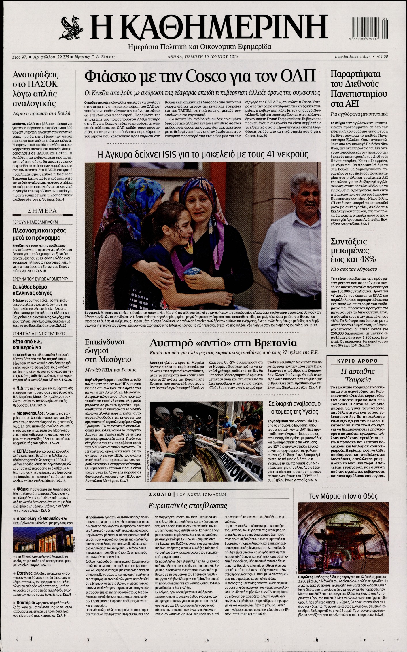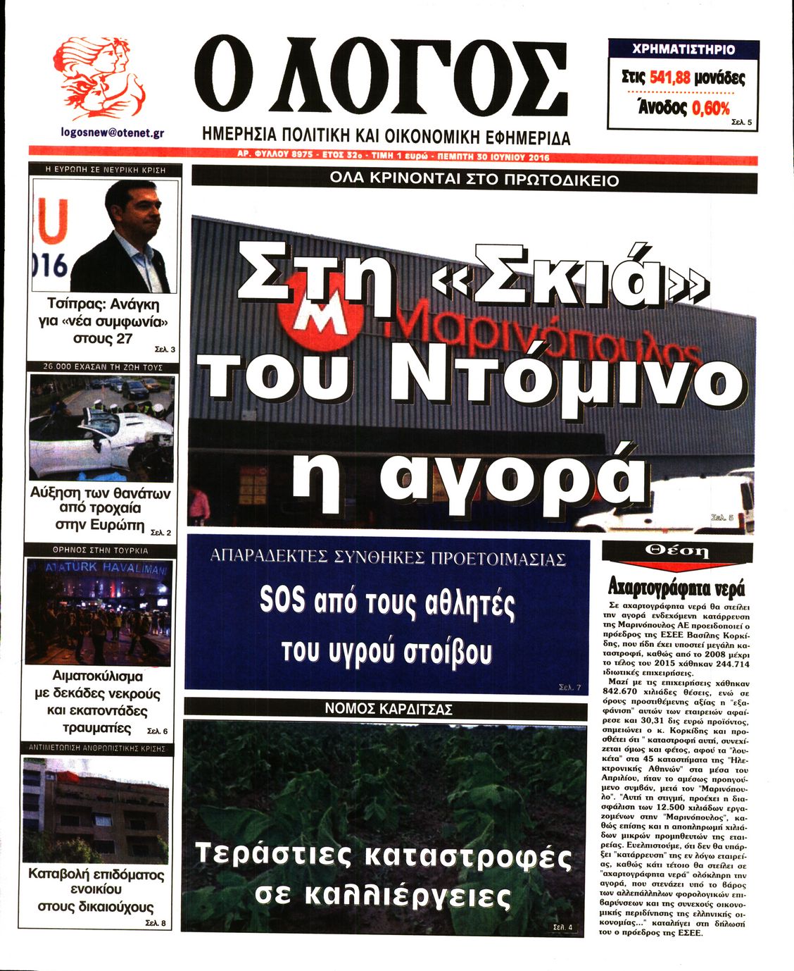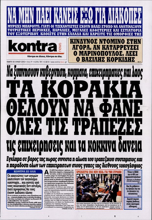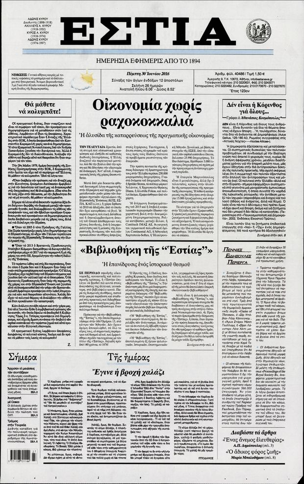 Oι πολιτικές εφημερίδες 30/6/2016 Enikos Newsroom 05:05, Πέμπτη 30 Ιουνίου 2016 Media Διαβάστε τα σημερινά πρωτοσέλιδα των πολιτικών εφημερίδων: ΠΟΛΙΤΙΚΕΣ ΕΦΗΜΕΡΙΔΕΣ ΠΡΩΤΟΣΕΛΙΔΑ Μοιράσου το: σχολίασε κι εσύ (0 σχόλια) Ακολουθήστε το enikos.gr στο Google News και μάθετε πρώτοι όλες τις ειδήσεις Δείτε όλες τις τελευταίες ειδήσεις από την Ελλάδα και τον Κόσμο στο enikos.gr Ειδήσεις Ροή Ειδήσεων 2 ώρες πριν Χριστούγεννα στα μπλόκα: Επιμένουν στις κινητοποιήσεις τους οι αγρότες – Ανοίγουν τα διόδια το Σαββατοκύριακο 2 ώρες πριν Ουκρανία: Η άνευ προηγουμένου επίθεση σε ρωσικό τάνκερ στη Μεσόγειο και το μήνυμα προς στον Πούτιν – Το «μακρύ χέρι» του Κιέβου 1 ώρα πριν Πούτιν: Τα μηνύματα σε Ευρώπη και ΝΑΤΟ από το μαραθώνιο «σόου» του – Η απαίτηση για «σεβασμό» και η ειρήνη «με τους όρους» της Μόσχας 2 ώρες πριν Τραμπ: Δεν αποκλείει την πιθανότητα ενός πολέμου στη Βενεζουέλα – «Ο Μαδούρο ξέρει καλύτερα από τον καθένα τι ακριβώς θέλω» 3 ώρες πριν Συνεχίζει να προκαλεί ο Μίτσκοσκι: «Για μένα το όνομα Μακεδονία είναι ιερό» 1 ώρα πριν Ανακαλύφθηκαν αρχαία χρυσά νομίσματα 2.200 ετών που απεικονίζουν τον θεό Απόλλωνα – Η άγνωστη σύνδεση με τον Φίλιππο Β΄ της Μακεδονίας 2 ώρες πριν Ύπνος: Μια κρυφή κατάσταση του εγκεφάλου πριν από τον ύπνο μπορεί να είναι το “κλειδί” για υψηλή ευφυΐα και δημιουργικότητα 3 ώρες πριν Αριθμολογία: Οι άνθρωποι που έχουν γεννηθεί αυτές τις 4 ημερομηνίες, συχνά παρεξηγούνται – «Η καλοσύνη τους κρύβει τεράστια δύναμη» 4 ώρες πριν Ξεχάστε το καθάρισμα το Σαββατοκύριακο: Ο «κανόνας των 20 λεπτών» που θα σας λύσει τα χέρια 5 λεπτά πριν Βασίλης Σπανούλης: Δεν εμφανίστηκε ούτε ένας δημοσιογράφος στην συνέντευξη Τύπου – «Καλησπέρα στον… κανέναν», δείτε βίντεο 16 λεπτά πριν Πόλεμος στην Ουκρανία: Εφτά νεκροί από ρωσική πυραυλική επίθεση στο λιμάνι της Οδησσού 19 λεπτά πριν ΗΠΑ: Η κυβέρνηση του Ντόναλντ Τραμπ άρχισε να δημοσιοποιεί τα αρχεία Έπσταϊν 31 λεπτά πριν Σάμος: Άνοιξε το μπλόκο των αγροτών στον κόμβο Κοκκαρίου – Σε νέα συνεδρίαση θα καθορίσουν την στάση τους 39 λεπτά πριν Άνω Λιόσια: Πυροβολισμοί σε επιχείρηση με χαλιά – Εντοπίστηκαν 10 κάλυκες ENIKOS NETWORK Το ΕΚΑΒ τιμήθηκε από την Ακαδημία Αθηνών για τα 40 χρόνια προσφοράς του Έχετε πραγματικά μεγάλη καρδιά; 10 χαρακτηριστικά όσων έχουν καλοσύνη Αναστολή μέτρων αναγκαστικής εκτέλεσης για κτηνοτρόφους που πλήττονται από την ευλογιά των αιγοπροβάτων Πλήρης επάρκεια προϊόντων στις λαϊκές της Αττικής, παρά τις αγροτικές κινητοποιήσεις – Τι απαντούν οι πωλητές Χαρτογραφώντας το «σημείο χωρίς επιστροφή»: Για πρώτη φορά αποκαλύπτεται με λεπτομέρεια το ακανθώδες όριο της ατμόσφαιρας τ... Η Google καταργεί τη λειτουργία «dark web report» – Πώς θα μπορούν οι χρήστες να διαγράφουν τα δεδομένα τους περισσότερα 22:42 , Παρασκευή 19 Δεκεμβρίου 2025 Γιώργος Γιαννόπουλος για “Το σόι σου”: “Είναι ευτυχία και ευλογία αυτή η σειρά” «Είναι ευτυχία και ευλογία η συγκυρία αυτής της σειράς», θα πει ο Γιώργος Γιαννόπουλος -ο αγαπ... 20:37 , Παρασκευή 19 Δεκεμβρίου 2025 Don’t Forget The Lyrics: Η Έλλη Κοκκίνου υποδέχεται 4 παίκτες που θα κάνουν τα πάντα για να μη χάσουν ούτε… μισή λέξη από τους στίχους Το «Don’t Forget The Lyrics» επιστρέφει απόψε, Παρασκευή 19 Δεκεμβρίου, στις 21:00 με νέο επει... 19:31 , Παρασκευή 19 Δεκεμβρίου 2025 GNTM: Απόψε ο μεγάλος τελικός για τους 4 φιναλίστ Έπειτα από μήνες γεμάτους μόδα, δημιουργία και έντονες αναμετρήσεις, το GNTM 2025 κορυφώνεται,... 18:11 , Παρασκευή 1