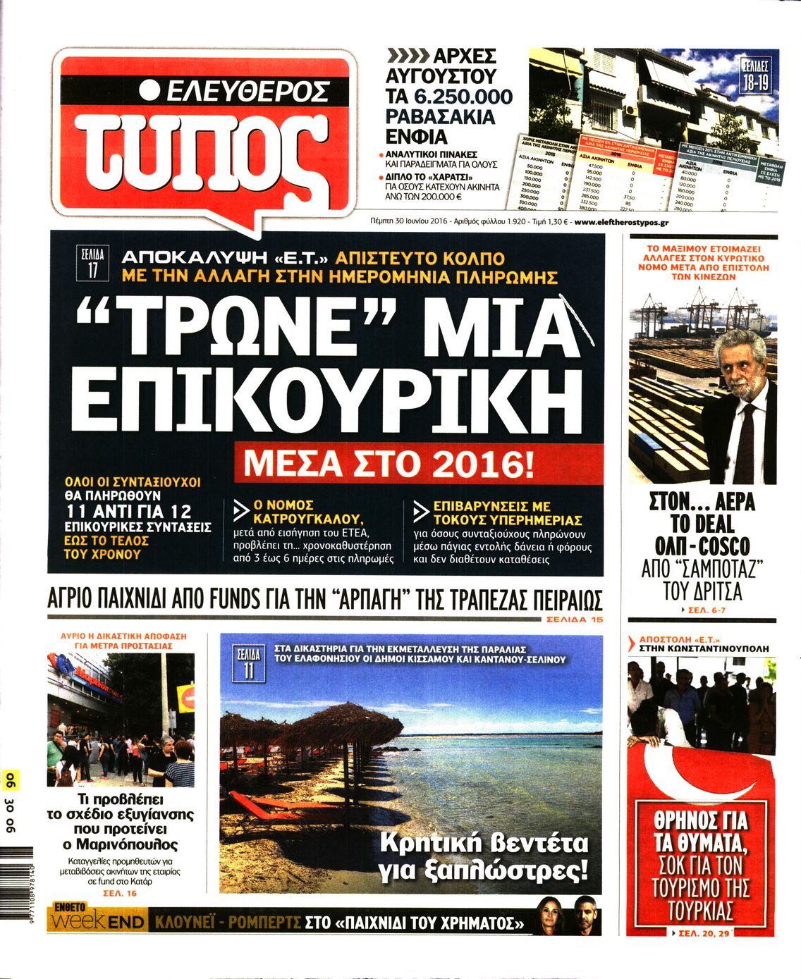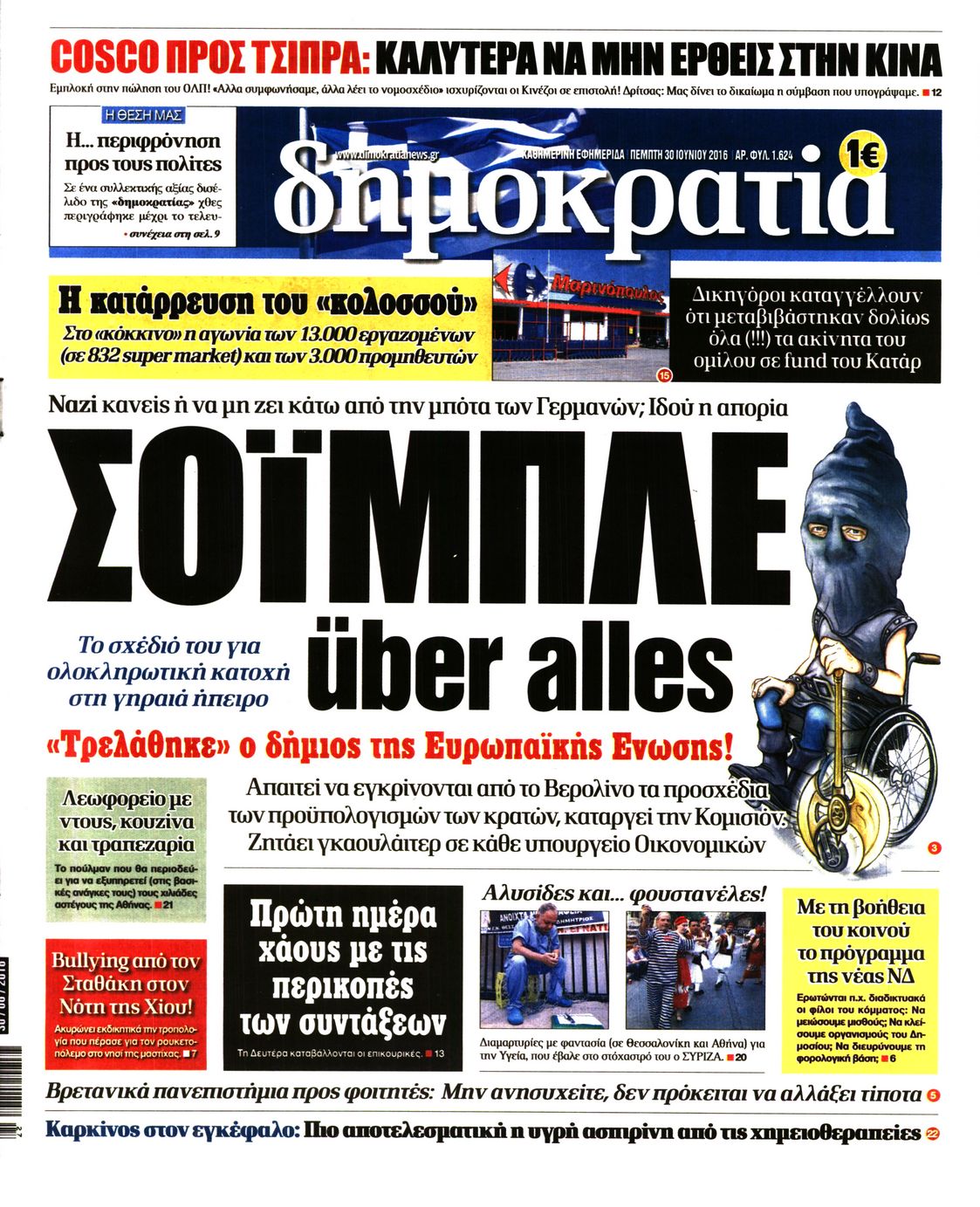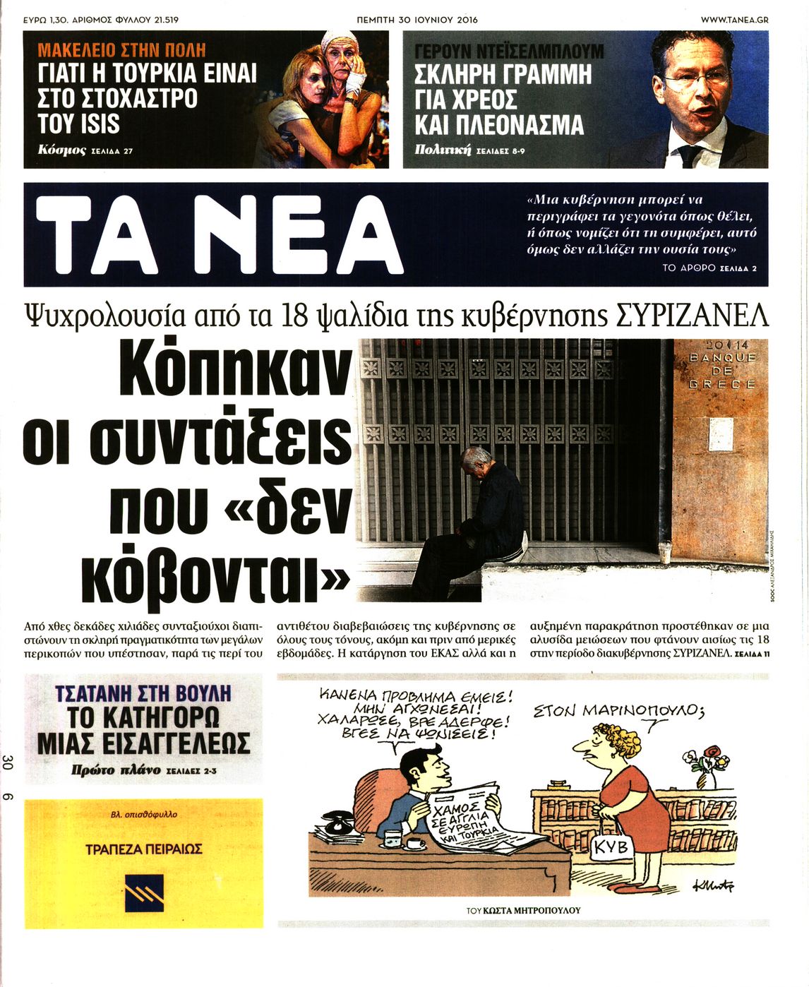 Oι πολιτικές εφημερίδες 30/6/2016 Enikos Newsroom 05:05, Πέμπτη 30 Ιουνίου 2016 Media Διαβάστε τα σημερινά πρωτοσέλιδα των πολιτικών εφημερίδων: ΠΟΛΙΤΙΚΕΣ ΕΦΗΜΕΡΙΔΕΣ ΠΡΩΤΟΣΕΛΙΔΑ Μοιράσου το: σχολίασε κι εσύ (0 σχόλια) Ακολουθήστε το enikos.gr στο Google News και μάθετε πρώτοι όλες τις ειδήσεις Δείτε όλες τις τελευταίες ειδήσεις από την Ελλάδα και τον Κόσμο στο enikos.gr Ειδήσεις Ροή Ειδήσεων 2 ώρες πριν Χριστούγεννα στα μπλόκα: Επιμένουν στις κινητοποιήσεις τους οι αγρότες – Ανοίγουν τα διόδια το Σαββατοκύριακο 2 ώρες πριν Ουκρανία: Η άνευ προηγουμένου επίθεση σε ρωσικό τάνκερ στη Μεσόγειο και το μήνυμα προς στον Πούτιν – Το «μακρύ χέρι» του Κιέβου 1 ώρα πριν Πούτιν: Τα μηνύματα σε Ευρώπη και ΝΑΤΟ από το μαραθώνιο «σόου» του – Η απαίτηση για «σεβασμό» και η ειρήνη «με τους όρους» της Μόσχας 2 ώρες πριν Τραμπ: Δεν αποκλείει την πιθανότητα ενός πολέμου στη Βενεζουέλα – «Ο Μαδούρο ξέρει καλύτερα από τον καθένα τι ακριβώς θέλω» 3 ώρες πριν Συνεχίζει να προκαλεί ο Μίτσκοσκι: «Για μένα το όνομα Μακεδονία είναι ιερό» 1 ώρα πριν Ανακαλύφθηκαν αρχαία χρυσά νομίσματα 2.200 ετών που απεικονίζουν τον θεό Απόλλωνα – Η άγνωστη σύνδεση με τον Φίλιππο Β΄ της Μακεδονίας 2 ώρες πριν Ύπνος: Μια κρυφή κατάσταση του εγκεφάλου πριν από τον ύπνο μπορεί να είναι το “κλειδί” για υψηλή ευφυΐα και δημιουργικότητα 3 ώρες πριν Αριθμολογία: Οι άνθρωποι που έχουν γεννηθεί αυτές τις 4 ημερομηνίες, συχνά παρεξηγούνται – «Η καλοσύνη τους κρύβει τεράστια δύναμη» 4 ώρες πριν Ξεχάστε το καθάρισμα το Σαββατοκύριακο: Ο «κανόνας των 20 λεπτών» που θα σας λύσει τα χέρια 5 λεπτά πριν Βασίλης Σπανούλης: Δεν εμφανίστηκε ούτε ένας δημοσιογράφος στην συνέντευξη Τύπου – «Καλησπέρα στον… κανέναν», δείτε βίντεο 16 λεπτά πριν Πόλεμος στην Ουκρανία: Εφτά νεκροί από ρωσική πυραυλική επίθεση στο λιμάνι της Οδησσού 19 λεπτά πριν ΗΠΑ: Η κυβέρνηση του Ντόναλντ Τραμπ άρχισε να δημοσιοποιεί τα αρχεία Έπσταϊν 31 λεπτά πριν Σάμος: Άνοιξε το μπλόκο των αγροτών στον κόμβο Κοκκαρίου – Σε νέα συνεδρίαση θα καθορίσουν την στάση τους 39 λεπτά πριν Άνω Λιόσια: Πυροβολισμοί σε επιχείρηση με χαλιά – Εντοπίστηκαν 10 κάλυκες ENIKOS NETWORK Το ΕΚΑΒ τιμήθηκε από την Ακαδημία Αθηνών για τα 40 χρόνια προσφοράς του Έχετε πραγματικά μεγάλη καρδιά; 10 χαρακτηριστικά όσων έχουν καλοσύνη Αναστολή μέτρων αναγκαστικής εκτέλεσης για κτηνοτρόφους που πλήττονται από την ευλογιά των αιγοπροβάτων Πλήρης επάρκεια προϊόντων στις λαϊκές της Αττικής, παρά τις αγροτικές κινητοποιήσεις – Τι απαντούν οι πωλητές Χαρτογραφώντας το «σημείο χωρίς επιστροφή»: Για πρώτη φορά αποκαλύπτεται με λεπτομέρεια το ακανθώδες όριο της ατμόσφαιρας τ... Η Google καταργεί τη λειτουργία «dark web report» – Πώς θα μπορούν οι χρήστες να διαγράφουν τα δεδομένα τους περισσότερα 22:42 , Παρασκευή 19 Δεκεμβρίου 2025 Γιώργος Γιαννόπουλος για “Το σόι σου”: “Είναι ευτυχία και ευλογία αυτή η σειρά” «Είναι ευτυχία και ευλογία η συγκυρία αυτής της σειράς», θα πει ο Γιώργος Γιαννόπουλος -ο αγαπ... 20:37 , Παρασκευή 19 Δεκεμβρίου 2025 Don’t Forget The Lyrics: Η Έλλη Κοκκίνου υποδέχεται 4 παίκτες που θα κάνουν τα πάντα για να μη χάσουν ούτε… μισή λέξη από τους στίχους Το «Don’t Forget The Lyrics» επιστρέφει απόψε, Παρασκευή 19 Δεκεμβρίου, στις 21:00 με νέο επει... 19:31 , Παρασκευή 19 Δεκεμβρίου 2025 GNTM: Απόψε ο μεγάλος τελικός για τους 4 φιναλίστ Έπειτα από μήνες γεμάτους μόδα, δημιουργία και έντονες αναμετρήσεις, το GNTM 2025 κορυφώνεται,... 18:11 , Παρασκευή 1