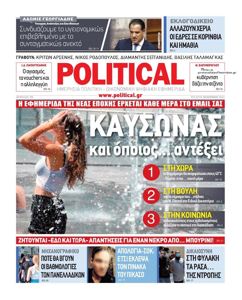 Οι πολιτικές εφημερίδες 30/6/2021 Διονύσης Νίκκας 06:13, Τετάρτη 30 Ιουνίου 2021 Media Διαβάστε τα πρωτοσέλιδα των πολιτικών εφημερίδων… ΕΦΗΜΕΡΙΔΕΣ ΠΡΩΤΟΣΕΛΙΔΑ Μοιράσου το: σχολίασε κι εσύ (0 σχόλια) Ακολουθήστε το enikos.gr στο Google News και μάθετε πρώτοι όλες τις ειδήσεις Δείτε όλες τις τελευταίες ειδήσεις από την Ελλάδα και τον Κόσμο στο enikos.gr Ειδήσεις Ροή Ειδήσεων 16 λεπτά πριν Ζελένσκι: Μόνο οι ΗΠΑ και ο Τραμπ μπορούν να πιέσουν τη Ρωσία να βάλει τέλος στον πόλεμο 35 λεπτά πριν Φοινικούντα: Προφυλακιστέος ο 30χρονος για συνέργεια στη διπλή δολοφονία – Και άλλα πρόσωπα στο «μικροσκόπιο» 2 ώρες πριν Κυριάκος Μητσοτάκης: Στην Ιερουσαλήμ την Τρίτη ο Πρωθυπουργός για την τριμερή Ελλάδας, Κύπρου, Ισραήλ – Θα συναντηθεί και με τον Αμπάς 5 ώρες πριν Πώς δρούσε το κύκλωμα που διακινούσε ναρκωτικά σε σχολεία – Υπέβαλαν σε βασανιστήρια όσους δεν τηρούσαν τους «κανόνες πειθαρχίας» 1 ώρα πριν Πάπας Λέων: Όταν έχει αϋπνίες επενδύει παραγωγικά τον χρόνο του – Ποιο παιχνίδι παίζει στο κινητό 26 λεπτά πριν Αριθμολογία: Ο αριθμός του φύλακα αγγέλου σας, με βάση τον μήνα γέννησής σας – «Έτσι σας στέλνει σημάδια το σύμπαν» 1 ώρα πριν Πώς να απαλλαγείτε από τη μυρωδιά του τηγανητού φαγητού: Το μυστικό βρίσκεται στην κουζίνα σας 2 ώρες πριν Μήπως οι γιορτές σας δεν είναι τόσο τέλειες; 7 χριστουγεννιάτικες συνήθειες που μαρτυρούν ότι μια οικογένεια είναι δυσλειτουργική 12 ώρες πριν Enerwave: Το νέο «ρεύμα» στη λιανική ενέργειας που αλλάζει την εμπειρία του καταναλωτή 9 λεπτά πριν Εριέττα Μανούρη: «Έχω νιώσει ανταγωνισμό από άντρες, μύθος αυτό που λένε για τις γυναίκες» 16 λεπτά πριν Ζελένσκι: Μόνο οι ΗΠΑ και ο Τραμπ μπορούν να πιέσουν τη Ρωσία να βάλει τέλος στον πόλεμο 26 λεπτά πριν Αριθμολογία: Ο αριθμός του φύλακα αγγέλου σας, με βάση τον μήνα γέννησής σας – «Έτσι σας στέλνει σημάδια το σύμπαν» 35 λεπτά πριν Φοινικούντα: Προφυλακιστέος ο 30χρονος για συνέργεια στη διπλή δολοφονία – Και άλλα πρόσωπα στο «μικροσκόπιο» 46 λεπτά πριν Super League: Ο Σιαμπάνης «κατέβασε ρολά» και ο Βόλος νίκησε 1-0 τον Παναιτωλικό ENIKOS NETWORK Οι γυναίκες αποκαλύπτουν το πιο ελκυστικό πράγμα που μπορεί να κάνει ένας άνδρας Ομορφιά και αντιγήρανση: Ειδικοί μιλούν για συσκευές περιποίησης του δέρματος Εφορία: 7 αλλαγές σε δηλώσεις και ελέγχους ακινήτων – Όλα όσα πρέπει να γνωρίζετε Πορτοκαλί τιμολόγια ρεύματος: Τα σημεία που πρέπει να προσέξουν οι καταναλωτές – Πότε θα εφαρμοστούν Χαρτογραφώντας το «σημείο χωρίς επιστροφή»: Για πρώτη φορά αποκαλύπτεται με λεπτομέρεια το ακανθώδες όριο της ατμόσφαιρας τ... Η Google καταργεί τη λειτουργία «dark web report» – Πώς θα μπορούν οι χρήστες να διαγράφουν τα δεδομένα τους περισσότερα 20:30 , Σάββατο 20 Δεκεμβρίου 2025 Αυτή την Κυριακή με τη Realnews: Instyle, μαζί Drive και Realnews Geopolitics Αυτή την Κυριακή με τη Realnews: Instyle, μαζί Drive και Realnews Geopolitics Instyle Η Άννα Ρ... 20:28 , Σάββατο 20 Δεκεμβρίου 2025 Ο ΑΝΤ1 γεμίζει τις γιορτές με μουσική – Ποιους καλλιτέχνες θα απολαύσουμε Φέτος στον ΑΝΤ1 γιορτάζουμε τις νύχτες μας παρέα με αγαπημένους καλλιτέχνες και μεγάλες μουσι... 18:19 , Σάββατο 20 Δεκεμβρίου 2025 HOTΕΛ ΕΛVIRA: Η Ελβίρα μαθαίνει πως ο Χάρι μένει κρυφά στο ξενοδοχείο του Παντελή Συνεχίζονται οι εκλογές για πρόεδρο, στο νέο επεισόδιο της κωμικής σειράς του MEGA, HOTΕΛ ΕΛVI... 14:04 , Σάββατο 20 Δεκεμβρίου 2025 Η Realnews αυτής της Κυριακής (21/12/2025) Με τίτλο: «Ασπίδα προστασίας για την Ελλάδα» κυκλοφορεί, αυτήν την Κυριακή, η Realnews. Σημαντ... ΤΕ
