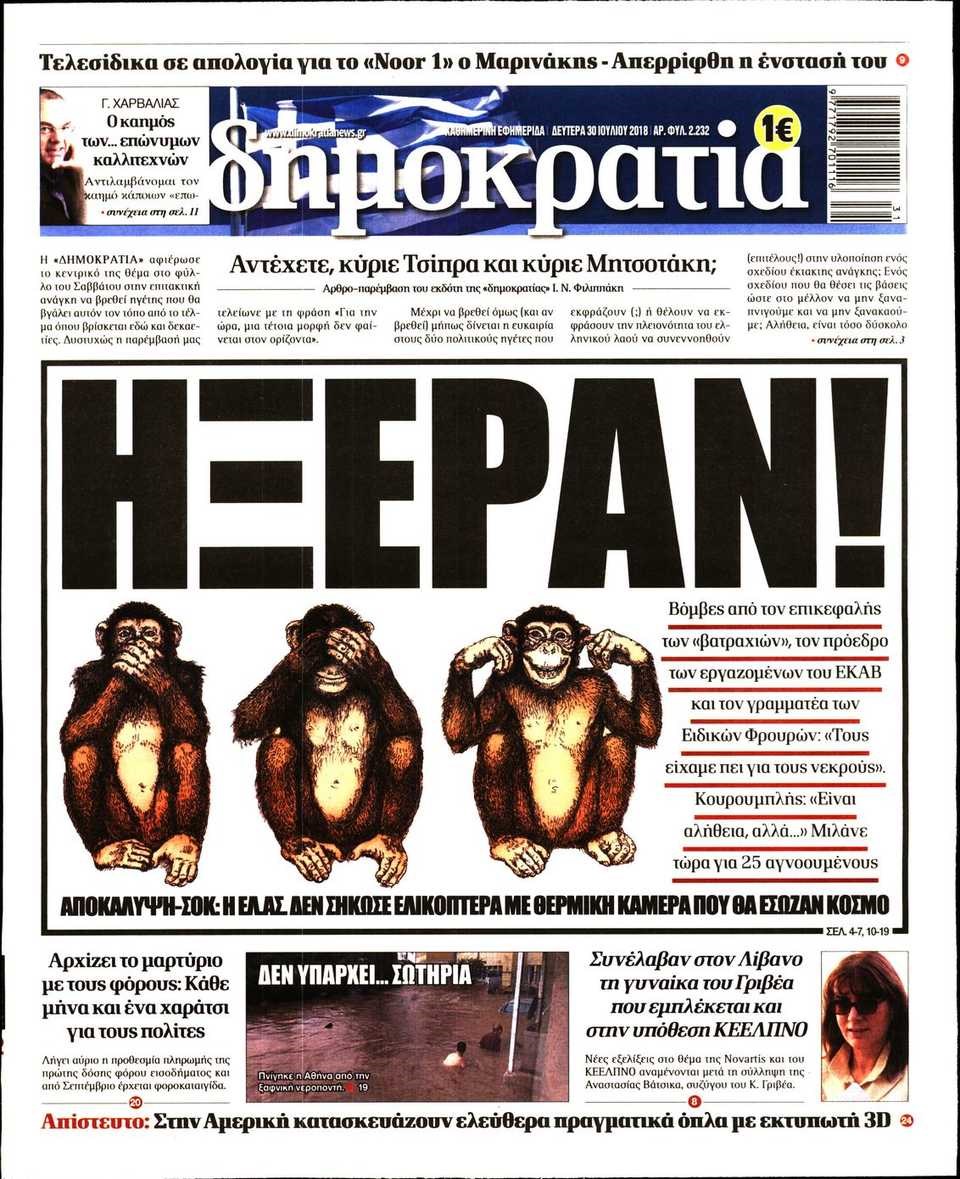 Οι πολιτικές εφημερίδες 30/7/2018 Enikos Newsroom 06:51, Δευτέρα 30 Ιουλίου 2018 Media Διαβάστε τα σημερινά πρωτοσέλιδα των πολιτικών εφημερίδων. ΠΟΛΙΤΙΚΕΣ ΕΦΗΜΕΡΙΔΕΣ ΠΡΩΤΟΣΕΛΙΔΑ Μοιράσου το: σχολίασε κι εσύ (0 σχόλια) Ακολουθήστε το enikos.gr στο Google News και μάθετε πρώτοι όλες τις ειδήσεις Δείτε όλες τις τελευταίες ειδήσεις από την Ελλάδα και τον Κόσμο στο enikos.gr Ειδήσεις Ροή Ειδήσεων 7 ώρες πριν Χριστούγεννα στα μπλόκα οι αγρότες: Άνοιξαν στα διόδια και μοίρασαν προϊόντα στους πολίτες – Νέα σύσκεψη την Κυριακή στη Νίκαια 5 ώρες πριν Ρετζέπ Ταγίπ Ερντογάν: Δεν έχουμε καμία βλέψη στα εδάφη ή την κυριαρχία κανενός – Δεν θα επιτρέψουμε να παραβιαστούν τα δικαιώματά μας 6 ώρες πριν H ακτοφυλακή των ΗΠΑ κατάσχεσε και δεύτερο τάνκερ στα ανοιχτά της Βενεζουέλας – Δείτε βίντεο 7 ώρες πριν Κύκλωμα διακίνησης ναρκωτικών σε σχολεία: Τηλεφωνούσαν στους ανηλίκους την ώρα του μαθήματος – Οι διάλογοι-σοκ, τα «ψευδώνυμα» και τα βασανιστήρια 7 ώρες πριν Αρχεία Επστάιν: Οι 500 σελίδες που λείπουν, τα αναπάντητα ερωτήματα και οι επώνυμοι – Τι έπεται 7 ώρες πριν Αποκαλύφθηκε το άγνωστο «GPS» της αρχαιότητας – Πώς οι ναοί «φώτιζαν» τον δρόμο των ναυτικών πριν από την εφεύρεση των φάρων 8 ώρες πριν Ύπνος: Η διατροφή που μπορεί να σας βοηθήσει να κοιμάστε καλύτερα και να ζήσετε περισσότερο 9 ώρες πριν Αριθμολογία: Ο αριθμός του φύλακα αγγέλου σας, με βάση τον μήνα γέννησής σας – «Έτσι σας στέλνει σημάδια το σύμπαν» 21 ώρες πριν Enerwave: Το νέο «ρεύμα» στη λιανική ενέργειας που αλλάζει την εμπειρία του καταναλωτή 13 δευτερόλεπτα πριν Οι αθλητικές εφημερίδες 21/12/2025 8 λεπτά πριν Οι πολιτικές εφημερίδες 21/12/2025 17 λεπτά πριν Τα ζώδια σήμερα, Κυριακή 21 Δεκεμβρίου: Αιγόκεροι, αποφασίζετε για το επόμενο κεφάλαιο της ζωής σας 24 λεπτά πριν Εφημερεύοντα φαρμακεία σε Αθήνα και Θεσσαλονίκη (21/12) 32 λεπτά πριν Γιαννούλης Λαρεντζάκης: Πρόταση γάμου στην αρραβωνιαστικιά του, Γιώτα Γεωργοπούλου, έκανε ο παίκτης του Ολυμπιακού – Δείτε φωτογραφίες και βίντεο ENIKOS NETWORK Οι γυναίκες αποκαλύπτουν το πιο ελκυστικό πράγμα που μπορεί να κάνει ένας άνδρας Ομορφιά και αντιγήρανση: Ειδικοί μιλούν για συσκευές περιποίησης του δέρματος «Πολεμική» προετοιμασία από την ευρωπαϊκή βιομηχανία ενέργειας – Η Eurelectric ζητεί «ομπρέλα» προστασίας για τις υποδομές Ακύρωση ΑΦΜ για απάτες – Ποιους βάζει στο στόχαστρο η ΑΑΔΕ Χαρτογραφώντας το «σημείο χωρίς επιστροφή»: Για πρώτη φορά αποκαλύπτεται με λεπτομέρεια το ακανθώδες όριο της ατμόσφαιρας τ... Η Google καταργεί τη λειτουργία «dark web report» – Πώς θα μπορούν οι χρήστες να διαγράφουν τα δεδομένα τους περισσότερα 05:46 , Κυριακή 21 Δεκεμβρίου 2025 Οι αθλητικές εφημερίδες 21/12/2025 Διαβάστε τα πρωτοσέλιδα από τις αθλητικές εφημερίδες, σήμερα 21/12/2025. 05:38 , Κυριακή 21 Δεκεμβρίου 2025 Οι πολιτικές εφημερίδες 21/12/2025 Διαβάστε τα πρωτοσέλιδα από τις πολιτικές εφημερίδες, σήμερα 21/12/2025. 05:08 , Κυριακή 21 Δεκεμβρίου 2025 Σήμερα με τη Realnews: Δωροεπιταγή 10€ Δωροεπιταγή αξίας 10€ για αγορές άνω των 60€ από τα πολυκαταστήματα FactoryOutlet H προσφορά ι... 04:08 , Κυριακή 21 Δεκεμβρίου 2025 Σήμερα με τη Realnews: Ό,τι και αν αγοράσεις, σκανάρεις και κερδίζεις! Σήμερα με τη Realnews: Ό,τι και αν αγοράσεις, σκανάρεις και κερδίζεις! Με το PADU app, το κορυ... ΤΕΛΕΥΤΑΙΕΣ ΕΙΔΗΣΕΙΣ 8 λεπτά πριν Οι πολιτικές εφημερίδες 21/12/2025 17 λεπτά πριν Τα ζώδια σήμερα, Κυριακή 21 Δεκεμβρίου: Αιγόκεροι,... 24 λεπτά πριν Εφημερεύοντα φαρμακεία σε Αθήνα και Θεσσαλονίκη (21/12) 32 λεπτά 