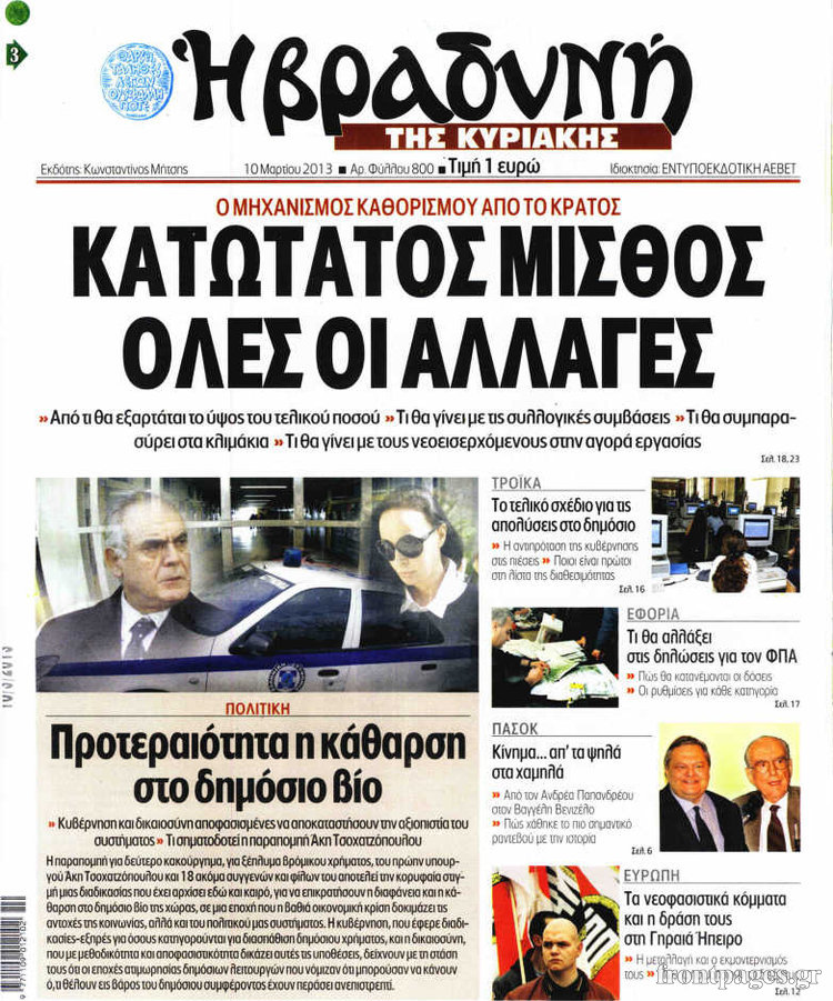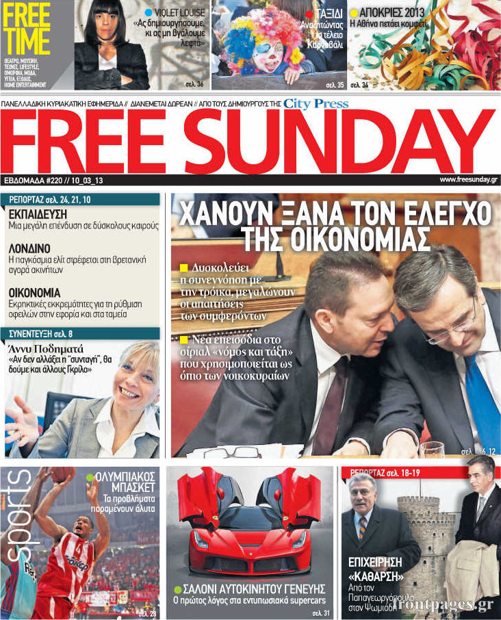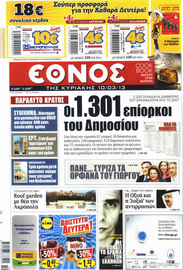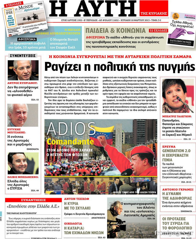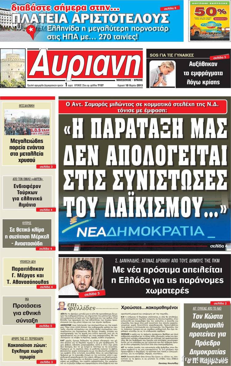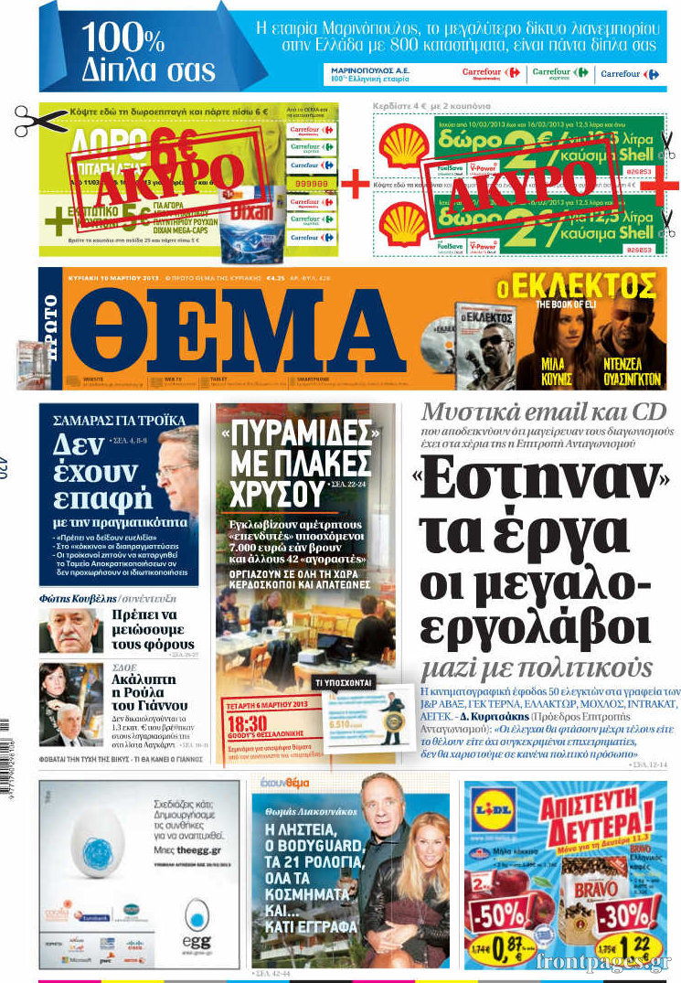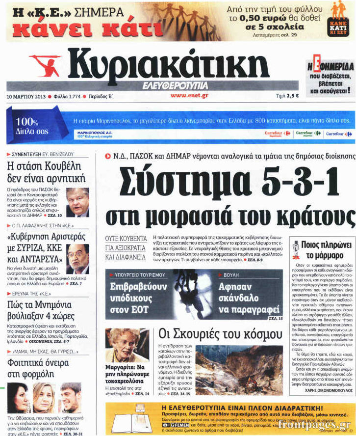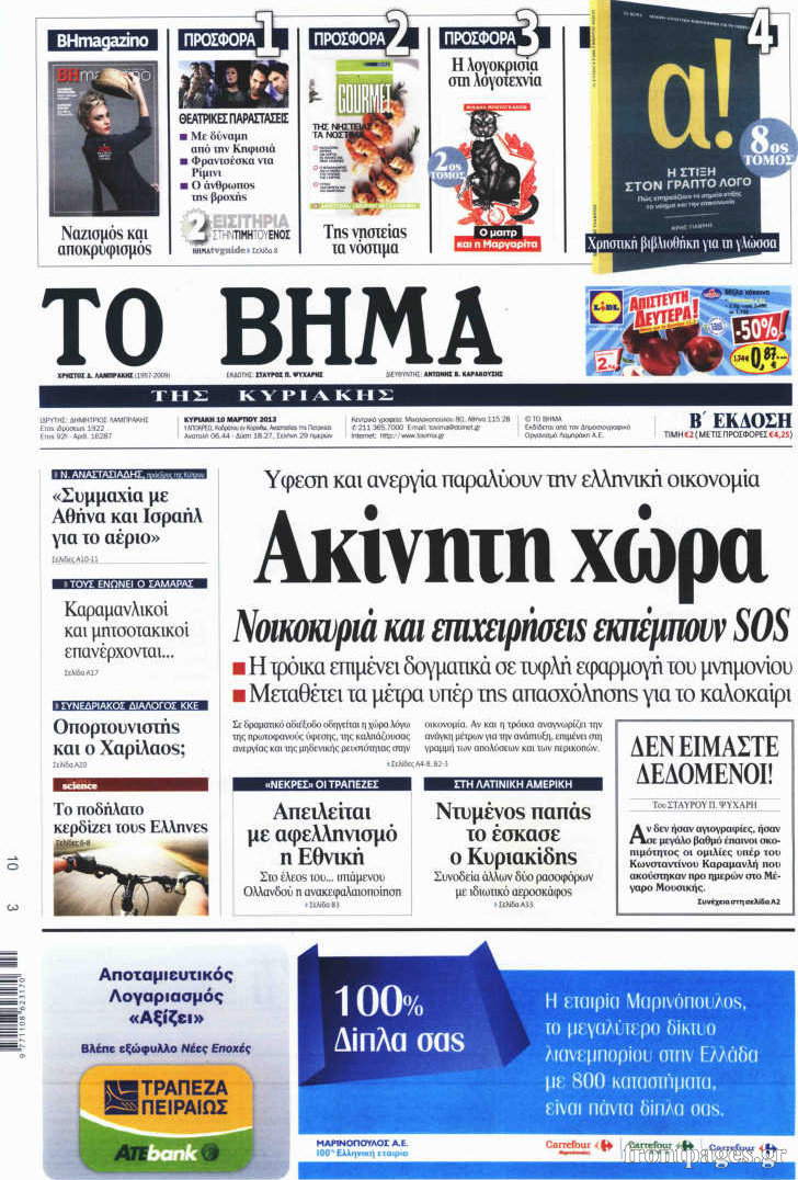 Οι πολιτικές εφημερίδες Enikos Newsroom 08:50, Κυριακή 10 Μαρτίου 2013 Media Οι πολιτικές εφημερίδες Τα πρωτοσέλιδα των πολιτικών εφημερίδων. ΕΦΗΜΕΡΙΔΕΣ ΟΙ ΠΟΛΙΤΙΚΕΣ ΕΦΗΜΕΡΙΔΕΣ ΠΡΩΤΟΣΕΛΙΔΑ Μοιράσου το: σχολίασε κι εσύ (0 σχόλια) Ακολουθήστε το enikos.gr στο Google News και μάθετε πρώτοι όλες τις ειδήσεις Δείτε όλες τις τελευταίες ειδήσεις από την Ελλάδα και τον Κόσμο στο enikos.gr Ειδήσεις Ροή Ειδήσεων 54 λεπτά πριν Live – Έξοδος Χριστουγέννων: Αυξημένη η κίνηση στις Εθνικές Οδούς – Εικόνα αποσυμφόρησης με νέες λωρίδες κυκλοφορίας στα αγροτικά μπλόκα 1 ώρα πριν Ο Ζελένσκι παρουσίασε νέο ειρηνευτικό σχέδιο 20 σημείων για τον τερματισμό του πολέμου στην Ουκρανία 3 ώρες πριν Τουρκία: Αναφορές για Ελληνίδα αεροσυνοδό στο αεροσκάφος που συνετρίβη με τον αρχηγό του Γενικού Επιτελείου της Λιβύης 3 ώρες πριν Καιρός: Βροχές και καταιγίδες σήμερα στο μεγαλύτερο μέρος της χώρας – Πώς θα κάνουμε Χριστούγεννα, τα δεδομένα για την Πρωτοχρονιά 2 ώρες πριν Φρίκη στη Θεσσαλονίκη: 13χρονη κατήγγειλε ότι έπεσε θύμα ομαδικού βιασμού από 6 αγόρια 2 ώρες πριν Η ζωή για 3 ζώδια γίνεται πολύ πιο εύκολη από εδώ και πέρα – «Εμπιστευτείτε τη διαίσθηση σας για να πάρετε αποφάσεις» 3 ώρες πριν Χαμός στο διαδίκτυο με ανάρτηση μητέρας για όσους δεν έχουν παιδιά – «Κάνουν διακοπές κάθε μέρα» 1 ημέρα πριν Η Coca-Cola και ο Ελληνικός Ερυθρός Σταυρός μαζί αυτά τα Χριστούγεννα: Μια μεγάλη αγκαλιά για τους συνανθρώπους μας που έχουν ανάγκη 1 ώρα πριν Γυναίκα που έχασε 30 κιλά αποκαλύπτει τα μυστικά της επιτυχίας της – «Οι υδατάνθρακες είναι καύσιμο του οργανισμού, όχι εχθρός» 32 δευτερόλεπτα πριν Έξοδος εκδρομέων για τα Χριστούγεννα: Στείλε βίντεο ή φωτογραφίες στο enikos.gr – Αποθήκευσε τον αριθμό 6944 05 05 05 2 λεπτά πριν Οι άνθρωποι που αποφεύγουν να γιορτάσουν τα Χριστούγεννα με την οικογένειά τους, συνήθως είχαν αυτές τις 8 εμπειρίες στην παιδική ηλικία 5 λεπτά πριν Σέρρες: Θρίλερ με την εξαφάνιση πυροσβέστη στα Άνω Πορόια 12 λεπτά πριν Σοβαρό τροχαίο στην Εθνική Οδό Κορίνθου – Τρίπολης: Εγκλωβίστηκαν επιβάτες αυτοκινήτου που ανετράπη – Δείτε φωτογραφίες 17 λεπτά πριν Αεροπορικό δυστύχημα στην Τουρκία: Στο μικροσκόπιο ο καταγραφέας ήχου και το μαύρο κουτί – Η αεροσυνοδός Maria Pappa ανάμεσα στα θύματα ENIKOS NETWORK Στο επίκεντρο οι ανάγκες των ατόμων με διαβήτη-Τρεις προτάσεις προς τον ΕΟΦ Πόνος στην κοιλιά στους άνδρες: Με ποιες παθήσεις μπορεί να σχετίζεται Δημόσιο: Αυξημένες οι καθαρές αποδοχές των υπαλλήλων – Δείτε αναλυτικά παραδείγματα Τραπέζι των Χριστουγέννων: Χρήσιμες οδηγίες από τον ΕΦΕΤ για τους καταναλωτές Ο Google Assistant θα παραμείνει λίγο περισσότερο για ορισμένους χρήστες Android Τεστ προσωπικότητας: Το βάζο που θα επιλέξετε αποκαλύπτει πώς λύνετε προβλήματα στη ζωή σας περισσότερα 12:05 , Τετάρτη 24 Δεκεμβρίου 2025 Έξοδος εκδρομέων για τα Χριστούγεννα: Στείλε βίντεο ή φωτογραφίες στο enikos.gr – Αποθήκευσε τον αριθμό 6944 05 05 05 Πολλοί έχουν επιλέξει να περάσουν τις γιορτές εκτός πόλης, ωστόσο και φέτος η μαζική έξοδος απ... 10:36 , Τετάρτη 24 Δεκεμβρίου 2025 Τηλεθέαση (23/12): Ποιες πρωινές εκπομπές της ψυχαγωγικής ζώνης πήραν προβάδισμα; Με αμείωτη ένταση συνεχίστηκε η «μάχη» στην πρωινή ζώνη την Τρίτη 23 Δεκεμβρίου, όπως φαίνεται... 10:09 , Τετάρτη 24 Δεκεμβρίου 2025 Την Κυριακή με τη Realnews: Ό,τι και αν αγοράσεις, σκανάρεις και κερδίζεις! Την Κυριακή με τη Realnews: Ό,τι και αν αγοράσεις, σκανάρεις και κερδίζεις! Με το PADU app, το... 10:05 , Τετάρτη 24 