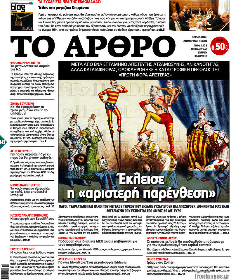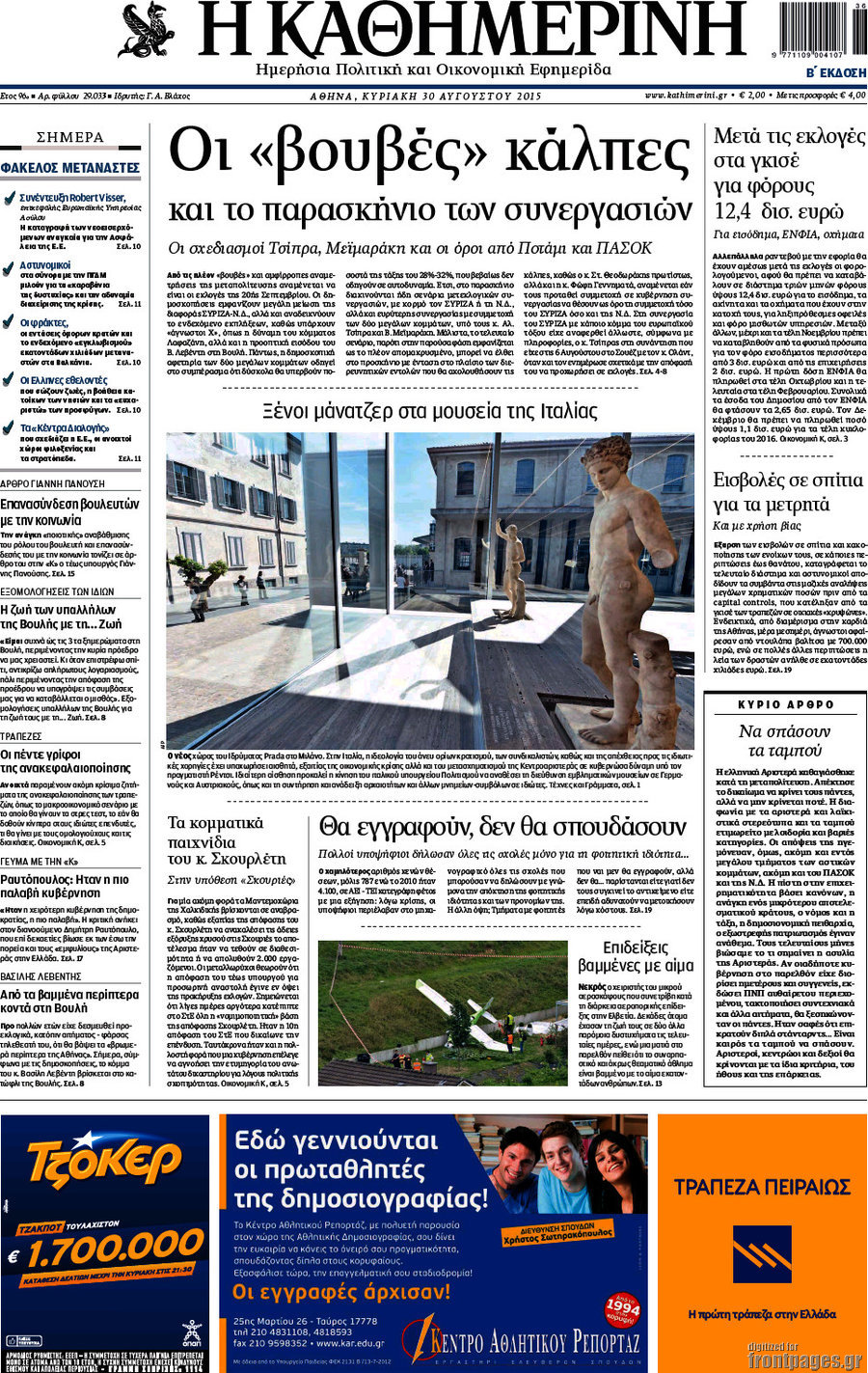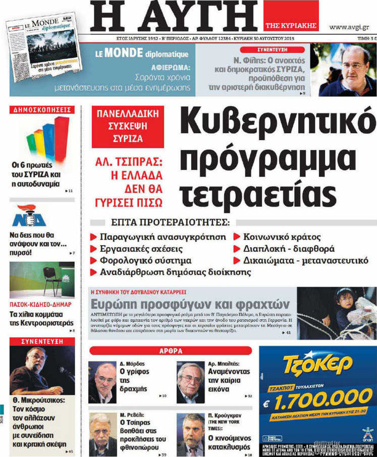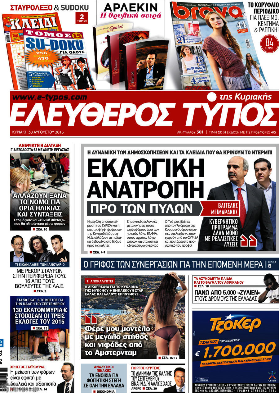 Οι πολιτικές εφημερίδες 30/8/2015 Στεφανία Κασίμη 07:30, Κυριακή 30 Αυγούστου 2015 Media Διαβάστε τα σημερινά πρωτοσέλιδα των πολιτικών εφημερίδων: ΕΦΗΜΕΡΙΔΕΣ ΠΟΛΙΤΙΚΕΣ ΕΦΗΜΕΡΙΔΕΣ ΠΡΩΤΟΣΕΛΙΔΑ Μοιράσου το: σχολίασε κι εσύ (0 σχόλια) Ακολουθήστε το enikos.gr στο Google News και μάθετε πρώτοι όλες τις ειδήσεις Δείτε όλες τις τελευταίες ειδήσεις από την Ελλάδα και τον Κόσμο στο enikos.gr Ειδήσεις Ροή Ειδήσεων 2 ώρες πριν Η Ουκρανία χτύπησε τάνκερ του σκιώδους στόλου της Ρωσίας στη Μεσόγειο – Έπλεε νότια της Κρήτης 4 ώρες πριν Πούτιν: Η Ουκρανία δεν είναι έτοιμη για ειρηνευτικές συνομιλίες – Ο ρωσικός στρατός προελαύνει σε όλα τα μέτωπα 49 λεπτά πριν Θεσσαλονίκη: Στη φυλακή ο 44χρονος που κατηγορείται ότι προσπάθησε να πνίξει με κορδόνι την 34χρονη σύντροφό του 1 ώρα πριν Εξώδικο επιχειρηματία στον Γιώργο Μαζωνάκη – Τι απαντά στις καταγγελίες του τραγουδιστή 2 ώρες πριν Βουλή: Υπερψηφίστηκε το νομοσχέδιο για την ένταξη του ΟΠΕΚΕΠΕ στην ΑΑΔΕ 6 ώρες πριν Αλλαγή σελίδας για 3 ζώδια – «Μία δύσκολη περίοδος φτάνει στο τέλος της» 2 ημέρες πριν 20 χρόνια τα Χριστούγεννα ξεκινούν στα Public με μεγάλη ποικιλία σε δώρα! 5 ώρες πριν Γεμάτος νεροχύτης; 5 σοβαρές ευθύνες που «φοβίζουν» όσους αφήνουν άπλυτα πιάτα 4 ώρες πριν Ειδικός μοιράζεται 6 κόλπα για να διατηρείστε σε φόρμα με πάνω από 40 ώρες εργασίας την εβδομάδα: «Προπονηθείτε πριν από τη δουλειά, όχι μετά» 4 λεπτά πριν Ηράκλειο: Νεκρός ένας 65χρονος μοτοσικλετιστής έπειτα από σφοδρή σύγκρουση οχημάτων – ΦΩΤΟ 12 λεπτά πριν Πούτιν: Σαρκαστικά μηνύματα, παράπονα και απρόοπτα στη συνέντευξη Τύπου – Η πρόταση γάμου on air και οι ερωτήσεις για τα αγγούρια και τους… εξωγήινους 19 λεπτά πριν Κρήτη: Ένοχος ο 54χρονος «ερευνητής» για απάτη στην υπόθεση του 33χρονου γιατρού που αγνοείται 19 λεπτά πριν Νίκος Κούρκουλος: Αυτός ο αλύγιστος και ασυμβίβαστος «Αστραπόγιαννος» 25 λεπτά πριν Παναθηναϊκός: Θα προτείνει στη Λάτσιο 4 εκατ. ευρώ και συνιδιοκτησία για τον Μανδά ENIKOS NETWORK Τάξη στις ιατρικές διαφημίσεις για την προστασία των πολιτών βάζει ο ΙΣΑ Μακροζωία: Τι παίζει πιο σημαντικό ρόλο ακόμα και από την διατροφή και την άσκηση, σύμφωνα με μελέτη Βουλή: Υπερψηφίστηκε το νομοσχέδιο για τη μετάβαση του ΟΠΕΚΕΠΕ στην ΑΑΔΕ ΕΥΔΑΠ: Οδηγός για τις αλλαγές στα τιμολόγια του νερού – 17 ερωτήσεις και απαντήσεις Χαρτογραφώντας το «σημείο χωρίς επιστροφή»: Για πρώτη φορά αποκαλύπτεται με λεπτομέρεια το ακανθώδες όριο της ατμόσφαιρας τ... Η Google καταργεί τη λειτουργία «dark web report» – Πώς θα μπορούν οι χρήστες να διαγράφουν τα δεδομένα τους περισσότερα 15:15 , Παρασκευή 19 Δεκεμβρίου 2025 Την Κυριακή με τη Realnews: Ό,τι και αν αγοράσεις, σκανάρεις και κερδίζεις! Την Κυριακή με τη Realnews: Ό,τι και αν αγοράσεις, σκανάρεις και κερδίζεις! Με το PADU app, το... 08:00 , Παρασκευή 19 Δεκεμβρίου 2025 Την Κυριακή με τη Realnews: Δωροεπιταγή 10€ Δωροεπιταγή αξίας 10€ για αγορές άνω των 60€ από τα πολυκαταστήματα FactoryOutlet H προσφορά ι... 05:48 , Παρασκευή 19 Δεκεμβρίου 2025 Οι οικονομικές εφημερίδες 19/12/2025 Διαβάστε τα πρωτοσέλιδα από τις οικονομικές εφημερίδες, σήμερα 19/12/2025. 05:43 , Παρασκευή 19 Δεκεμβρίου 2025 Οι αθλητικές εφημερίδες 19/12/2025 Διαβάστε τα πρωτοσέλιδα από τις αθλητικές εφημερίδες, σήμερα 19/12/2025. ΤΕΛΕΥΤΑΙΕΣ ΕΙΔΗΣΕΙΣ 4 λεπτά πριν Ηράκλειο: Νεκρός ένας 65χρονος μοτοσικλετιστής έπειτα... 12 λεπτά πριν Πούτιν: Σαρκαστικά μηνύματα, παράπονα και απρόοπτα... 19 λεπτά πριν Κρήτη: Ένοχος ο 54χρονος «ερευνητής» για απάτη στην