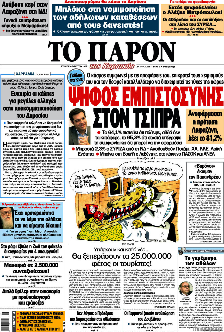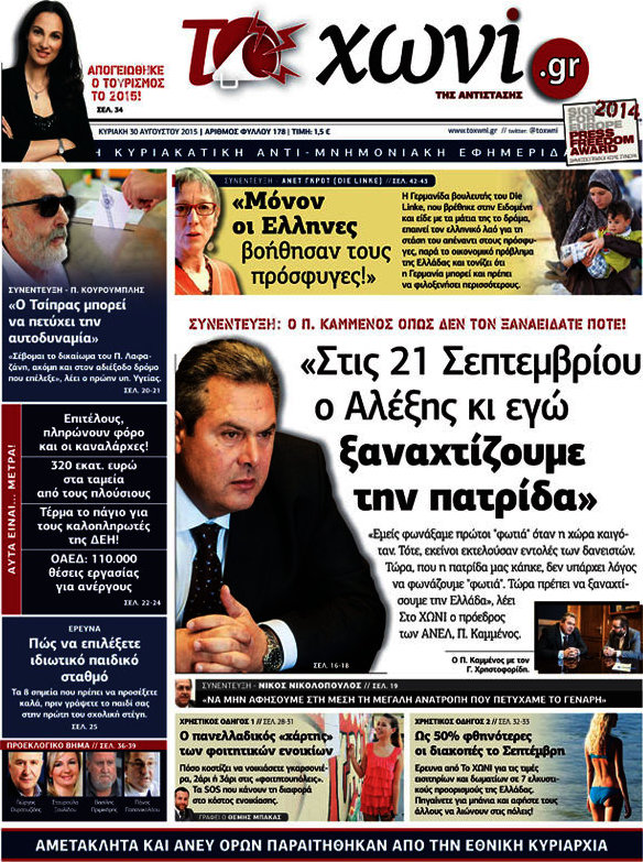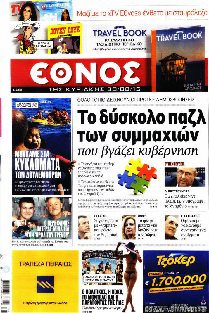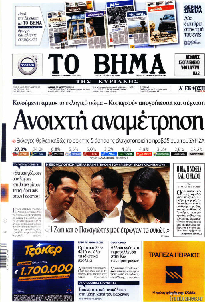 Οι πολιτικές εφημερίδες 30/8/2015 Στεφανία Κασίμη 07:30, Κυριακή 30 Αυγούστου 2015 Media Διαβάστε τα σημερινά πρωτοσέλιδα των πολιτικών εφημερίδων: ΕΦΗΜΕΡΙΔΕΣ ΠΟΛΙΤΙΚΕΣ ΕΦΗΜΕΡΙΔΕΣ ΠΡΩΤΟΣΕΛΙΔΑ Μοιράσου το: σχολίασε κι εσύ (0 σχόλια) Ακολουθήστε το enikos.gr στο Google News και μάθετε πρώτοι όλες τις ειδήσεις Δείτε όλες τις τελευταίες ειδήσεις από την Ελλάδα και τον Κόσμο στο enikos.gr Ειδήσεις Ροή Ειδήσεων 2 ώρες πριν Η Ουκρανία χτύπησε τάνκερ του σκιώδους στόλου της Ρωσίας στη Μεσόγειο – Έπλεε νότια της Κρήτης 4 ώρες πριν Πούτιν: Η Ουκρανία δεν είναι έτοιμη για ειρηνευτικές συνομιλίες – Ο ρωσικός στρατός προελαύνει σε όλα τα μέτωπα 49 λεπτά πριν Θεσσαλονίκη: Στη φυλακή ο 44χρονος που κατηγορείται ότι προσπάθησε να πνίξει με κορδόνι την 34χρονη σύντροφό του 1 ώρα πριν Εξώδικο επιχειρηματία στον Γιώργο Μαζωνάκη – Τι απαντά στις καταγγελίες του τραγουδιστή 2 ώρες πριν Βουλή: Υπερψηφίστηκε το νομοσχέδιο για την ένταξη του ΟΠΕΚΕΠΕ στην ΑΑΔΕ 6 ώρες πριν Αλλαγή σελίδας για 3 ζώδια – «Μία δύσκολη περίοδος φτάνει στο τέλος της» 2 ημέρες πριν 20 χρόνια τα Χριστούγεννα ξεκινούν στα Public με μεγάλη ποικιλία σε δώρα! 5 ώρες πριν Γεμάτος νεροχύτης; 5 σοβαρές ευθύνες που «φοβίζουν» όσους αφήνουν άπλυτα πιάτα 4 ώρες πριν Ειδικός μοιράζεται 6 κόλπα για να διατηρείστε σε φόρμα με πάνω από 40 ώρες εργασίας την εβδομάδα: «Προπονηθείτε πριν από τη δουλειά, όχι μετά» 4 λεπτά πριν Ηράκλειο: Νεκρός ένας 65χρονος μοτοσικλετιστής έπειτα από σφοδρή σύγκρουση οχημάτων – ΦΩΤΟ 12 λεπτά πριν Πούτιν: Σαρκαστικά μηνύματα, παράπονα και απρόοπτα στη συνέντευξη Τύπου – Η πρόταση γάμου on air και οι ερωτήσεις για τα αγγούρια και τους… εξωγήινους 19 λεπτά πριν Κρήτη: Ένοχος ο 54χρονος «ερευνητής» για απάτη στην υπόθεση του 33χρονου γιατρού που αγνοείται 19 λεπτά πριν Νίκος Κούρκουλος: Αυτός ο αλύγιστος και ασυμβίβαστος «Αστραπόγιαννος» 25 λεπτά πριν Παναθηναϊκός: Θα προτείνει στη Λάτσιο 4 εκατ. ευρώ και συνιδιοκτησία για τον Μανδά ENIKOS NETWORK Τάξη στις ιατρικές διαφημίσεις για την προστασία των πολιτών βάζει ο ΙΣΑ Μακροζωία: Τι παίζει πιο σημαντικό ρόλο ακόμα και από την διατροφή και την άσκηση, σύμφωνα με μελέτη Βουλή: Υπερψηφίστηκε το νομοσχέδιο για τη μετάβαση του ΟΠΕΚΕΠΕ στην ΑΑΔΕ ΕΥΔΑΠ: Οδηγός για τις αλλαγές στα τιμολόγια του νερού – 17 ερωτήσεις και απαντήσεις Χαρτογραφώντας το «σημείο χωρίς επιστροφή»: Για πρώτη φορά αποκαλύπτεται με λεπτομέρεια το ακανθώδες όριο της ατμόσφαιρας τ... Η Google καταργεί τη λειτουργία «dark web report» – Πώς θα μπορούν οι χρήστες να διαγράφουν τα δεδομένα τους περισσότερα 15:15 , Παρασκευή 19 Δεκεμβρίου 2025 Την Κυριακή με τη Realnews: Ό,τι και αν αγοράσεις, σκανάρεις και κερδίζεις! Την Κυριακή με τη Realnews: Ό,τι και αν αγοράσεις, σκανάρεις και κερδίζεις! Με το PADU app, το... 08:00 , Παρασκευή 19 Δεκεμβρίου 2025 Την Κυριακή με τη Realnews: Δωροεπιταγή 10€ Δωροεπιταγή αξίας 10€ για αγορές άνω των 60€ από τα πολυκαταστήματα FactoryOutlet H προσφορά ι... 05:48 , Παρασκευή 19 Δεκεμβρίου 2025 Οι οικονομικές εφημερίδες 19/12/2025 Διαβάστε τα πρωτοσέλιδα από τις οικονομικές εφημερίδες, σήμερα 19/12/2025. 05:43 , Παρασκευή 19 Δεκεμβρίου 2025 Οι αθλητικές εφημερίδες 19/12/2025 Διαβάστε τα πρωτοσέλιδα από τις αθλητικές εφημερίδες, σήμερα 19/12/2025. ΤΕΛΕΥΤΑΙΕΣ ΕΙΔΗΣΕΙΣ 4 λεπτά πριν Ηράκλειο: Νεκρός ένας 65χρονος μοτοσικλετιστής έπειτα... 12 λεπτά πριν Πούτιν: Σαρκαστικά μηνύματα, παράπονα και απρόοπτα... 19 λεπτά πριν Κρήτη: Ένοχος ο 54χρονος «ερευνητής» για απάτη στην