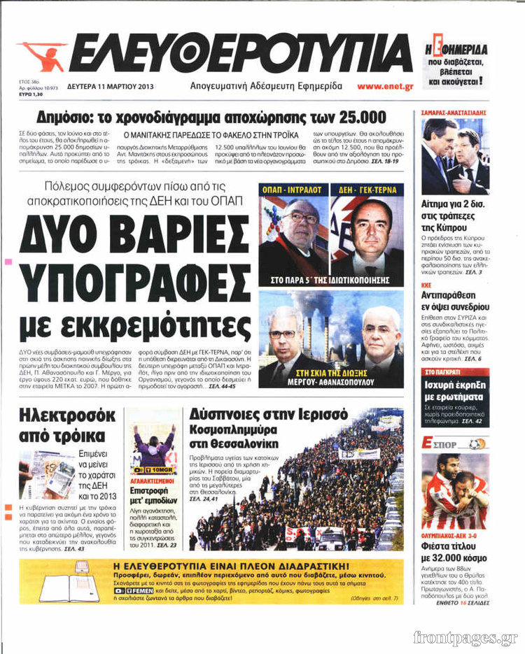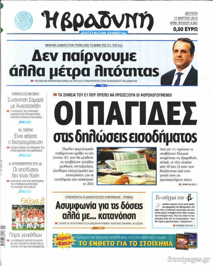 Οι πολιτικές εφημερίδες Enikos Newsroom 09:09, Δευτέρα 11 Μαρτίου 2013 Media Οι πολιτικές εφημερίδες Τα πρωτοσέλιδα των πολιτικών εφημερίδων. ΕΦΗΜΕΡΙΔΕΣ ΠΟΛΙΤΙΚΕΣ ΕΦΗΜΕΡΙΔΕΣ ΠΡΩΤΟΣΕΛΙΔΑ Μοιράσου το: σχολίασε κι εσύ (0 σχόλια) Ακολουθήστε το enikos.gr στο Google News και μάθετε πρώτοι όλες τις ειδήσεις Δείτε όλες τις τελευταίες ειδήσεις από την Ελλάδα και τον Κόσμο στο enikos.gr Ειδήσεις Ροή Ειδήσεων 4 ώρες πριν Πώς δρούσε το κύκλωμα που διακινούσε ναρκωτικά σε σχολεία – Υπέβαλαν σε βασανιστήρια όσους δεν τηρούσαν τους «κανόνες πειθαρχίας» 4 ώρες πριν Αγρότες: Γιορτές στα μπλόκα με ανοιχτά διόδια – Δικογραφία στα Ιωάννινα για το σήκωμα των μπαρών 4 ώρες πριν Ζελένσκι: Οι Αμερικανοί πρότειναν συνάντηση Ουκρανίας, ΗΠΑ, Ρωσίας στο Μαϊάμι 2 ώρες πριν Τραμπ: Πώς περνάει τις γιορτές των Χριστουγέννων – Τα δώρα που κάνει στα εγγόνια του 3 ώρες πριν Μικαέλα Μπέντχαους: Ο πρώτος άνθρωπος σε αναπηρικό αμαξίδιο που ταξίδεψε στο διάστημα – ΒΙΝΤΕΟ 5 ώρες πριν Η τύχη χαμογελά σε 3 ζώδια έως τις 28 Δεκεμβρίου – «Προσέξτε τις επιλογές σας και η επιμονή σας θα ανταμειφθεί» 6 ώρες πριν Μία ανεκμετάλλευτη πηγή θα μπορούσε να προσφέρει ανεξάντλητη ενέργεια – Οι επιστήμονες ίσως γνωρίζουν πώς να την ξεκλειδώσουν 2 ώρες πριν Μήπως οι γιορτές σας δεν είναι τόσο τέλειες; 7 χριστουγεννιάτικες συνήθειες που μαρτυρούν ότι μια οικογένεια είναι δυσλειτουργική 12 ώρες πριν Enerwave: Το νέο «ρεύμα» στη λιανική ενέργειας που αλλάζει την εμπειρία του καταναλωτή 4 λεπτά πριν Super League: Ο Σιαμπάνης «κατέβασε ρολά» και ο Βόλος νίκησε 1-0 τον Παναιτωλικό 14 λεπτά πριν Αυτή την Κυριακή με τη Realnews: Instyle, μαζί Drive και Realnews Geopolitics 16 λεπτά πριν Ο ΑΝΤ1 γεμίζει τις γιορτές με μουσική – Ποιους καλλιτέχνες θα απολαύσουμε 26 λεπτά πριν Πάπας Λέων: Όταν έχει αϋπνίες επενδύει παραγωγικά τον χρόνο του – Ποιο παιχνίδι παίζει στο κινητό 34 λεπτά πριν Πέθανε η σπουδαία αρχαιολόγος Λίλα Μαραγκού ENIKOS NETWORK Οι γυναίκες αποκαλύπτουν το πιο ελκυστικό πράγμα που μπορεί να κάνει ένας άνδρας Ομορφιά και αντιγήρανση: Ειδικοί μιλούν για συσκευές περιποίησης του δέρματος Πορτοκαλί τιμολόγια ρεύματος: Τα σημεία που πρέπει να προσέξουν οι καταναλωτές – Πότε θα εφαρμοστούν Θεοδωρικάκος: Εθνική στρατηγική για τους ημιαγωγούς – Πρώτο βήμα η χρηματοδότηση του πρώτου Κέντρου Ικανοτήτων, με 3,63 εκα... Χαρτογραφώντας το «σημείο χωρίς επιστροφή»: Για πρώτη φορά αποκαλύπτεται με λεπτομέρεια το ακανθώδες όριο της ατμόσφαιρας τ... Η Google καταργεί τη λειτουργία «dark web report» – Πώς θα μπορούν οι χρήστες να διαγράφουν τα δεδομένα τους περισσότερα 20:30 , Σάββατο 20 Δεκεμβρίου 2025 Αυτή την Κυριακή με τη Realnews: Instyle, μαζί Drive και Realnews Geopolitics Αυτή την Κυριακή με τη Realnews: Instyle, μαζί Drive και Realnews Geopolitics Instyle Η Άννα Ρ... 20:28 , Σάββατο 20 Δεκεμβρίου 2025 Ο ΑΝΤ1 γεμίζει τις γιορτές με μουσική – Ποιους καλλιτέχνες θα απολαύσουμε Φέτος στον ΑΝΤ1 γιορτάζουμε τις νύχτες μας παρέα με αγαπημένους καλλιτέχνες και μεγάλες μουσι... 18:19 , Σάββατο 20 Δεκεμβρίου 2025 HOTΕΛ ΕΛVIRA: Η Ελβίρα μαθαίνει πως ο Χάρι μένει κρυφά στο ξενοδοχείο του Παντελή Συνεχίζονται οι εκλογές για πρόεδρο, στο νέο επεισόδιο της κωμικής σειράς του MEGA, HOTΕΛ ΕΛVI... 14:04 , Σάββατο 20 Δεκεμβρίου 2025 Η Realnews αυτής της Κυριακής (21/12/2025) Με τίτλο: «Ασπίδα προστασίας για την Ελλάδα» κυκλοφορεί, αυτήν την Κυριακή, η Realnews. Σημαντ... ΤΕΛΕΥΤΑΙΕΣ ΕΙΔΗΣΕΙΣ 4 λεπτά πριν Super League: Ο Σιαμπάνης «κατέβασε ρολά» και ο Βόλος νίκησε... 14 λεπτά πριν Αυτή την Κυριακ