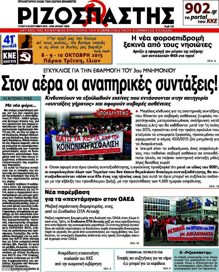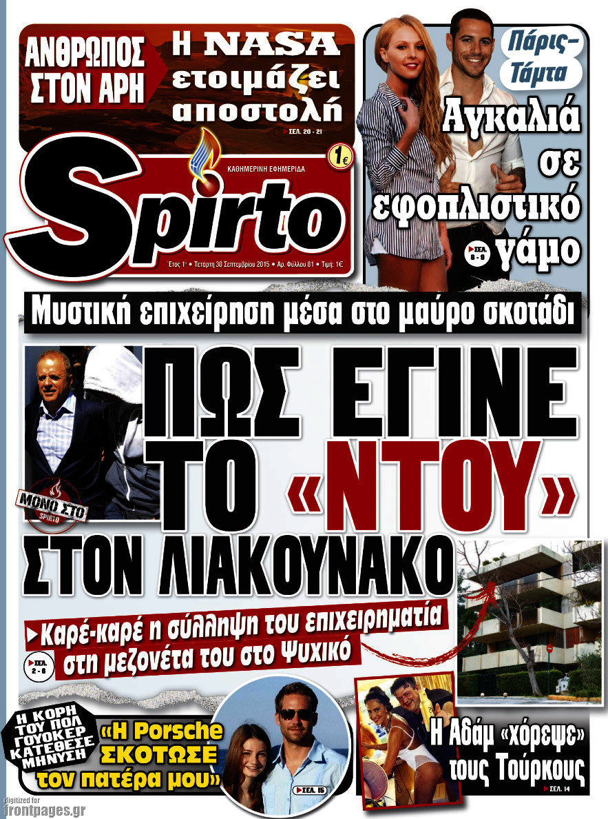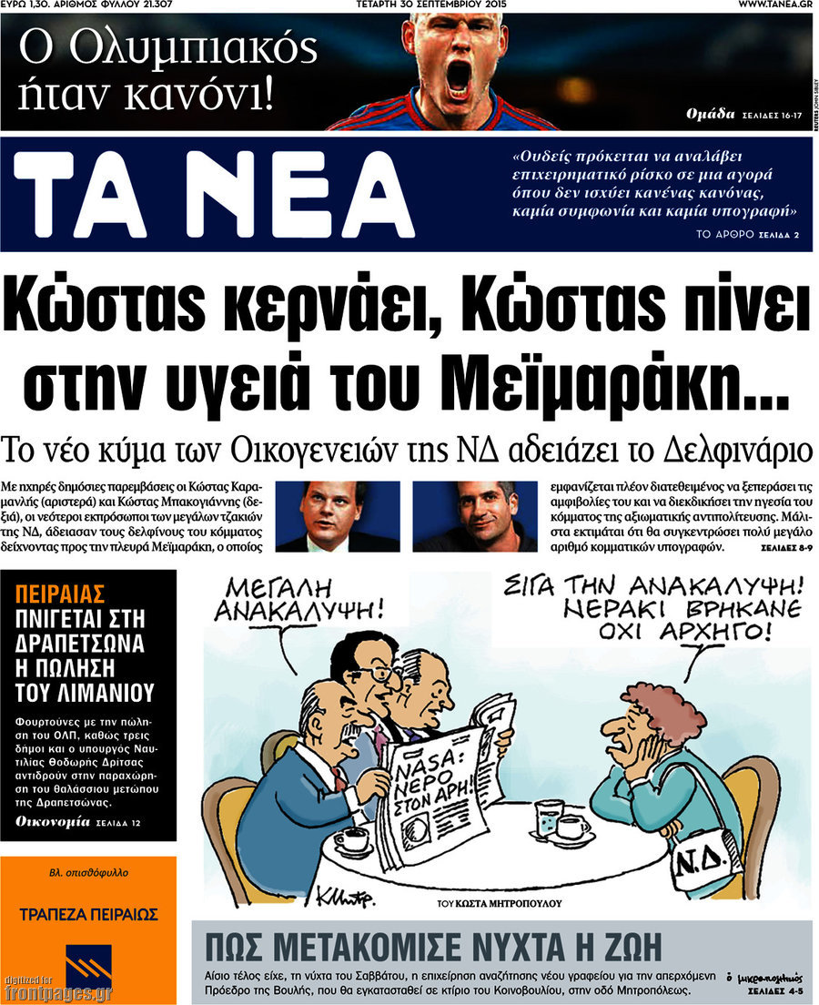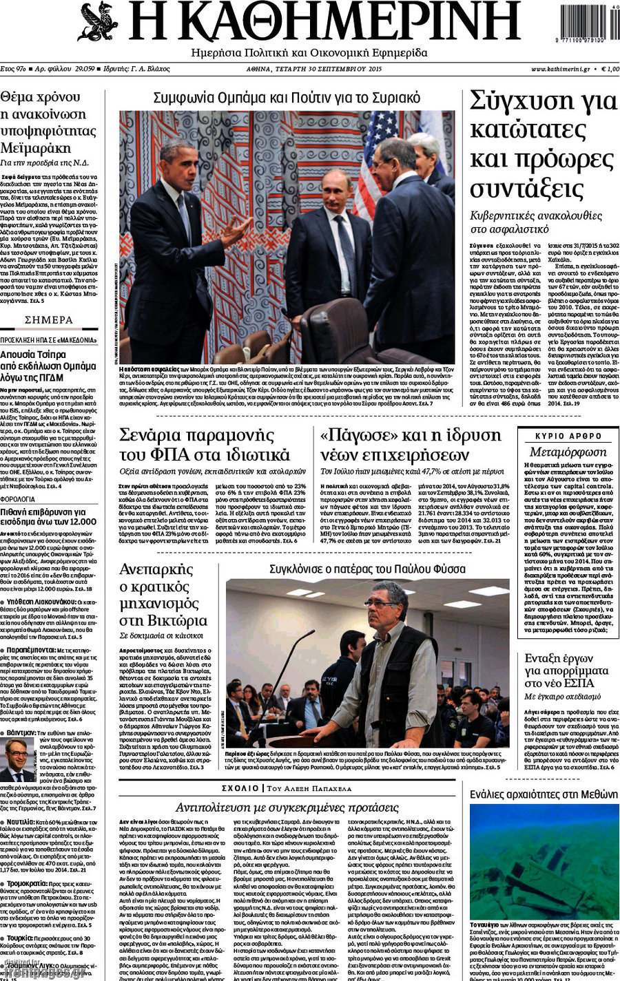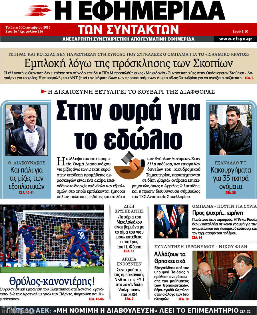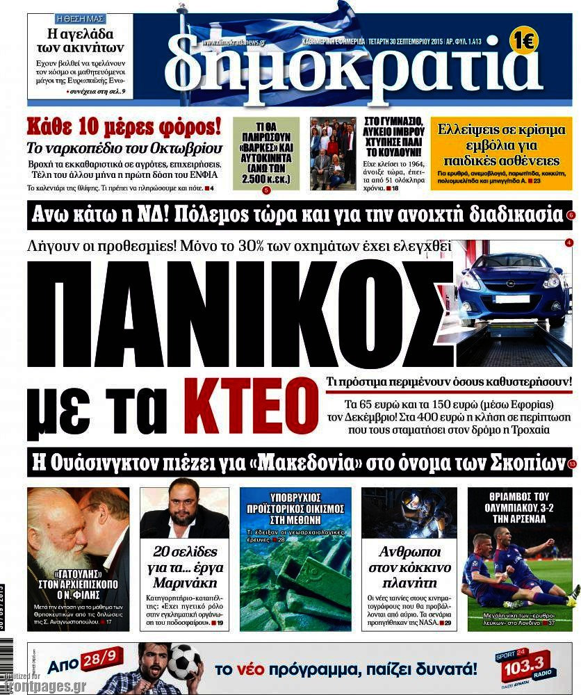 Οι πολιτικές εφημερίδες 30/9/2015 Enikos Newsroom 08:05, Τετάρτη 30 Σεπτεμβρίου 2015 Media Διαβάστε τα σημερινά πρωτοσέλιδα των πολιτικών εφημερίδων: ΠΟΛΙΤΙΚΕΣ ΕΦΗΜΕΡΙΔΕΣ ΠΡΩΤΟΣΕΛΙΔΑ Μοιράσου το: σχολίασε κι εσύ (0 σχόλια) Ακολουθήστε το enikos.gr στο Google News και μάθετε πρώτοι όλες τις ειδήσεις Δείτε όλες τις τελευταίες ειδήσεις από την Ελλάδα και τον Κόσμο στο enikos.gr Ειδήσεις Ροή Ειδήσεων 7 ώρες πριν Χριστούγεννα στα μπλόκα: Επιμένουν στις κινητοποιήσεις τους οι αγρότες – Ανοίγουν τα διόδια το Σαββατοκύριακο 7 ώρες πριν Ουκρανία: Η άνευ προηγουμένου επίθεση σε ρωσικό τάνκερ στη Μεσόγειο και το μήνυμα προς στον Πούτιν – Το «μακρύ χέρι» του Κιέβου 7 ώρες πριν Πούτιν: Τα μηνύματα σε Ευρώπη και ΝΑΤΟ από το μαραθώνιο «σόου» του – Η απαίτηση για «σεβασμό» και η ειρήνη «με τους όρους» της Μόσχας 8 ώρες πριν Τραμπ: Δεν αποκλείει την πιθανότητα ενός πολέμου στη Βενεζουέλα – «Ο Μαδούρο ξέρει καλύτερα από τον καθένα τι ακριβώς θέλω» 8 ώρες πριν Συνεχίζει να προκαλεί ο Μίτσκοσκι: «Για μένα το όνομα Μακεδονία είναι ιερό» 11 λεπτά πριν Τα ζώδια σήμερα, Σάββατο 20 Δεκεμβρίου: Παρθένοι, το σύμπαν σας δίνει το κλειδί 7 ώρες πριν Ανακαλύφθηκαν αρχαία χρυσά νομίσματα 2.200 ετών που απεικονίζουν τον θεό Απόλλωνα – Η άγνωστη σύνδεση με τον Φίλιππο Β΄ της Μακεδονίας 8 ώρες πριν Ύπνος: Μια κρυφή κατάσταση του εγκεφάλου πριν από τον ύπνο μπορεί να είναι το “κλειδί” για υψηλή ευφυΐα και δημιουργικότητα 9 ώρες πριν Αριθμολογία: Οι άνθρωποι που έχουν γεννηθεί αυτές τις 4 ημερομηνίες, συχνά παρεξηγούνται – «Η καλοσύνη τους κρύβει τεράστια δύναμη» 3 λεπτά πριν Οι πολιτικές εφημερίδες 20/12/2025 11 λεπτά πριν Τα ζώδια σήμερα, Σάββατο 20 Δεκεμβρίου: Παρθένοι, το σύμπαν σας δίνει το κλειδί 16 λεπτά πριν Παιανία: Δυο αυτοκίνητα τυλίχτηκαν στις φλόγες – Συναγερμός στην Πυροσβεστική 19 λεπτά πριν Εφημερεύοντα φαρμακεία σε Αθήνα και Θεσσαλονίκη (20/12) 26 λεπτά πριν Γιώργος Μπαρτζώκας: «Για εμένα σημαίνει πάρα πολλά να ακούω το όνομά μου από τον κόσμο του Ολυμπιακού» ENIKOS NETWORK Το ΕΚΑΒ τιμήθηκε από την Ακαδημία Αθηνών για τα 40 χρόνια προσφοράς του Έχετε πραγματικά μεγάλη καρδιά; 10 χαρακτηριστικά όσων έχουν καλοσύνη Αναστολή μέτρων αναγκαστικής εκτέλεσης για κτηνοτρόφους που πλήττονται από την ευλογιά των αιγοπροβάτων Πλήρης επάρκεια προϊόντων στις λαϊκές της Αττικής, παρά τις αγροτικές κινητοποιήσεις – Τι απαντούν οι πωλητές Χαρτογραφώντας το «σημείο χωρίς επιστροφή»: Για πρώτη φορά αποκαλύπτεται με λεπτομέρεια το ακανθώδες όριο της ατμόσφαιρας τ... Η Google καταργεί τη λειτουργία «dark web report» – Πώς θα μπορούν οι χρήστες να διαγράφουν τα δεδομένα τους περισσότερα 05:38 , Σάββατο 20 Δεκεμβρίου 2025 Οι πολιτικές εφημερίδες 20/12/2025 Διαβάστε τα πρωτοσέλιδα από τις πολιτικές εφημερίδες, σήμερα 20/12/2025. 04:20 , Σάββατο 20 Δεκεμβρίου 2025 Αγγελική Νικολούλη: Τα συλλυπητήρια για την απώλεια της Ειρήνης Μαρινάκη Τα συλληπητήρια στον πρόεδρο του Mega, τον Βαγγέλη Μαρινάκη, για την απώλεια της μητέρας του Ε... 02:50 , Σάββατο 20 Δεκεμβρίου 2025 GNTM: Η Ξένια Τσίρκοβα αναδείχθηκε μεγάλη νικήτρια και πήρε τις 50.000 ευρώ – Ποιος βρέθηκε σε απόσταση αναπνοής; Με φαντασμαγορικό τρόπο ολοκληρώθηκε το βράδυ της Παρασκευής ο μεγάλος τελικός του GNTM, μέσα ... 22:42 , Παρασκευή 19 Δεκεμβρίου 2025 Γιώργος Γιαννόπουλος για “Το σόι σου”: “Είναι ευτυχία και ευλογία αυτή η σειρά” «Είναι ευτυχία και ευλογία η συγκυρία αυτής της σειράς», θα πει ο Γιώργος Γιαννόπουλος -ο α