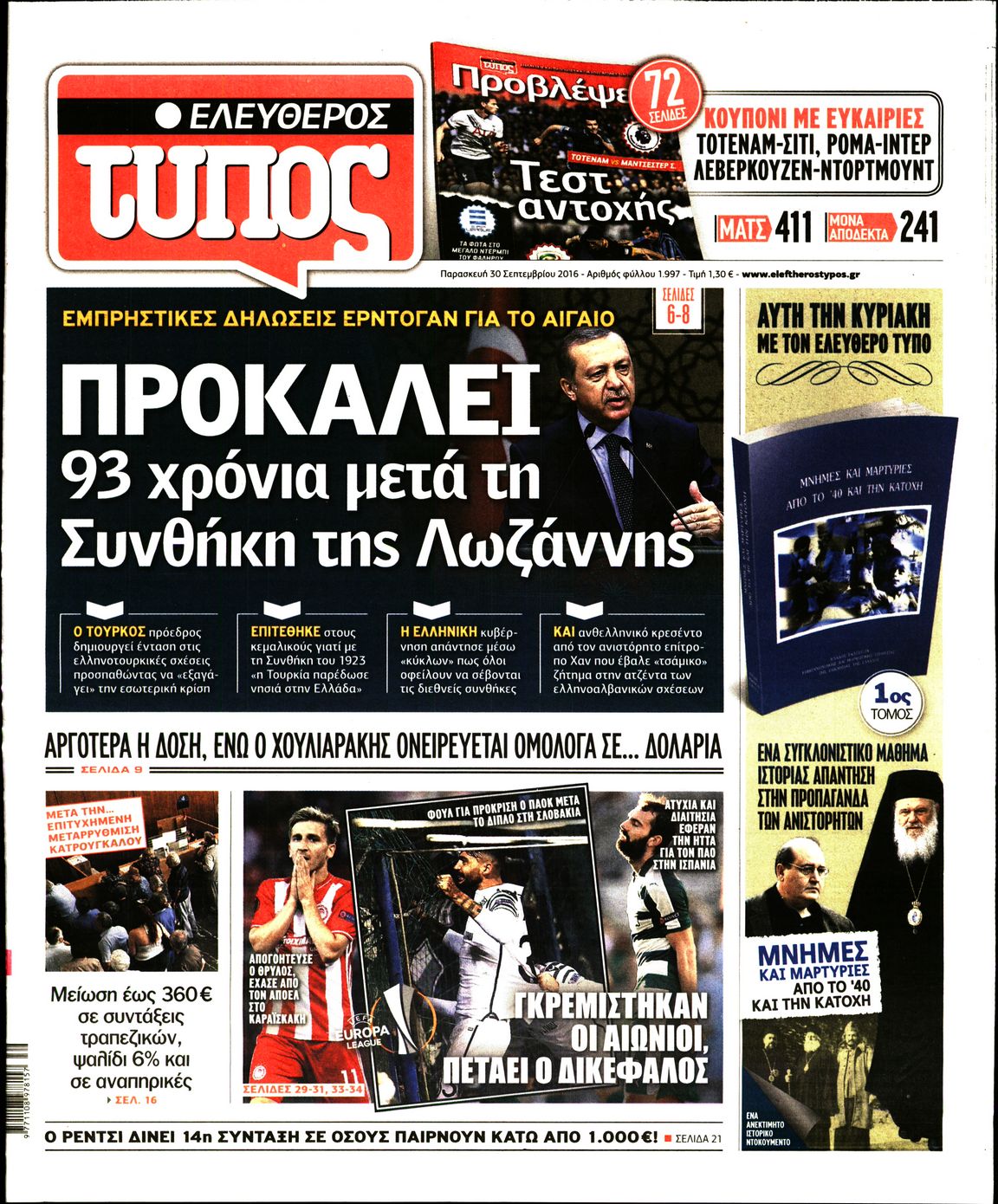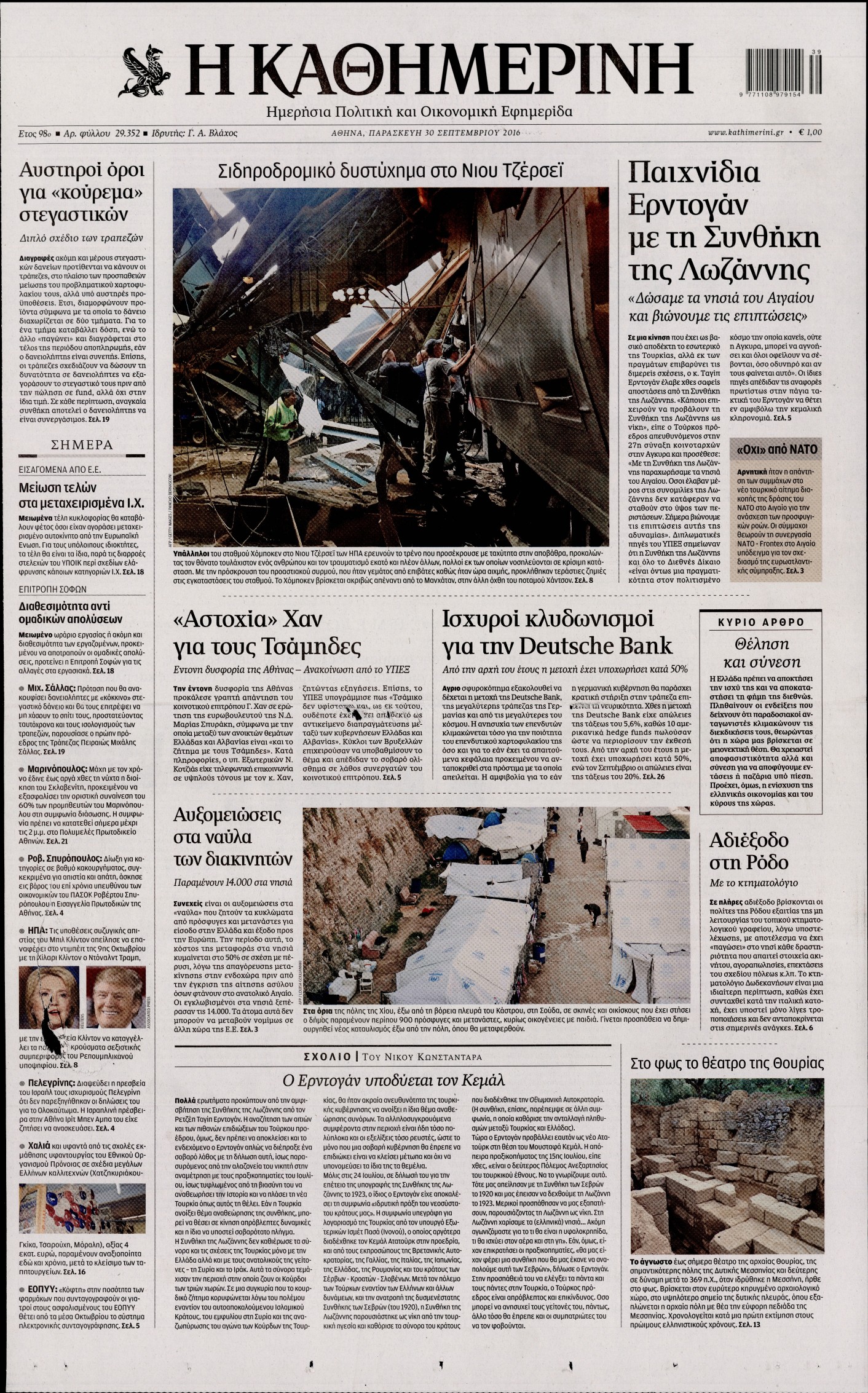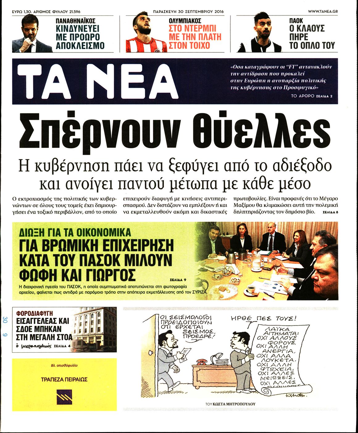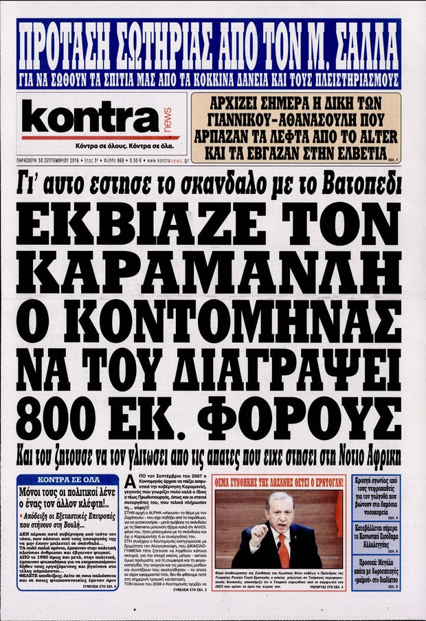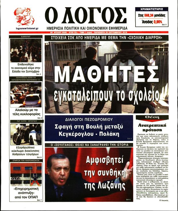 Oι πολιτικές εφημερίδες 30/9/2016 Enikos Newsroom 05:10, Παρασκευή 30 Σεπτεμβρίου 2016 Media Διαβάστε τα σημερινά πρωτοσέλιδα των πολιτικών εφημερίδων: ΠΟΛΙΤΙΚΕΣ ΕΦΗΜΕΡΙΔΕΣ ΠΡΩΤΟΣΕΛΙΔΑ Μοιράσου το: σχολίασε κι εσύ (0 σχόλια) Ακολουθήστε το enikos.gr στο Google News και μάθετε πρώτοι όλες τις ειδήσεις Δείτε όλες τις τελευταίες ειδήσεις από την Ελλάδα και τον Κόσμο στο enikos.gr Ειδήσεις Ροή Ειδήσεων 4 ώρες πριν Χριστούγεννα στα μπλόκα: Επιμένουν στις κινητοποιήσεις τους οι αγρότες – Ανοίγουν τα διόδια το Σαββατοκύριακο 4 ώρες πριν Ουκρανία: Η άνευ προηγουμένου επίθεση σε ρωσικό τάνκερ στη Μεσόγειο και το μήνυμα προς στον Πούτιν – Το «μακρύ χέρι» του Κιέβου 3 ώρες πριν Πούτιν: Τα μηνύματα σε Ευρώπη και ΝΑΤΟ από το μαραθώνιο «σόου» του – Η απαίτηση για «σεβασμό» και η ειρήνη «με τους όρους» της Μόσχας 4 ώρες πριν Τραμπ: Δεν αποκλείει την πιθανότητα ενός πολέμου στη Βενεζουέλα – «Ο Μαδούρο ξέρει καλύτερα από τον καθένα τι ακριβώς θέλω» 5 ώρες πριν Συνεχίζει να προκαλεί ο Μίτσκοσκι: «Για μένα το όνομα Μακεδονία είναι ιερό» 3 ώρες πριν Ανακαλύφθηκαν αρχαία χρυσά νομίσματα 2.200 ετών που απεικονίζουν τον θεό Απόλλωνα – Η άγνωστη σύνδεση με τον Φίλιππο Β΄ της Μακεδονίας 4 ώρες πριν Ύπνος: Μια κρυφή κατάσταση του εγκεφάλου πριν από τον ύπνο μπορεί να είναι το “κλειδί” για υψηλή ευφυΐα και δημιουργικότητα 5 ώρες πριν Αριθμολογία: Οι άνθρωποι που έχουν γεννηθεί αυτές τις 4 ημερομηνίες, συχνά παρεξηγούνται – «Η καλοσύνη τους κρύβει τεράστια δύναμη» 6 ώρες πριν Ξεχάστε το καθάρισμα το Σαββατοκύριακο: Ο «κανόνας των 20 λεπτών» που θα σας λύσει τα χέρια 20 δευτερόλεπτα πριν Εξάρχεια: Ένταση με μολότοφ, χημικά και κρότου λάμψης 16 λεπτά πριν ΗΠΑ: Τραγωδία στην Αλαμπάμα – Σκότωσε την δημοσιογράφο σύζυγό του και αυτοκτόνησε μπροστά στον 3χρονο γιο τους 30 λεπτά πριν Πρόταση γάμου στο ΣΕΦ κατά την διάρκεια του αγώνα Ολυμπιακός-Βιλερμπάν – Δείτε βίντεο 45 λεπτά πριν Euroleague: Επέστρεψε στις νίκες ο Ολυμπιακός, πήρε την ματσάρα της χρονιάς η Μπάρτσα – Τα αποτελέσματα και η βαθμολογία 1 ώρα πριν Συρία: Μαζικά πλήγματα των ΗΠΑ σε θέσεις του Ισλαμικού Κράτους – Χέγκσεθ: «Δεν είναι αρχή πολέμου, είναι μια δήλωση εκδίκησης» για το θάνατο των στρατιωτών μας ENIKOS NETWORK Το ΕΚΑΒ τιμήθηκε από την Ακαδημία Αθηνών για τα 40 χρόνια προσφοράς του Έχετε πραγματικά μεγάλη καρδιά; 10 χαρακτηριστικά όσων έχουν καλοσύνη Αναστολή μέτρων αναγκαστικής εκτέλεσης για κτηνοτρόφους που πλήττονται από την ευλογιά των αιγοπροβάτων Πλήρης επάρκεια προϊόντων στις λαϊκές της Αττικής, παρά τις αγροτικές κινητοποιήσεις – Τι απαντούν οι πωλητές Χαρτογραφώντας το «σημείο χωρίς επιστροφή»: Για πρώτη φορά αποκαλύπτεται με λεπτομέρεια το ακανθώδες όριο της ατμόσφαιρας τ... Η Google καταργεί τη λειτουργία «dark web report» – Πώς θα μπορούν οι χρήστες να διαγράφουν τα δεδομένα τους περισσότερα 22:42 , Παρασκευή 19 Δεκεμβρίου 2025 Γιώργος Γιαννόπουλος για “Το σόι σου”: “Είναι ευτυχία και ευλογία αυτή η σειρά” «Είναι ευτυχία και ευλογία η συγκυρία αυτής της σειράς», θα πει ο Γιώργος Γιαννόπουλος -ο αγαπ... 20:37 , Παρασκευή 19 Δεκεμβρίου 2025 Don’t Forget The Lyrics: Η Έλλη Κοκκίνου υποδέχεται 4 παίκτες που θα κάνουν τα πάντα για να μη χάσουν ούτε… μισή λέξη από τους στίχους Το «Don’t Forget The Lyrics» επιστρέφει απόψε, Παρασκευή 19 Δεκεμβρίου, στις 21:00 με νέο επει... 19:31 , Παρασκευή 19 Δεκεμβρίου 2025 GNTM: Απόψε ο μεγάλος τελικός για τους 4 φιναλίστ Έπειτα από μήνες γεμάτους μόδα, δημ