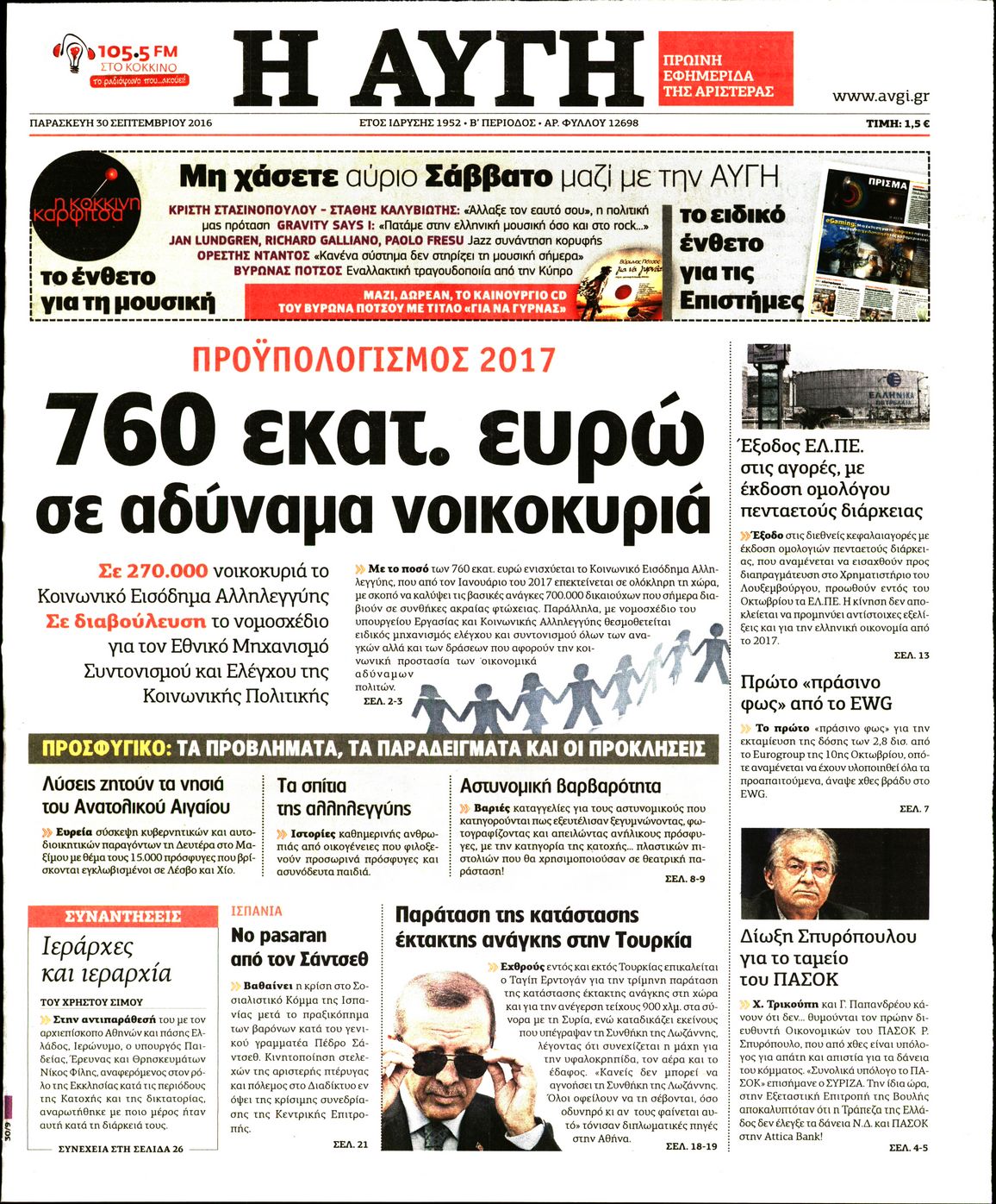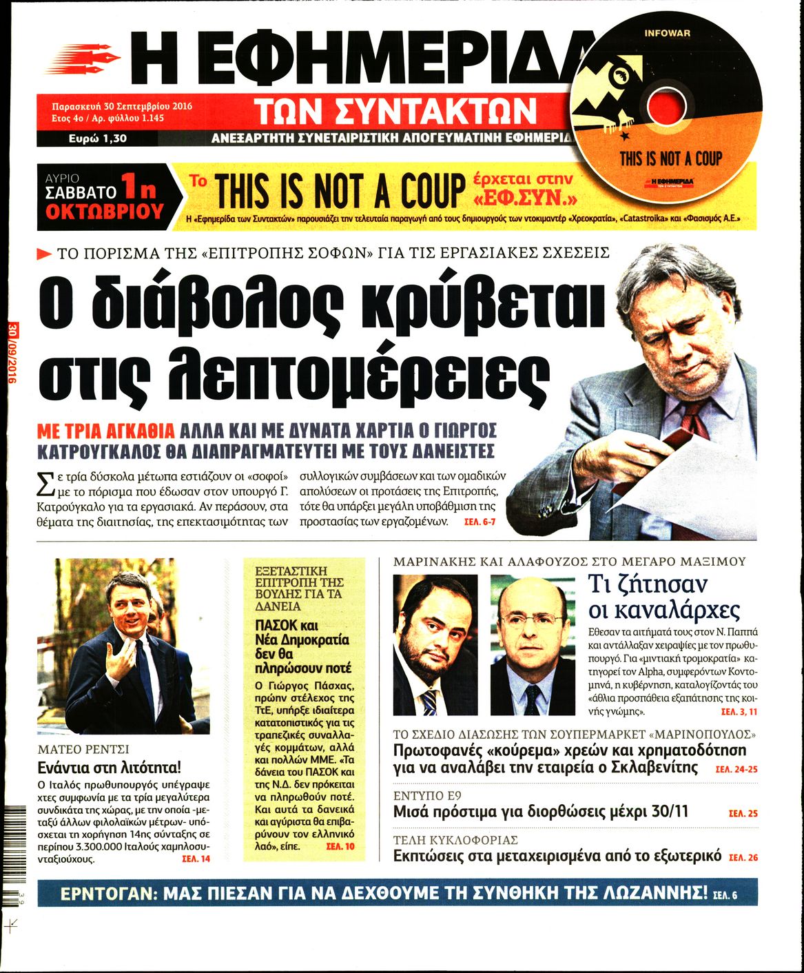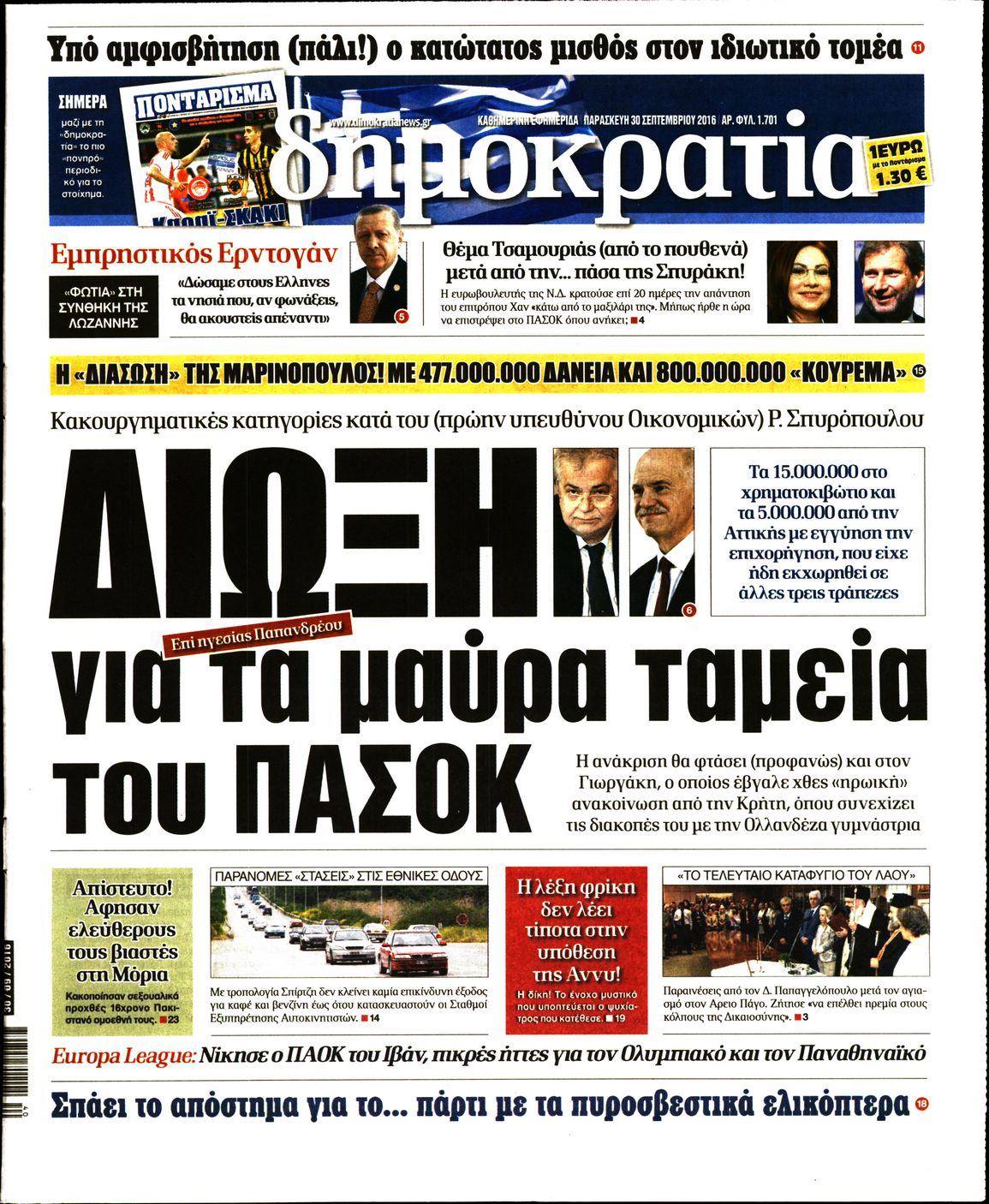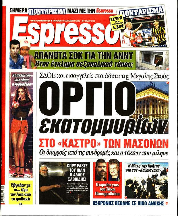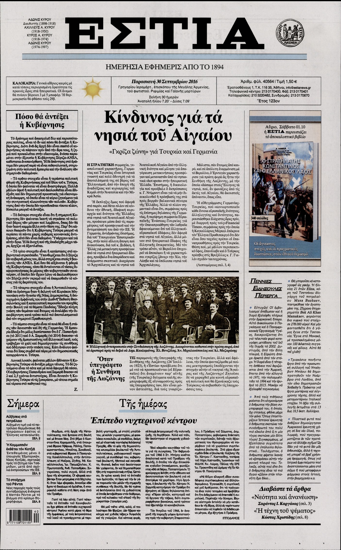 Oι πολιτικές εφημερίδες 30/9/2016 Enikos Newsroom 05:10, Παρασκευή 30 Σεπτεμβρίου 2016 Media Διαβάστε τα σημερινά πρωτοσέλιδα των πολιτικών εφημερίδων: ΠΟΛΙΤΙΚΕΣ ΕΦΗΜΕΡΙΔΕΣ ΠΡΩΤΟΣΕΛΙΔΑ Μοιράσου το: σχολίασε κι εσύ (0 σχόλια) Ακολουθήστε το enikos.gr στο Google News και μάθετε πρώτοι όλες τις ειδήσεις Δείτε όλες τις τελευταίες ειδήσεις από την Ελλάδα και τον Κόσμο στο enikos.gr Ειδήσεις Ροή Ειδήσεων 4 ώρες πριν Χριστούγεννα στα μπλόκα: Επιμένουν στις κινητοποιήσεις τους οι αγρότες – Ανοίγουν τα διόδια το Σαββατοκύριακο 4 ώρες πριν Ουκρανία: Η άνευ προηγουμένου επίθεση σε ρωσικό τάνκερ στη Μεσόγειο και το μήνυμα προς στον Πούτιν – Το «μακρύ χέρι» του Κιέβου 3 ώρες πριν Πούτιν: Τα μηνύματα σε Ευρώπη και ΝΑΤΟ από το μαραθώνιο «σόου» του – Η απαίτηση για «σεβασμό» και η ειρήνη «με τους όρους» της Μόσχας 4 ώρες πριν Τραμπ: Δεν αποκλείει την πιθανότητα ενός πολέμου στη Βενεζουέλα – «Ο Μαδούρο ξέρει καλύτερα από τον καθένα τι ακριβώς θέλω» 5 ώρες πριν Συνεχίζει να προκαλεί ο Μίτσκοσκι: «Για μένα το όνομα Μακεδονία είναι ιερό» 3 ώρες πριν Ανακαλύφθηκαν αρχαία χρυσά νομίσματα 2.200 ετών που απεικονίζουν τον θεό Απόλλωνα – Η άγνωστη σύνδεση με τον Φίλιππο Β΄ της Μακεδονίας 4 ώρες πριν Ύπνος: Μια κρυφή κατάσταση του εγκεφάλου πριν από τον ύπνο μπορεί να είναι το “κλειδί” για υψηλή ευφυΐα και δημιουργικότητα 5 ώρες πριν Αριθμολογία: Οι άνθρωποι που έχουν γεννηθεί αυτές τις 4 ημερομηνίες, συχνά παρεξηγούνται – «Η καλοσύνη τους κρύβει τεράστια δύναμη» 6 ώρες πριν Ξεχάστε το καθάρισμα το Σαββατοκύριακο: Ο «κανόνας των 20 λεπτών» που θα σας λύσει τα χέρια 20 δευτερόλεπτα πριν Εξάρχεια: Ένταση με μολότοφ, χημικά και κρότου λάμψης 16 λεπτά πριν ΗΠΑ: Τραγωδία στην Αλαμπάμα – Σκότωσε την δημοσιογράφο σύζυγό του και αυτοκτόνησε μπροστά στον 3χρονο γιο τους 30 λεπτά πριν Πρόταση γάμου στο ΣΕΦ κατά την διάρκεια του αγώνα Ολυμπιακός-Βιλερμπάν – Δείτε βίντεο 45 λεπτά πριν Euroleague: Επέστρεψε στις νίκες ο Ολυμπιακός, πήρε την ματσάρα της χρονιάς η Μπάρτσα – Τα αποτελέσματα και η βαθμολογία 1 ώρα πριν Συρία: Μαζικά πλήγματα των ΗΠΑ σε θέσεις του Ισλαμικού Κράτους – Χέγκσεθ: «Δεν είναι αρχή πολέμου, είναι μια δήλωση εκδίκησης» για το θάνατο των στρατιωτών μας ENIKOS NETWORK Το ΕΚΑΒ τιμήθηκε από την Ακαδημία Αθηνών για τα 40 χρόνια προσφοράς του Έχετε πραγματικά μεγάλη καρδιά; 10 χαρακτηριστικά όσων έχουν καλοσύνη Αναστολή μέτρων αναγκαστικής εκτέλεσης για κτηνοτρόφους που πλήττονται από την ευλογιά των αιγοπροβάτων Πλήρης επάρκεια προϊόντων στις λαϊκές της Αττικής, παρά τις αγροτικές κινητοποιήσεις – Τι απαντούν οι πωλητές Χαρτογραφώντας το «σημείο χωρίς επιστροφή»: Για πρώτη φορά αποκαλύπτεται με λεπτομέρεια το ακανθώδες όριο της ατμόσφαιρας τ... Η Google καταργεί τη λειτουργία «dark web report» – Πώς θα μπορούν οι χρήστες να διαγράφουν τα δεδομένα τους περισσότερα 22:42 , Παρασκευή 19 Δεκεμβρίου 2025 Γιώργος Γιαννόπουλος για “Το σόι σου”: “Είναι ευτυχία και ευλογία αυτή η σειρά” «Είναι ευτυχία και ευλογία η συγκυρία αυτής της σειράς», θα πει ο Γιώργος Γιαννόπουλος -ο αγαπ... 20:37 , Παρασκευή 19 Δεκεμβρίου 2025 Don’t Forget The Lyrics: Η Έλλη Κοκκίνου υποδέχεται 4 παίκτες που θα κάνουν τα πάντα για να μη χάσουν ούτε… μισή λέξη από τους στίχους Το «Don’t Forget The Lyrics» επιστρέφει απόψε, Παρασκευή 19 Δεκεμβρίου, στις 21:00 με νέο επει... 19:31 , Παρασκευή 19 Δεκεμβρίου 2025 GNTM: Απόψε ο μεγάλος τελικός για τους 4 φιναλίστ Έπειτα από μήνες γεμάτους μόδα, δημ
