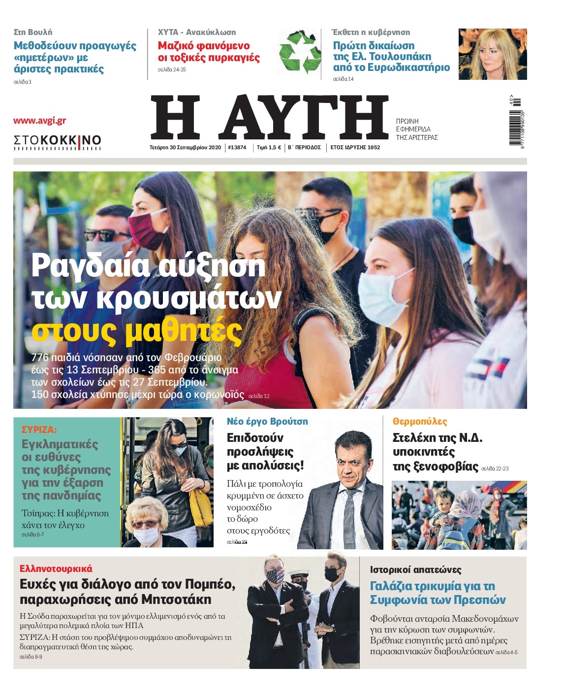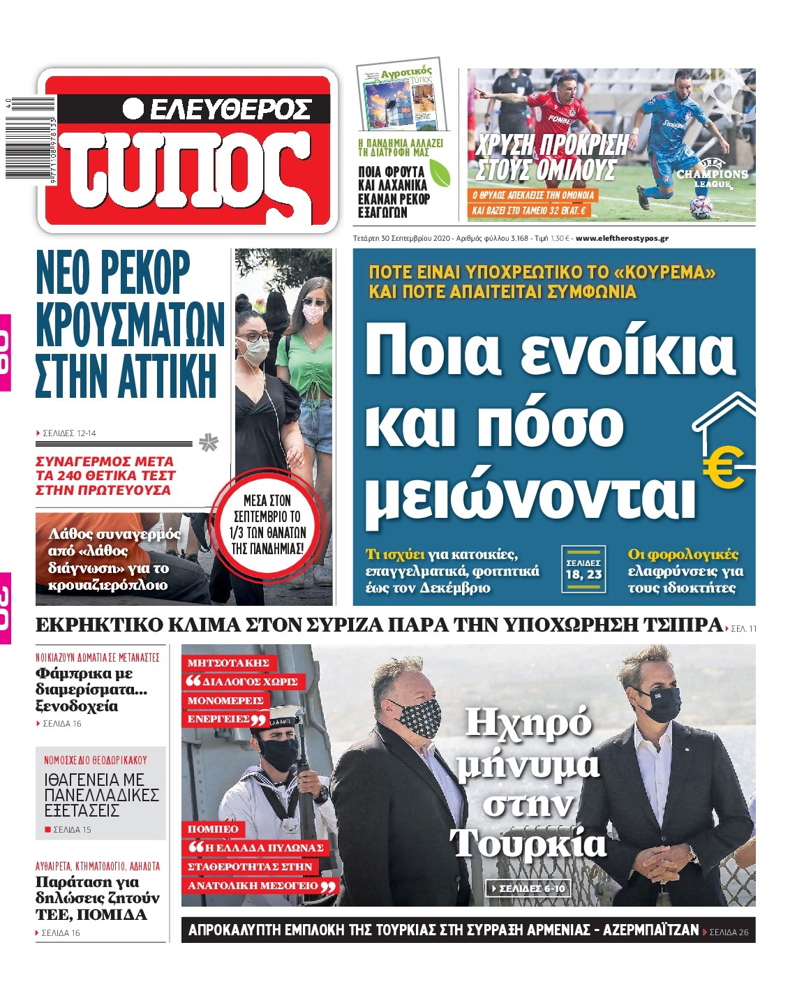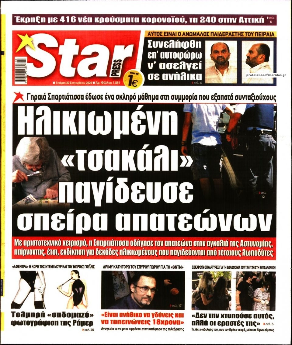 Οι πολιτικές εφημερίδες 30/9/2020 Διονύσης Νίκκας 06:13, Τετάρτη 30 Σεπτεμβρίου 2020 Media Διαβάστε τα πρωτοσέλιδα των πολιτικών εφημερίδων… ΠΟΛΙΤΙΚΕΣ ΕΦΗΜΕΡΙΔΕΣ ΠΡΩΤΟΣΕΛΙΔΑ Μοιράσου το: σχολίασε κι εσύ (0 σχόλια) Ακολουθήστε το enikos.gr στο Google News και μάθετε πρώτοι όλες τις ειδήσεις Δείτε όλες τις τελευταίες ειδήσεις από την Ελλάδα και τον Κόσμο στο enikos.gr Ειδήσεις Ροή Ειδήσεων 23 λεπτά πριν Χριστούγεννα στα μπλόκα: Επιμένουν στις κινητοποιήσεις τους οι αγρότες – Ανοίγουν τα διόδια το Σαββατοκύριακο 52 λεπτά πριν Τραμπ: Δεν αποκλείει την πιθανότητα ενός πολέμου στη Βενεζουέλα – «Ο Μαδούρο ξέρει καλύτερα από τον καθένα τι ακριβώς θέλω» 46 λεπτά πριν Ουκρανία: Η άνευ προηγουμένου επίθεση σε ρωσικό τάνκερ στη Μεσόγειο και το μήνυμα προς στον Πούτιν – Το «μακρύ χέρι» του Κιέβου 3 ώρες πριν Πούτιν: «Ναι, είμαι ερωτευμένος» – Βίντεο από τη σπάνια προσωπική παραδοχή του 2 ώρες πριν Συνεχίζει να προκαλεί ο Μίτσκοσκι: «Για μένα το όνομα Μακεδονία είναι ιερό» 2 ώρες πριν Αριθμολογία: Οι άνθρωποι που έχουν γεννηθεί αυτές τις 4 ημερομηνίες, συχνά παρεξηγούνται – «Η καλοσύνη τους κρύβει τεράστια δύναμη» 4 ώρες πριν Μήπως έχετε χάσει τον εαυτό σας στη σχέση σας; 7 «αθόρυβες» υποχωρήσεις που μάλλον κάνατε, χωρίς να το συνειδητοποιήσετε 3 ώρες πριν Ξεχάστε το καθάρισμα το Σαββατοκύριακο: Ο «κανόνας των 20 λεπτών» που θα σας λύσει τα χέρια 1 ώρα πριν Ύπνος: Μια κρυφή κατάσταση του εγκεφάλου πριν από τον ύπνο μπορεί να είναι το “κλειδί” για υψηλή ευφυΐα και δημιουργικότητα 50 δευτερόλεπτα πριν Πούτιν: Τα μηνύματα σε Ευρώπη και ΝΑΤΟ από το μαραθώνιο «σόου» του – Η απαίτηση για «σεβασμό» και η ειρήνη «με τους όρους» της Μόσχας 2 λεπτά πριν Ανακαλύφθηκαν αρχαία χρυσά νομίσματα 2.200 ετών που απεικονίζουν τον θεό Απόλλωνα – Η άγνωστη σύνδεση με τον Φίλιππο Β΄ της Μακεδονίας 7 λεπτά πριν Νίκος Ξυλούρης: Συγκινεί η χήρα του σπουδαίου καλλιτέχνη – «Ευχαριστώ όλο τον κόσμο που τον κρατάει ζωντανό 45 χρόνια» 14 λεπτά πριν Παναθηναϊκός: «Μέσα» οι Σφιντέρσκι και Τουμπά για το ματς με τον ΠΑΟΚ – Τι έδειξε η μαγνητική του Πάντοβιτς 19 λεπτά πριν Γιώργος Γιαννόπουλος για “Το σόι σου”: “Είναι ευτυχία και ευλογία αυτή η σειρά” ENIKOS NETWORK Το ΕΚΑΒ τιμήθηκε από την Ακαδημία Αθηνών για τα 40 χρόνια προσφοράς του Έχετε πραγματικά μεγάλη καρδιά; 10 χαρακτηριστικά όσων έχουν καλοσύνη Πλήρης επάρκεια προϊόντων στις λαϊκές της Αττικής, παρά τις αγροτικές κινητοποιήσεις – Τι απαντούν οι πωλητές ΑΑΔΕ: Νέες αναβαθμίσεις στο Ψηφιακό Πελατολόγιο και την εφαρμογή myDATAapp – Τι πρέπει να γνωρίζετε Χαρτογραφώντας το «σημείο χωρίς επιστροφή»: Για πρώτη φορά αποκαλύπτεται με λεπτομέρεια το ακανθώδες όριο της ατμόσφαιρας τ... Η Google καταργεί τη λειτουργία «dark web report» – Πώς θα μπορούν οι χρήστες να διαγράφουν τα δεδομένα τους περισσότερα 22:42 , Παρασκευή 19 Δεκεμβρίου 2025 Γιώργος Γιαννόπουλος για “Το σόι σου”: “Είναι ευτυχία και ευλογία αυτή η σειρά” «Είναι ευτυχία και ευλογία η συγκυρία αυτής της σειράς», θα πει ο Γιώργος Γιαννόπουλος -ο αγαπ... 20:37 , Παρασκευή 19 Δεκεμβρίου 2025 Don’t Forget The Lyrics: Η Έλλη Κοκκίνου υποδέχεται 4 παίκτες που θα κάνουν τα πάντα για να μη χάσουν ούτε… μισή λέξη από τους στίχους Το «Don’t Forget The Lyrics» επιστρέφει απόψε, Παρασκευή 19 Δεκεμβρίου, στις 21:00 με νέο επει... 19:31 , Παρασκευή 19 Δεκεμβρίου 2025 GNTM: Απόψε ο μεγάλος τελικός για τους 4 φιναλίστ Έπειτα από μήνες γεμάτους μόδα, δημιουργία και έντονες αναμετ
