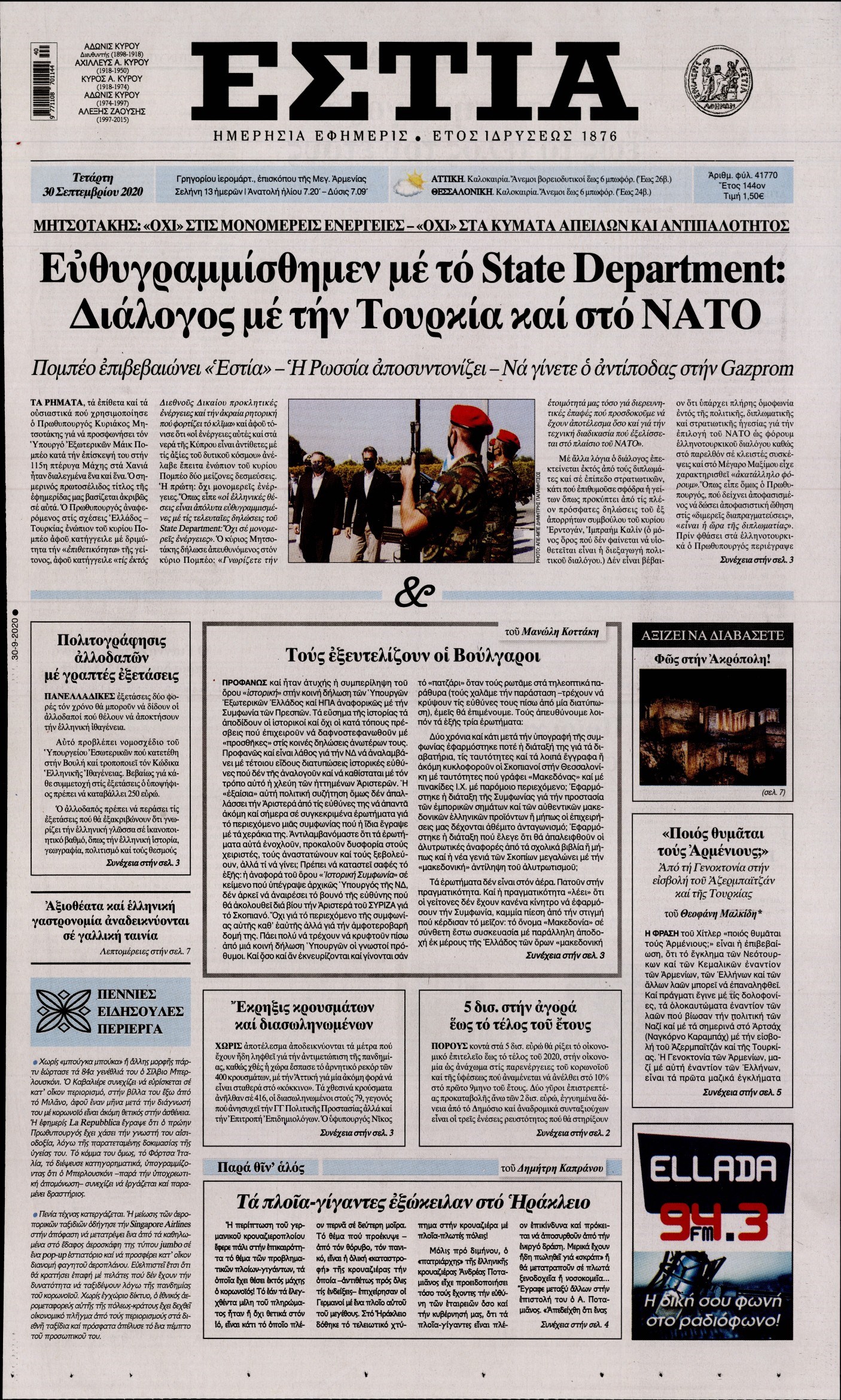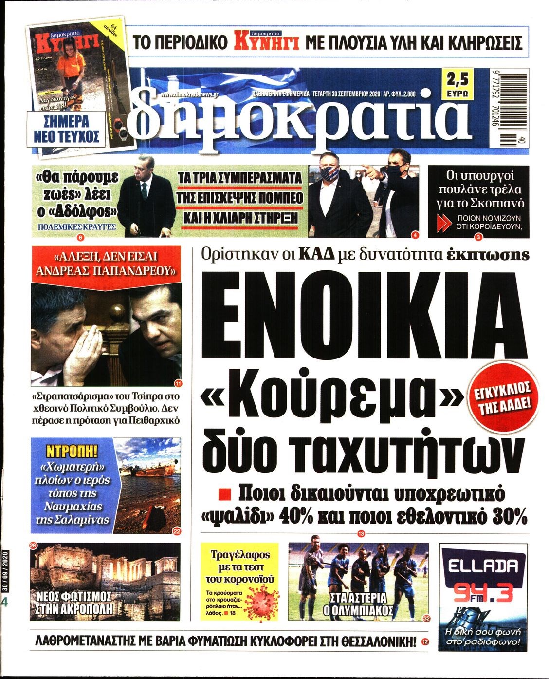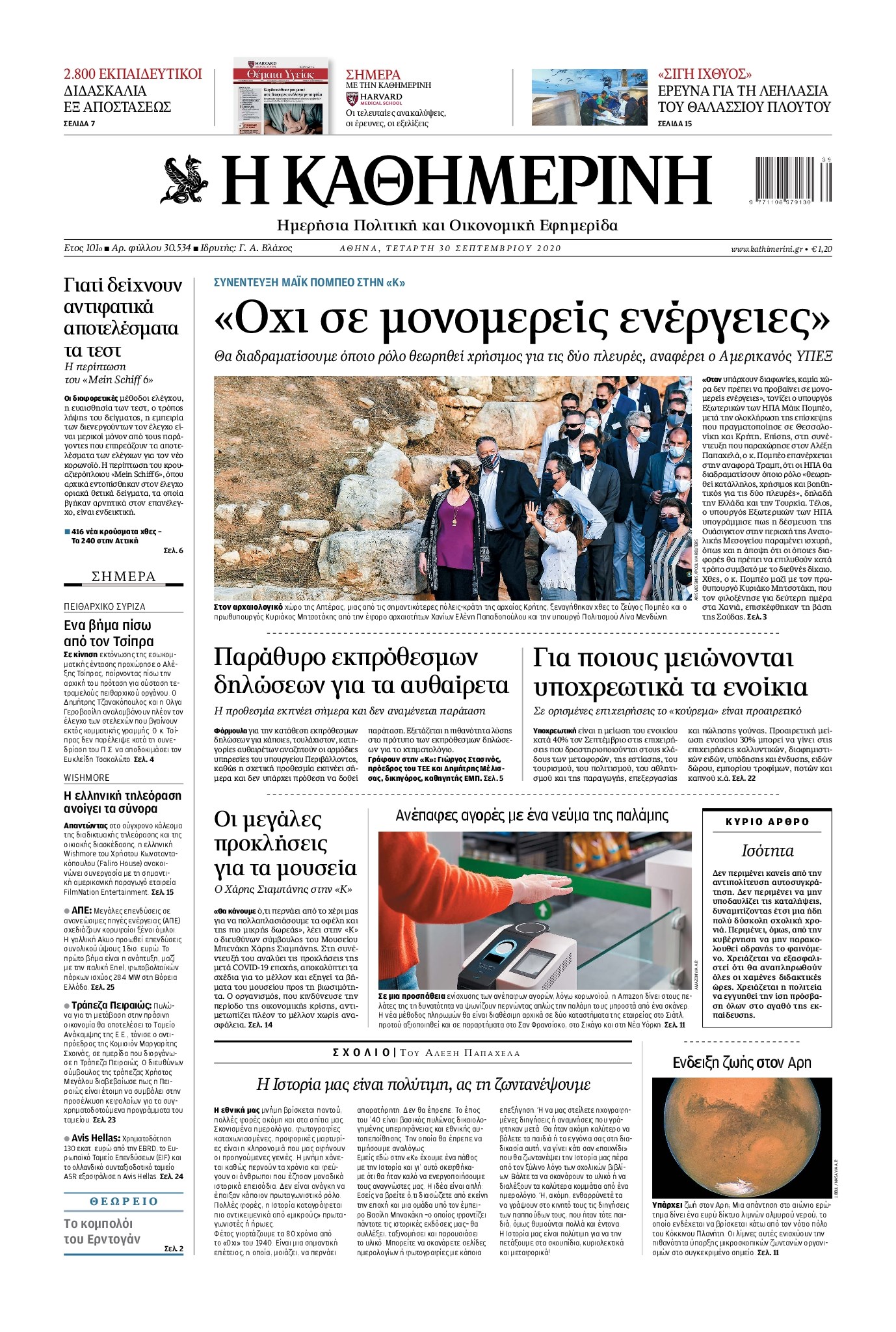Οι πολιτικές εφημερίδες 30/9/2020 Διονύσης Νίκκας 06:13, Τετάρτη 30 Σεπτεμβρίου 2020 Media Διαβάστε τα πρωτοσέλιδα των πολιτικών εφημερίδων… ΠΟΛΙΤΙΚΕΣ ΕΦΗΜΕΡΙΔΕΣ ΠΡΩΤΟΣΕΛΙΔΑ Μοιράσου το: σχολίασε κι εσύ (0 σχόλια) Ακολουθήστε το enikos.gr στο Google News και μάθετε πρώτοι όλες τις ειδήσεις Δείτε όλες τις τελευταίες ειδήσεις από την Ελλάδα και τον Κόσμο στο enikos.gr Ειδήσεις Ροή Ειδήσεων 23 λεπτά πριν Χριστούγεννα στα μπλόκα: Επιμένουν στις κινητοποιήσεις τους οι αγρότες – Ανοίγουν τα διόδια το Σαββατοκύριακο 52 λεπτά πριν Τραμπ: Δεν αποκλείει την πιθανότητα ενός πολέμου στη Βενεζουέλα – «Ο Μαδούρο ξέρει καλύτερα από τον καθένα τι ακριβώς θέλω» 46 λεπτά πριν Ουκρανία: Η άνευ προηγουμένου επίθεση σε ρωσικό τάνκερ στη Μεσόγειο και το μήνυμα προς στον Πούτιν – Το «μακρύ χέρι» του Κιέβου 3 ώρες πριν Πούτιν: «Ναι, είμαι ερωτευμένος» – Βίντεο από τη σπάνια προσωπική παραδοχή του 2 ώρες πριν Συνεχίζει να προκαλεί ο Μίτσκοσκι: «Για μένα το όνομα Μακεδονία είναι ιερό» 2 ώρες πριν Αριθμολογία: Οι άνθρωποι που έχουν γεννηθεί αυτές τις 4 ημερομηνίες, συχνά παρεξηγούνται – «Η καλοσύνη τους κρύβει τεράστια δύναμη» 4 ώρες πριν Μήπως έχετε χάσει τον εαυτό σας στη σχέση σας; 7 «αθόρυβες» υποχωρήσεις που μάλλον κάνατε, χωρίς να το συνειδητοποιήσετε 3 ώρες πριν Ξεχάστε το καθάρισμα το Σαββατοκύριακο: Ο «κανόνας των 20 λεπτών» που θα σας λύσει τα χέρια 1 ώρα πριν Ύπνος: Μια κρυφή κατάσταση του εγκεφάλου πριν από τον ύπνο μπορεί να είναι το “κλειδί” για υψηλή ευφυΐα και δημιουργικότητα 50 δευτερόλεπτα πριν Πούτιν: Τα μηνύματα σε Ευρώπη και ΝΑΤΟ από το μαραθώνιο «σόου» του – Η απαίτηση για «σεβασμό» και η ειρήνη «με τους όρους» της Μόσχας 2 λεπτά πριν Ανακαλύφθηκαν αρχαία χρυσά νομίσματα 2.200 ετών που απεικονίζουν τον θεό Απόλλωνα – Η άγνωστη σύνδεση με τον Φίλιππο Β΄ της Μακεδονίας 7 λεπτά πριν Νίκος Ξυλούρης: Συγκινεί η χήρα του σπουδαίου καλλιτέχνη – «Ευχαριστώ όλο τον κόσμο που τον κρατάει ζωντανό 45 χρόνια» 14 λεπτά πριν Παναθηναϊκός: «Μέσα» οι Σφιντέρσκι και Τουμπά για το ματς με τον ΠΑΟΚ – Τι έδειξε η μαγνητική του Πάντοβιτς 19 λεπτά πριν Γιώργος Γιαννόπουλος για “Το σόι σου”: “Είναι ευτυχία και ευλογία αυτή η σειρά” ENIKOS NETWORK Το ΕΚΑΒ τιμήθηκε από την Ακαδημία Αθηνών για τα 40 χρόνια προσφοράς του Έχετε πραγματικά μεγάλη καρδιά; 10 χαρακτηριστικά όσων έχουν καλοσύνη Πλήρης επάρκεια προϊόντων στις λαϊκές της Αττικής, παρά τις αγροτικές κινητοποιήσεις – Τι απαντούν οι πωλητές ΑΑΔΕ: Νέες αναβαθμίσεις στο Ψηφιακό Πελατολόγιο και την εφαρμογή myDATAapp – Τι πρέπει να γνωρίζετε Χαρτογραφώντας το «σημείο χωρίς επιστροφή»: Για πρώτη φορά αποκαλύπτεται με λεπτομέρεια το ακανθώδες όριο της ατμόσφαιρας τ... Η Google καταργεί τη λειτουργία «dark web report» – Πώς θα μπορούν οι χρήστες να διαγράφουν τα δεδομένα τους περισσότερα 22:42 , Παρασκευή 19 Δεκεμβρίου 2025 Γιώργος Γιαννόπουλος για “Το σόι σου”: “Είναι ευτυχία και ευλογία αυτή η σειρά” «Είναι ευτυχία και ευλογία η συγκυρία αυτής της σειράς», θα πει ο Γιώργος Γιαννόπουλος -ο αγαπ... 20:37 , Παρασκευή 19 Δεκεμβρίου 2025 Don’t Forget The Lyrics: Η Έλλη Κοκκίνου υποδέχεται 4 παίκτες που θα κάνουν τα πάντα για να μη χάσουν ούτε… μισή λέξη από τους στίχους Το «Don’t Forget The Lyrics» επιστρέφει απόψε, Παρασκευή 19 Δεκεμβρίου, στις 21:00 με νέο επει... 19:31 , Παρασκευή 19 Δεκεμβρίου 2025 GNTM: Απόψε ο μεγάλος τελικός για τους 4 φιναλίστ Έπειτα από μήνες γεμάτους μόδα, δημιουργία και έντονες αναμετ