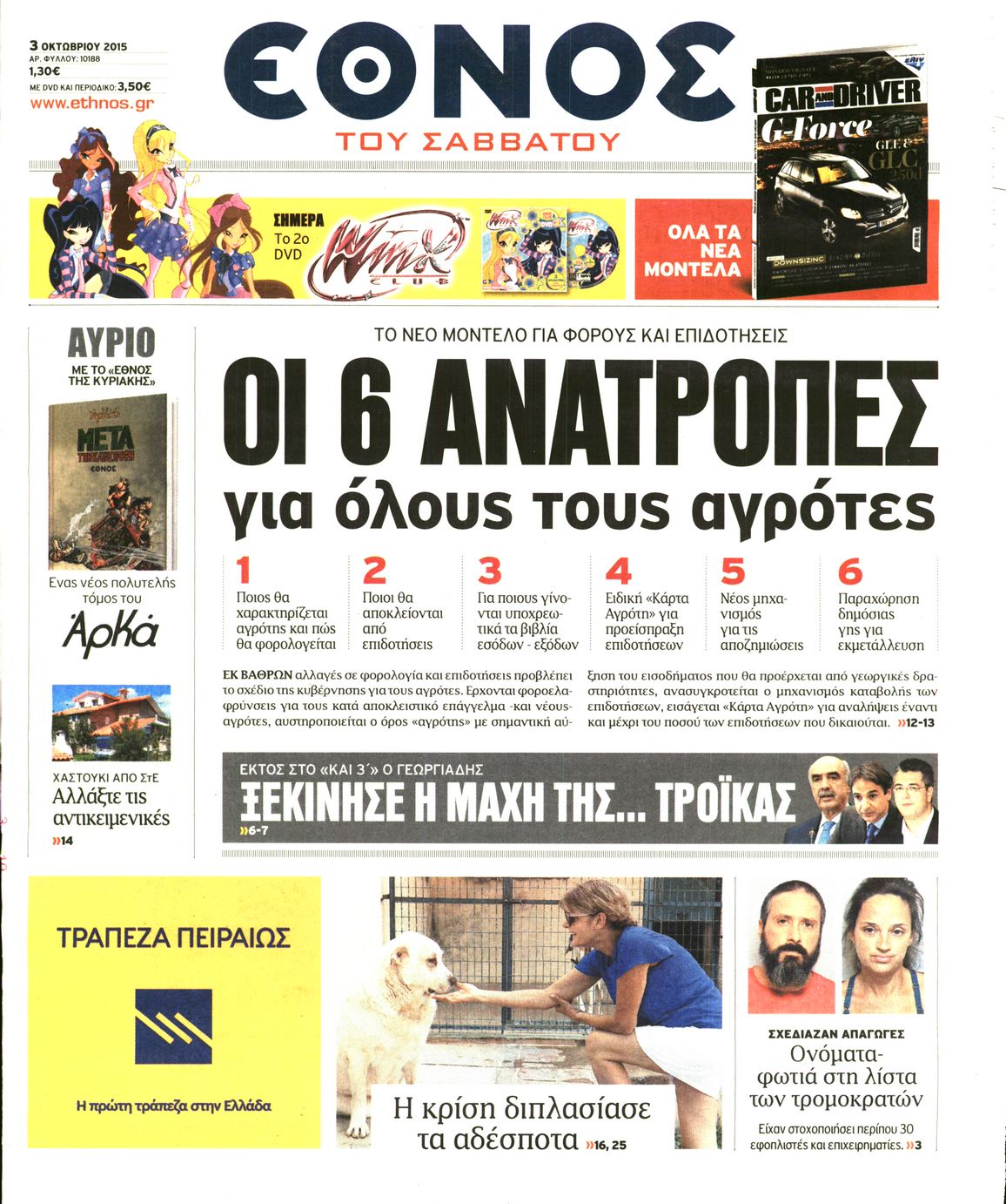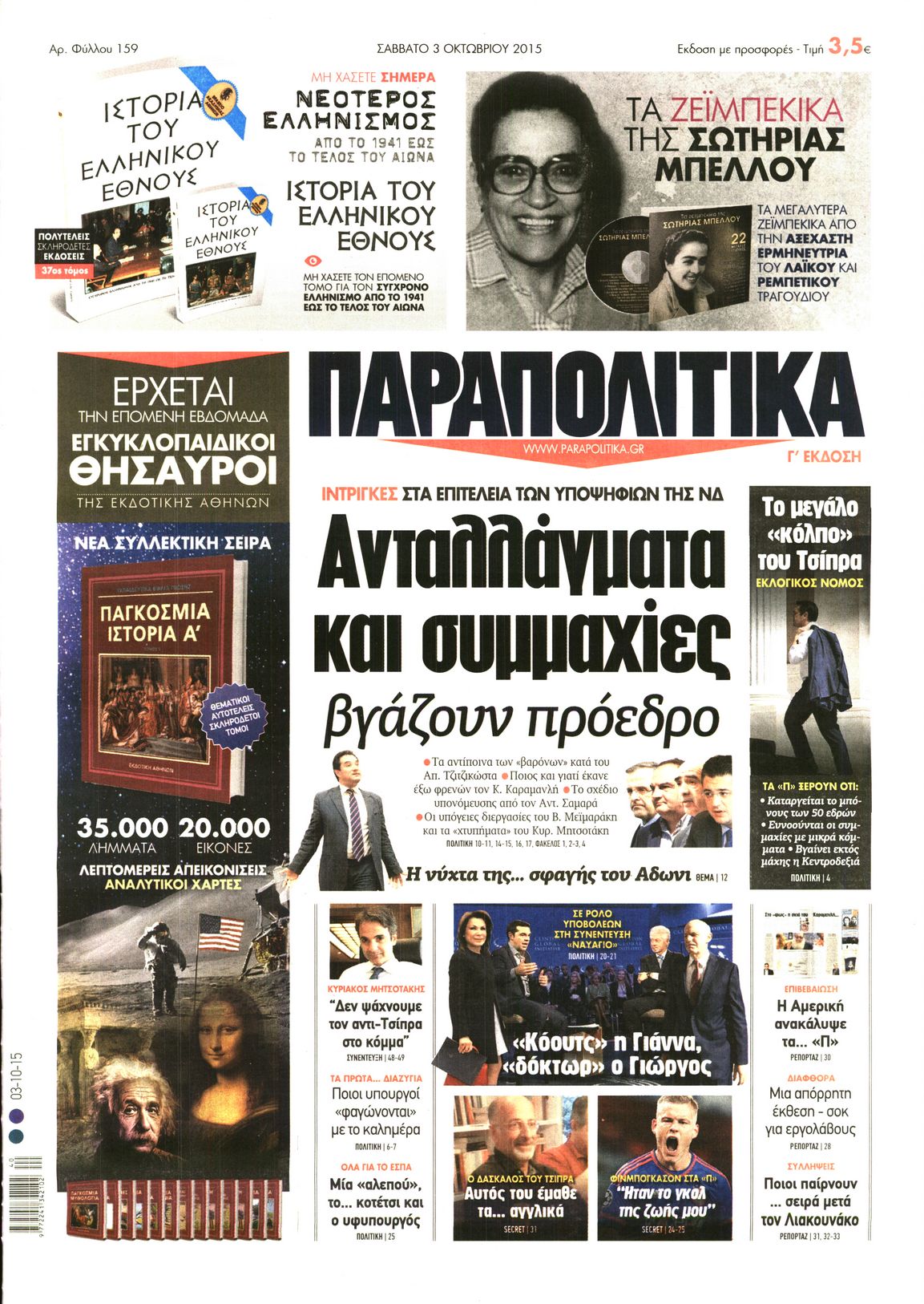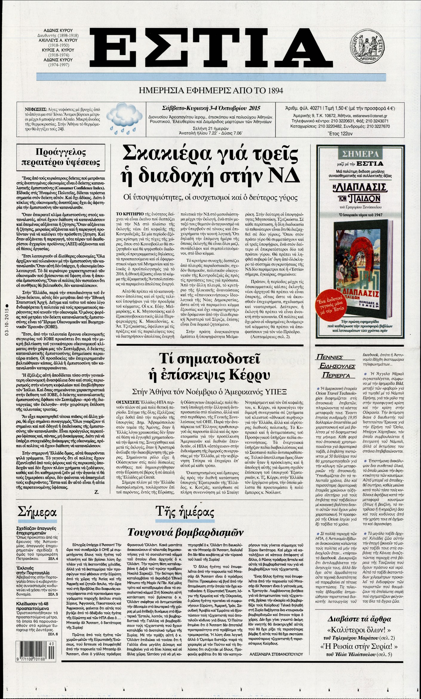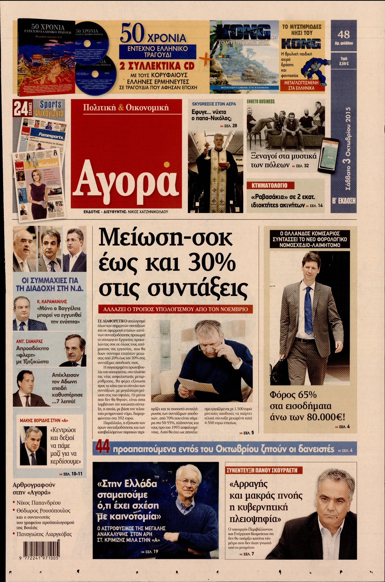 Οι πολιτικές εφημερίδες 3/10/2015 Enikos Newsroom 07:51, Σάββατο 03 Οκτωβρίου 2015 Media Διαβάστε τα σημερινά πρωτοσέλιδα των πολιτικών εφημερίδων. ΕΞΩΦΥΛΛΑ ΕΦΗΜΕΡΙΔΕΣ ΠΟΛΙΤΙΚΕΣ ΕΦΗΜΕΡΙΔΕΣ ΠΡΩΤΟΣΕΛΙΔΑ Μοιράσου το: σχολίασε κι εσύ (0 σχόλια) Ακολουθήστε το enikos.gr στο Google News και μάθετε πρώτοι όλες τις ειδήσεις Δείτε όλες τις τελευταίες ειδήσεις από την Ελλάδα και τον Κόσμο στο enikos.gr Ειδήσεις Ροή Ειδήσεων 2 ώρες πριν Αυστραλία: Σχέσεις με το ISIS εκτιμάται πως είχαν οι δράστες της τρομοκρατικής επίθεσης στο Σίδνεϊ 2 ώρες πριν Αγρότες: Αμετακίνητοι από τα μπλόκα σε τελωνεία και εθνικές οδούς – Ο χάρτης των κινητοποιήσεων και τα αιτήματά τους 2 ώρες πριν Σοκ στο Χόλιγουντ: Νεκροί από μαχαιριές ο σκηνοθέτης Ρομπ Ράινερ και η σύζυγός του – Αναφορές ότι τους σκότωσε ο γιος τους 2 ώρες πριν Δολοφονία στη Φοινικούντα: Απολογούνται σήμερα οι δύο συλληφθέντες – Στο «κάδρο» και δύο γυναίκες 1 ώρα πριν Τρόμος στην Κηφισιά: Ανήλικος ληστής έκανε κεφαλοκλείδωμα σε γυναίκα υπάλληλο φούρνου και άρπαξε χρήματα – ΒΙΝΤΕΟ 58 λεπτά πριν Κληρονόμησε 2,8 εκατ. ευρώ και φοβάται ότι οι άνδρες θα την πλησιάζουν για τα λεφτά – «Μήπως καλύτερα να το κρατήσω μυστικό;» 2 ώρες πριν Κάτω από παλάτι κρυβόταν ένα άλλο μνημειώδες ανάκτορο: Οι ανασκαφές σε αρχαία πόλη αποκάλυψαν τα ερείπια και τα μυστικά του 4 ώρες πριν Τα ζώδια σήμερα, Δευτέρα 15 Δεκεμβρίου: Ιχθύες, ξεκινήστε από εκεί που η παρουσία σας έχει σημασία 4 ώρες πριν Διατροφή: Γιατρός προειδοποιεί για 2 απλά λάθη που αυξάνουν τον κίνδυνο χρόνιων παθήσεων 22 δευτερόλεπτα πριν Τα 3 ζώδια που μπαίνουν σε μια νέα δυναμική εποχή – «Είστε έτοιμοι για όλα» 8 λεπτά πριν Αλλάζει το σκηνικό του καιρού την Παρασκευή: «Το ατμοσφαιρικό βουνό υποχωρεί και ανοίγει ο δρόμος για τις κακοκαιρίες» 13 λεπτά πριν Λίλα Μπακλέση – Νατάσα Εξηνταβελώνη: «Όταν πας μια Πατρινιά και μια Περιστεριώτισσα σε εστιατόριο με Michelin – Βίντεο από την έξοδό τους 18 λεπτά πριν Τσιάρας για αγροτικές κινητοποιήσεις: Μονόδρομος ο διάλογος – Διαφάνεια με τη μεταφορά του ΟΠΕΚΕΠΕ στην ΑΑΔΕ 23 λεπτά πριν Χάρης Δούκας: «Χρειάζονται υπερβάσεις τώρα για την ανατροπή» ENIKOS NETWORK Έλλειψη μαγνησίου: Ποια τα συμπτώματα που επηρεάζουν ύπνο, ενέργεια και διάθεση Έχετε καλή φυσική κατάσταση; Δείτε αν μπορείτε να κάνετε αυτές τις 5 κινήσεις Δάνεια σε ελβετικό φράγκο: Ανακοινώνεται η ρύθμιση- Ποιοι και πόσο θα έχουν όφελος – Όλες οι λεπτομέρειες Τέλος οι διώξεις για χρέη σε Εφορία και ΕΦΚΑ – Τι προβλέπει νέα διάταξη μετά την πτώχευση Σύγχρονος Νοστράδαμος: Προειδοποιεί για «μεγάλο γεγονός» τους επόμενους μήνες που θα συγκλονίσει τη Βρετανία και τον κόσμο Τεστ παρατηρητικότητας: Μπορείτε να βρείτε τις 3 διαφορές στις εικόνες με έναν πιγκουίνο σε 14 δευτερόλεπτα περισσότερα 09:15 , Δευτέρα 15 Δεκεμβρίου 2025 Την Κυριακή με τη Realnews: Ό,τι και αν αγοράσεις, σκανάρεις και κερδίζεις! Την Κυριακή με τη Realnews: Ό,τι και αν αγοράσεις, σκανάρεις και κερδίζεις! Με το PADU app, το... 07:42 , Δευτέρα 15 Δεκεμβρίου 2025 Την Κυριακή με τη Realnews: Δωροεπιταγή10€ Δωροεπιταγή αξίας 10€ για αγορές άνω των 60€ από τα πολυκαταστήματα FactoryOutlet H προσφορά ι... 07:17 , Δευτέρα 15 Δεκεμβρίου 2025 Αυτή την Κυριακή με τη Realnews: Instyle, μαζί Drive και Realnews Geopolitics Αυτή την Κυριακή με τη Realnews: Instyle, μαζί Drive και Realnews Geopolitics Instyle Η Άννα Ρ... 05:49 , Δευτέρα 15 Δεκεμβρίου 2025 Οι οικονομικές εφημερίδες 15/12/2025 Διαβάστε τα πρωτοσέλιδα από τις οικονομικές εφημερίδες, σήμερα 15/12/2025. ΤΕΛΕΥΤ