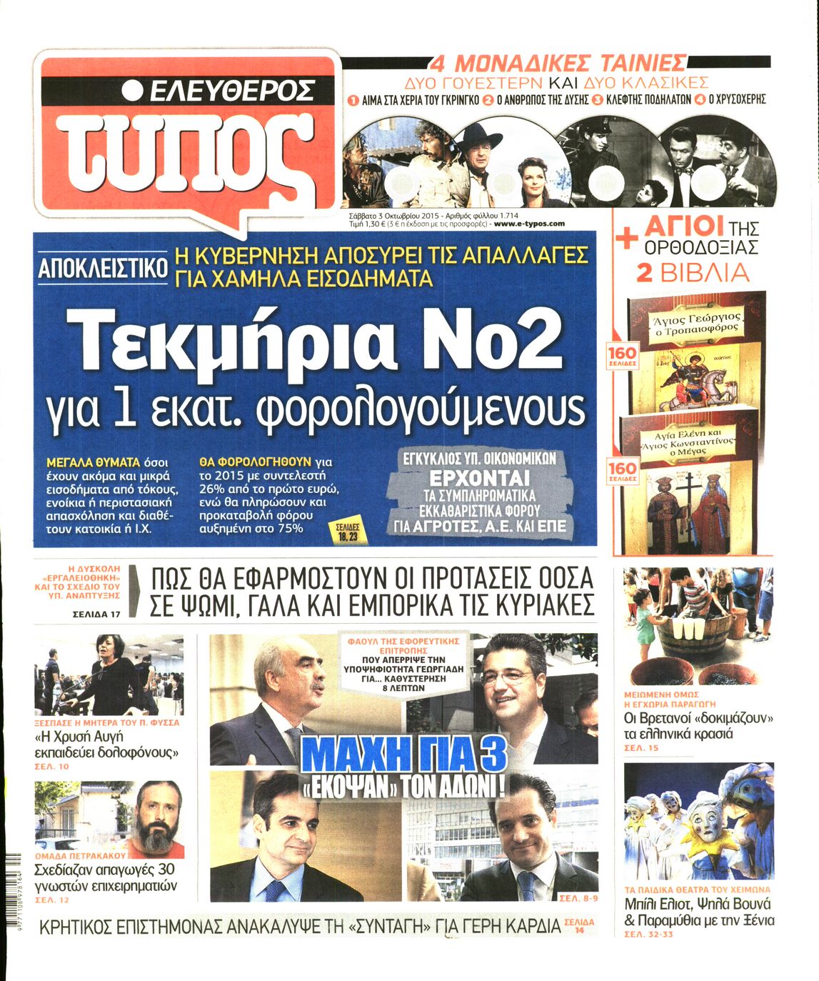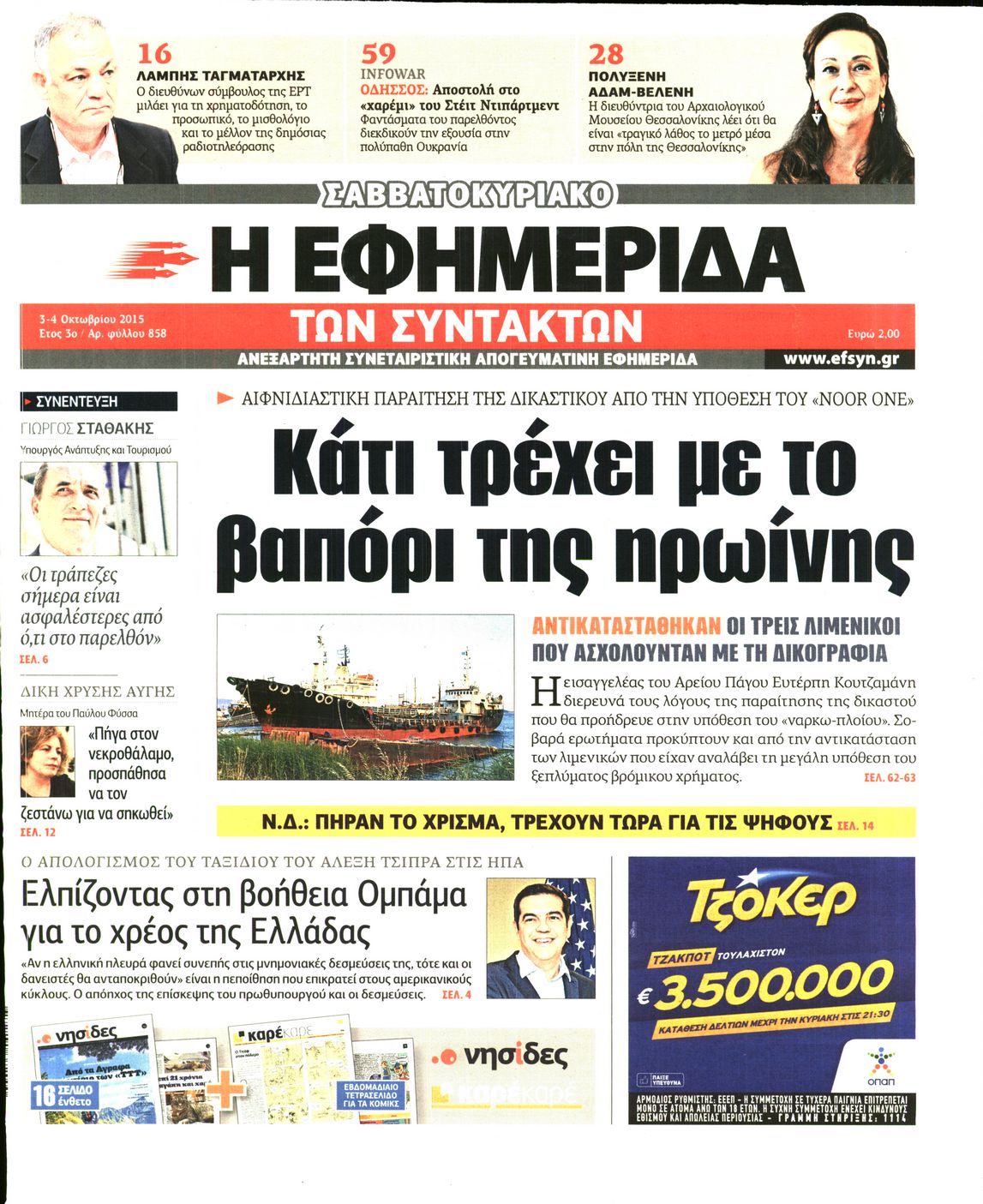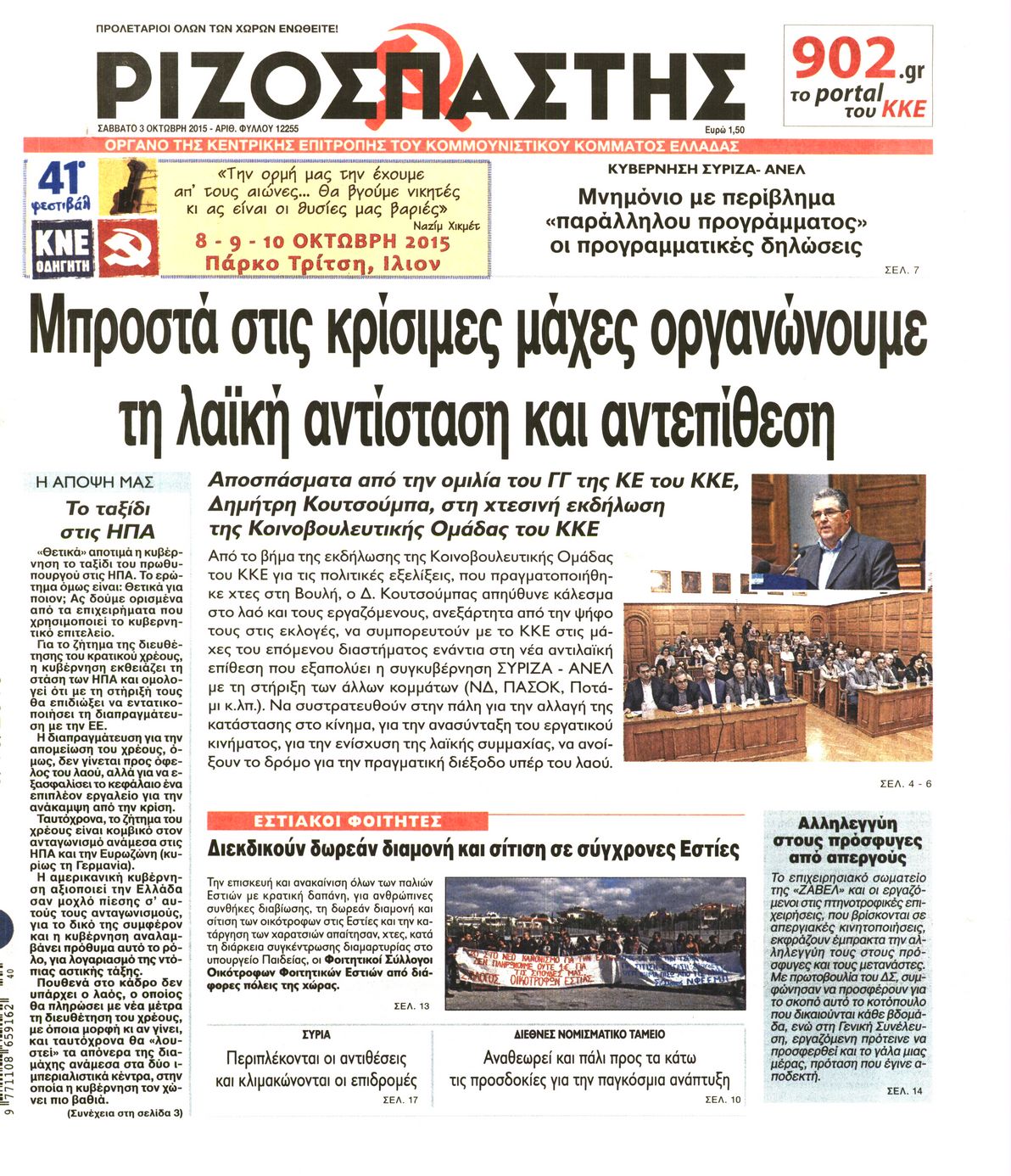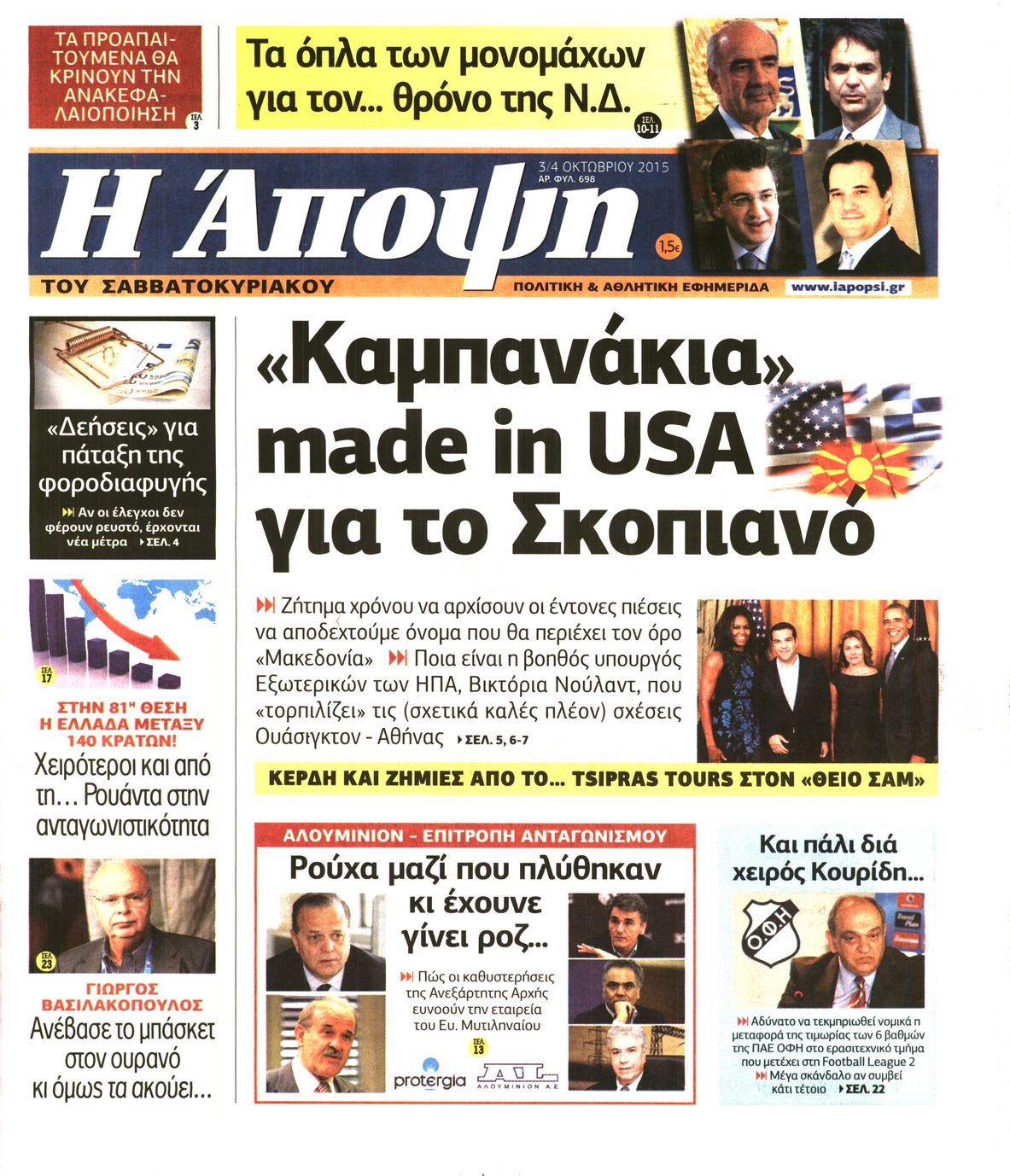 Οι πολιτικές εφημερίδες 3/10/2015 Enikos Newsroom 07:51, Σάββατο 03 Οκτωβρίου 2015 Media Διαβάστε τα σημερινά πρωτοσέλιδα των πολιτικών εφημερίδων. ΕΞΩΦΥΛΛΑ ΕΦΗΜΕΡΙΔΕΣ ΠΟΛΙΤΙΚΕΣ ΕΦΗΜΕΡΙΔΕΣ ΠΡΩΤΟΣΕΛΙΔΑ Μοιράσου το: σχολίασε κι εσύ (0 σχόλια) Ακολουθήστε το enikos.gr στο Google News και μάθετε πρώτοι όλες τις ειδήσεις Δείτε όλες τις τελευταίες ειδήσεις από την Ελλάδα και τον Κόσμο στο enikos.gr Ειδήσεις Ροή Ειδήσεων 2 ώρες πριν Αυστραλία: Σχέσεις με το ISIS εκτιμάται πως είχαν οι δράστες της τρομοκρατικής επίθεσης στο Σίδνεϊ 2 ώρες πριν Αγρότες: Αμετακίνητοι από τα μπλόκα σε τελωνεία και εθνικές οδούς – Ο χάρτης των κινητοποιήσεων και τα αιτήματά τους 2 ώρες πριν Σοκ στο Χόλιγουντ: Νεκροί από μαχαιριές ο σκηνοθέτης Ρομπ Ράινερ και η σύζυγός του – Αναφορές ότι τους σκότωσε ο γιος τους 2 ώρες πριν Δολοφονία στη Φοινικούντα: Απολογούνται σήμερα οι δύο συλληφθέντες – Στο «κάδρο» και δύο γυναίκες 1 ώρα πριν Τρόμος στην Κηφισιά: Ανήλικος ληστής έκανε κεφαλοκλείδωμα σε γυναίκα υπάλληλο φούρνου και άρπαξε χρήματα – ΒΙΝΤΕΟ 58 λεπτά πριν Κληρονόμησε 2,8 εκατ. ευρώ και φοβάται ότι οι άνδρες θα την πλησιάζουν για τα λεφτά – «Μήπως καλύτερα να το κρατήσω μυστικό;» 2 ώρες πριν Κάτω από παλάτι κρυβόταν ένα άλλο μνημειώδες ανάκτορο: Οι ανασκαφές σε αρχαία πόλη αποκάλυψαν τα ερείπια και τα μυστικά του 4 ώρες πριν Τα ζώδια σήμερα, Δευτέρα 15 Δεκεμβρίου: Ιχθύες, ξεκινήστε από εκεί που η παρουσία σας έχει σημασία 4 ώρες πριν Διατροφή: Γιατρός προειδοποιεί για 2 απλά λάθη που αυξάνουν τον κίνδυνο χρόνιων παθήσεων 22 δευτερόλεπτα πριν Τα 3 ζώδια που μπαίνουν σε μια νέα δυναμική εποχή – «Είστε έτοιμοι για όλα» 8 λεπτά πριν Αλλάζει το σκηνικό του καιρού την Παρασκευή: «Το ατμοσφαιρικό βουνό υποχωρεί και ανοίγει ο δρόμος για τις κακοκαιρίες» 13 λεπτά πριν Λίλα Μπακλέση – Νατάσα Εξηνταβελώνη: «Όταν πας μια Πατρινιά και μια Περιστεριώτισσα σε εστιατόριο με Michelin – Βίντεο από την έξοδό τους 18 λεπτά πριν Τσιάρας για αγροτικές κινητοποιήσεις: Μονόδρομος ο διάλογος – Διαφάνεια με τη μεταφορά του ΟΠΕΚΕΠΕ στην ΑΑΔΕ 23 λεπτά πριν Χάρης Δούκας: «Χρειάζονται υπερβάσεις τώρα για την ανατροπή» ENIKOS NETWORK Έλλειψη μαγνησίου: Ποια τα συμπτώματα που επηρεάζουν ύπνο, ενέργεια και διάθεση Έχετε καλή φυσική κατάσταση; Δείτε αν μπορείτε να κάνετε αυτές τις 5 κινήσεις Δάνεια σε ελβετικό φράγκο: Ανακοινώνεται η ρύθμιση- Ποιοι και πόσο θα έχουν όφελος – Όλες οι λεπτομέρειες Τέλος οι διώξεις για χρέη σε Εφορία και ΕΦΚΑ – Τι προβλέπει νέα διάταξη μετά την πτώχευση Σύγχρονος Νοστράδαμος: Προειδοποιεί για «μεγάλο γεγονός» τους επόμενους μήνες που θα συγκλονίσει τη Βρετανία και τον κόσμο Τεστ παρατηρητικότητας: Μπορείτε να βρείτε τις 3 διαφορές στις εικόνες με έναν πιγκουίνο σε 14 δευτερόλεπτα περισσότερα 09:15 , Δευτέρα 15 Δεκεμβρίου 2025 Την Κυριακή με τη Realnews: Ό,τι και αν αγοράσεις, σκανάρεις και κερδίζεις! Την Κυριακή με τη Realnews: Ό,τι και αν αγοράσεις, σκανάρεις και κερδίζεις! Με το PADU app, το... 07:42 , Δευτέρα 15 Δεκεμβρίου 2025 Την Κυριακή με τη Realnews: Δωροεπιταγή10€ Δωροεπιταγή αξίας 10€ για αγορές άνω των 60€ από τα πολυκαταστήματα FactoryOutlet H προσφορά ι... 07:17 , Δευτέρα 15 Δεκεμβρίου 2025 Αυτή την Κυριακή με τη Realnews: Instyle, μαζί Drive και Realnews Geopolitics Αυτή την Κυριακή με τη Realnews: Instyle, μαζί Drive και Realnews Geopolitics Instyle Η Άννα Ρ... 05:49 , Δευτέρα 15 Δεκεμβρίου 2025 Οι οικονομικές εφημερίδες 15/12/2025 Διαβάστε τα πρωτοσέλιδα από τις οικονομικές εφημερίδες, σήμερα 15/12/2025. ΤΕΛΕΥΤ