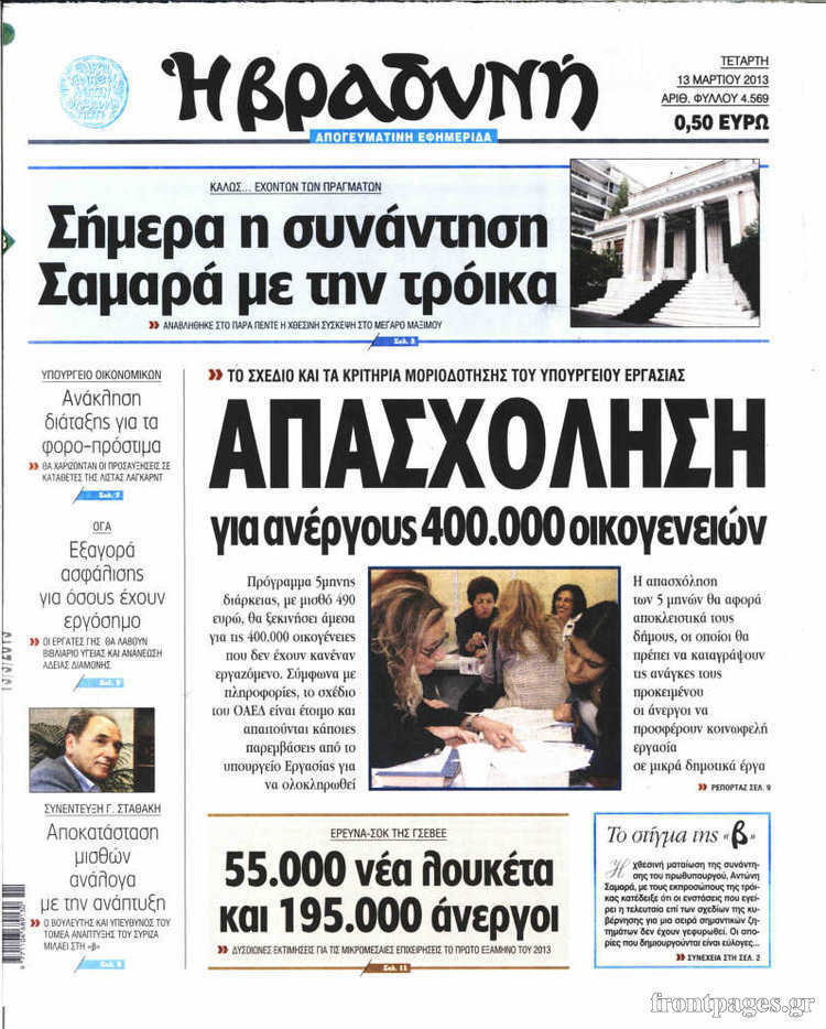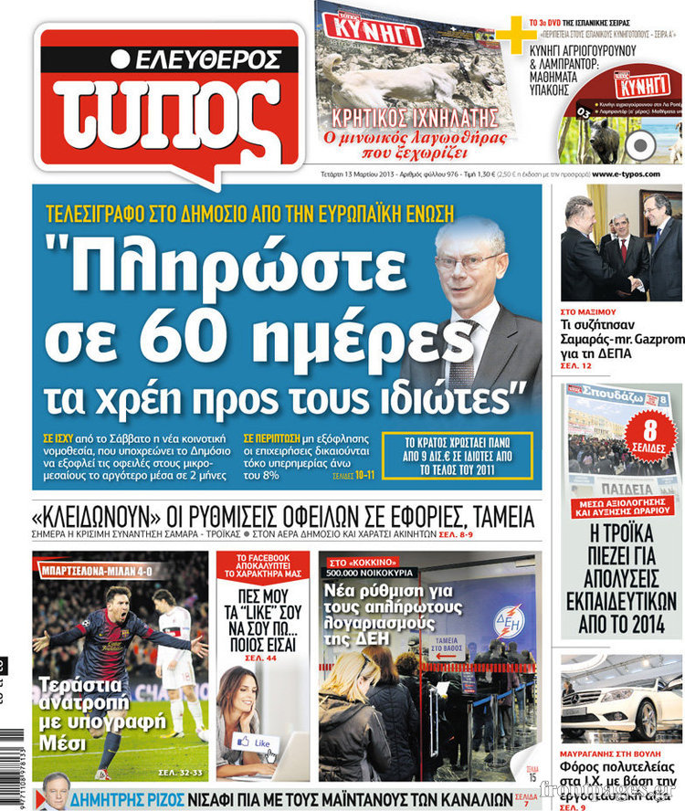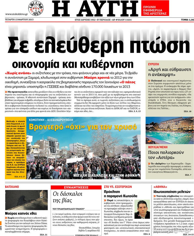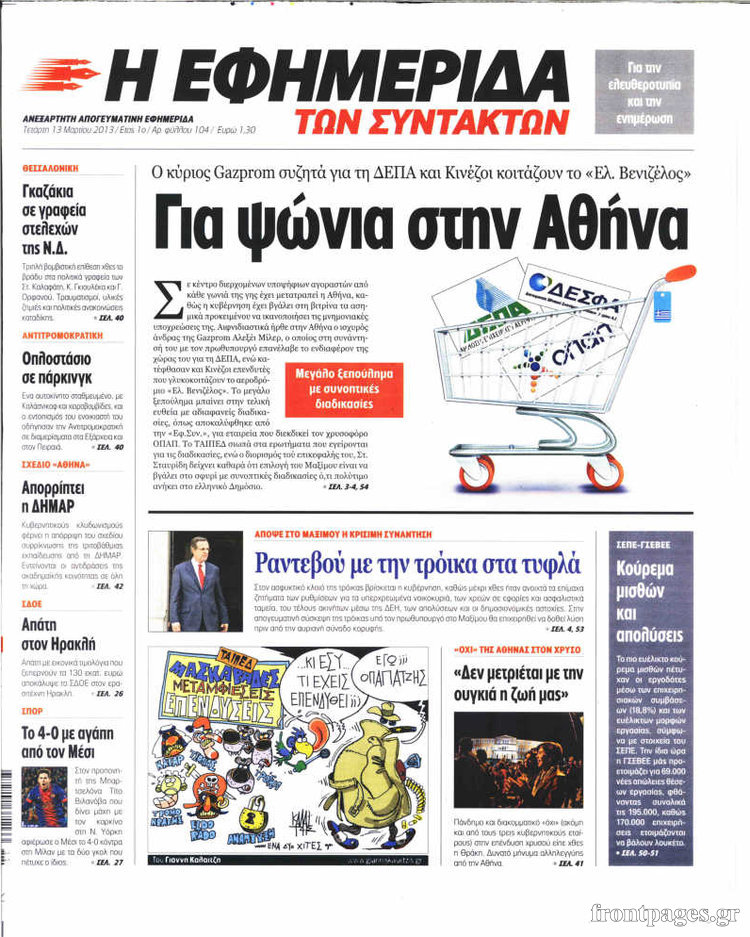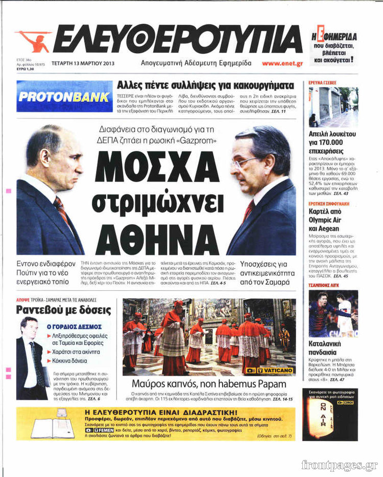 Οι πολιτικές εφημερίδες Enikos Newsroom 08:55, Τετάρτη 13 Μαρτίου 2013 Media Οι πολιτικές εφημερίδες ΕΦΗΜΕΡΙΔΕΣ ΠΟΛΙΤΙΚΕΣ ΕΦΗΜΕΡΙΔΕΣ ΠΡΩΤΟΣΕΛΙΔΑ Μοιράσου το: σχολίασε κι εσύ (0 σχόλια) Ακολουθήστε το enikos.gr στο Google News και μάθετε πρώτοι όλες τις ειδήσεις Δείτε όλες τις τελευταίες ειδήσεις από την Ελλάδα και τον Κόσμο στο enikos.gr Ειδήσεις Ροή Ειδήσεων 3 ώρες πριν Αγρότες: Στον «αέρα» η συνάντηση με τον Κυριάκο Μητσοτάκη – «Αν δεν γίνει δεκτή η πρότασή μας για την εκπροσώπηση, δεν πάμε για διάλογο» 2 ώρες πριν Κύπρος: Παραιτήθηκε ο Χαράλαμπος Χαραλάμπους από διευθυντής του γραφείου του Χριστοδουλίδη 1 ώρα πριν Σέρρες: Εισαγγελική έρευνα για τις αναφορές του «Χαμόγελου του Παιδιού» προ ετών για το περιβάλλον του 16χρονου 1 ώρα πριν Τραμπ για Γροιλανδία: «Η άμυνά τους είναι δύο έλκηθρα με σκύλους» – Επιμένει στην «απόκτηση» της χώρας από τις ΗΠΑ 2 ώρες πριν Ρούλα Πισπιρίγκου: Αναβολή για τον Σεπτέμβριο πήρε η δίκη της για τη δολοφονία της Τζωρτζίνας 4 ώρες πριν Πέταξε έξω από το σπίτι τον αρραβωνιαστικό της με την αγενέστατη κόρη του – «Σκέφτομαι να τον χωρίσω, θέλω την ηρεμία μου» 3 ώρες πριν Τα 3 ζώδια που ξαναβρίσκουν την ελπίδα που είχαν χάσει εδώ και καιρό – «Μία παλιά ιδέα αξίζει μία δεύτερη ευκαιρία» 2 ώρες πριν Η γλώσσα της «δυσαρέσκειας»: 8 φράσεις που εκπέμπουν μιζέρια και αρνητικότητα χωρίς να το συνειδητοποιείτε 46 λεπτά πριν Γυναίκα έχασε 55 κιλά και βελτίωσε την ψυχολογία της τηρώντας έναν κανόνα – «Το κλειδί της επιτυχίας ήταν η ευκολία» 7 λεπτά πριν Γεωργιάδης: Σε μεγάλη πίεση τα νοσοκομεία, κάντε το εμβόλιο κατά της γρίπης 12 λεπτά πριν Γαλλία: Ακριβότερα τα μουσεία για τους τουρίστες εκτός ΕΕ – Στα 32 ευρώ η είσοδος στο Λούβρο 17 λεπτά πριν ΑΠΕΥΘΕΙΑΣ – Η ενημέρωση από τον Κυβερνητικό Εκπρόσωπο 22 λεπτά πριν Σπένσερ Πρατ: Από το ριάλιτι «The Hills» υποψήφιος δήμαρχος του Λος Άντζελες – «Κάποιος πρέπει να αμφισβητήσει την Κάρεν Μπας» 27 λεπτά πριν Τσιτσιπάς: Ανέβηκε στην κατάταξη της ATP – Σάκκαρη: Υποχώρησε στην 52η θέση της WTA ENIKOS NETWORK Νεογνικός γενωμικός έλεγχος για σπάνιες παθήσεις στο νοσοκομείο Παπαγεωργίου Χρησιμοποιείτε οδοντόκρεμες και τσίχλες με μέντα; Πώς μπερδεύουν τον εγκέφαλο σας Ορόσημο το 2026 για την εμπέδωση της Ελλάδας ως ενεργειακή πύλη της ΝΑ Ευρώπης Νέο «ειδικό» πρόγραμμα κατάρτισης για ανέργους από τη ΔΥΠΑ: Ποιοι και μέχρι πότε μπορούν να κάνουν αίτηση Ο Google Assistant θα παραμείνει λίγο περισσότερο για ορισμένους χρήστες Android Τεστ προσωπικότητας: Το βάζο που θα επιλέξετε αποκαλύπτει πώς λύνετε προβλήματα στη ζωή σας περισσότερα 10:15 , Δευτέρα 12 Ιανουαρίου 2026 Μαζωνάκης: Τι θα γίνει με τη νέα μουσική εκπομπή που συζητούσε Σε νέες βάσεις μπαίνει η συνεργασία του Γιώργου Μαζωνάκη με τον ΣΚΑΪ μετά το φινάλε του «The v... 09:45 , Δευτέρα 12 Ιανουαρίου 2026 Αλλαγή φρουράς στην πρωινή ζώνη του Σαββατοκύριακου του ANT1 Η απόφαση του ΑΝΤ1 να διακόψει το «Πρωινό Σαββατοκύριακο» με την Ελένη Τσολάκη και η επιστροφή... 08:07 , Δευτέρα 12 Ιανουαρίου 2026 Χρυσές Σφαίρες 2026: Θρίαμβος για το «One Battle After Another» με 4 βραβεία και δικαίωση για τον Σαλαμέ – Η λίστα των μεγάλων νικητών Με ανατροπές και σαρκασμό η 83η τελετή για τις Χρυσές Σφαίρες ολοκληρώθηκε το βράδυ της Κυριακ... 08:00 , Δευτέρα 12 Ιανουαρίου 2026 Αυτή την Κυριακή με τη Realnews: Στοιχειωμένα μυστικά – Ένα συναρπαστικό μυθιστόρημα της Emmeline Duncan Αυτή την Κυριακή με τη Realnews: Στοιχειωμένα μυστικά – Ένα συναρπαστικό μυθιστόρημα της...
