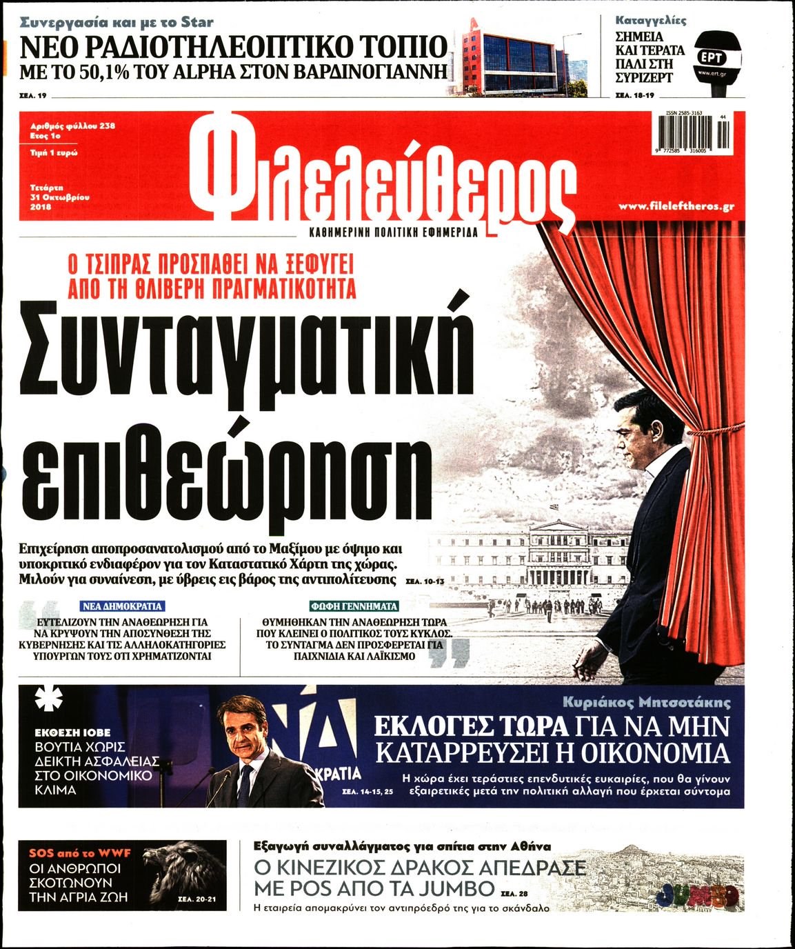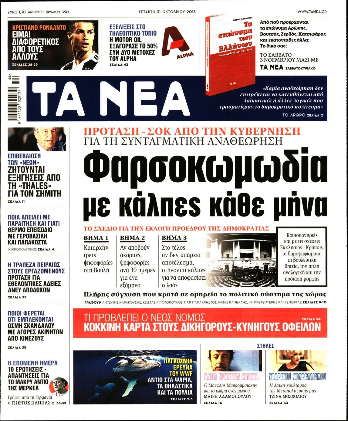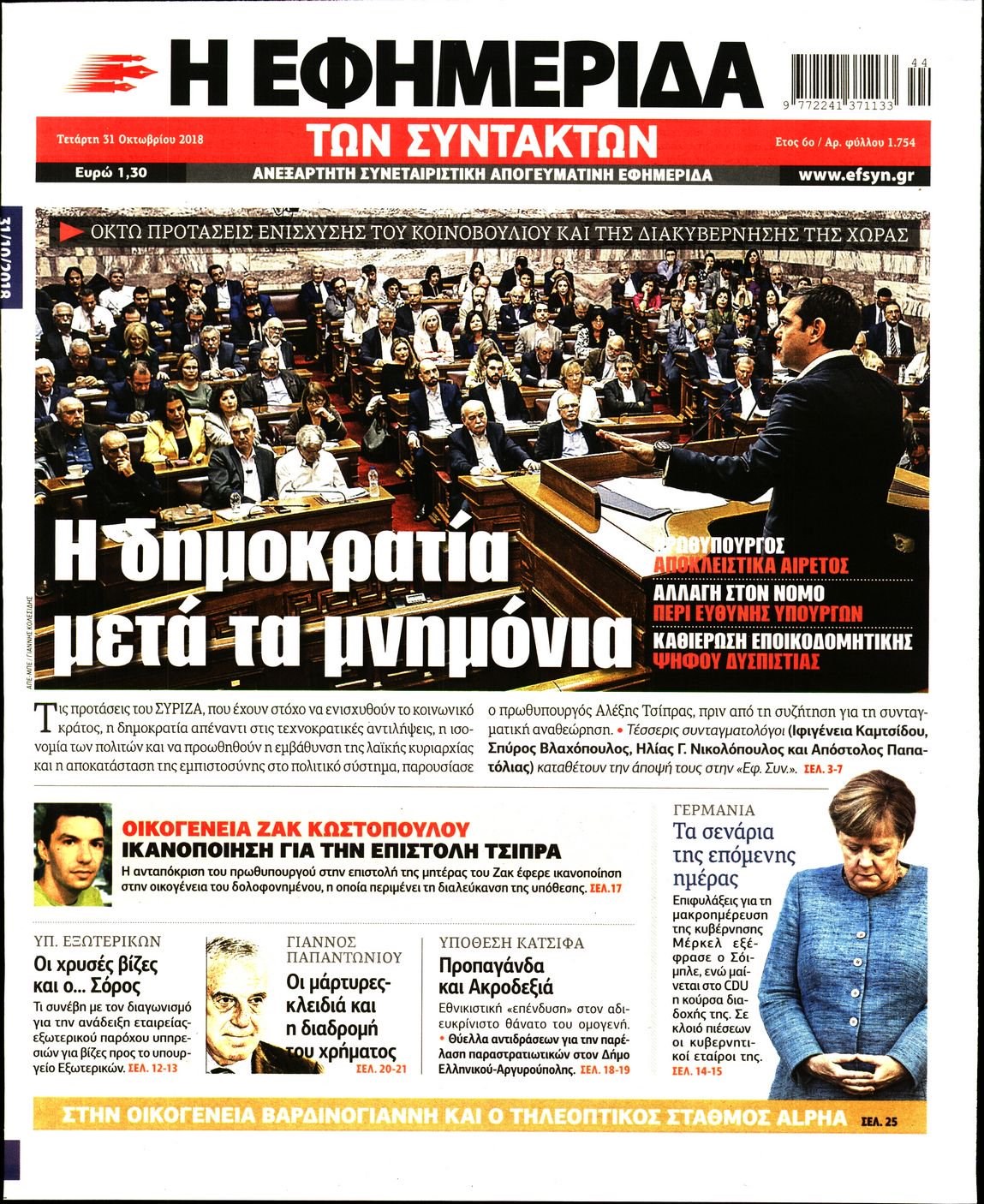 Οι πολιτικές εφημερίδες 31/10/18 Enikos Newsroom 06:24, Τετάρτη 31 Οκτωβρίου 2018 Media Διαβάστε τα πρωτοσέλιδα: ΠΟΛΙΤΙΚΕΣ ΕΦΗΜΕΡΙΔΕΣ ΠΡΩΤΟΣΕΛΙΔΑ Μοιράσου το: σχολίασε κι εσύ (0 σχόλια) Ακολουθήστε το enikos.gr στο Google News και μάθετε πρώτοι όλες τις ειδήσεις Δείτε όλες τις τελευταίες ειδήσεις από την Ελλάδα και τον Κόσμο στο enikos.gr Ειδήσεις Ροή Ειδήσεων 22 λεπτά πριν Ζελένσκι: Μόνο οι ΗΠΑ και ο Τραμπ μπορούν να πιέσουν τη Ρωσία να βάλει τέλος στον πόλεμο 40 λεπτά πριν Φοινικούντα: Προφυλακιστέος ο 30χρονος για συνέργεια στη διπλή δολοφονία – Και άλλα πρόσωπα στο «μικροσκόπιο» 2 ώρες πριν Κυριάκος Μητσοτάκης: Στην Ιερουσαλήμ την Τρίτη ο Πρωθυπουργός για την τριμερή Ελλάδας, Κύπρου, Ισραήλ – Θα συναντηθεί και με τον Αμπάς 5 ώρες πριν Πώς δρούσε το κύκλωμα που διακινούσε ναρκωτικά σε σχολεία – Υπέβαλαν σε βασανιστήρια όσους δεν τηρούσαν τους «κανόνες πειθαρχίας» 1 ώρα πριν Πάπας Λέων: Όταν έχει αϋπνίες επενδύει παραγωγικά τον χρόνο του – Ποιο παιχνίδι παίζει στο κινητό 32 λεπτά πριν Αριθμολογία: Ο αριθμός του φύλακα αγγέλου σας, με βάση τον μήνα γέννησής σας – «Έτσι σας στέλνει σημάδια το σύμπαν» 2 ώρες πριν Πώς να απαλλαγείτε από τη μυρωδιά του τηγανητού φαγητού: Το μυστικό βρίσκεται στην κουζίνα σας 3 ώρες πριν Μήπως οι γιορτές σας δεν είναι τόσο τέλειες; 7 χριστουγεννιάτικες συνήθειες που μαρτυρούν ότι μια οικογένεια είναι δυσλειτουργική 13 ώρες πριν Enerwave: Το νέο «ρεύμα» στη λιανική ενέργειας που αλλάζει την εμπειρία του καταναλωτή 14 λεπτά πριν Εριέττα Μανούρη: «Έχω νιώσει ανταγωνισμό από άντρες, μύθος αυτό που λένε για τις γυναίκες» 22 λεπτά πριν Ζελένσκι: Μόνο οι ΗΠΑ και ο Τραμπ μπορούν να πιέσουν τη Ρωσία να βάλει τέλος στον πόλεμο 32 λεπτά πριν Αριθμολογία: Ο αριθμός του φύλακα αγγέλου σας, με βάση τον μήνα γέννησής σας – «Έτσι σας στέλνει σημάδια το σύμπαν» 40 λεπτά πριν Φοινικούντα: Προφυλακιστέος ο 30χρονος για συνέργεια στη διπλή δολοφονία – Και άλλα πρόσωπα στο «μικροσκόπιο» 51 λεπτά πριν Super League: Ο Σιαμπάνης «κατέβασε ρολά» και ο Βόλος νίκησε 1-0 τον Παναιτωλικό ENIKOS NETWORK Οι γυναίκες αποκαλύπτουν το πιο ελκυστικό πράγμα που μπορεί να κάνει ένας άνδρας Ομορφιά και αντιγήρανση: Ειδικοί μιλούν για συσκευές περιποίησης του δέρματος Εφορία: 7 αλλαγές σε δηλώσεις και ελέγχους ακινήτων – Όλα όσα πρέπει να γνωρίζετε Πορτοκαλί τιμολόγια ρεύματος: Τα σημεία που πρέπει να προσέξουν οι καταναλωτές – Πότε θα εφαρμοστούν Χαρτογραφώντας το «σημείο χωρίς επιστροφή»: Για πρώτη φορά αποκαλύπτεται με λεπτομέρεια το ακανθώδες όριο της ατμόσφαιρας τ... Η Google καταργεί τη λειτουργία «dark web report» – Πώς θα μπορούν οι χρήστες να διαγράφουν τα δεδομένα τους περισσότερα 20:30 , Σάββατο 20 Δεκεμβρίου 2025 Αυτή την Κυριακή με τη Realnews: Instyle, μαζί Drive και Realnews Geopolitics Αυτή την Κυριακή με τη Realnews: Instyle, μαζί Drive και Realnews Geopolitics Instyle Η Άννα Ρ... 20:28 , Σάββατο 20 Δεκεμβρίου 2025 Ο ΑΝΤ1 γεμίζει τις γιορτές με μουσική – Ποιους καλλιτέχνες θα απολαύσουμε Φέτος στον ΑΝΤ1 γιορτάζουμε τις νύχτες μας παρέα με αγαπημένους καλλιτέχνες και μεγάλες μουσι... 18:19 , Σάββατο 20 Δεκεμβρίου 2025 HOTΕΛ ΕΛVIRA: Η Ελβίρα μαθαίνει πως ο Χάρι μένει κρυφά στο ξενοδοχείο του Παντελή Συνεχίζονται οι εκλογές για πρόεδρο, στο νέο επεισόδιο της κωμικής σειράς του MEGA, HOTΕΛ ΕΛVI... 14:04 , Σάββατο 20 Δεκεμβρίου 2025 Η Realnews αυτής της Κυριακής (21/12/2025) Με τίτλο: «Ασπίδα προστασίας για την Ελλάδα» κυκλοφορεί, αυτήν την Κυριακή, η Realnews. Σημαντ... ΤΕΛΕΥΤΑΙΕΣ ΕΙΔΗΣΕΙΣ 14 λ