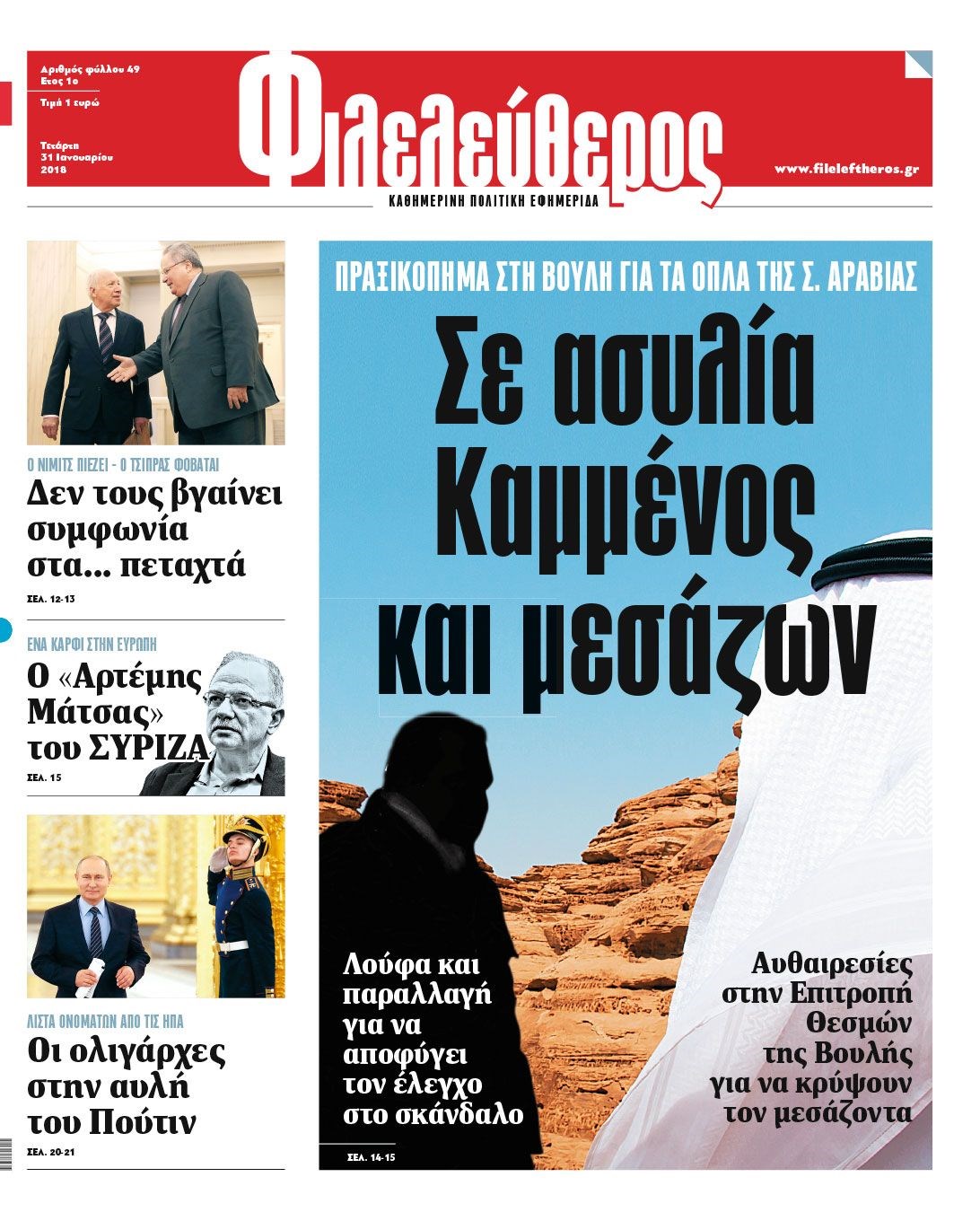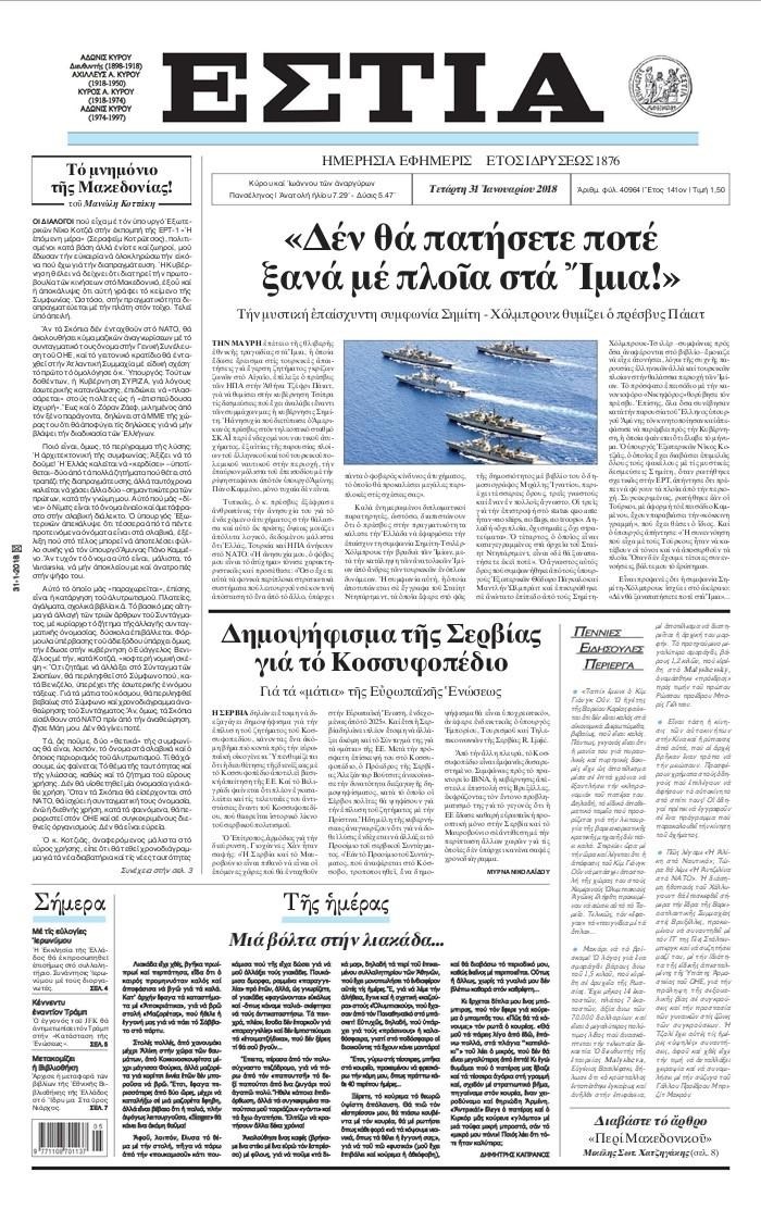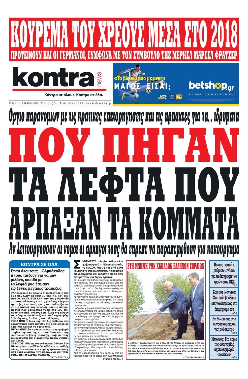Οι πολιτικές εφημερίδες 31/1/2018 Κώστας Τεό 06:21, Τετάρτη 31 Ιανουαρίου 2018 Media Διαβάστε τα σημερινά πρωτοσέλιδα των πολιτικών εφημερίδων: ΠΟΛΙΤΙΚΕΣ ΕΦΗΜΕΡΙΔΕΣ ΠΡΩΤΟΣΕΛΙΔΑ Μοιράσου το: σχολίασε κι εσύ (0 σχόλια) Ακολουθήστε το enikos.gr στο Google News και μάθετε πρώτοι όλες τις ειδήσεις Δείτε όλες τις τελευταίες ειδήσεις από την Ελλάδα και τον Κόσμο στο enikos.gr Ειδήσεις Ροή Ειδήσεων 3 ώρες πριν Χριστούγεννα στα μπλόκα οι αγρότες: Άνοιξαν στα διόδια και μοίρασαν προϊόντα στους πολίτες – Νέα σύσκεψη την Κυριακή στη Νίκαια 4 ώρες πριν Κύκλωμα διακίνησης ναρκωτικών σε σχολεία: Τηλεφωνούσαν στους ανηλίκους την ώρα του μαθήματος – Οι διάλογοι-σοκ, τα «ψευδώνυμα» και τα βασανιστήρια 3 ώρες πριν Αρχεία Επστάιν: Οι 500 σελίδες που λείπουν, τα αναπάντητα ερωτήματα και οι επώνυμοι – Τι έπεται 5 ώρες πριν Ζελένσκι: Μόνο οι ΗΠΑ και ο Τραμπ μπορούν να πιέσουν τη Ρωσία να βάλει τέλος στον πόλεμο 5 ώρες πριν Φοινικούντα: Προφυλακιστέος ο 30χρονος για συνέργεια στη διπλή δολοφονία – Και άλλα πρόσωπα στο «μικροσκόπιο» 3 ώρες πριν Αποκαλύφθηκε το άγνωστο «GPS» της αρχαιότητας – Πώς οι ναοί «φώτιζαν» τον δρόμο των ναυτικών πριν από την εφεύρεση των φάρων 4 ώρες πριν Ύπνος: Η διατροφή που μπορεί να σας βοηθήσει να κοιμάστε καλύτερα και να ζήσετε περισσότερο 5 ώρες πριν Αριθμολογία: Ο αριθμός του φύλακα αγγέλου σας, με βάση τον μήνα γέννησής σας – «Έτσι σας στέλνει σημάδια το σύμπαν» 17 ώρες πριν Enerwave: Το νέο «ρεύμα» στη λιανική ενέργειας που αλλάζει την εμπειρία του καταναλωτή 20 λεπτά πριν Σεισμός 3,8 Ρίχτερ ανοιχτά της Αμοργού 35 λεπτά πριν Άννα Βίσση: Τα… Social Media «προσκύνησαν» την «απόλυτη» για την συναυλία της στο Καλλιμάρμαρο που προβλήθηκε από το Mega 50 λεπτά πριν Φωτεινή Αθερίδου: «Προσπαθώ να είμαι κάθετη και αυστηρή σαν μαμά πια» 1 ώρα πριν ΗΠΑ, Αίγυπτος, Κατάρ και Τουρκία συζήτησαν τη δεύτερη φάση του ειρηνευτικού σχεδίου για τη Γάζα 1 ώρα πριν Γιάννης Αντετοκούνμπο: Έμεινε στην 6η θέση της ψηφοφορίας του ESPN για το βραβείο του MVP του NBA ENIKOS NETWORK Οι γυναίκες αποκαλύπτουν το πιο ελκυστικό πράγμα που μπορεί να κάνει ένας άνδρας Ομορφιά και αντιγήρανση: Ειδικοί μιλούν για συσκευές περιποίησης του δέρματος «Πολεμική» προετοιμασία από την ευρωπαϊκή βιομηχανία ενέργειας – Η Eurelectric ζητεί «ομπρέλα» προστασίας για τις υποδομές Ακύρωση ΑΦΜ για απάτες – Ποιους βάζει στο στόχαστρο η ΑΑΔΕ Χαρτογραφώντας το «σημείο χωρίς επιστροφή»: Για πρώτη φορά αποκαλύπτεται με λεπτομέρεια το ακανθώδες όριο της ατμόσφαιρας τ... Η Google καταργεί τη λειτουργία «dark web report» – Πώς θα μπορούν οι χρήστες να διαγράφουν τα δεδομένα τους περισσότερα 01:30 , Κυριακή 21 Δεκεμβρίου 2025 Άννα Βίσση: Τα… Social Media «προσκύνησαν» την «απόλυτη» για την συναυλία της στο Καλλιμάρμαρο που προβλήθηκε από το Mega Την ημέρα των γενεθλίων της Άννας Βίσση, το MEGA τίμησε τη διαχρονική παρουσία της «απόλυτης Ε... 00:00 , Κυριακή 21 Δεκεμβρίου 2025 The Voice: Η επιστροφή της Έλενας Παπαρίζου και η ατάκα του Γιώργου Μαζωνάκη μετά τις καταγγελίες Στη φάση των Cross Battles Live μπήκε το The Voice, με την Έλενα Παπαρίζου να επιστρέφει στο π... 20:30 , Σάββατο 20 Δεκεμβρίου 2025 Αυτή την Κυριακή με τη Realnews: Instyle, μαζί Drive και Realnews Geopolitics Αυτή την Κυριακή με τη Realnews: Instyle, μαζί Drive και Realnews Geopolitics Instyle Η Άννα Ρ... 20:28 , Σάββατο 20 Δεκεμβρίου 2025 Ο ΑΝΤ1 γεμίζει τις γιορτές με μουσική – Ποιους καλλιτέχνες θα απολαύσουμε Φέτος στον ΑΝΤ1 γιορτάζουμε τις νύχτες μας παρέα με αγαπημένους καλλιτέχνες