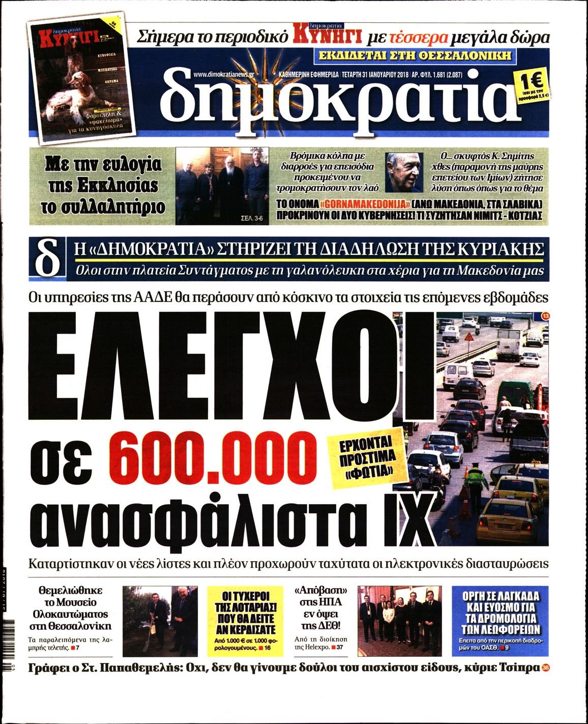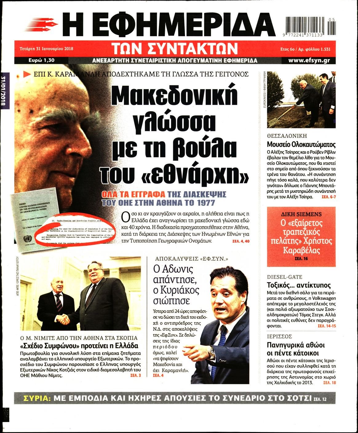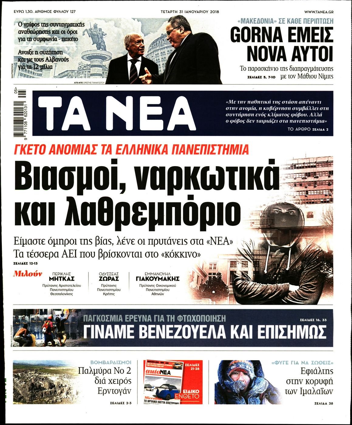 Οι πολιτικές εφημερίδες 31/1/2018 Κώστας Τεό 06:21, Τετάρτη 31 Ιανουαρίου 2018 Media Διαβάστε τα σημερινά πρωτοσέλιδα των πολιτικών εφημερίδων: ΠΟΛΙΤΙΚΕΣ ΕΦΗΜΕΡΙΔΕΣ ΠΡΩΤΟΣΕΛΙΔΑ Μοιράσου το: σχολίασε κι εσύ (0 σχόλια) Ακολουθήστε το enikos.gr στο Google News και μάθετε πρώτοι όλες τις ειδήσεις Δείτε όλες τις τελευταίες ειδήσεις από την Ελλάδα και τον Κόσμο στο enikos.gr Ειδήσεις Ροή Ειδήσεων 3 ώρες πριν Χριστούγεννα στα μπλόκα οι αγρότες: Άνοιξαν στα διόδια και μοίρασαν προϊόντα στους πολίτες – Νέα σύσκεψη την Κυριακή στη Νίκαια 4 ώρες πριν Κύκλωμα διακίνησης ναρκωτικών σε σχολεία: Τηλεφωνούσαν στους ανηλίκους την ώρα του μαθήματος – Οι διάλογοι-σοκ, τα «ψευδώνυμα» και τα βασανιστήρια 3 ώρες πριν Αρχεία Επστάιν: Οι 500 σελίδες που λείπουν, τα αναπάντητα ερωτήματα και οι επώνυμοι – Τι έπεται 5 ώρες πριν Ζελένσκι: Μόνο οι ΗΠΑ και ο Τραμπ μπορούν να πιέσουν τη Ρωσία να βάλει τέλος στον πόλεμο 5 ώρες πριν Φοινικούντα: Προφυλακιστέος ο 30χρονος για συνέργεια στη διπλή δολοφονία – Και άλλα πρόσωπα στο «μικροσκόπιο» 3 ώρες πριν Αποκαλύφθηκε το άγνωστο «GPS» της αρχαιότητας – Πώς οι ναοί «φώτιζαν» τον δρόμο των ναυτικών πριν από την εφεύρεση των φάρων 4 ώρες πριν Ύπνος: Η διατροφή που μπορεί να σας βοηθήσει να κοιμάστε καλύτερα και να ζήσετε περισσότερο 5 ώρες πριν Αριθμολογία: Ο αριθμός του φύλακα αγγέλου σας, με βάση τον μήνα γέννησής σας – «Έτσι σας στέλνει σημάδια το σύμπαν» 17 ώρες πριν Enerwave: Το νέο «ρεύμα» στη λιανική ενέργειας που αλλάζει την εμπειρία του καταναλωτή 20 λεπτά πριν Σεισμός 3,8 Ρίχτερ ανοιχτά της Αμοργού 35 λεπτά πριν Άννα Βίσση: Τα… Social Media «προσκύνησαν» την «απόλυτη» για την συναυλία της στο Καλλιμάρμαρο που προβλήθηκε από το Mega 50 λεπτά πριν Φωτεινή Αθερίδου: «Προσπαθώ να είμαι κάθετη και αυστηρή σαν μαμά πια» 1 ώρα πριν ΗΠΑ, Αίγυπτος, Κατάρ και Τουρκία συζήτησαν τη δεύτερη φάση του ειρηνευτικού σχεδίου για τη Γάζα 1 ώρα πριν Γιάννης Αντετοκούνμπο: Έμεινε στην 6η θέση της ψηφοφορίας του ESPN για το βραβείο του MVP του NBA ENIKOS NETWORK Οι γυναίκες αποκαλύπτουν το πιο ελκυστικό πράγμα που μπορεί να κάνει ένας άνδρας Ομορφιά και αντιγήρανση: Ειδικοί μιλούν για συσκευές περιποίησης του δέρματος «Πολεμική» προετοιμασία από την ευρωπαϊκή βιομηχανία ενέργειας – Η Eurelectric ζητεί «ομπρέλα» προστασίας για τις υποδομές Ακύρωση ΑΦΜ για απάτες – Ποιους βάζει στο στόχαστρο η ΑΑΔΕ Χαρτογραφώντας το «σημείο χωρίς επιστροφή»: Για πρώτη φορά αποκαλύπτεται με λεπτομέρεια το ακανθώδες όριο της ατμόσφαιρας τ... Η Google καταργεί τη λειτουργία «dark web report» – Πώς θα μπορούν οι χρήστες να διαγράφουν τα δεδομένα τους περισσότερα 01:30 , Κυριακή 21 Δεκεμβρίου 2025 Άννα Βίσση: Τα… Social Media «προσκύνησαν» την «απόλυτη» για την συναυλία της στο Καλλιμάρμαρο που προβλήθηκε από το Mega Την ημέρα των γενεθλίων της Άννας Βίσση, το MEGA τίμησε τη διαχρονική παρουσία της «απόλυτης Ε... 00:00 , Κυριακή 21 Δεκεμβρίου 2025 The Voice: Η επιστροφή της Έλενας Παπαρίζου και η ατάκα του Γιώργου Μαζωνάκη μετά τις καταγγελίες Στη φάση των Cross Battles Live μπήκε το The Voice, με την Έλενα Παπαρίζου να επιστρέφει στο π... 20:30 , Σάββατο 20 Δεκεμβρίου 2025 Αυτή την Κυριακή με τη Realnews: Instyle, μαζί Drive και Realnews Geopolitics Αυτή την Κυριακή με τη Realnews: Instyle, μαζί Drive και Realnews Geopolitics Instyle Η Άννα Ρ... 20:28 , Σάββατο 20 Δεκεμβρίου 2025 Ο ΑΝΤ1 γεμίζει τις γιορτές με μουσική – Ποιους καλλιτέχνες θα απολαύσουμε Φέτος στον ΑΝΤ1 γιορτάζουμε τις νύχτες μας παρέα με αγαπημένους καλλιτέχνες