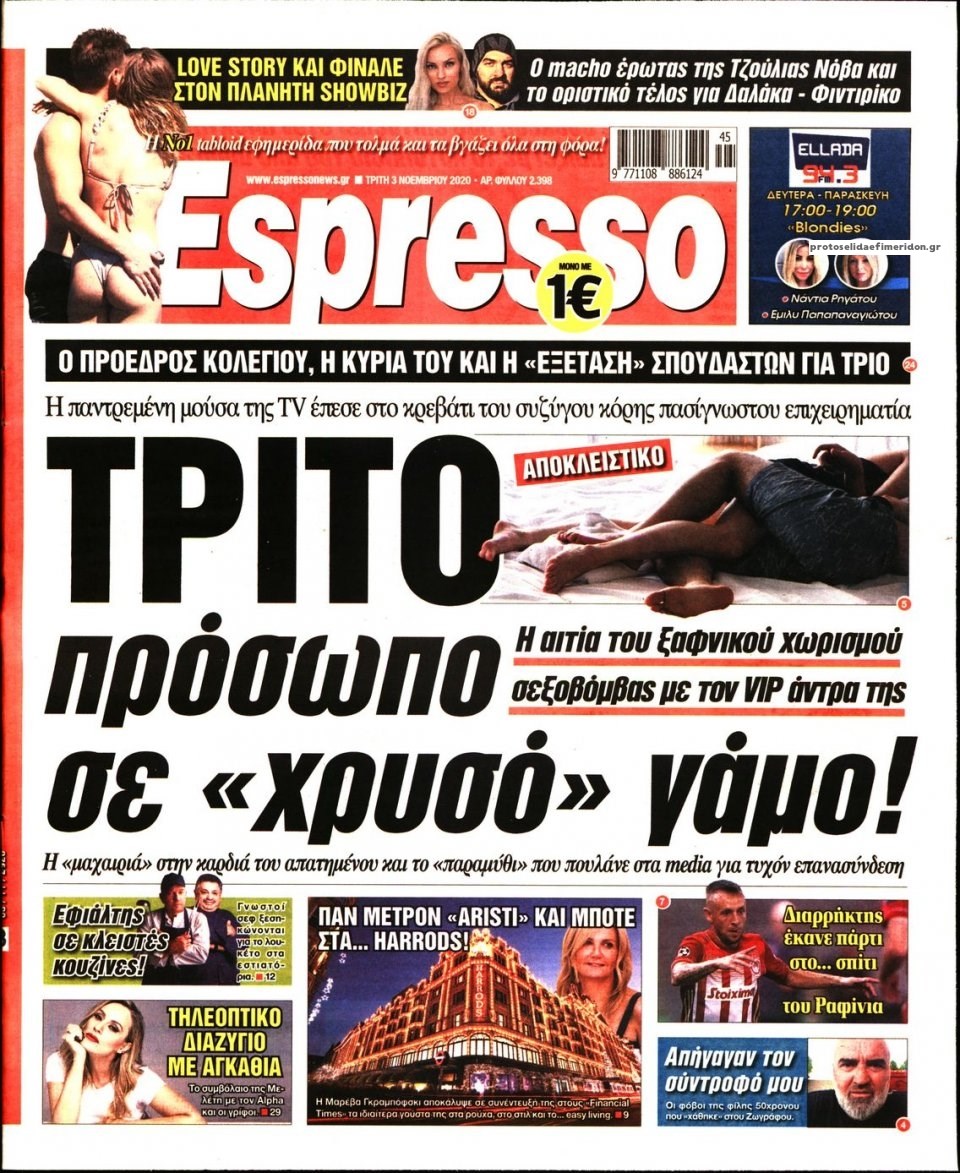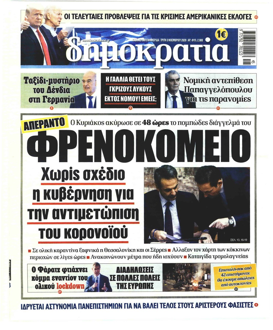 Οι πολιτικές εφημερίδες 3/11/2020 Σήφης Γαρυφαλάκης 06:34, Τρίτη 03 Νοεμβρίου 2020 Media Διαβάστε τα πρωτοσέλιδα των πολιτικών εφημερίδων… ΕΦΗΜΕΡΙΔΕΣ ΠΟΛΙΤΙΚΕΣ ΕΦΗΜΕΡΙΔΕΣ ΠΡΩΤΟΣΕΛΙΔΑ ΠΡΩΤΟΣΕΛΙΔΑ ΕΦΗΜΕΡΙΔΩΝ Μοιράσου το: σχολίασε κι εσύ (0 σχόλια) Ακολουθήστε το enikos.gr στο Google News και μάθετε πρώτοι όλες τις ειδήσεις Δείτε όλες τις τελευταίες ειδήσεις από την Ελλάδα και τον Κόσμο στο enikos.gr Ειδήσεις Ροή Ειδήσεων 1 ώρα πριν Γιορτές με μπλόκα για τους αγρότες: Ανοίγουν διόδια και μοιράζουν προϊόντα στους ταξιδιώτες 2 ώρες πριν Τα αρχεία του Έπσταϊν αποκαλύπτουν φωτογραφία του έκπτωτου πρίγκιπα Άντριου – Είναι ξαπλωμένος στην αγκαλιά 5 γυναικών 51 λεπτά πριν Νέες ταυτότητες: Μεγάλη αναμονή για ραντεβού στην Αττική – Τέλος τα ταξίδια εκτός Ελλάδος από τον Αύγουστο για όσους δεν έχουν αλλάξει 2 ώρες πριν Εξαφάνιση 33χρονου γιατρού στην Κρήτη: «Άναψα τα φώτα, τρόμαξε και άρχισε να τρέχει στα χωράφια» – Η τελευταία διαδρομή και η μαρτυρία «κλειδί» 3 ώρες πριν Ο «χάρτης» με τις αυξήσεις και τις φοροελαφρύνσεις του 2026 – Ποιοι και πόσα κερδίζουν 2 ώρες πριν Μία νέα «χρυσή» περίοδος αρχίζει για 3 ζώδια από σήμερα – «Μία αναπάντεχη ευκαιρία οδηγεί στην επιτυχία» 6 ώρες πριν Αυγά: Πόσα μπορείτε να τρώτε την ημέρα με ασφάλεια για μέγιστη πρόσληψη πρωτεΐνης 4 ώρες πριν Αρχαιολόγοι ανακάλυψαν σε χωράφι απεικόνιση 600 ετών ενός Αγίου – Τα στοιχεία που δείχνουν ότι μαρτύρησε 3 ώρες πριν Αγχώνεται για το χριστουγεννιάτικο δώρο που πήρε στην πλούσια σύντροφό του – «Φοβάμαι πως θα το βρει φθηνιάρικο, φοράει βραχιόλια Cartier» 3 λεπτά πριν Ινδία: Επτά ελέφαντες σκοτώθηκαν κατά τη σύγκρουση επιβατικού τρένου με κοπάδι 12 λεπτά πριν Βούλα: Συνελήφθη 24χρονος με 69 κιλά ακατέργαστης κάνναβης – Κυκλοφορούσε με κλεμμένο αυτοκίνητο 20 λεπτά πριν «Η αγάπη δεν χάνεται ποτέ»: Η μικρού μήκους ταινία κινουμένων σχεδίων που θέτει ερωτήματα για τη ζωή και τον θάνατο 28 λεπτά πριν Στέφανος Παπαδόπουλος: Η συνέντευξη μετά τη μήνυση στον Γιώργο Μαζωνάκη – «Δεν θέλω να τα βρούμε εξωδικαστικά» 36 λεπτά πριν Τραγωδία στην άσφαλτο στα Χανιά: Νεκρός 37χρονος οδηγός ΙΧ – Τον βρήκαν ώρες μετά το τροχαίο ENIKOS NETWORK Είστε μόνιμα απρόσεκτοι; 3 σημάδια που δείχνουν ότι μπορεί να είναι σύμπτωμα πάθησης Πόσα κιλά παίρνουμε πραγματικά τα Χριστούγεννα, σύμφωνα με την επιστήμη – Πώς να το αποτρέψουμε; Χριστούγεννα και Πρωτοχρονιά: Πώς αμείβονται όσοι εργαστούν e-ΕΦΚΑ και ΔΥΠΑ: Έρχονται νέες πληρωμές έως τις 24 Δεκεμβρίου – Ποιοι πάνε ταμείο Χαρτογραφώντας το «σημείο χωρίς επιστροφή»: Για πρώτη φορά αποκαλύπτεται με λεπτομέρεια το ακανθώδες όριο της ατμόσφαιρας τ... Η Google καταργεί τη λειτουργία «dark web report» – Πώς θα μπορούν οι χρήστες να διαγράφουν τα δεδομένα τους περισσότερα 11:41 , Σάββατο 20 Δεκεμβρίου 2025 «Η αγάπη δεν χάνεται ποτέ»: Η μικρού μήκους ταινία κινουμένων σχεδίων που θέτει ερωτήματα για τη ζωή και τον θάνατο Ο θάνατος είναι ένα από τα πιο σκληρά θέματα που καλείται να διαχειριστεί κάποιος στη διάρκεια... 09:30 , Σάββατο 20 Δεκεμβρίου 2025 «Porto Leone: Στη γειτονιά με τα κόκκινα φανάρια» – Ο Χρόνης αποκαλύπτει στην Αλεξάνδρα το μυστικό για το παιδί της Λένας Η μεγάλη δραματική σειρά του Apha «Porto Leone: Στη γειτονιά με τα κόκκινα φανάρια» μας μεταφέ... 08:14 , Σάββατο 20 Δεκεμβρίου 2025 Τρομεροί γονείς: Η Μαρία Καβογιάννη εισβάλλει στο σπίτι της οικογένειας Στεφανίδη Όσα θα δούμε στο νέο διπλό επεισόδιο της σειράς «Τρομεροί γον