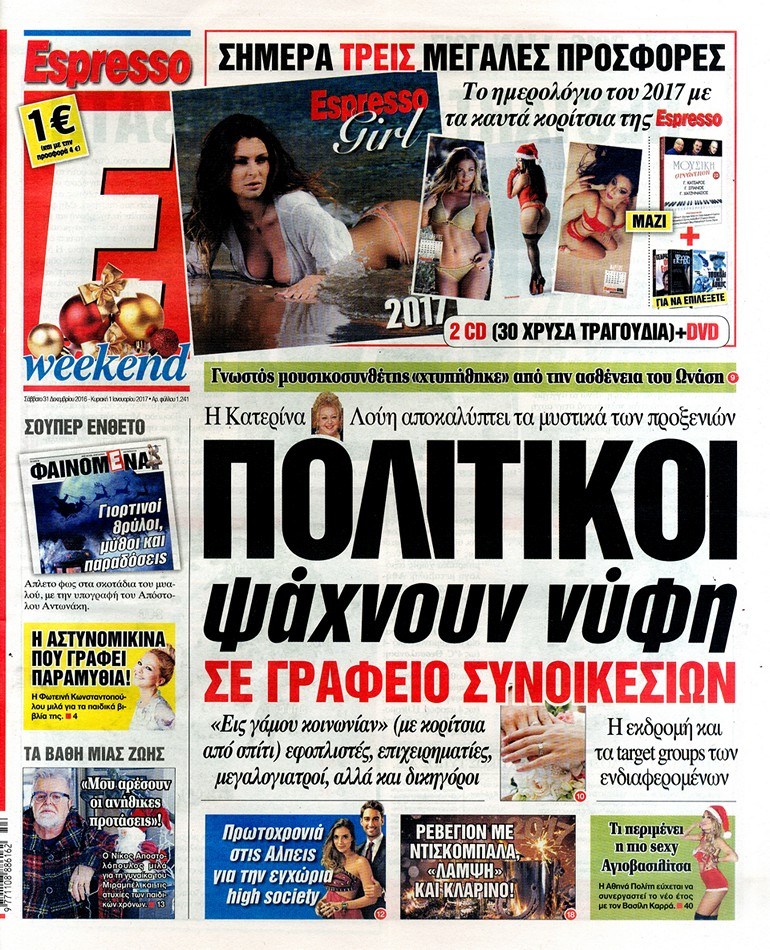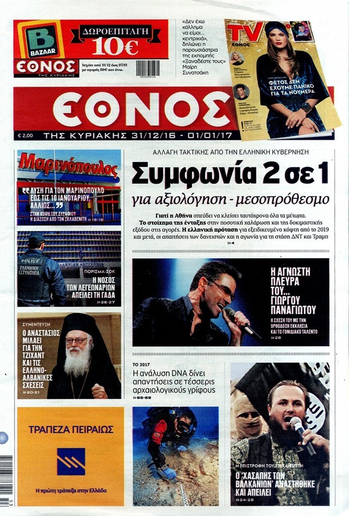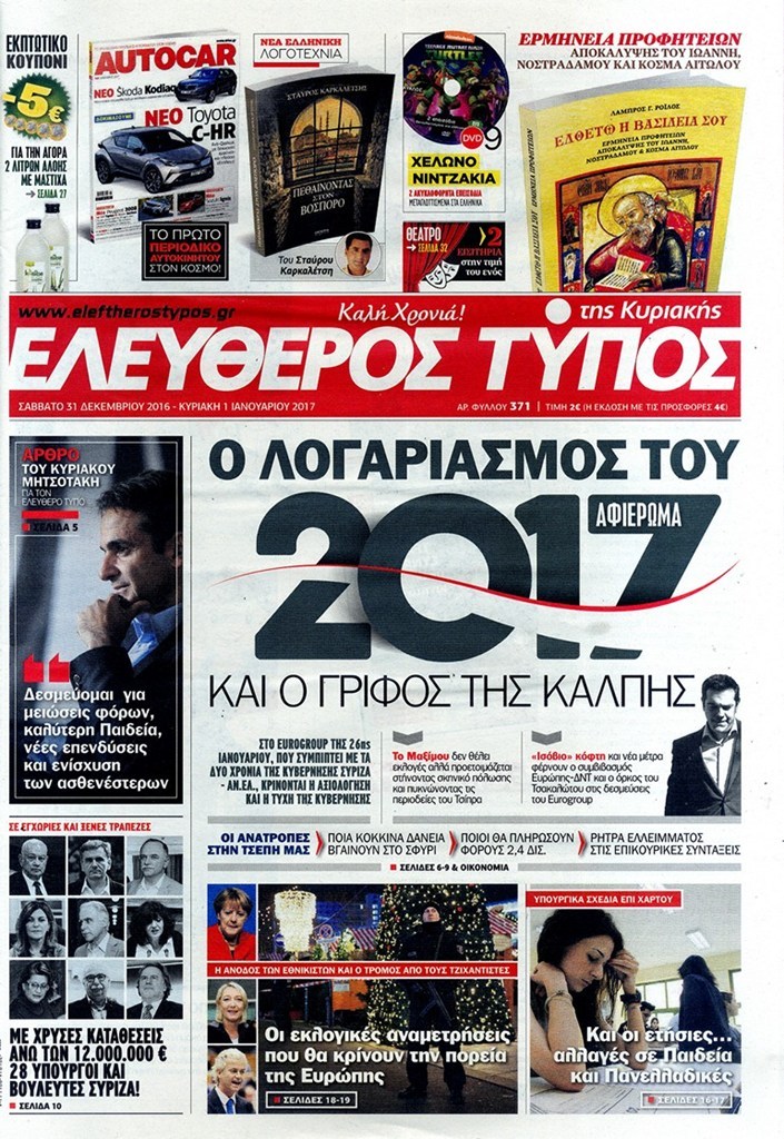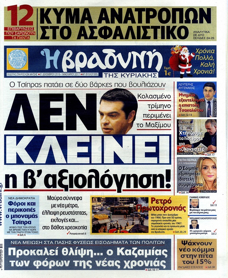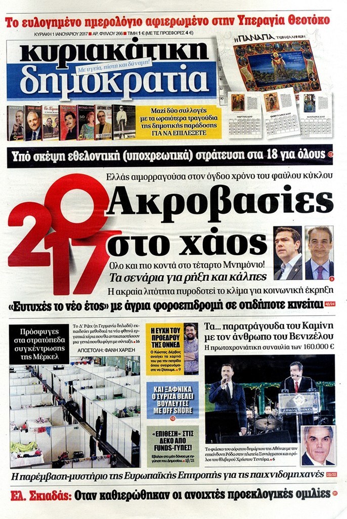 Οι πολιτικές εφημερίδες 31/12/2016 Κώστας Τεό 02:45, Σάββατο 31 Δεκεμβρίου 2016 Media Διαβάστε τα σημερινά πρωτοσέλιδα των πολιτικών εφημερίδων: ΠΟΛΙΤΙΚΕΣ ΕΦΗΜΕΡΙΔΕΣ ΠΡΩΤΟΣΕΛΙΔΑ Μοιράσου το: σχολίασε κι εσύ (0 σχόλια) Ακολουθήστε το enikos.gr στο Google News και μάθετε πρώτοι όλες τις ειδήσεις Δείτε όλες τις τελευταίες ειδήσεις από την Ελλάδα και τον Κόσμο στο enikos.gr Ειδήσεις Ροή Ειδήσεων 2 ώρες πριν Μπλόκα: Οι αγρότες σηκώνουν τις μπάρες σε διόδια για τους εκδρομείς των Χριστουγέννων και μοιράζουν προϊόντα – Βίντεο 2 ώρες πριν Τσιάρας προς αγρότες: Τα μπλόκα και τα πείσματα δεν ωφελούν – Οι λύσεις περνούν μέσα από τον διάλογο 3 ώρες πριν Αρχεία Έπσταϊν: Οι συγκλονιστικές φωτογραφίες – Ο Μάικλ Τζάκσον, ο Μικ Τζάγκερ και ο Κέβιν Σπέισι ανάμεσα στους διάσημους που απεικονίζονται 1 ώρα πριν Μαθητές διακινούσαν κοκαΐνη και χασίς σε σχολείο της Αττικής – 12 συλλήψεις 1 ώρα πριν Βέλγιο: Άγνωστοι έριξαν κόκκινη μπογιά στο προξενείο της Πολωνίας στις Βρυξέλλες 5 ώρες πριν Μία νέα «χρυσή» περίοδος αρχίζει για 3 ζώδια από σήμερα – «Μία αναπάντεχη ευκαιρία οδηγεί στην επιτυχία» 4 ώρες πριν Διαιτολόγος αποκαλύπτει 9 πρωινές συνήθειες που «λιώνουν» το κοιλιακό λίπος – «Υποστηρίζουν την υγιεινή απώλεια βάρους» 5 ώρες πριν Οι 7 φράσεις που δεν λένε ποτέ οι συναισθηματικά έξυπνοι άνθρωποι κατά τη διάρκεια ενός καβγά 7 ώρες πριν Enerwave: Το νέο «ρεύμα» στη λιανική ενέργειας που αλλάζει την εμπειρία του καταναλωτή 8 λεπτά πριν Πακιστάν: Σε κάθειρξη 17 ετών καταδικάστηκαν ο πρώην πρωθυπουργός Ίμραν Χαν και η σύζυγός του 16 λεπτά πριν Μαρινάκης στον Realfm 97,8: Η κυβέρνηση σέβεται κάθε λογική διεκδίκηση των αγροτών, αλλά και το αίτημα των πολιτών να μην ταλαιπωρούνται 23 λεπτά πριν O Πάντερ MVP της 17ης αγωνιστικής στην Euroleague 31 λεπτά πριν Πέθανε η τραγουδίστρια Κλαούντια Ντελμέρ 39 λεπτά πριν Μία ανεκμετάλλευτη πηγή θα μπορούσε να προσφέρει ανεξάντλητη ενέργεια – Οι επιστήμονες ίσως γνωρίζουν πώς να την ξεκλειδώσουν ENIKOS NETWORK Η αποχή από την αναπαραγωγή παρατείνει τη ζωή στα ζώα, σύμφωνα με μελέτη – Τι ισχύει για τους ανθρώπους; Σημαντικές επαφές στις ΗΠΑ είχε ο υπουργός Υγείας Άδωνις Γεωργιάδης Ευλογιά αιγοπροβάτων: Παρατεταμένη επιζωοτία, αυστηρά μέτρα – Τι ισχύει για τον εμβολιασμό και την ανασύσταση του ζωικού κε... Τσιάρας προς αγρότες: Έχει ικανοποιηθεί το 74% των αιτημάτων – Τα μπλόκα και τα πείσματα δεν ωφελούν Χαρτογραφώντας το «σημείο χωρίς επιστροφή»: Για πρώτη φορά αποκαλύπτεται με λεπτομέρεια το ακανθώδες όριο της ατμόσφαιρας τ... Η Google καταργεί τη λειτουργία «dark web report» – Πώς θα μπορούν οι χρήστες να διαγράφουν τα δεδομένα τους περισσότερα 14:04 , Σάββατο 20 Δεκεμβρίου 2025 Η Realnews αυτής της Κυριακής (21/12/2025) Με τίτλο: «Ασπίδα προστασίας για την Ελλάδα» κυκλοφορεί, αυτήν την Κυριακή, η Realnews. Σημαντ... 12:53 , Σάββατο 20 Δεκεμβρίου 2025 Να μ’ αγαπάς: Το παρελθόν έρχεται στο φως – Καταιγιστικές εξελίξεις στα τελευταία επεισόδια του 2025 Ο Άγγελος αποκαλύπτεται, η Φωτεινή ανησυχεί για τον Λευτέρη και η Ζωή έρχεται αντιμέτωπη με το... 11:41 , Σάββατο 20 Δεκεμβρίου 2025 «Η αγάπη δεν χάνεται ποτέ»: Η μικρού μήκους ταινία κινουμένων σχεδίων που θέτει ερωτήματα για τη ζωή και τον θάνατο Ο θάνατος είναι ένα από τα πιο σκληρά θέματα που καλείται να διαχειριστεί κάποιος στη διάρκεια... 09:30 , Σάββατο 20 Δεκεμβρίου 2025 «Porto Leone: Στη γειτονιά με τα κόκκινα φανάρια» – Ο Χρόνης αποκαλύπτει στην Αλεξάνδρα το μυστικό για το
