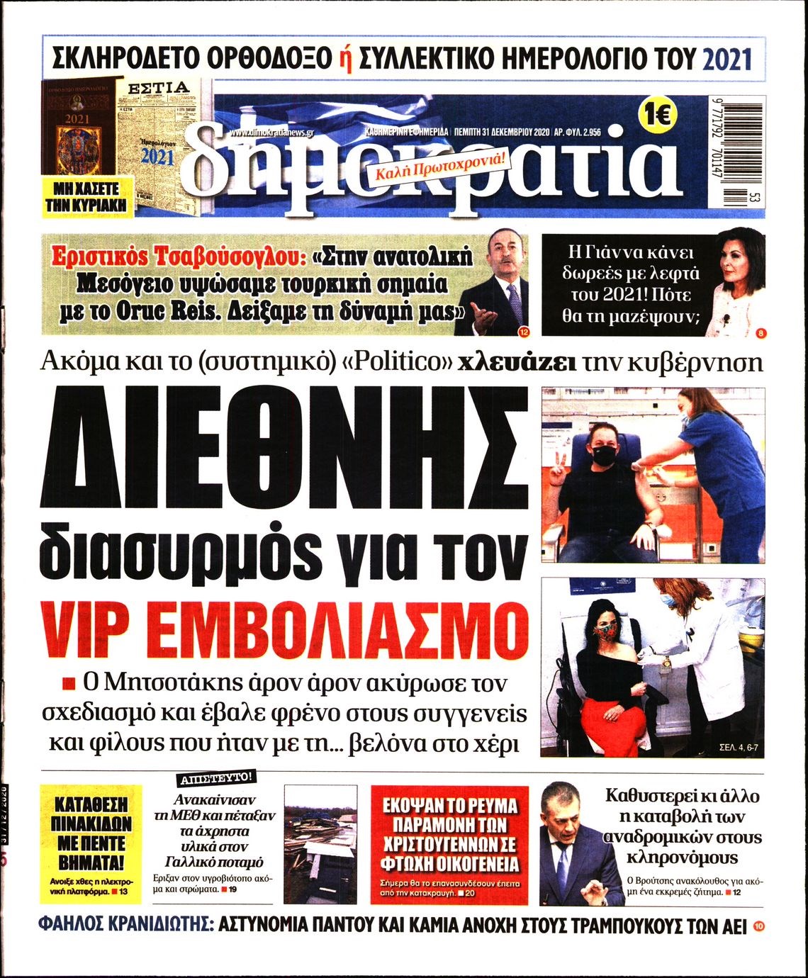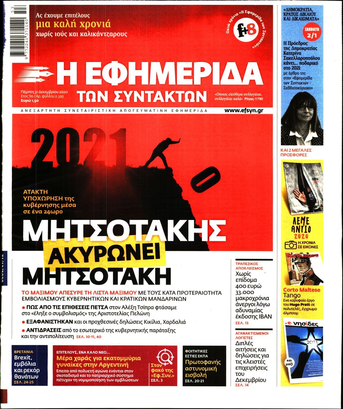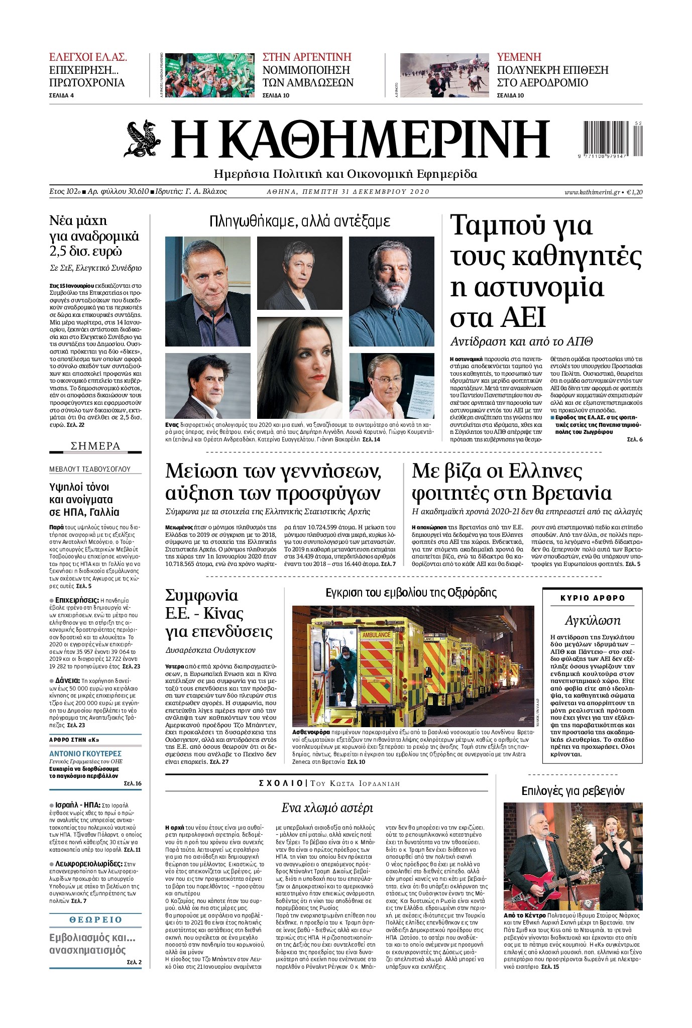 Οι πολιτικές εφημερίδες 31/12/2020 Διονύσης Νίκκας 07:00, Πέμπτη 31 Δεκεμβρίου 2020 Media Διαβάστε τα πρωτοσέλιδα των πολιτικών εφημερίδων… ΕΦΗΜΕΡΙΔΕΣ ΠΟΛΙΤΙΚΕΣ ΕΦΗΜΕΡΙΔΕΣ ΠΡΩΤΟΣΕΛΙΔΑ Μοιράσου το: σχολίασε κι εσύ (0 σχόλια) Ακολουθήστε το enikos.gr στο Google News και μάθετε πρώτοι όλες τις ειδήσεις Δείτε όλες τις τελευταίες ειδήσεις από την Ελλάδα και τον Κόσμο στο enikos.gr Ειδήσεις Ροή Ειδήσεων 6 ώρες πριν Χριστούγεννα στα μπλόκα: Επιμένουν στις κινητοποιήσεις τους οι αγρότες – Ανοίγουν τα διόδια το Σαββατοκύριακο 7 ώρες πριν Ουκρανία: Η άνευ προηγουμένου επίθεση σε ρωσικό τάνκερ στη Μεσόγειο και το μήνυμα προς στον Πούτιν – Το «μακρύ χέρι» του Κιέβου 6 ώρες πριν Πούτιν: Τα μηνύματα σε Ευρώπη και ΝΑΤΟ από το μαραθώνιο «σόου» του – Η απαίτηση για «σεβασμό» και η ειρήνη «με τους όρους» της Μόσχας 7 ώρες πριν Τραμπ: Δεν αποκλείει την πιθανότητα ενός πολέμου στη Βενεζουέλα – «Ο Μαδούρο ξέρει καλύτερα από τον καθένα τι ακριβώς θέλω» 8 ώρες πριν Συνεχίζει να προκαλεί ο Μίτσκοσκι: «Για μένα το όνομα Μακεδονία είναι ιερό» 6 ώρες πριν Ανακαλύφθηκαν αρχαία χρυσά νομίσματα 2.200 ετών που απεικονίζουν τον θεό Απόλλωνα – Η άγνωστη σύνδεση με τον Φίλιππο Β΄ της Μακεδονίας 7 ώρες πριν Ύπνος: Μια κρυφή κατάσταση του εγκεφάλου πριν από τον ύπνο μπορεί να είναι το “κλειδί” για υψηλή ευφυΐα και δημιουργικότητα 8 ώρες πριν Αριθμολογία: Οι άνθρωποι που έχουν γεννηθεί αυτές τις 4 ημερομηνίες, συχνά παρεξηγούνται – «Η καλοσύνη τους κρύβει τεράστια δύναμη» 9 ώρες πριν Ξεχάστε το καθάρισμα το Σαββατοκύριακο: Ο «κανόνας των 20 λεπτών» που θα σας λύσει τα χέρια 11 δευτερόλεπτα πριν ΟΗΕ: Το Συμβούλιο Ασφαλείας παρατείνει για έναν χρόνο την εντολή της ειρηνευτικής δύναμης στο Κονγκό 15 λεπτά πριν Μοχάμεντ Σαλάχ: Ζήτησε «συγγνώμη» από τους συμπαίκτες του στη Λίβερπουλ για το ξέσπασμά του 30 λεπτά πριν Μάρκο Ρούμπιο: Ανθρωπιστική κατάπαυση του πυρός στο Σουδάν ζητά ο Αμερικανός υπουργός Εξωτερικών 45 λεπτά πριν Αγγελική Νικολούλη: Τα συλλυπητήρια για την απώλεια της Ειρήνης Μαρινάκη 60 λεπτά πριν Βολιβία: Μαζική διαδηλώσεις εναντίον της κατάργησης των επιδοτήσεων των τιμών των καυσίμων ENIKOS NETWORK Το ΕΚΑΒ τιμήθηκε από την Ακαδημία Αθηνών για τα 40 χρόνια προσφοράς του Έχετε πραγματικά μεγάλη καρδιά; 10 χαρακτηριστικά όσων έχουν καλοσύνη Αναστολή μέτρων αναγκαστικής εκτέλεσης για κτηνοτρόφους που πλήττονται από την ευλογιά των αιγοπροβάτων Πλήρης επάρκεια προϊόντων στις λαϊκές της Αττικής, παρά τις αγροτικές κινητοποιήσεις – Τι απαντούν οι πωλητές Χαρτογραφώντας το «σημείο χωρίς επιστροφή»: Για πρώτη φορά αποκαλύπτεται με λεπτομέρεια το ακανθώδες όριο της ατμόσφαιρας τ... Η Google καταργεί τη λειτουργία «dark web report» – Πώς θα μπορούν οι χρήστες να διαγράφουν τα δεδομένα τους περισσότερα 04:20 , Σάββατο 20 Δεκεμβρίου 2025 Αγγελική Νικολούλη: Τα συλλυπητήρια για την απώλεια της Ειρήνης Μαρινάκη Τα συλληπητήρια στον πρόεδρο του Mega, τον Βαγγέλη Μαρινάκη, για την απώλεια της μητέρας του Ε... 02:50 , Σάββατο 20 Δεκεμβρίου 2025 GNTM: Η Ξένια Τσίρκοβα αναδείχθηκε μεγάλη νικήτρια και πήρε τις 50.000 ευρώ – Ποιος βρέθηκε σε απόσταση αναπνοής; Με φαντασμαγορικό τρόπο ολοκληρώθηκε το βράδυ της Παρασκευής ο μεγάλος τελικός του GNTM, μέσα ... 22:42 , Παρασκευή 19 Δεκεμβρίου 2025 Γιώργος Γιαννόπουλος για “Το σόι σου”: “Είναι ευτυχία και ευλογία αυτή η σειρά” «Είναι ευτυχία και ευλογία η συγκυρία αυτής της σειράς», θα πει ο Γιώργος Γι