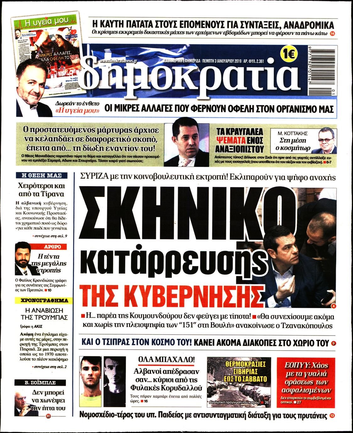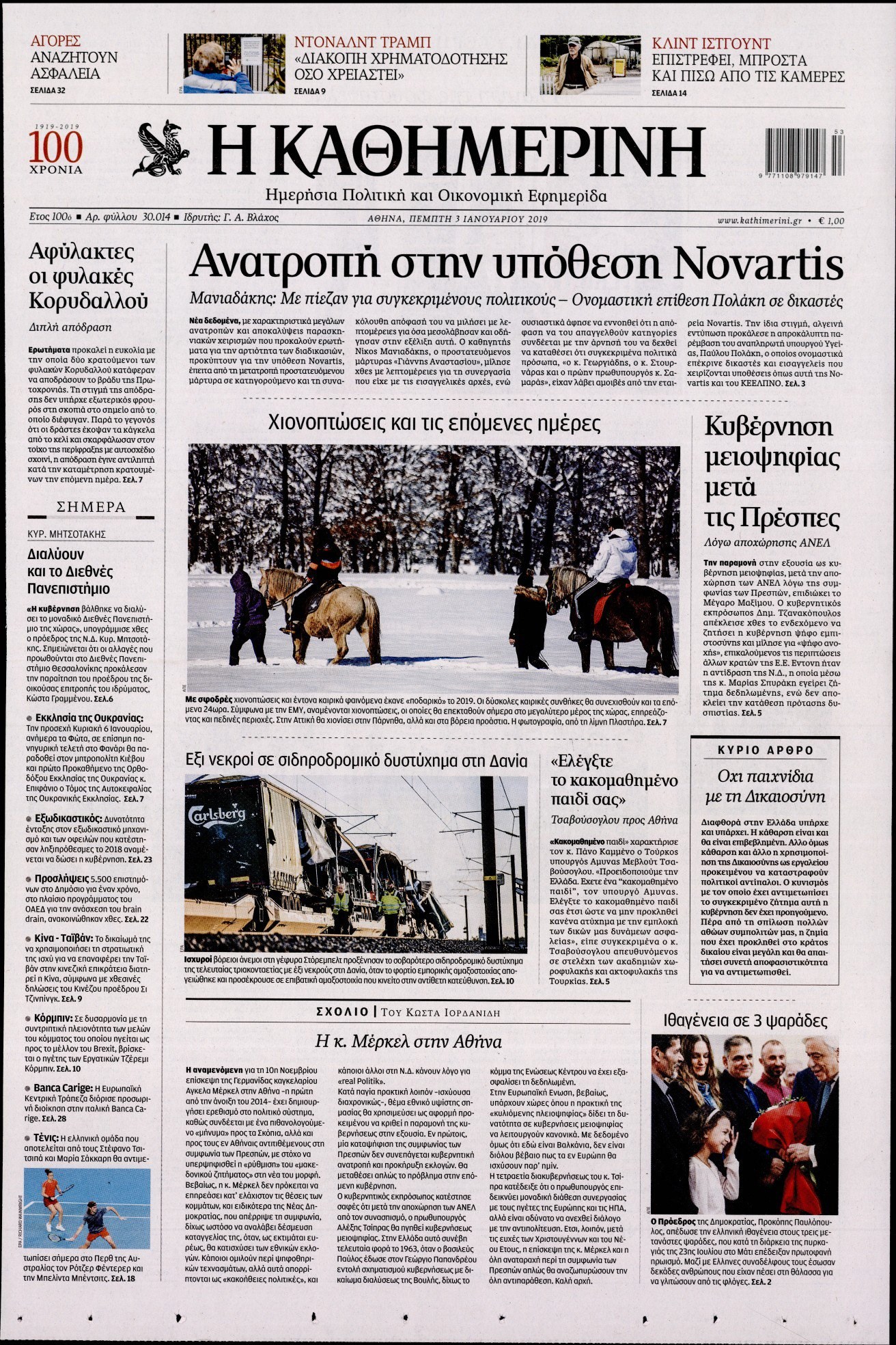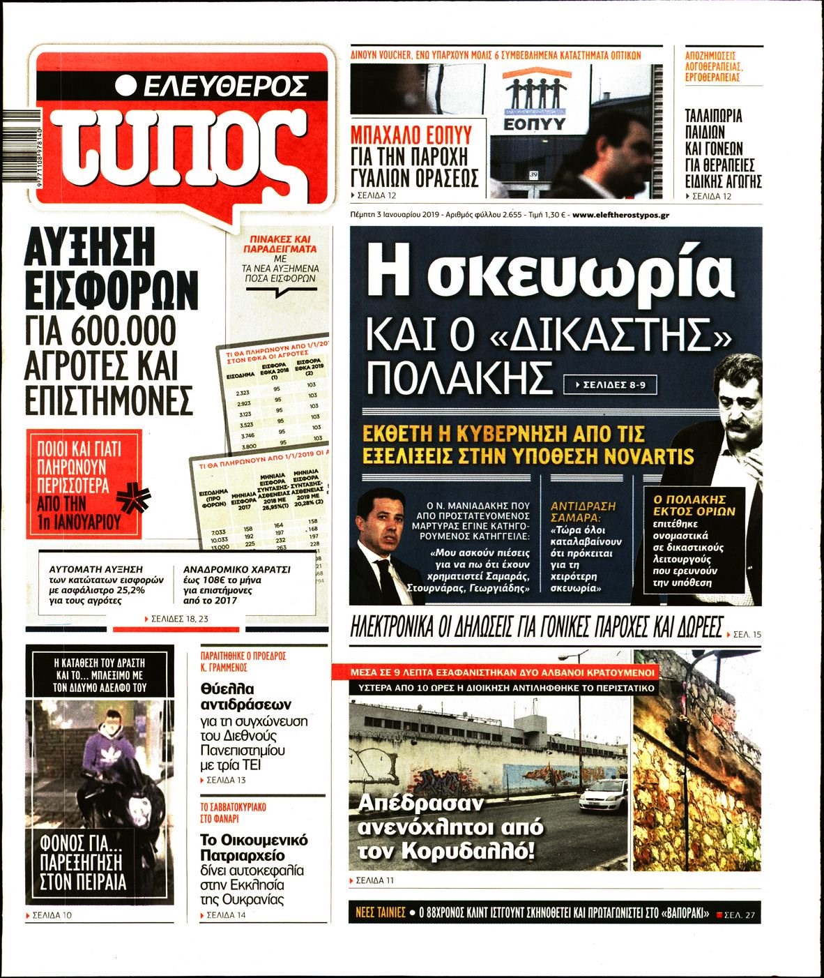 Οι πολιτικές εφημερίδες 3/1/19 Enikos Newsroom 06:24, Πέμπτη 03 Ιανουαρίου 2019 Media Διαβάστε τα πρωτοσέλιδα: ΠΟΛΙΤΙΚΕΣ ΕΦΗΜΕΡΙΔΕΣ ΠΡΩΤΟΣΕΛΙΔΑ Μοιράσου το: σχολίασε κι εσύ (0 σχόλια) Ακολουθήστε το enikos.gr στο Google News και μάθετε πρώτοι όλες τις ειδήσεις Δείτε όλες τις τελευταίες ειδήσεις από την Ελλάδα και τον Κόσμο στο enikos.gr Ειδήσεις Ροή Ειδήσεων 2 ώρες πριν Γιορτές με μπλόκα για τους αγρότες: Ανοίγουν διόδια και μοιράζουν προϊόντα στους ταξιδιώτες 2 ώρες πριν Τα αρχεία του Έπσταϊν αποκαλύπτουν φωτογραφία του έκπτωτου πρίγκιπα Άντριου – Είναι ξαπλωμένος στην αγκαλιά 5 γυναικών 1 ώρα πριν Νέες ταυτότητες: Μεγάλη αναμονή για ραντεβού στην Αττική – Τέλος τα ταξίδια εκτός Ελλάδος από τον Αύγουστο για όσους δεν έχουν αλλάξει 2 ώρες πριν Εξαφάνιση 33χρονου γιατρού στην Κρήτη: «Άναψα τα φώτα, τρόμαξε και άρχισε να τρέχει στα χωράφια» – Η τελευταία διαδρομή και η μαρτυρία «κλειδί» 31 λεπτά πριν Ινδία: Επτά ελέφαντες σκοτώθηκαν κατά τη σύγκρουση επιβατικού τρένου με κοπάδι 2 ώρες πριν Μία νέα «χρυσή» περίοδος αρχίζει για 3 ζώδια από σήμερα – «Μία αναπάντεχη ευκαιρία οδηγεί στην επιτυχία» 4 ώρες πριν Αρχαιολόγοι ανακάλυψαν σε χωράφι απεικόνιση 600 ετών ενός Αγίου – Τα στοιχεία που δείχνουν ότι μαρτύρησε 3 ώρες πριν Αγχώνεται για το χριστουγεννιάτικο δώρο που πήρε στην πλούσια σύντροφό του – «Φοβάμαι πως θα το βρει φθηνιάρικο, φοράει βραχιόλια Cartier» 29 λεπτά πριν Διαιτολόγος αποκαλύπτει 9 πρωινές συνήθειες που «λιώνουν» το κοιλιακό λίπος – «Υποστηρίζουν την υγιεινή απώλεια βάρους» 8 λεπτά πριν Χρήστος Μάντακας: «Θα μπορούσα να είχα φύγει από τη ζωή, δεν μπορούσα να περπατήσω…» 15 λεπτά πριν Εντυπωσιακό βίντεο από «τσουνάμι» πάγου στη Σιβηρία – Πώς προκαλείται το σπάνιο φαινόμενο 24 λεπτά πριν Μυλωνάκης κατά Τζάκρη: Την καλώ να ανασκευάσει το αδιανόητο ψέμα της. Η ανοχή έχει και τα όρια της» 29 λεπτά πριν Διαιτολόγος αποκαλύπτει 9 πρωινές συνήθειες που «λιώνουν» το κοιλιακό λίπος – «Υποστηρίζουν την υγιεινή απώλεια βάρους» 31 λεπτά πριν Ινδία: Επτά ελέφαντες σκοτώθηκαν κατά τη σύγκρουση επιβατικού τρένου με κοπάδι ENIKOS NETWORK Είστε μόνιμα απρόσεκτοι; 3 σημάδια που δείχνουν ότι μπορεί να είναι σύμπτωμα πάθησης Πόσα κιλά παίρνουμε πραγματικά τα Χριστούγεννα, σύμφωνα με την επιστήμη – Πώς να το αποτρέψουμε; Χριστούγεννα και Πρωτοχρονιά: Πώς αμείβονται όσοι εργαστούν e-ΕΦΚΑ και ΔΥΠΑ: Έρχονται νέες πληρωμές έως τις 24 Δεκεμβρίου – Ποιοι πάνε ταμείο Χαρτογραφώντας το «σημείο χωρίς επιστροφή»: Για πρώτη φορά αποκαλύπτεται με λεπτομέρεια το ακανθώδες όριο της ατμόσφαιρας τ... Η Google καταργεί τη λειτουργία «dark web report» – Πώς θα μπορούν οι χρήστες να διαγράφουν τα δεδομένα τους περισσότερα 11:41 , Σάββατο 20 Δεκεμβρίου 2025 «Η αγάπη δεν χάνεται ποτέ»: Η μικρού μήκους ταινία κινουμένων σχεδίων που θέτει ερωτήματα για τη ζωή και τον θάνατο Ο θάνατος είναι ένα από τα πιο σκληρά θέματα που καλείται να διαχειριστεί κάποιος στη διάρκεια... 09:30 , Σάββατο 20 Δεκεμβρίου 2025 «Porto Leone: Στη γειτονιά με τα κόκκινα φανάρια» – Ο Χρόνης αποκαλύπτει στην Αλεξάνδρα το μυστικό για το παιδί της Λένας Η μεγάλη δραματική σειρά του Apha «Porto Leone: Στη γειτονιά με τα κόκκινα φανάρια» μας μεταφέ... 08:14 , Σάββατο 20 Δεκεμβρίου 2025 Τρομεροί γονείς: Η Μαρία Καβογιάννη εισβάλλει στο σπίτι της οικογένειας Στεφανίδη Όσα θα δούμε στο νέο διπλό επεισόδιο της σειράς «Τρομεροί γονείς», σήμερα Σάββατο 20 Δεκεμβρίο... 05:48 , Σάββατο 20 Δεκε