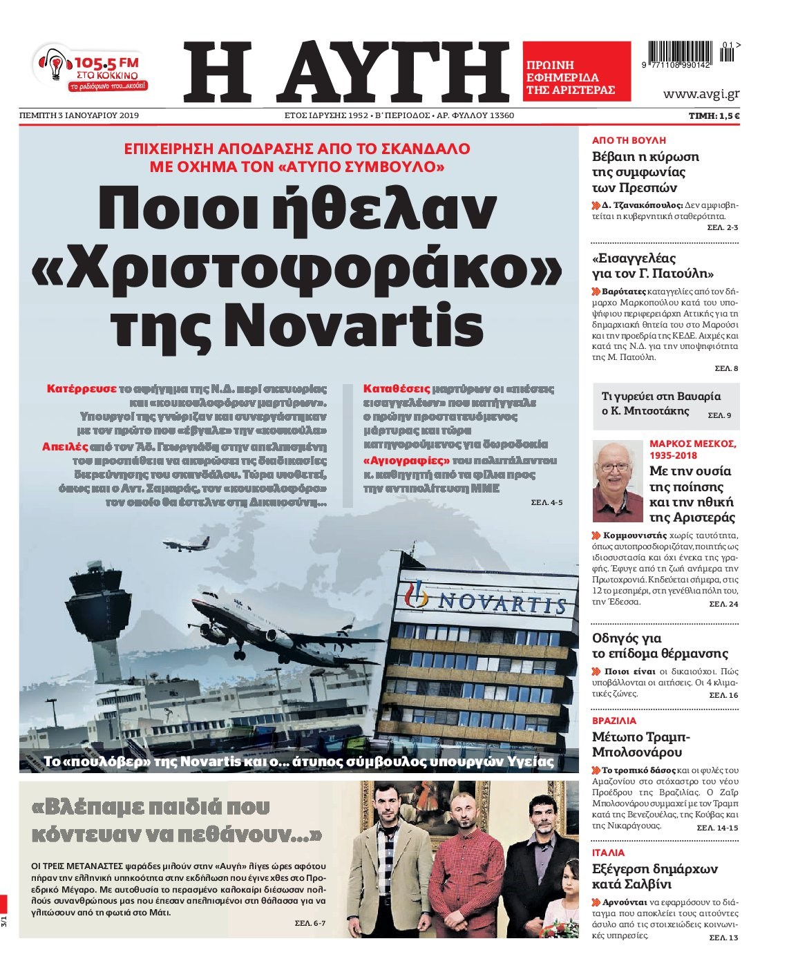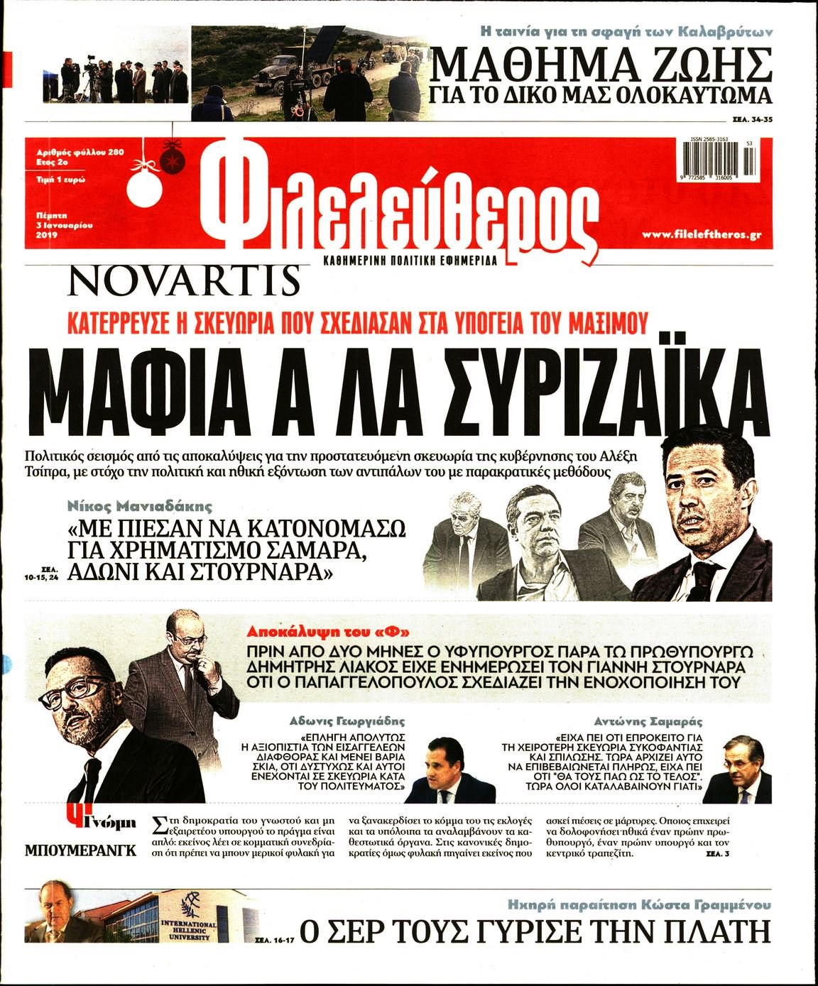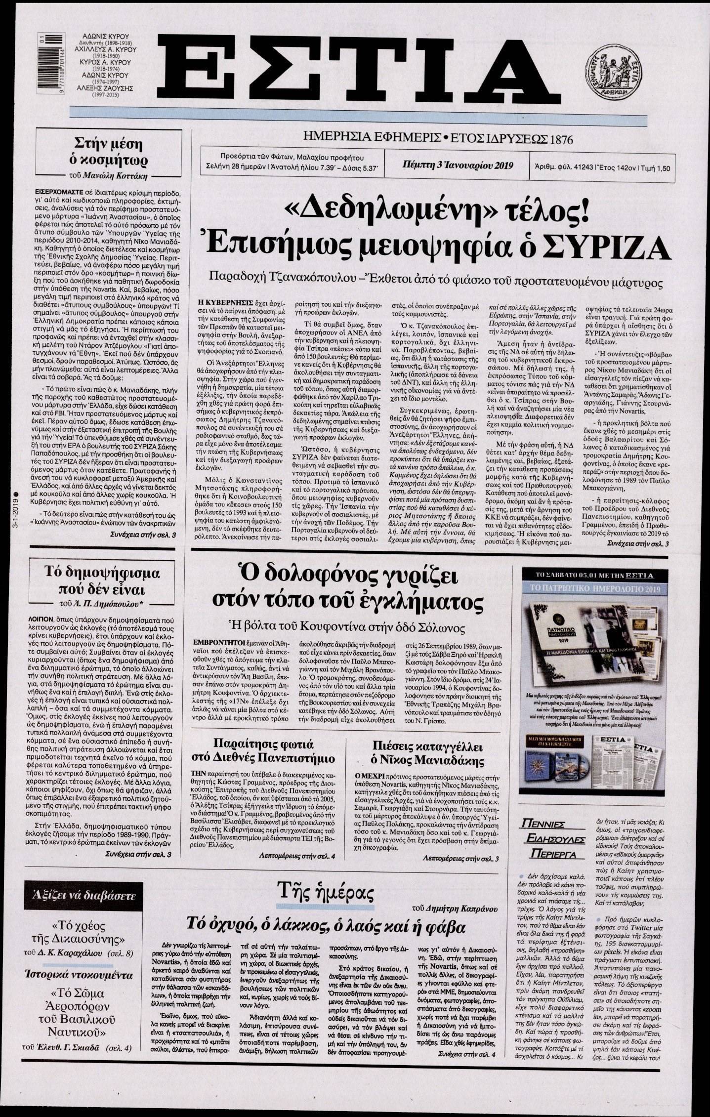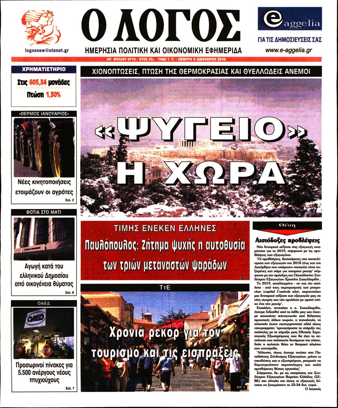 Οι πολιτικές εφημερίδες 3/1/19 Enikos Newsroom 06:24, Πέμπτη 03 Ιανουαρίου 2019 Media Διαβάστε τα πρωτοσέλιδα: ΠΟΛΙΤΙΚΕΣ ΕΦΗΜΕΡΙΔΕΣ ΠΡΩΤΟΣΕΛΙΔΑ Μοιράσου το: σχολίασε κι εσύ (0 σχόλια) Ακολουθήστε το enikos.gr στο Google News και μάθετε πρώτοι όλες τις ειδήσεις Δείτε όλες τις τελευταίες ειδήσεις από την Ελλάδα και τον Κόσμο στο enikos.gr Ειδήσεις Ροή Ειδήσεων 2 ώρες πριν Γιορτές με μπλόκα για τους αγρότες: Ανοίγουν διόδια και μοιράζουν προϊόντα στους ταξιδιώτες 2 ώρες πριν Τα αρχεία του Έπσταϊν αποκαλύπτουν φωτογραφία του έκπτωτου πρίγκιπα Άντριου – Είναι ξαπλωμένος στην αγκαλιά 5 γυναικών 1 ώρα πριν Νέες ταυτότητες: Μεγάλη αναμονή για ραντεβού στην Αττική – Τέλος τα ταξίδια εκτός Ελλάδος από τον Αύγουστο για όσους δεν έχουν αλλάξει 2 ώρες πριν Εξαφάνιση 33χρονου γιατρού στην Κρήτη: «Άναψα τα φώτα, τρόμαξε και άρχισε να τρέχει στα χωράφια» – Η τελευταία διαδρομή και η μαρτυρία «κλειδί» 31 λεπτά πριν Ινδία: Επτά ελέφαντες σκοτώθηκαν κατά τη σύγκρουση επιβατικού τρένου με κοπάδι 2 ώρες πριν Μία νέα «χρυσή» περίοδος αρχίζει για 3 ζώδια από σήμερα – «Μία αναπάντεχη ευκαιρία οδηγεί στην επιτυχία» 4 ώρες πριν Αρχαιολόγοι ανακάλυψαν σε χωράφι απεικόνιση 600 ετών ενός Αγίου – Τα στοιχεία που δείχνουν ότι μαρτύρησε 3 ώρες πριν Αγχώνεται για το χριστουγεννιάτικο δώρο που πήρε στην πλούσια σύντροφό του – «Φοβάμαι πως θα το βρει φθηνιάρικο, φοράει βραχιόλια Cartier» 29 λεπτά πριν Διαιτολόγος αποκαλύπτει 9 πρωινές συνήθειες που «λιώνουν» το κοιλιακό λίπος – «Υποστηρίζουν την υγιεινή απώλεια βάρους» 8 λεπτά πριν Χρήστος Μάντακας: «Θα μπορούσα να είχα φύγει από τη ζωή, δεν μπορούσα να περπατήσω…» 15 λεπτά πριν Εντυπωσιακό βίντεο από «τσουνάμι» πάγου στη Σιβηρία – Πώς προκαλείται το σπάνιο φαινόμενο 24 λεπτά πριν Μυλωνάκης κατά Τζάκρη: Την καλώ να ανασκευάσει το αδιανόητο ψέμα της. Η ανοχή έχει και τα όρια της» 29 λεπτά πριν Διαιτολόγος αποκαλύπτει 9 πρωινές συνήθειες που «λιώνουν» το κοιλιακό λίπος – «Υποστηρίζουν την υγιεινή απώλεια βάρους» 31 λεπτά πριν Ινδία: Επτά ελέφαντες σκοτώθηκαν κατά τη σύγκρουση επιβατικού τρένου με κοπάδι ENIKOS NETWORK Είστε μόνιμα απρόσεκτοι; 3 σημάδια που δείχνουν ότι μπορεί να είναι σύμπτωμα πάθησης Πόσα κιλά παίρνουμε πραγματικά τα Χριστούγεννα, σύμφωνα με την επιστήμη – Πώς να το αποτρέψουμε; Χριστούγεννα και Πρωτοχρονιά: Πώς αμείβονται όσοι εργαστούν e-ΕΦΚΑ και ΔΥΠΑ: Έρχονται νέες πληρωμές έως τις 24 Δεκεμβρίου – Ποιοι πάνε ταμείο Χαρτογραφώντας το «σημείο χωρίς επιστροφή»: Για πρώτη φορά αποκαλύπτεται με λεπτομέρεια το ακανθώδες όριο της ατμόσφαιρας τ... Η Google καταργεί τη λειτουργία «dark web report» – Πώς θα μπορούν οι χρήστες να διαγράφουν τα δεδομένα τους περισσότερα 11:41 , Σάββατο 20 Δεκεμβρίου 2025 «Η αγάπη δεν χάνεται ποτέ»: Η μικρού μήκους ταινία κινουμένων σχεδίων που θέτει ερωτήματα για τη ζωή και τον θάνατο Ο θάνατος είναι ένα από τα πιο σκληρά θέματα που καλείται να διαχειριστεί κάποιος στη διάρκεια... 09:30 , Σάββατο 20 Δεκεμβρίου 2025 «Porto Leone: Στη γειτονιά με τα κόκκινα φανάρια» – Ο Χρόνης αποκαλύπτει στην Αλεξάνδρα το μυστικό για το παιδί της Λένας Η μεγάλη δραματική σειρά του Apha «Porto Leone: Στη γειτονιά με τα κόκκινα φανάρια» μας μεταφέ... 08:14 , Σάββατο 20 Δεκεμβρίου 2025 Τρομεροί γονείς: Η Μαρία Καβογιάννη εισβάλλει στο σπίτι της οικογένειας Στεφανίδη Όσα θα δούμε στο νέο διπλό επεισόδιο της σειράς «Τρομεροί γονείς», σήμερα Σάββατο 20 Δεκεμβρίο... 05:48 , Σάββατο 20 Δεκε