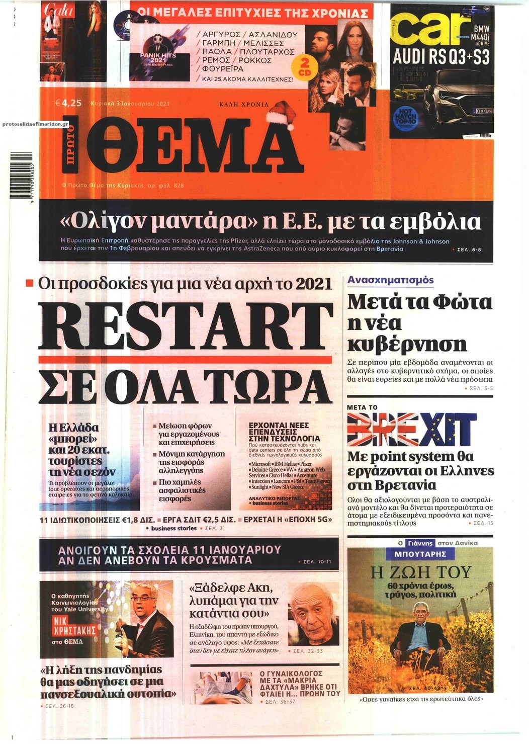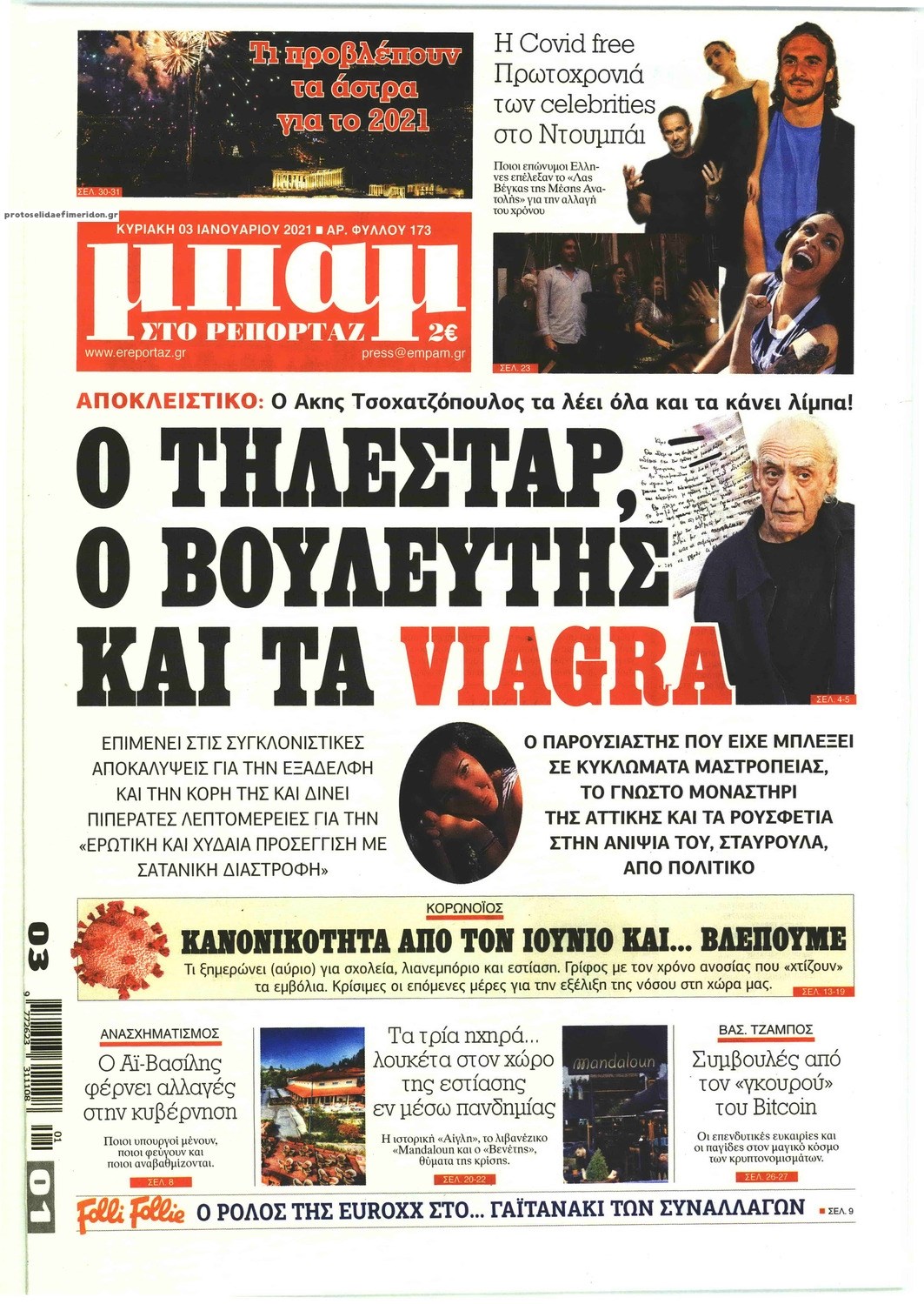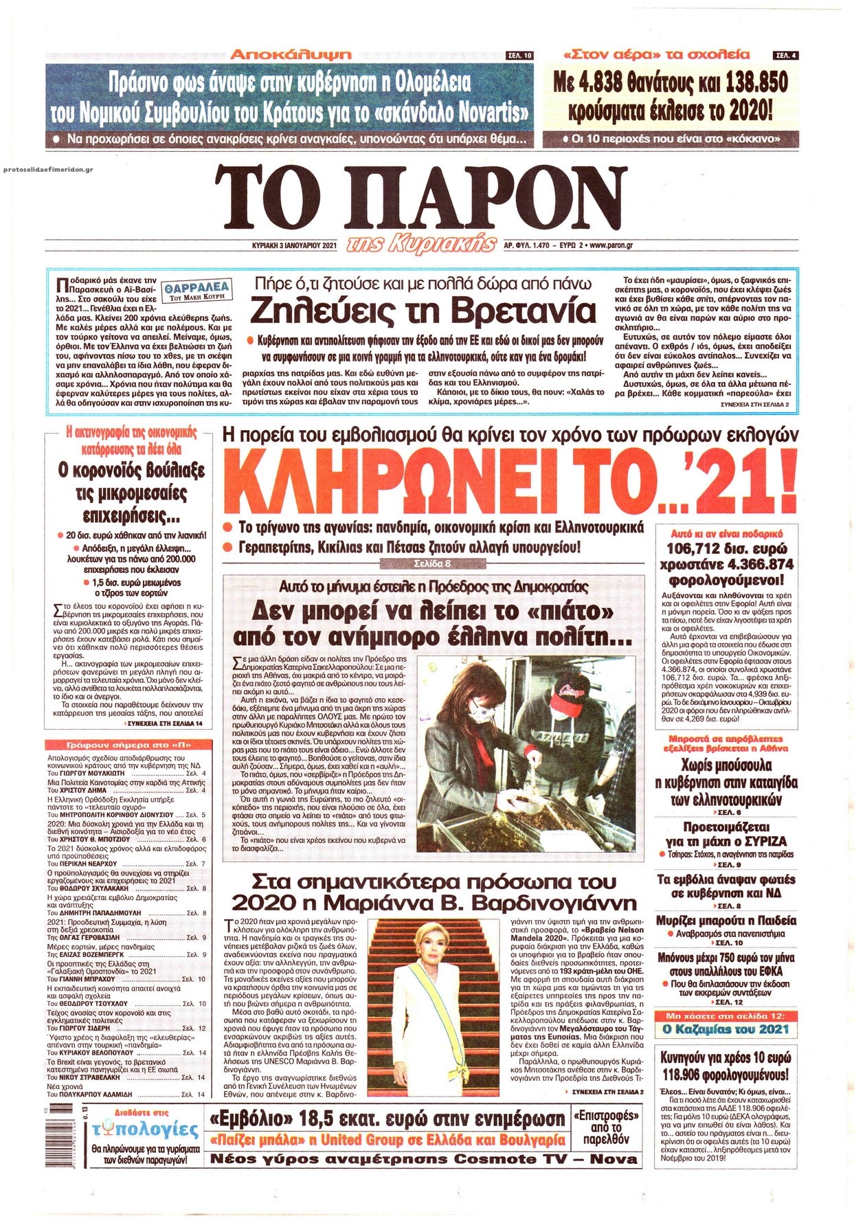 Οι πολιτικές εφημερίδες 3/1/2021 Σήφης Γαρυφαλάκης 07:38, Κυριακή 03 Ιανουαρίου 2021 Media Διαβάστε τα πρωτοσέλιδα των πολιτικών εφημερίδων… ΕΦΗΜΕΡΙΔΕΣ ΠΟΛΙΤΙΚΕΣ ΕΦΗΜΕΡΙΔΕΣ ΠΡΩΤΟΣΕΛΙΔΑ ΠΡΩΤΟΣΕΛΙΔΑ ΕΦΗΜΕΡΙΔΩΝ Μοιράσου το: σχολίασε κι εσύ (0 σχόλια) Ακολουθήστε το enikos.gr στο Google News και μάθετε πρώτοι όλες τις ειδήσεις Δείτε όλες τις τελευταίες ειδήσεις από την Ελλάδα και τον Κόσμο στο enikos.gr Ειδήσεις Ροή Ειδήσεων 1 ώρα πριν Νίκος Παππάς: «Είχα λάθος αντίδραση στη δική του δράση-πρόκληση – Δεν θα αναλύσω σε τι κατάσταση ήταν ο δημοσιογράφος» 17 λεπτά πριν Αλεξανδρούπολη: Πολυοργανική ανεπάρκεια λόγω υποσιτισμού η αιτία θανάτου του 3χρονου αγοριού 55 λεπτά πριν Δημοσκόπηση Pulse: Η διαφορά ΝΔ-ΠΑΣΟΚ – Με ποια κριτήρια θα ψηφίσουν οι πολίτες στις επόμενες εκλογές 1 ώρα πριν Αγρότες: Άνοιξαν τον μεθοριακό σταθμό του Προμαχώνα – Κανονικά περνούν τα φορτηγά 2 ώρες πριν Συγκλονιστικό βίντεο: Τρόμος για τουρίστες που σώθηκαν την τελευταία στιγμή από λεωφορείο που κατρακυλούσε σε φαράγγι 48 λεπτά πριν Αριθμολογία: Οι άνθρωποι που έχουν γεννηθεί αυτές τις 4 ημερομηνίες, είναι τρυφεροί και αγαπούν ανιδιοτελώς 3 ώρες πριν Οι άνθρωποι που θυμούνται τα όνειρά τους, συνήθως μοιράζονται αυτά τα 6 σπάνια χαρακτηριστικά 2 ώρες πριν Καθρέφτες μπάνιου: Το απλό κόλπο με την οδοντόκρεμα για να μην θολώνουν 12 ώρες πριν 20 χρόνια τα Χριστούγεννα ξεκινούν στα Public με μεγάλη ποικιλία σε δώρα! 9 λεπτά πριν Δημοσκόπηση MRB: Πρώτη η ΝΔ με 22,6%, στο 10,9% το ΠΑΣΟΚ – Το 80% των πολιτών στηρίζει τους αγρότες, τι λένε για Τσίπρα και Καρυστιανού 17 λεπτά πριν Αλεξανδρούπολη: Πολυοργανική ανεπάρκεια λόγω υποσιτισμού η αιτία θανάτου του 3χρονου αγοριού 24 λεπτά πριν LEFT: Ξεκίνησαν οι διαδικασίες για τη διαγραφή του Νίκου Παππά από την ομάδα της Αριστεράς στο Ευρωκοινοβούλιο 30 λεπτά πριν Λεωφόρος Αλεξάνδρας: Απειλή για βόμβα έξω από κολέγιο – Στο σημείο το ΤΕΕΜ 35 λεπτά πριν Παιχνίδια Εκδίκησης: Θα καταφέρει ο Χρήστος να κλονίσει την εμπιστοσύνη της Μάγιας απέναντι στον Άγη; ENIKOS NETWORK Αϋπνία: Το κόλπο που θα σας βοηθήσει να κοιμηθείτε απόψε – Είναι απλό και έχει αποτέλεσμα 2,6 εκατομμύρια πολίτες έχουν ήδη εμβολιαστεί κατά της γρίπης Πώς θα γίνει η πληρωμή αγροτεμαχίων έως 20 στρέμματα παρά τα ζητήματα ΚΑΕΚ ΟΠΕΚΕΠΕ – ΕΛΓΑ: Ολοκληρώθηκαν πληρωμές 487,9 εκατ. ευρώ – Θα καταβληθούν ακόμα 600 εκατ. έως τις 31 Δεκεμβρίου Χαρτογραφώντας το «σημείο χωρίς επιστροφή»: Για πρώτη φορά αποκαλύπτεται με λεπτομέρεια το ακανθώδες όριο της ατμόσφαιρας τ... Η Google καταργεί τη λειτουργία «dark web report» – Πώς θα μπορούν οι χρήστες να διαγράφουν τα δεδομένα τους περισσότερα 21:14 , Τετάρτη 17 Δεκεμβρίου 2025 Παιχνίδια Εκδίκησης: Θα καταφέρει ο Χρήστος να κλονίσει την εμπιστοσύνη της Μάγιας απέναντι στον Άγη; Τα «Παιχνίδια Εκδίκησης» έρχονται απόψε στις 22:30, στον Αντ1, με το τελευταίο επεισόδιο της χ... 20:57 , Τετάρτη 17 Δεκεμβρίου 2025 Άγιος Έρωτας: Η Χλόη καταθέτει εναντίον του πατέρα της και ο Χάρης αποκαλύπτει στον Κλεάνθη ότι δεν είναι ο βιολογικός του πατέρας. Γεμάτο αποκαλύψεις είναι το νέο επεισόδιο της σειράς “Άγιος Έρωτας” απόψε στις 21:... 20:15 , Τετάρτη 17 Δεκεμβρίου 2025 Η ανακοίνωση της ΕΣΗΕΑ για την επίθεση του Ευρωβουλευτή Νίκου Παππά κατά του δημοσιογράφου Νίκου Γιαννόπουλου «Το Δ.Σ. της ΕΣΗΕΑ καταδικάζει απερίφραστα την ενέργεια του Ευρωβουλευτή του ΣΥΡΙΖΑ Νίκου Παππ... 12:35 , Τετάρτη 17 Δεκεμβρίου 2025 Μίρκα Παπακωνσταντίνου: «Δεν ήμουν αι