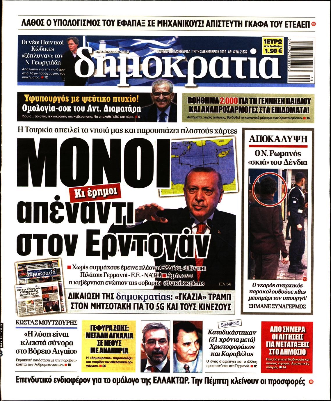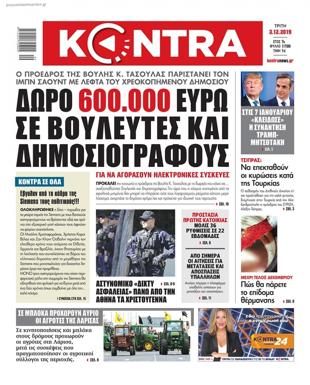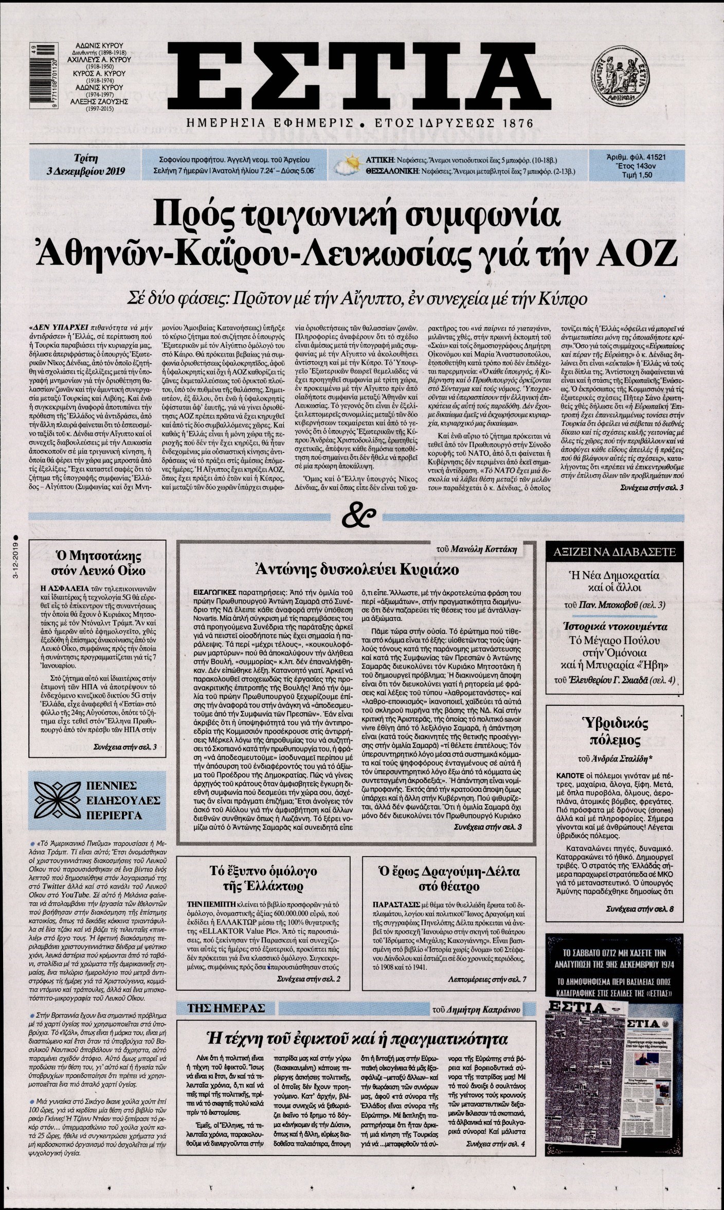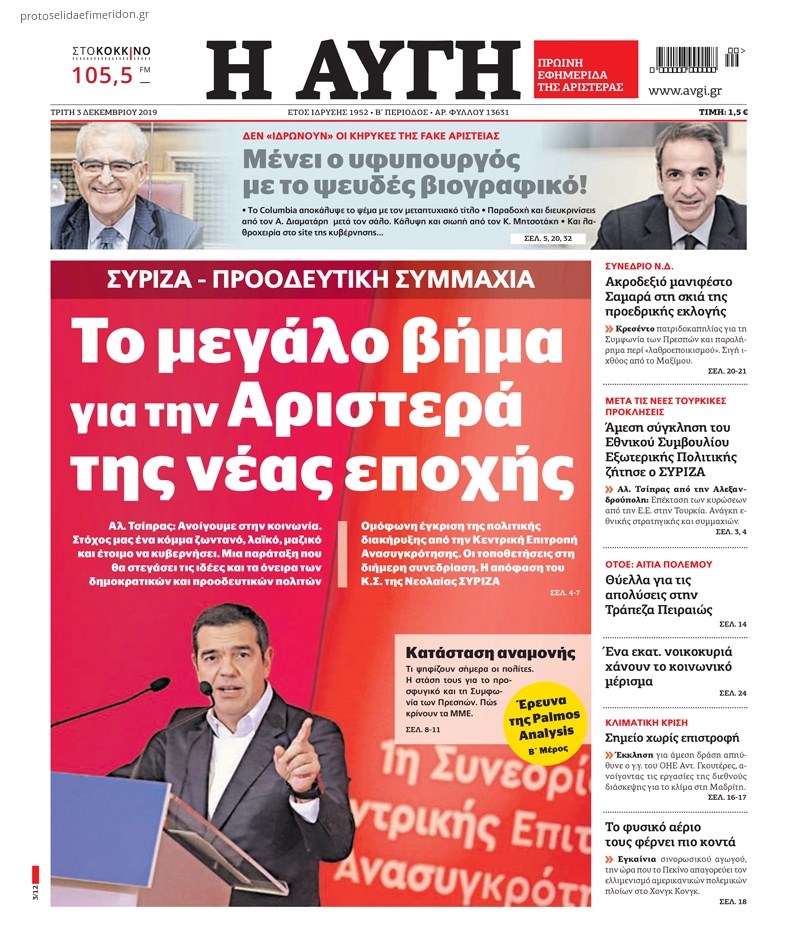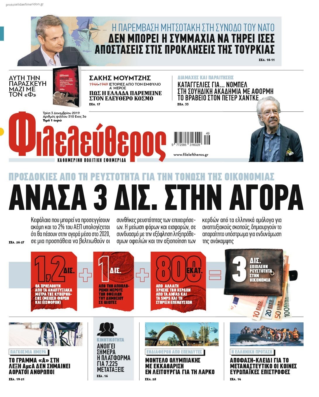 Οι πολιτικές εφημερίδες 3/12/2019 Κώστας Τεό 06:20, Τρίτη 03 Δεκεμβρίου 2019 Media Διαβάστε τα πρωτοσέλιδα των πολιτικών εφημερίδων: ΠΟΛΙΤΙΚΕΣ ΕΦΗΜΕΡΙΔΕΣ ΠΡΩΤΟΣΕΛΙΔΑ Μοιράσου το: σχολίασε κι εσύ (0 σχόλια) Ακολουθήστε το enikos.gr στο Google News και μάθετε πρώτοι όλες τις ειδήσεις Δείτε όλες τις τελευταίες ειδήσεις από την Ελλάδα και τον Κόσμο στο enikos.gr Ειδήσεις Ροή Ειδήσεων 2 ώρες πριν Χριστούγεννα στα μπλόκα: Επιμένουν στις κινητοποιήσεις τους οι αγρότες – Ανοίγουν τα διόδια το Σαββατοκύριακο 2 ώρες πριν Ουκρανία: Η άνευ προηγουμένου επίθεση σε ρωσικό τάνκερ στη Μεσόγειο και το μήνυμα προς στον Πούτιν – Το «μακρύ χέρι» του Κιέβου 1 ώρα πριν Πούτιν: Τα μηνύματα σε Ευρώπη και ΝΑΤΟ από το μαραθώνιο «σόου» του – Η απαίτηση για «σεβασμό» και η ειρήνη «με τους όρους» της Μόσχας 2 ώρες πριν Τραμπ: Δεν αποκλείει την πιθανότητα ενός πολέμου στη Βενεζουέλα – «Ο Μαδούρο ξέρει καλύτερα από τον καθένα τι ακριβώς θέλω» 3 ώρες πριν Συνεχίζει να προκαλεί ο Μίτσκοσκι: «Για μένα το όνομα Μακεδονία είναι ιερό» 1 ώρα πριν Ανακαλύφθηκαν αρχαία χρυσά νομίσματα 2.200 ετών που απεικονίζουν τον θεό Απόλλωνα – Η άγνωστη σύνδεση με τον Φίλιππο Β΄ της Μακεδονίας 2 ώρες πριν Ύπνος: Μια κρυφή κατάσταση του εγκεφάλου πριν από τον ύπνο μπορεί να είναι το “κλειδί” για υψηλή ευφυΐα και δημιουργικότητα 3 ώρες πριν Αριθμολογία: Οι άνθρωποι που έχουν γεννηθεί αυτές τις 4 ημερομηνίες, συχνά παρεξηγούνται – «Η καλοσύνη τους κρύβει τεράστια δύναμη» 4 ώρες πριν Ξεχάστε το καθάρισμα το Σαββατοκύριακο: Ο «κανόνας των 20 λεπτών» που θα σας λύσει τα χέρια 5 λεπτά πριν Βασίλης Σπανούλης: Δεν εμφανίστηκε ούτε ένας δημοσιογράφος στην συνέντευξη Τύπου – «Καλησπέρα στον… κανέναν», δείτε βίντεο 16 λεπτά πριν Πόλεμος στην Ουκρανία: Εφτά νεκροί από ρωσική πυραυλική επίθεση στο λιμάνι της Οδησσού 19 λεπτά πριν ΗΠΑ: Η κυβέρνηση του Ντόναλντ Τραμπ άρχισε να δημοσιοποιεί τα αρχεία Έπσταϊν 31 λεπτά πριν Σάμος: Άνοιξε το μπλόκο των αγροτών στον κόμβο Κοκκαρίου – Σε νέα συνεδρίαση θα καθορίσουν την στάση τους 39 λεπτά πριν Άνω Λιόσια: Πυροβολισμοί σε επιχείρηση με χαλιά – Εντοπίστηκαν 10 κάλυκες ENIKOS NETWORK Το ΕΚΑΒ τιμήθηκε από την Ακαδημία Αθηνών για τα 40 χρόνια προσφοράς του Έχετε πραγματικά μεγάλη καρδιά; 10 χαρακτηριστικά όσων έχουν καλοσύνη Αναστολή μέτρων αναγκαστικής εκτέλεσης για κτηνοτρόφους που πλήττονται από την ευλογιά των αιγοπροβάτων Πλήρης επάρκεια προϊόντων στις λαϊκές της Αττικής, παρά τις αγροτικές κινητοποιήσεις – Τι απαντούν οι πωλητές Χαρτογραφώντας το «σημείο χωρίς επιστροφή»: Για πρώτη φορά αποκαλύπτεται με λεπτομέρεια το ακανθώδες όριο της ατμόσφαιρας τ... Η Google καταργεί τη λειτουργία «dark web report» – Πώς θα μπορούν οι χρήστες να διαγράφουν τα δεδομένα τους περισσότερα 22:42 , Παρασκευή 19 Δεκεμβρίου 2025 Γιώργος Γιαννόπουλος για “Το σόι σου”: “Είναι ευτυχία και ευλογία αυτή η σειρά” «Είναι ευτυχία και ευλογία η συγκυρία αυτής της σειράς», θα πει ο Γιώργος Γιαννόπουλος -ο αγαπ... 20:37 , Παρασκευή 19 Δεκεμβρίου 2025 Don’t Forget The Lyrics: Η Έλλη Κοκκίνου υποδέχεται 4 παίκτες που θα κάνουν τα πάντα για να μη χάσουν ούτε… μισή λέξη από τους στίχους Το «Don’t Forget The Lyrics» επιστρέφει απόψε, Παρασκευή 19 Δεκεμβρίου, στις 21:00 με νέο επει... 19:31 , Παρασκευή 19 Δεκεμβρίου 2025 GNTM: Απόψε ο μεγάλος τελικός για τους 4 φιναλίστ Έπειτα από μήνες γεμάτους μόδα, δημιουργία και έντονες αναμετρήσεις, το GNTM 2025 κορυφώνεται,... 18:11 , Παρασκευή 19 Δεκ