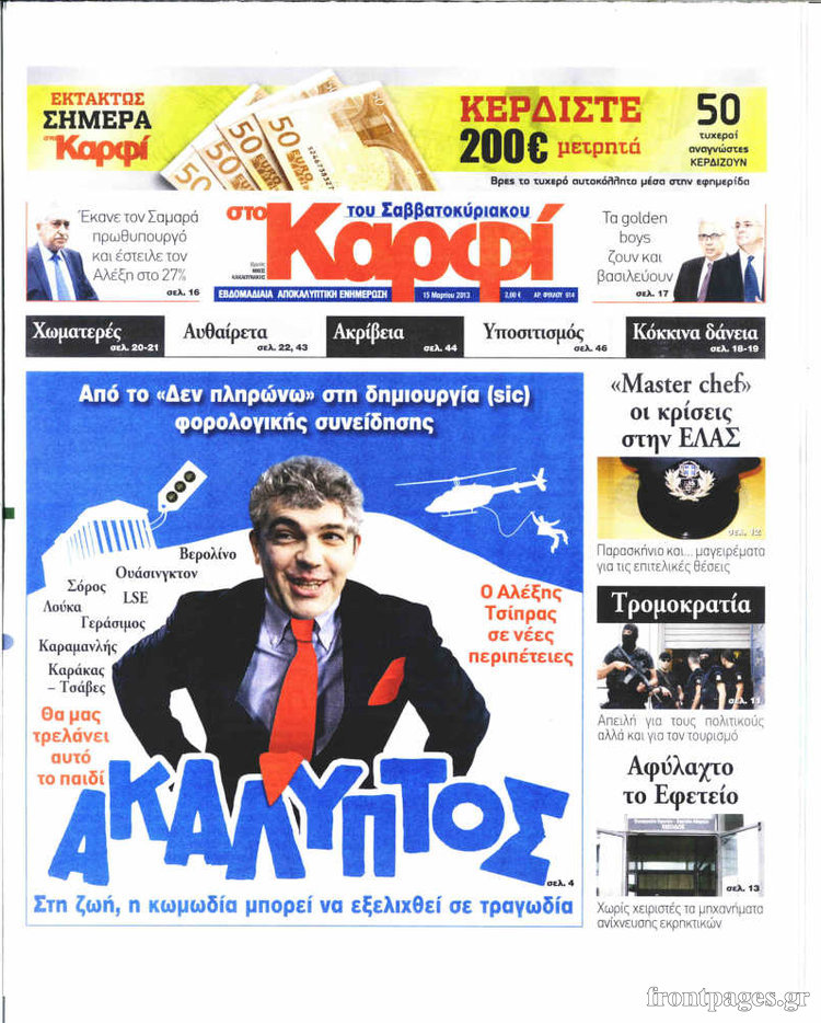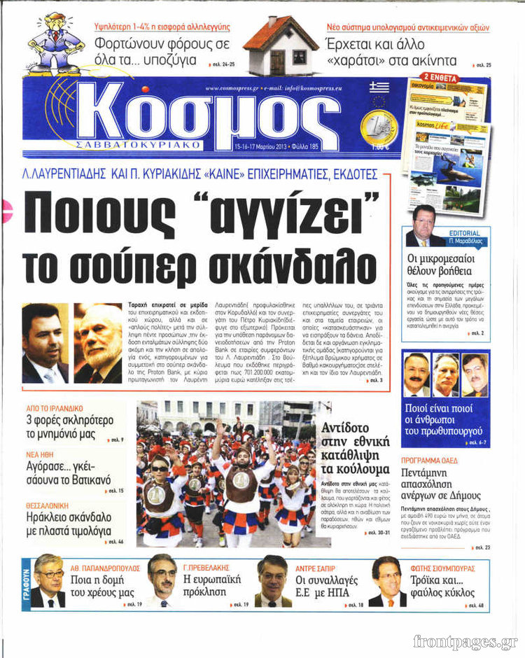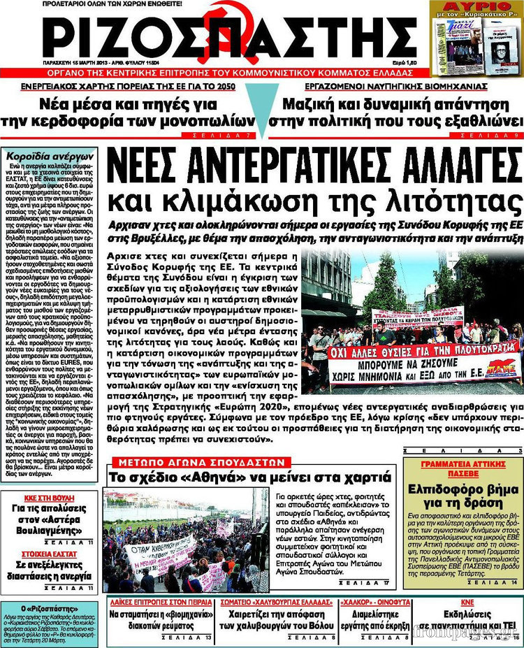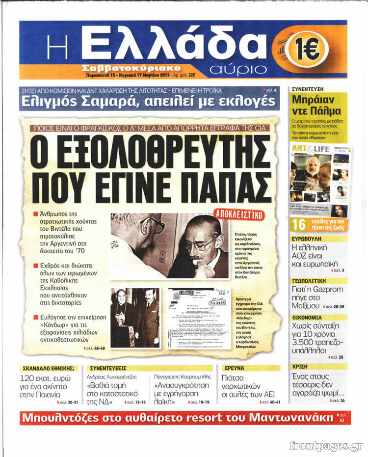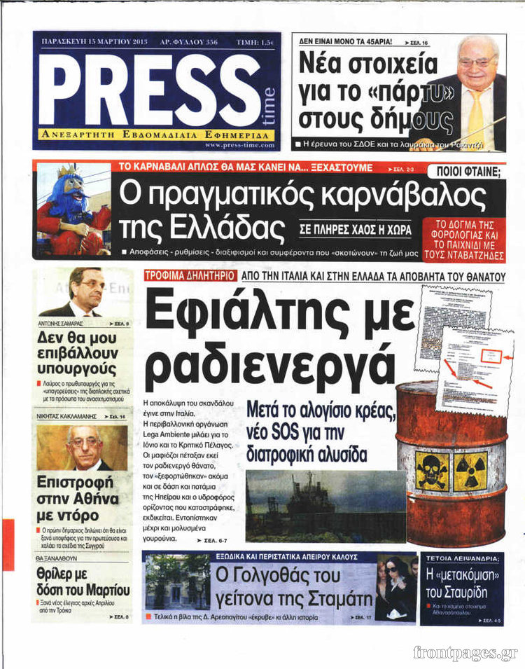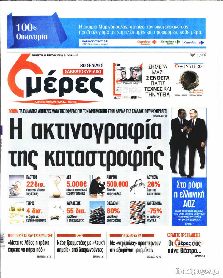Οι πολιτικές εφημερίδες Enikos Newsroom 09:39, Παρασκευή 15 Μαρτίου 2013 Media Οι πολιτικές εφημερίδες ΕΦΗΜΕΡΙΔΕΣ ΟΙ ΠΟΛΙΤΙΚΕΣ ΕΦΗΜΕΡΙΔΕΣ ΠΡΩΤΟΣΕΛΙΔΑ Μοιράσου το: σχολίασε κι εσύ (0 σχόλια) Ακολουθήστε το enikos.gr στο Google News και μάθετε πρώτοι όλες τις ειδήσεις Δείτε όλες τις τελευταίες ειδήσεις από την Ελλάδα και τον Κόσμο στο enikos.gr Ειδήσεις Ροή Ειδήσεων 59 λεπτά πριν Αγρότες: Την Τρίτη η απόφαση για διάλογο ή κλιμάκωση των κινητοποιήσεών τους – Πώς χαρακτηρίζουν τις ανακοινώσεις Τσιάρα και οι επόμενες κινήσεις 34 λεπτά πριν Τραμπ για Ουκρανία: «Είμαστε πιο κοντά σε συμφωνία από ποτέ» – «Πολυεθνική δύναμη» προτείνουν οι Ευρωπαίοι 52 λεπτά πριν Κυψέλη: Η 16χρονη που μαχαίρωσε την 14χρονη είχε συλληφθεί 3 φορές στο παρελθόν – Έβριζε καθηγητές, έβαζε φωτιές σε κάδους και εκβίαζε συμμαθητές της 1 ώρα πριν Χαλκιδική: Πώς δρούσαν οι αστυνομικοί που συνελήφθησαν για κλήσεις που δεν έκοβαν – Η «ετήσια συνδρομή» για τα μπλόκα της Τροχαίας και οι «δωρεές» 17 λεπτά πριν Τρομοκρατική επίθεση στο Σίδνεϊ: Θλίψη για τα 15 θύματα – Οργή στην εβραϊκή κοινότητα που προειδοποιούσε επί δύο χρόνια 2 ώρες πριν Ύπνος: Η αρχαία μορφή άσκησης που αποδεικνύεται αποτελεσματική στην αντιμετώπιση της αϋπνίας, σύμφωνα με μελέτη 3 ώρες πριν Αριθμολογία: Ο τυχερός σας αριθμός, ανάλογα με τον μήνα γέννησής σας 4 ώρες πριν Πώς να μην μαραίνονται γρήγορα τα κομμένα λουλούδια: Το λάθος στην τοποθέτηση του βάζου που πρέπει να αποφεύγετε 37 λεπτά πριν Επιστήμονες ίσως έλυσαν το μυστήριο γύρω από τα Χόμπιτ – Νέα έρευνα αποκαλύπτει πώς εξαφανίστηκαν 11 λεπτά πριν ΚΚΕ: Το νομοσχέδιο – «λαιμητόμος» του υπουργείου Άμυνας δεν πρέπει να περάσει 17 λεπτά πριν Τρομοκρατική επίθεση στο Σίδνεϊ: Θλίψη για τα 15 θύματα – Οργή στην εβραϊκή κοινότητα που προειδοποιούσε επί δύο χρόνια 21 λεπτά πριν Ινστιτούτο Prolepsis: Κρίσιμα εμπόδια και βασικές προϋποθέσεις για την ενίσχυση της υγείας στα σωφρονιστικά ιδρύματα – Ευρήματα από το έργο PARTNER 27 λεπτά πριν Χανιά: Ηλικιωμένες μητέρες κρατουμένων προσπάθησαν να περάσουν ναρκωτικά στις φυλακές 34 λεπτά πριν Τραμπ για Ουκρανία: «Είμαστε πιο κοντά σε συμφωνία από ποτέ» – «Πολυεθνική δύναμη» προτείνουν οι Ευρωπαίοι ENIKOS NETWORK Πότε το χρόνιο ροχαλητό να αποτελέσει ένδειξη κινδύνου για την καρδιά; Τι λένε οι ειδικοί Μάριος Θεμιστοκλέους: Το ΕΣΥ ενισχύεται, εκσυγχρονίζεται, αλλάζει ΕΒΕΠ για αγροτικές κινητοποιήσεις: Κάθε επιπλέον εβδομάδα προσθέτει περίπου 200 εκατ. ευρώ ζημιά Τι προβλέπει το νομοσχέδιο του υπουργείου Εθνικής Άμυνας – Oι αλλαγές στους μισθούς Σύγχρονος Νοστράδαμος: Προειδοποιεί για «μεγάλο γεγονός» τους επόμενους μήνες που θα συγκλονίσει τη Βρετανία και τον κόσμο Τεστ παρατηρητικότητας: Μπορείτε να βρείτε τις 3 διαφορές στις εικόνες με έναν πιγκουίνο σε 14 δευτερόλεπτα περισσότερα 21:35 , Δευτέρα 15 Δεκεμβρίου 2025 Το Σπίτι Δίπλα Στο Ποτάμι: Η Ιουλία και ο Φωκάς μετακομίζουν στη Ρόδο – Δύο νέοι χαρακτήρες μπαίνουν στη σειρά Δύο νέοι, κομβικοί χαρακτήρες κάνουν την εμφάνισή τους αυτή την εβδομάδα στην αγαπημένη σειρά ... 19:46 , Δευτέρα 15 Δεκεμβρίου 2025 Άγιος έρωτας: Η Χριστίνα λέει την αλήθεια στον Αντρέα Ο Βασίλης δέχεται επίθεση από τους συμμαθητές του, η Αναστασία είναι συντετριμμένη με την απώλ... 18:45 , Δευτέρα 15 Δεκεμβρίου 2025 Συνέδριο «Ελληνικός Τουρισμός 2025, Μια εθνική υπόθεση!» – «Ο Θαλάσσιος Πυλώνας ως Ενιαία Στρατηγική: Συνέργειες σε Λιμάνια, Μαρίνες, Ακτοπλο