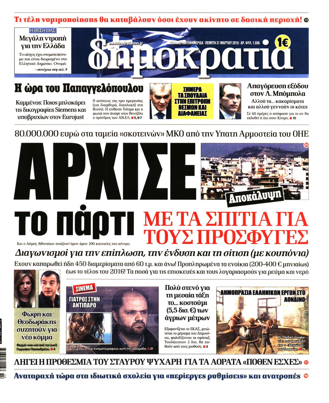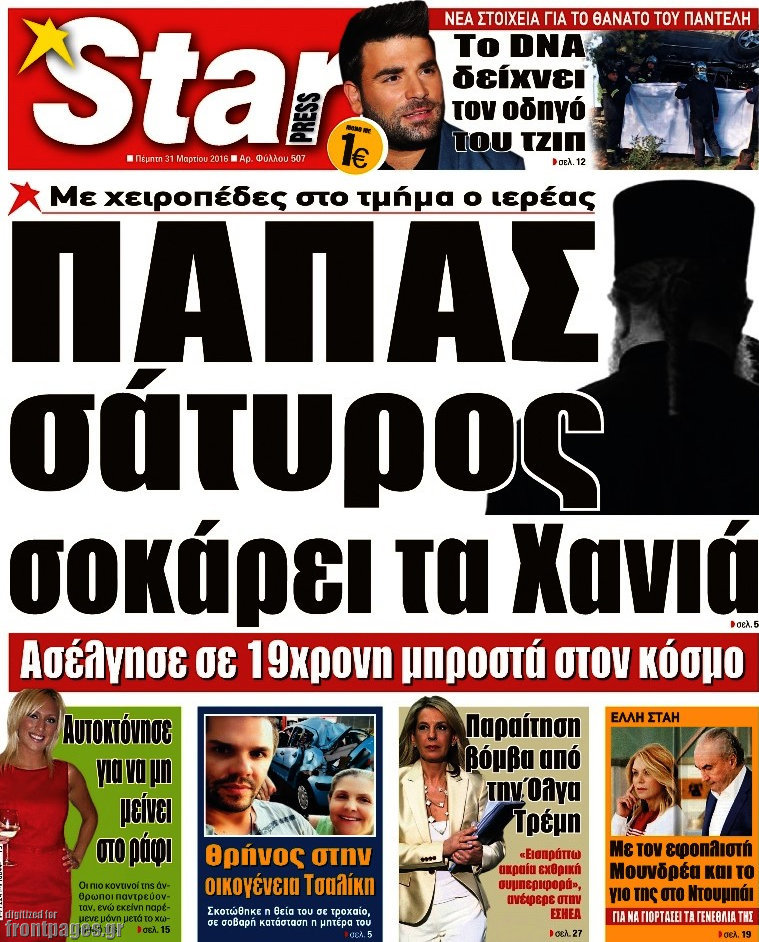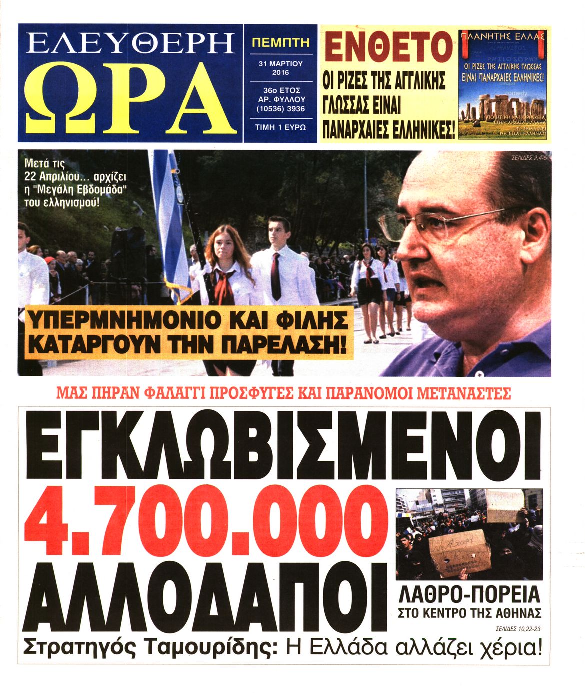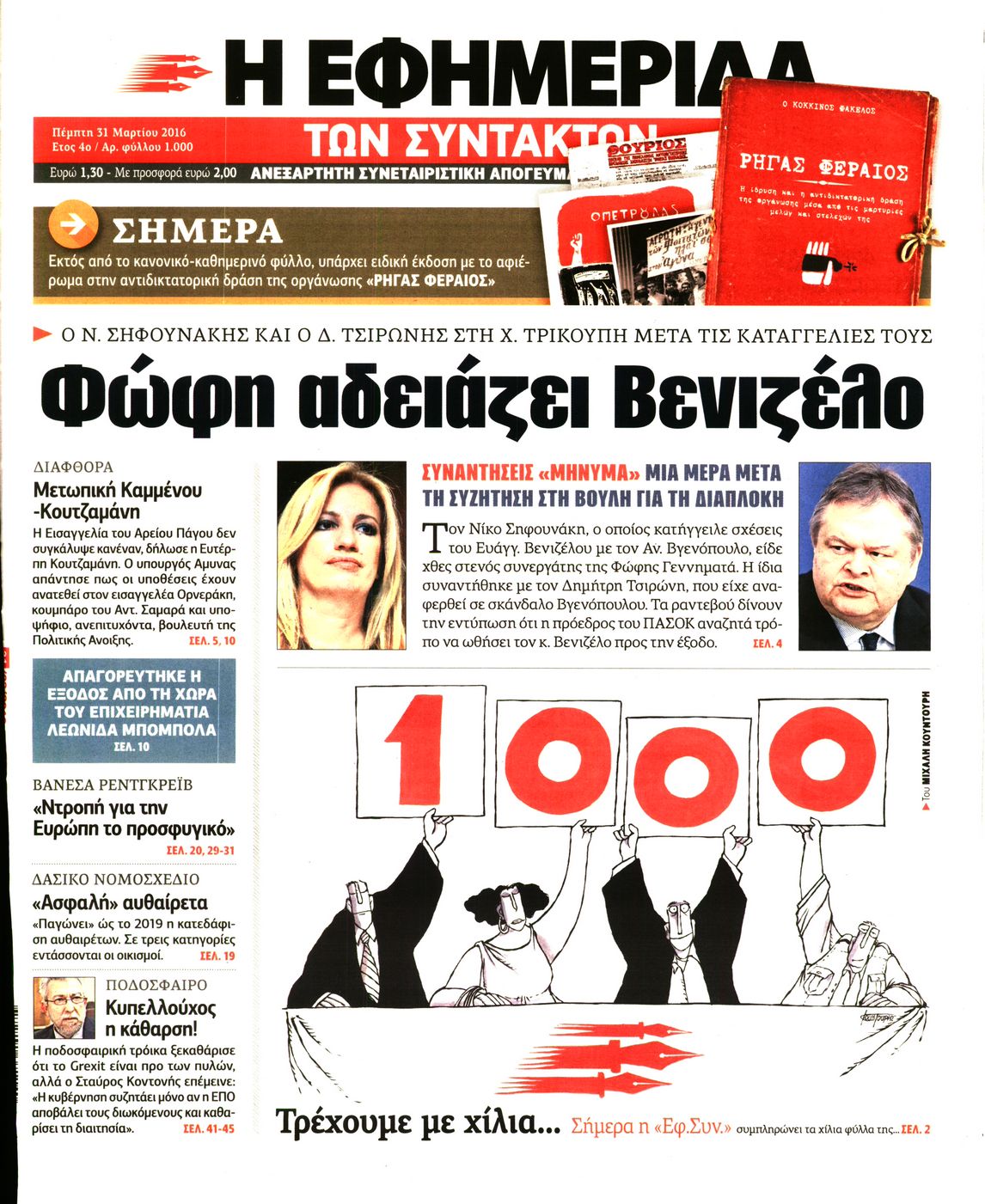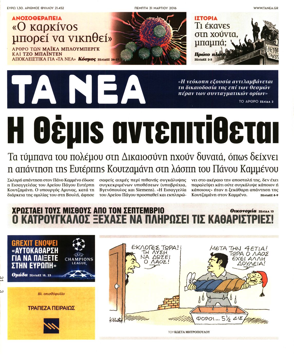 Οι πολιτικές εφημερίδες 31/3/2016 Enikos Newsroom 07:29, Πέμπτη 31 Μαρτίου 2016 Media Διαβάστε τα σημερινά πρωτοσέλιδα των πολιτικών εφημερίδων: ΠΟΛΙΤΙΚΕΣ ΕΦΗΜΕΡΙΔΕΣ ΠΡΩΤΟΣΕΛΙΔΑ Μοιράσου το: σχολίασε κι εσύ (0 σχόλια) Ακολουθήστε το enikos.gr στο Google News και μάθετε πρώτοι όλες τις ειδήσεις Δείτε όλες τις τελευταίες ειδήσεις από την Ελλάδα και τον Κόσμο στο enikos.gr Ειδήσεις Ροή Ειδήσεων 3 ώρες πριν Χριστούγεννα στα μπλόκα: Επιμένουν στις κινητοποιήσεις τους οι αγρότες – Ανοίγουν τα διόδια το Σαββατοκύριακο 3 ώρες πριν Ουκρανία: Η άνευ προηγουμένου επίθεση σε ρωσικό τάνκερ στη Μεσόγειο και το μήνυμα προς στον Πούτιν – Το «μακρύ χέρι» του Κιέβου 2 ώρες πριν Πούτιν: Τα μηνύματα σε Ευρώπη και ΝΑΤΟ από το μαραθώνιο «σόου» του – Η απαίτηση για «σεβασμό» και η ειρήνη «με τους όρους» της Μόσχας 3 ώρες πριν Τραμπ: Δεν αποκλείει την πιθανότητα ενός πολέμου στη Βενεζουέλα – «Ο Μαδούρο ξέρει καλύτερα από τον καθένα τι ακριβώς θέλω» 4 ώρες πριν Συνεχίζει να προκαλεί ο Μίτσκοσκι: «Για μένα το όνομα Μακεδονία είναι ιερό» 2 ώρες πριν Ανακαλύφθηκαν αρχαία χρυσά νομίσματα 2.200 ετών που απεικονίζουν τον θεό Απόλλωνα – Η άγνωστη σύνδεση με τον Φίλιππο Β΄ της Μακεδονίας 3 ώρες πριν Ύπνος: Μια κρυφή κατάσταση του εγκεφάλου πριν από τον ύπνο μπορεί να είναι το “κλειδί” για υψηλή ευφυΐα και δημιουργικότητα 4 ώρες πριν Αριθμολογία: Οι άνθρωποι που έχουν γεννηθεί αυτές τις 4 ημερομηνίες, συχνά παρεξηγούνται – «Η καλοσύνη τους κρύβει τεράστια δύναμη» 5 ώρες πριν Ξεχάστε το καθάρισμα το Σαββατοκύριακο: Ο «κανόνας των 20 λεπτών» που θα σας λύσει τα χέρια 5 λεπτά πριν Συρία: Μαζικά πλήγματα των ΗΠΑ σε θέσεις του Ισλαμικού Κράτους – Χέγκσεθ: «Δεν είναι αρχή πολέμου, είναι μια δήλωση εκδίκησης» για το θάνατο των στρατιωτών μας 18 λεπτά πριν Ουκρανία: Ολοκληρώθηκαν οι συνομιλίες με τους Αμερικανούς κι Ευρωπαίους διαπραγματευτές 33 λεπτά πριν Μπαρτσελόνα – Μπασκόνια 134-124: Οι «μπλαουγκράνα» πήραν το ματς της χρονιάς ύστερα από τρεις παρατάσεις 48 λεπτά πριν Φαίη Σκορδά: «Παλιότερα τα κομπλιμέντα τα προσπερνούσα, τώρα τα έχω ανάγκη» 1 ώρα πριν Βασίλης Σπανούλης: Δεν εμφανίστηκε ούτε ένας δημοσιογράφος στην συνέντευξη Τύπου – «Καλησπέρα στον… κανέναν», δείτε βίντεο ENIKOS NETWORK Το ΕΚΑΒ τιμήθηκε από την Ακαδημία Αθηνών για τα 40 χρόνια προσφοράς του Έχετε πραγματικά μεγάλη καρδιά; 10 χαρακτηριστικά όσων έχουν καλοσύνη Αναστολή μέτρων αναγκαστικής εκτέλεσης για κτηνοτρόφους που πλήττονται από την ευλογιά των αιγοπροβάτων Πλήρης επάρκεια προϊόντων στις λαϊκές της Αττικής, παρά τις αγροτικές κινητοποιήσεις – Τι απαντούν οι πωλητές Χαρτογραφώντας το «σημείο χωρίς επιστροφή»: Για πρώτη φορά αποκαλύπτεται με λεπτομέρεια το ακανθώδες όριο της ατμόσφαιρας τ... Η Google καταργεί τη λειτουργία «dark web report» – Πώς θα μπορούν οι χρήστες να διαγράφουν τα δεδομένα τους περισσότερα 22:42 , Παρασκευή 19 Δεκεμβρίου 2025 Γιώργος Γιαννόπουλος για “Το σόι σου”: “Είναι ευτυχία και ευλογία αυτή η σειρά” «Είναι ευτυχία και ευλογία η συγκυρία αυτής της σειράς», θα πει ο Γιώργος Γιαννόπουλος -ο αγαπ... 20:37 , Παρασκευή 19 Δεκεμβρίου 2025 Don’t Forget The Lyrics: Η Έλλη Κοκκίνου υποδέχεται 4 παίκτες που θα κάνουν τα πάντα για να μη χάσουν ούτε… μισή λέξη από τους στίχους Το «Don’t Forget The Lyrics» επιστρέφει απόψε, Παρασκευή 19 Δεκεμβρίου, στις 21:00 με νέο επει... 19:31 , Παρασκευή 19 Δεκεμβρίου 2025 GNTM: Απόψε ο μεγάλος τελικός για τους 4 φιναλίστ Έπειτα από μήνες γεμάτο